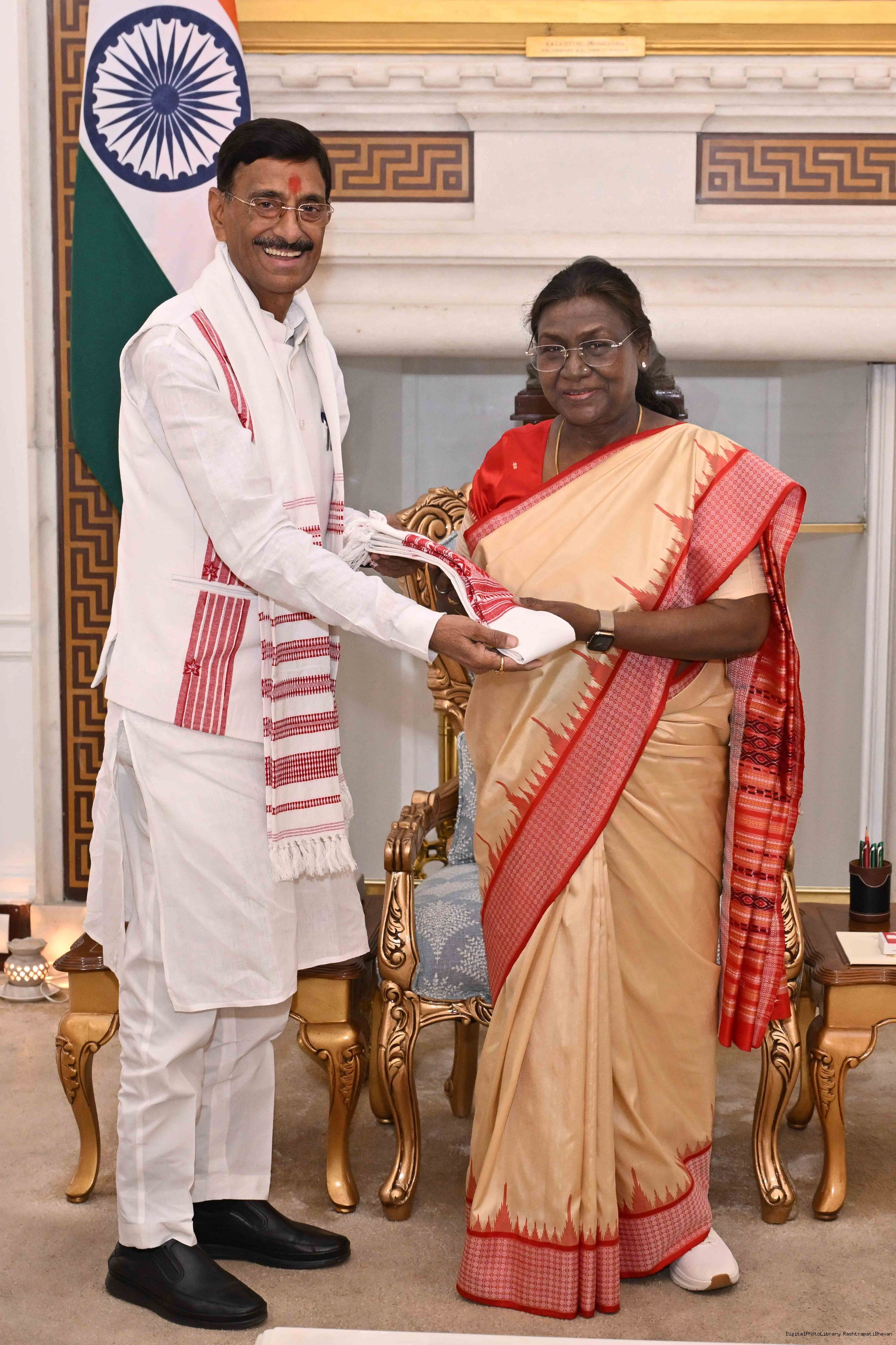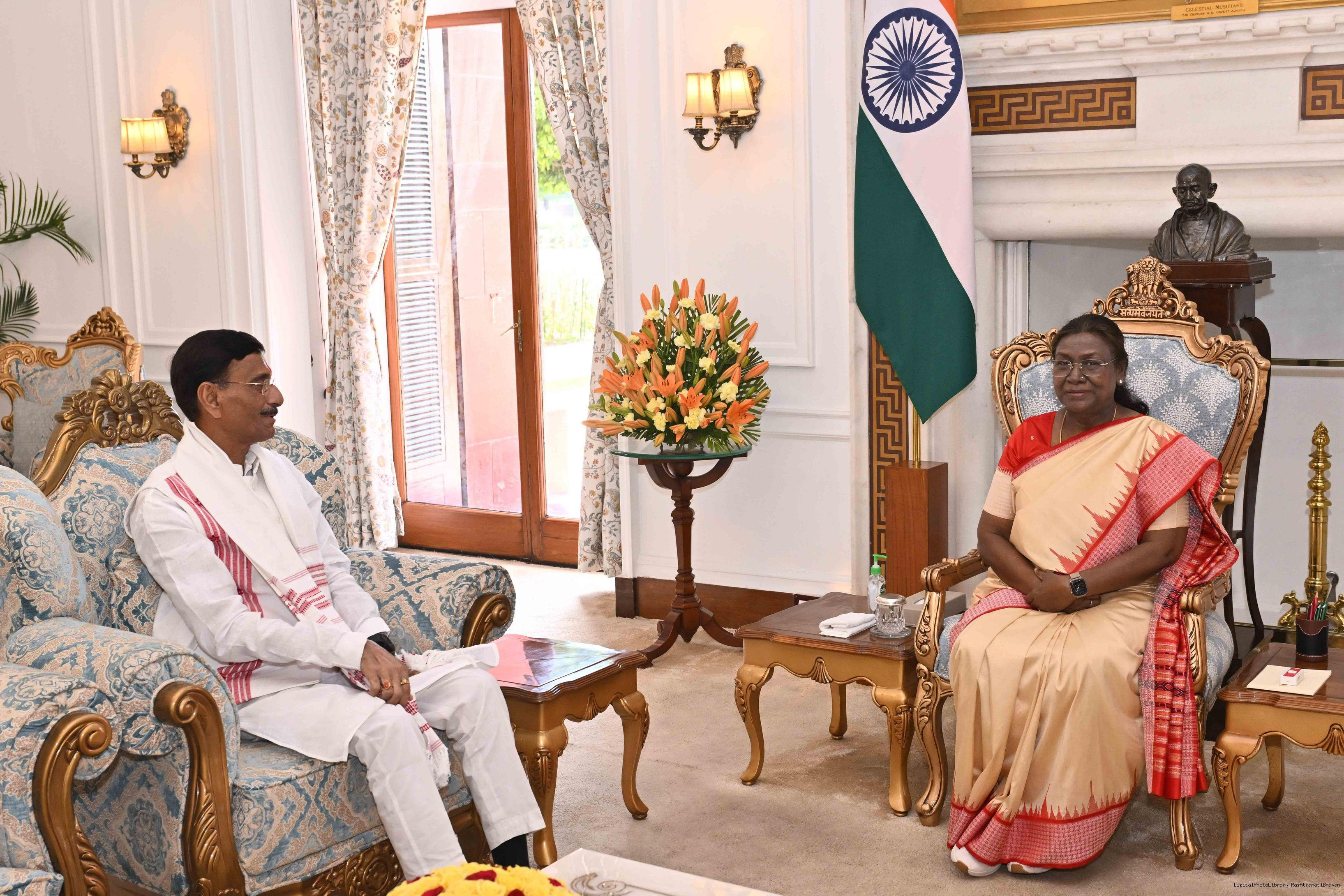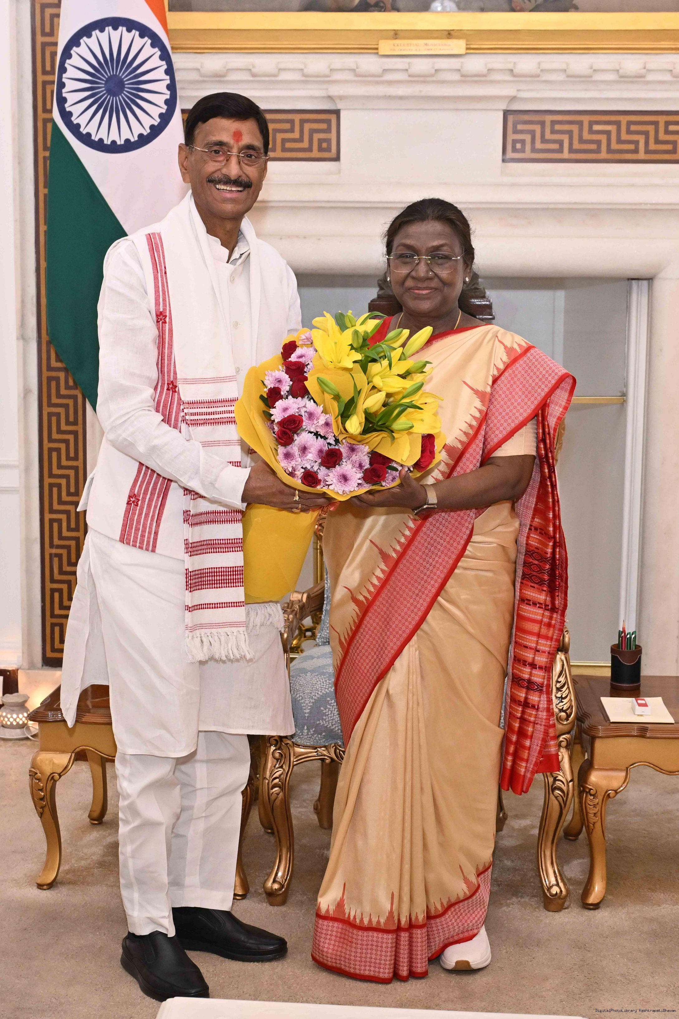 | Caption: | Shri Sanjay Seth, Minister of State for Defence called on the President of India, Smt. Droupadi Murmu at Rashtrapati Bhavan on April 1, 2025 |