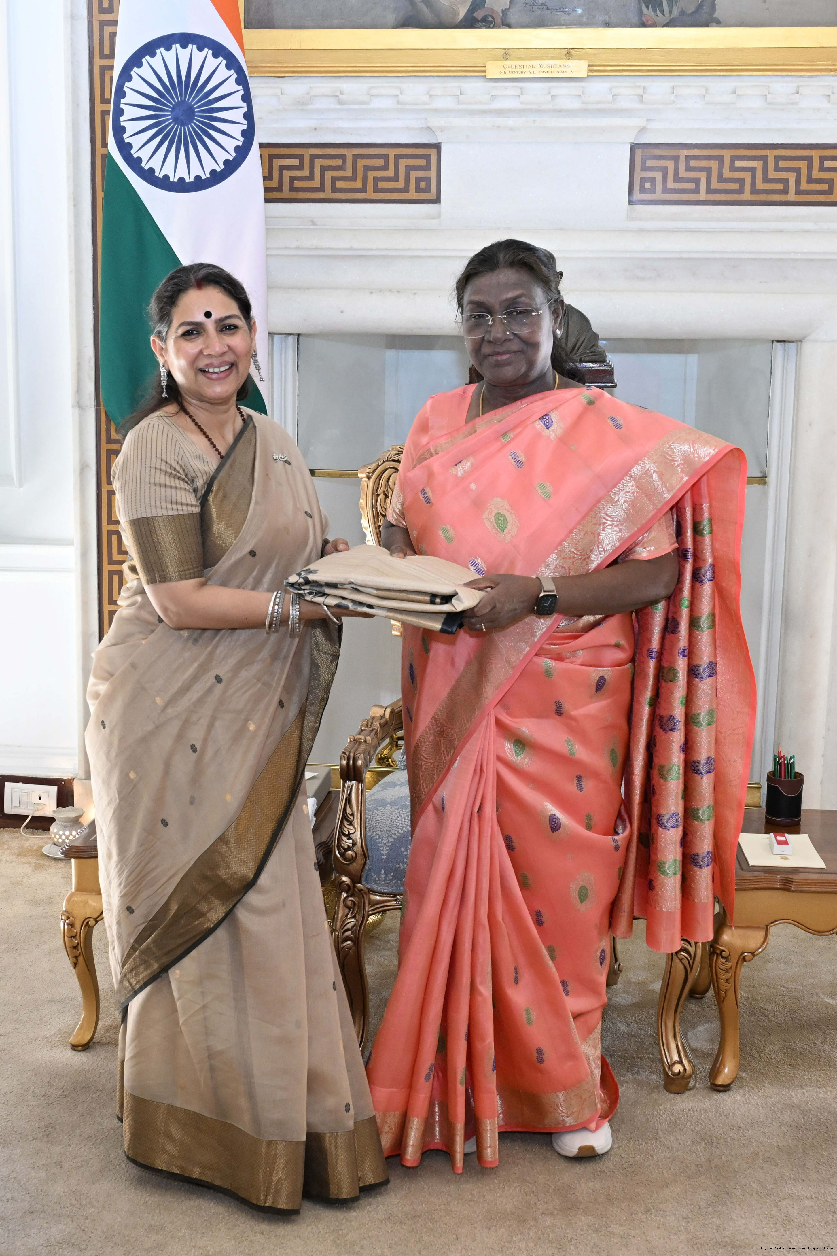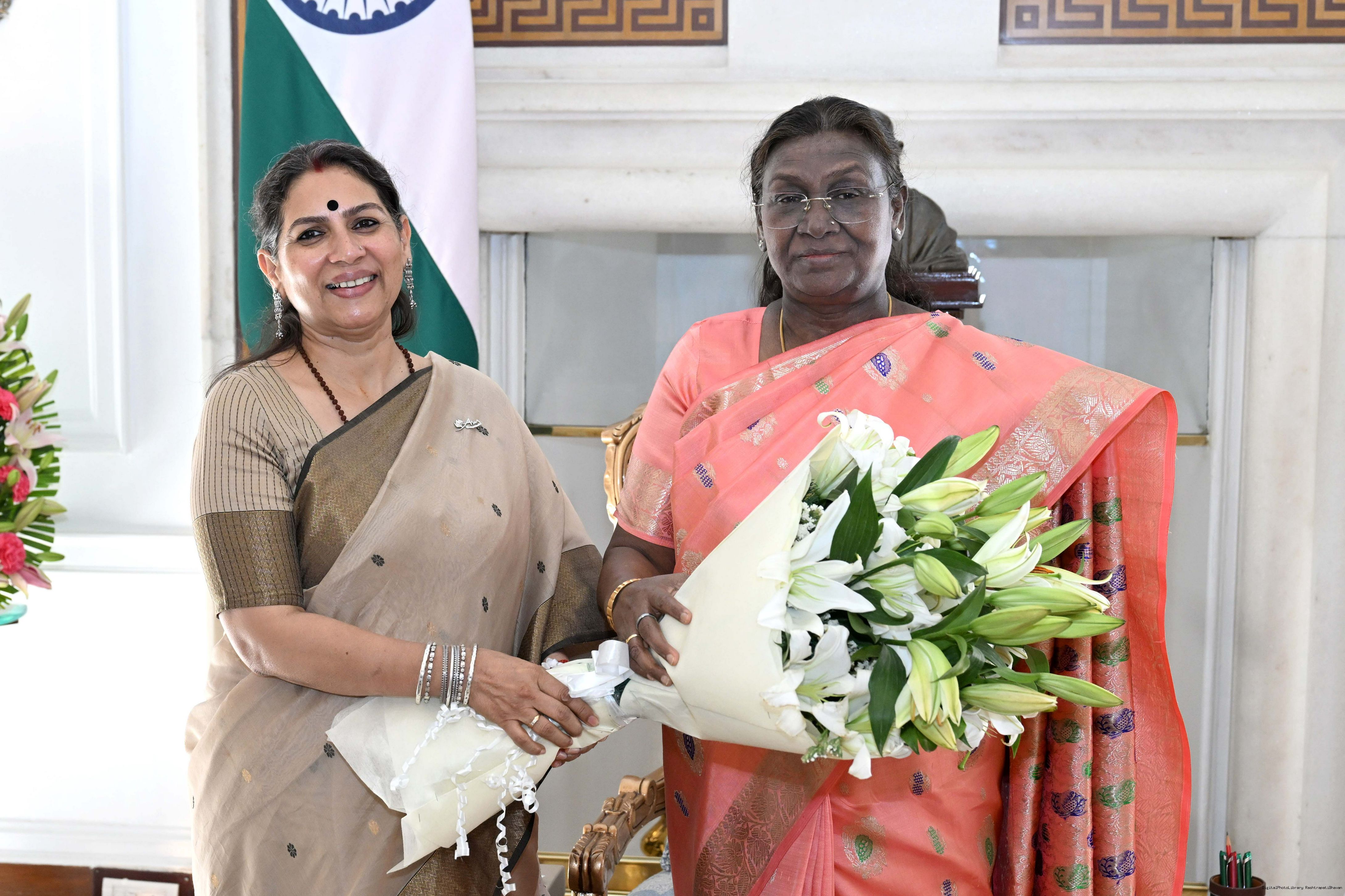 | Caption: | Smt. Sunita Dwivedi, President, Army Wives Welfare Association (AWWA) meeting with the President of India, Smt. Droupadi Murmu at Rashtrapati Bhavan on April 3, 2025 |