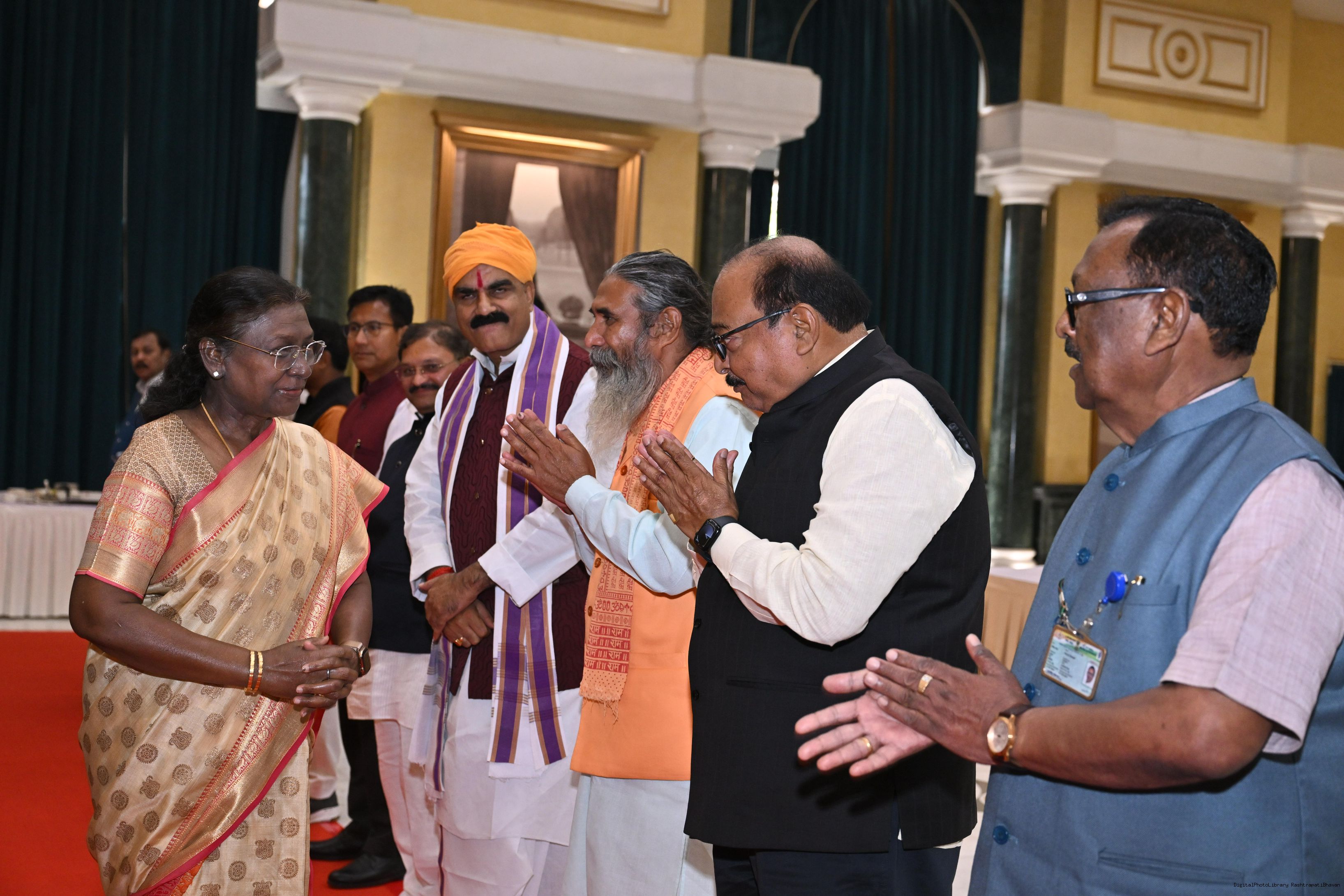 | Caption: | The President of India, Smt. Droupadi Murmu hosted Breakfast of Parliament (Lok Sabha and Rajya Sabha) at Rashtrapati Bhavan in New Delhi on April 4, 2025. |