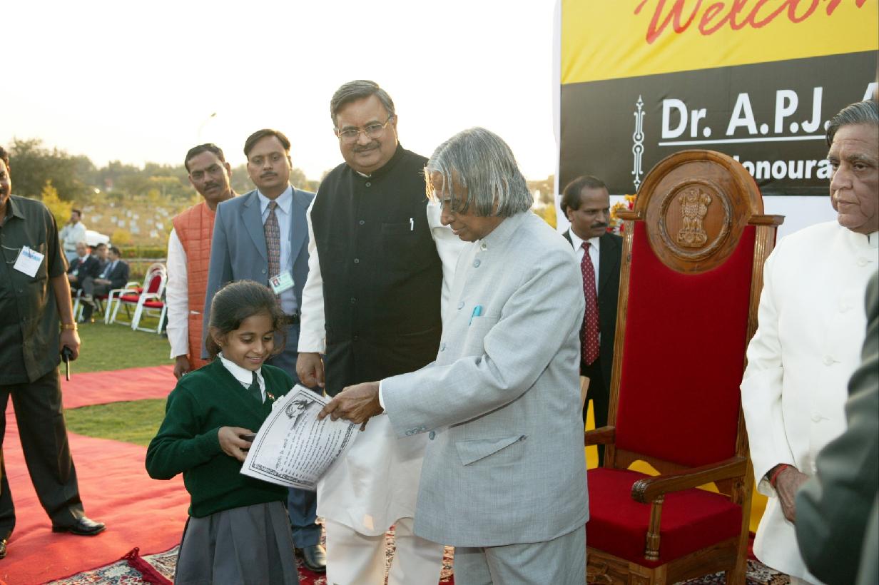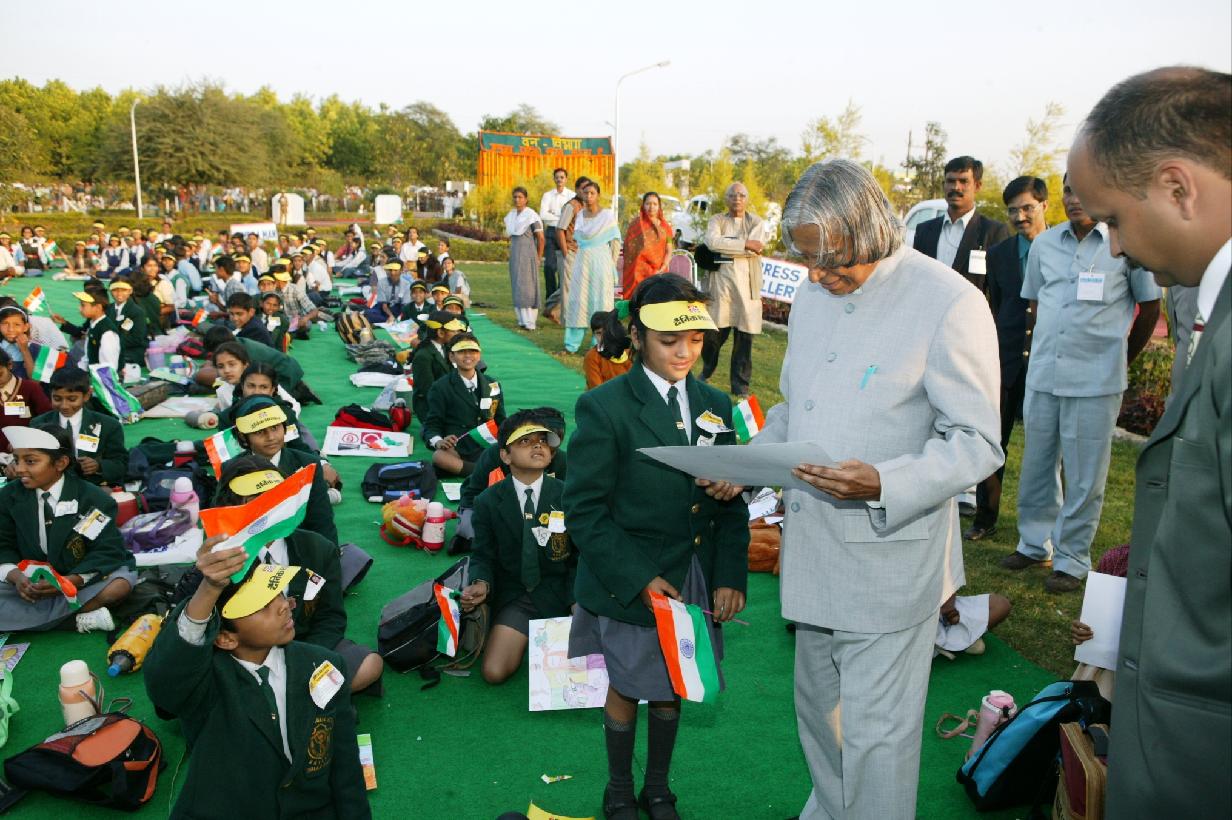 | Caption: | The President of India, Dr A P J Abdul Kalam meeting the Children Participating in Drawing and Painting Competition organised by Dainik Bhaskar at Raipur in Chhattisgarh on Jan 28, 2004 |