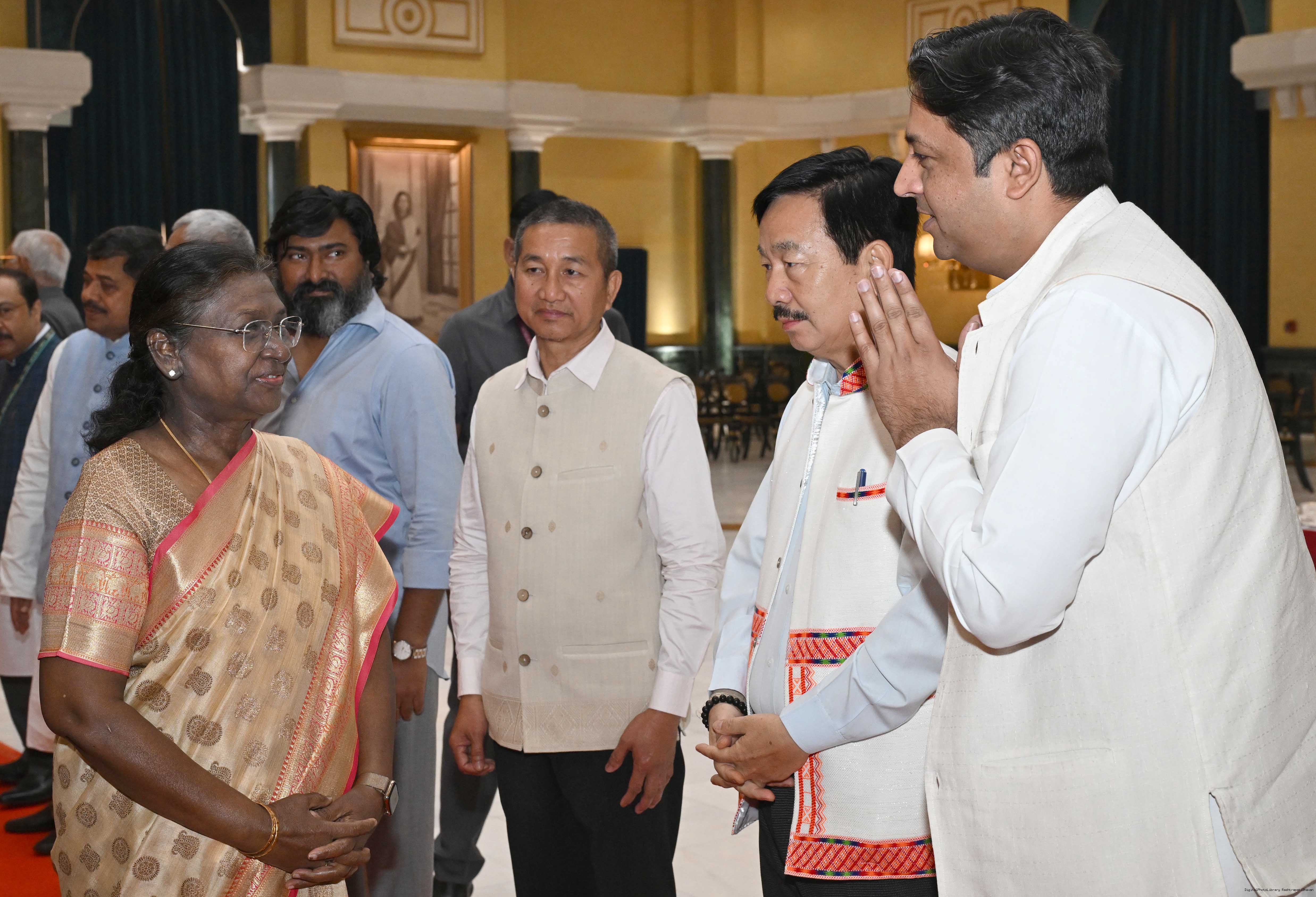 | Caption: | The President of India, Smt. Droupadi Murmu hosted Breakfast of Parliament (Lok Sabha and Rajya Sabha) at Rashtrapati Bhavan in New Delhi on April 4, 2025. |