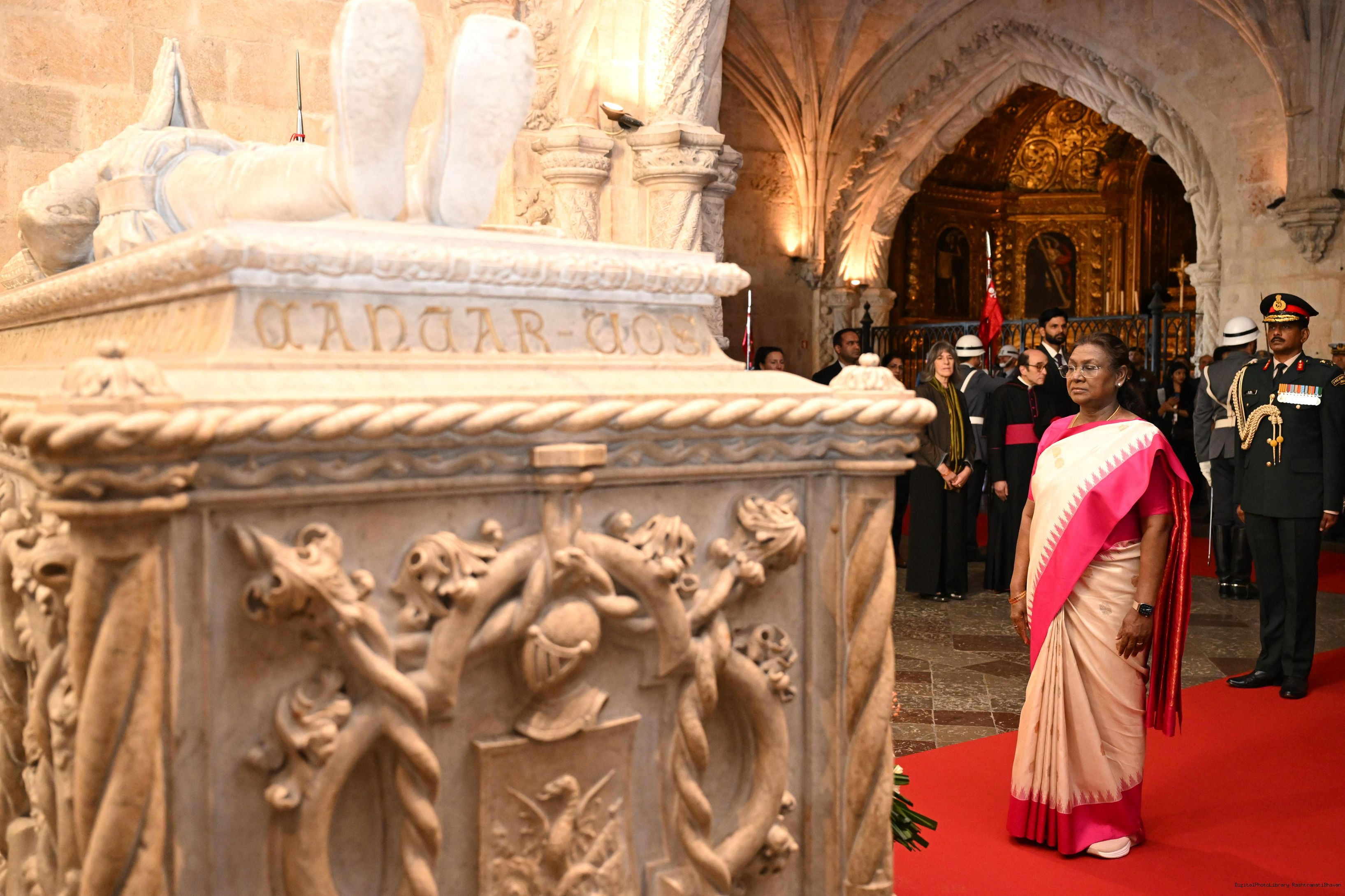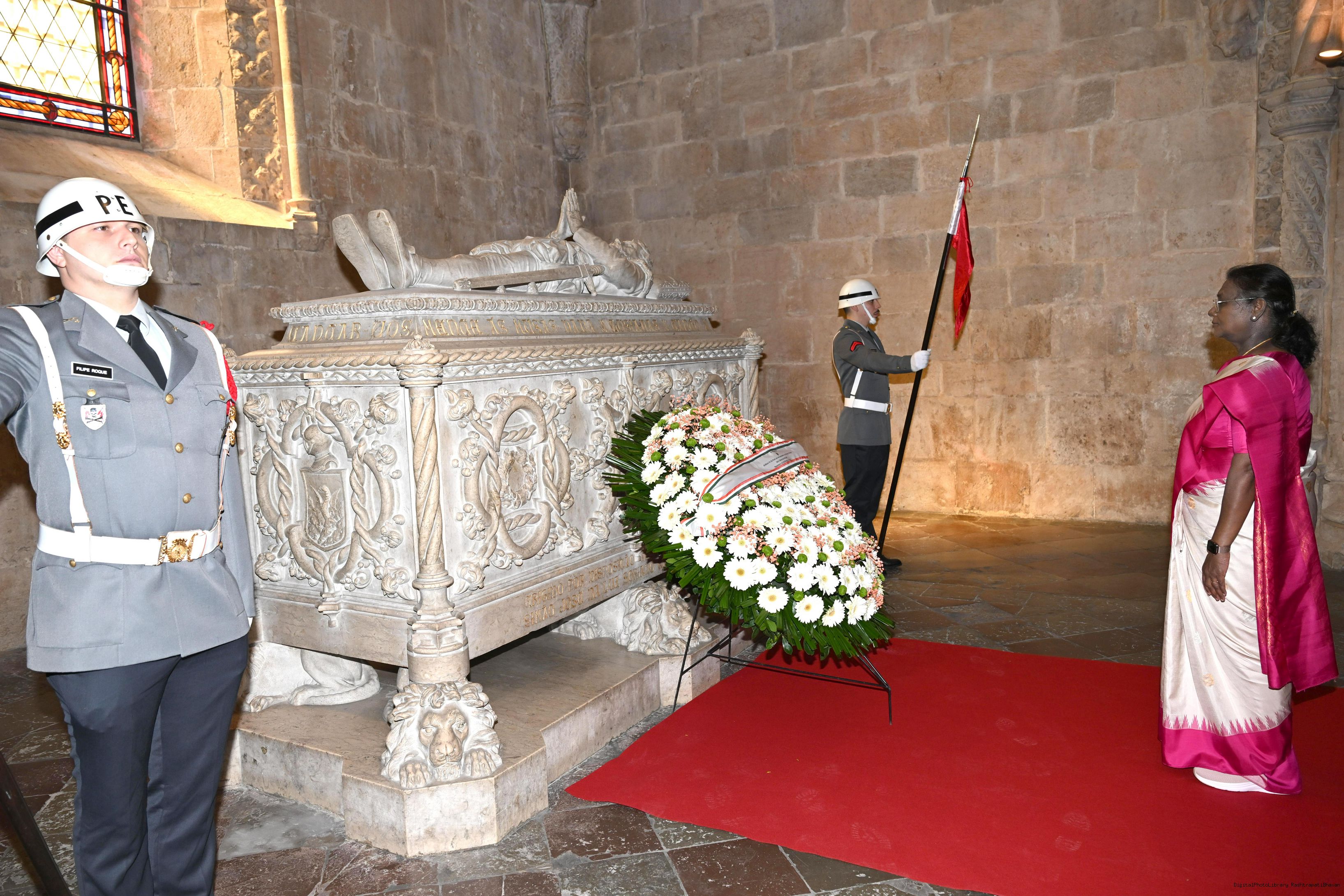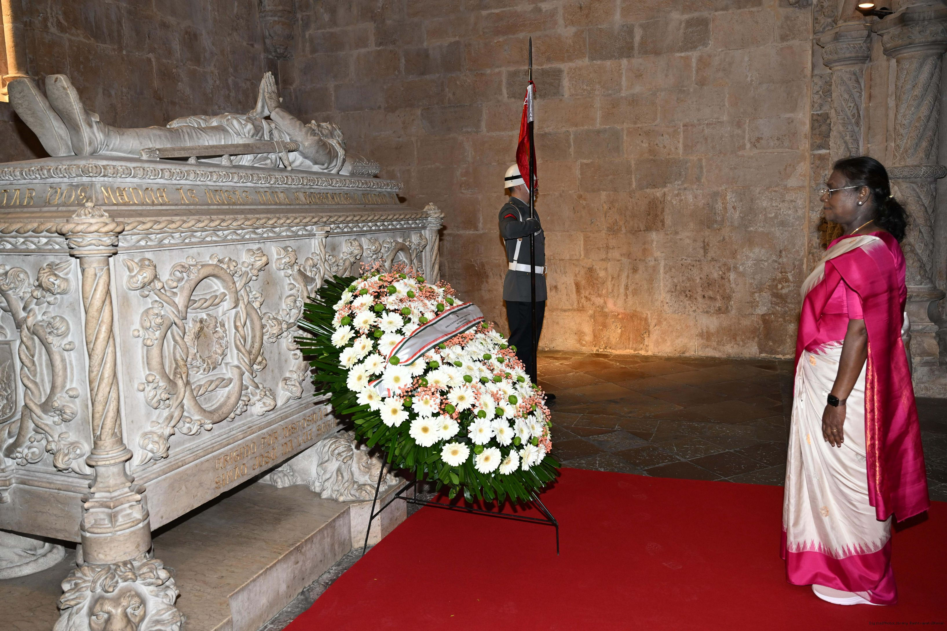 | Caption: | The President of India, Smt. Droupadi Murmu laid wreath at the tomb of Luis Vaz de Camoes – the national poet of Portugal on April 7, 2025. |