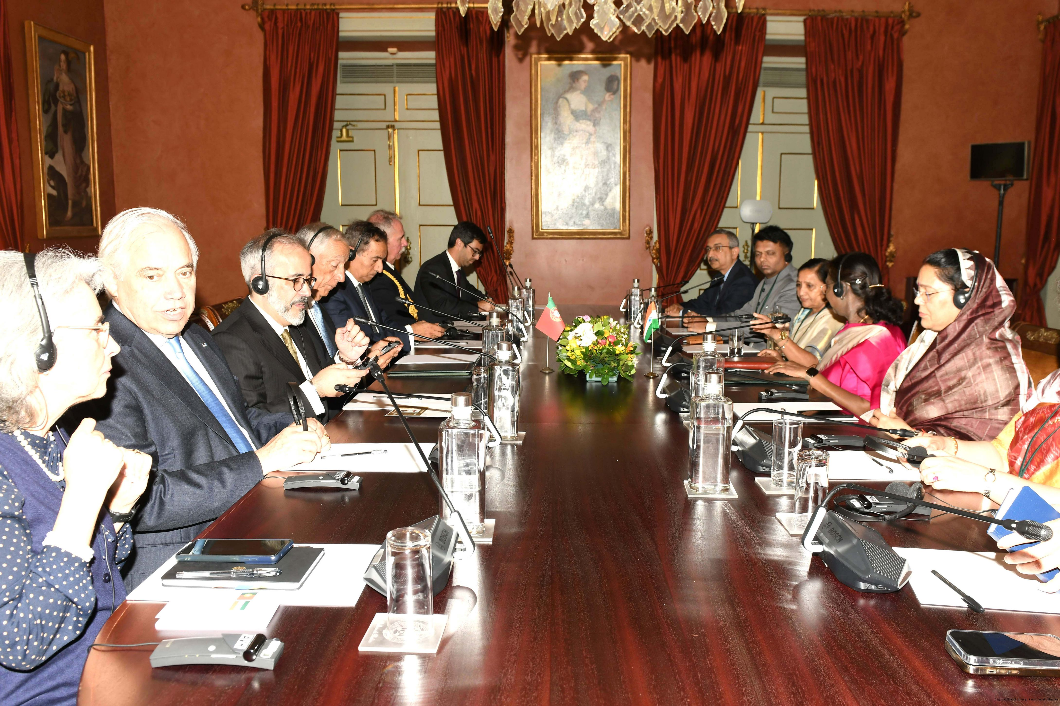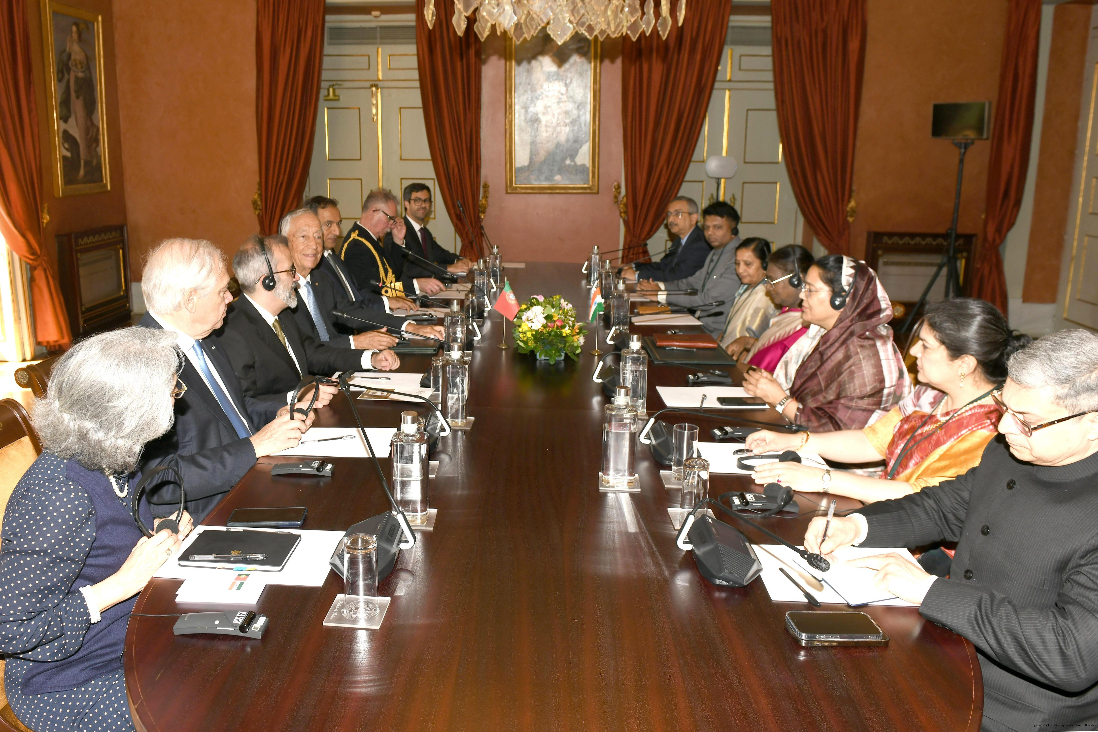 | Caption: | The President of India, Smt. Droupadi Murmu leads the Delegation Level Talks at 'Sala de Jantar', Portugal on April 7, 2025. |