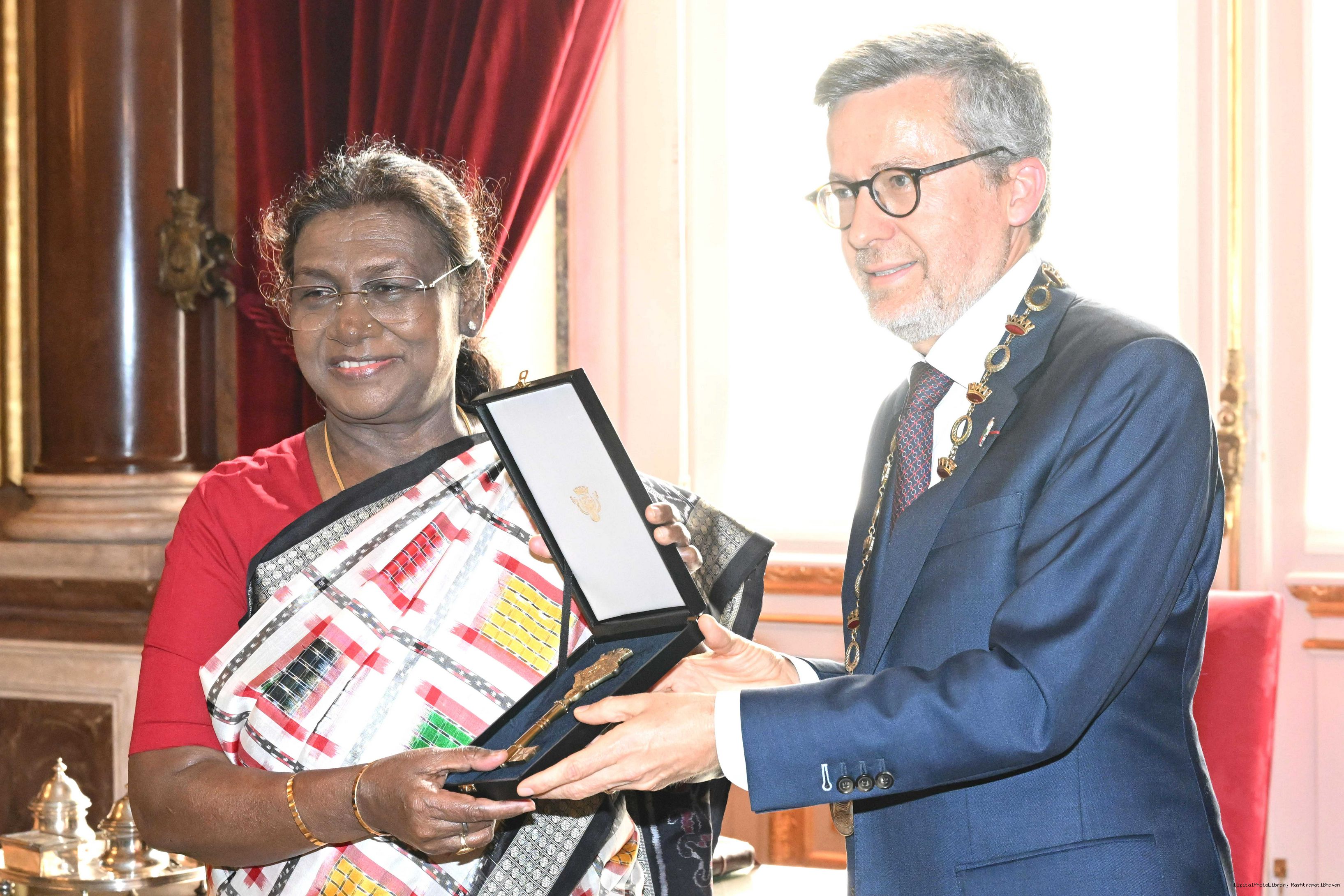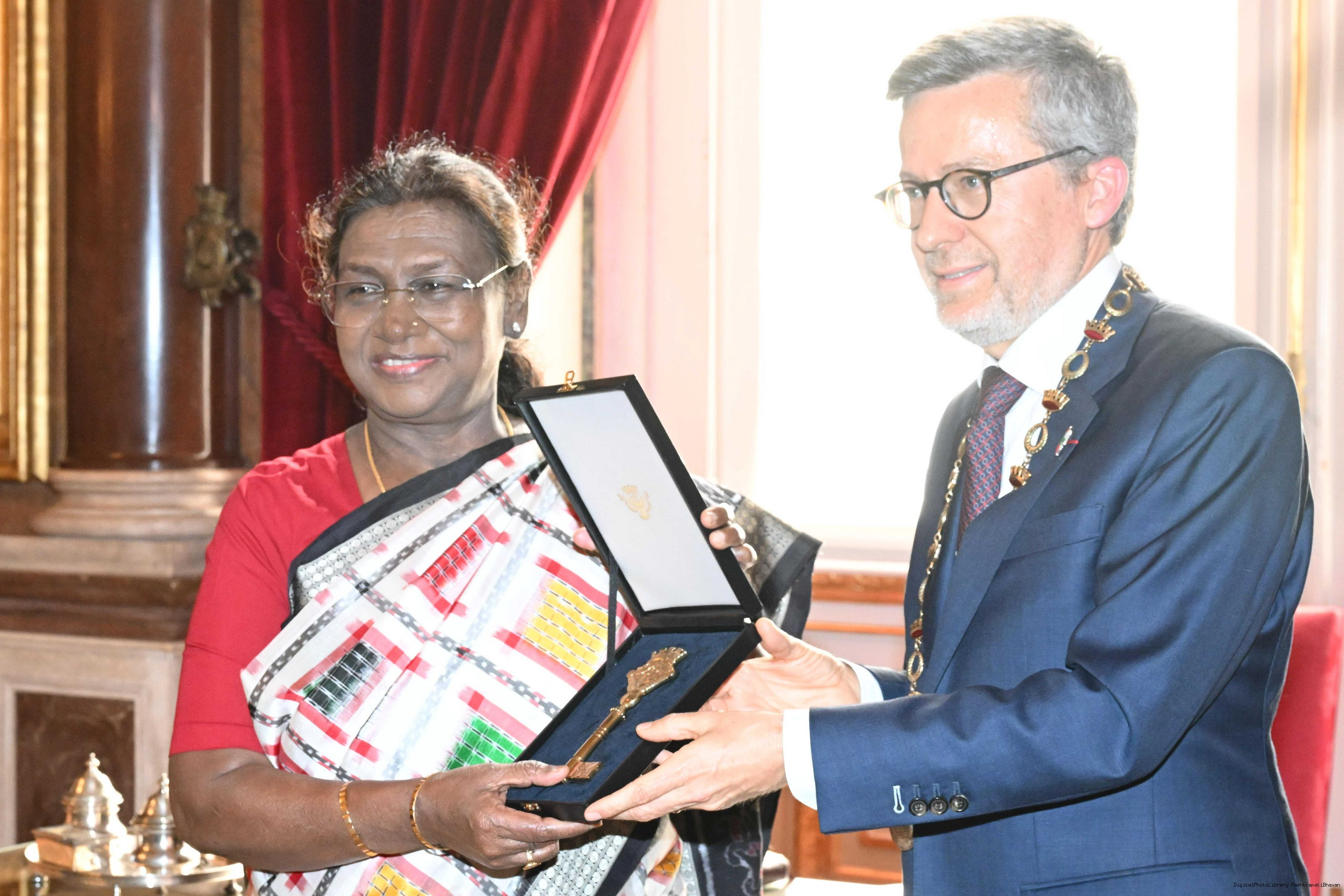 | Caption: | The President of India, Smt Droupadi Murmu received the ‘City Key of Honour’ of Lisbon City from the Mayor of Lisbon at a function held at the City Hall of Lisbon, Portugal on April 7, 2025. Vol-I |