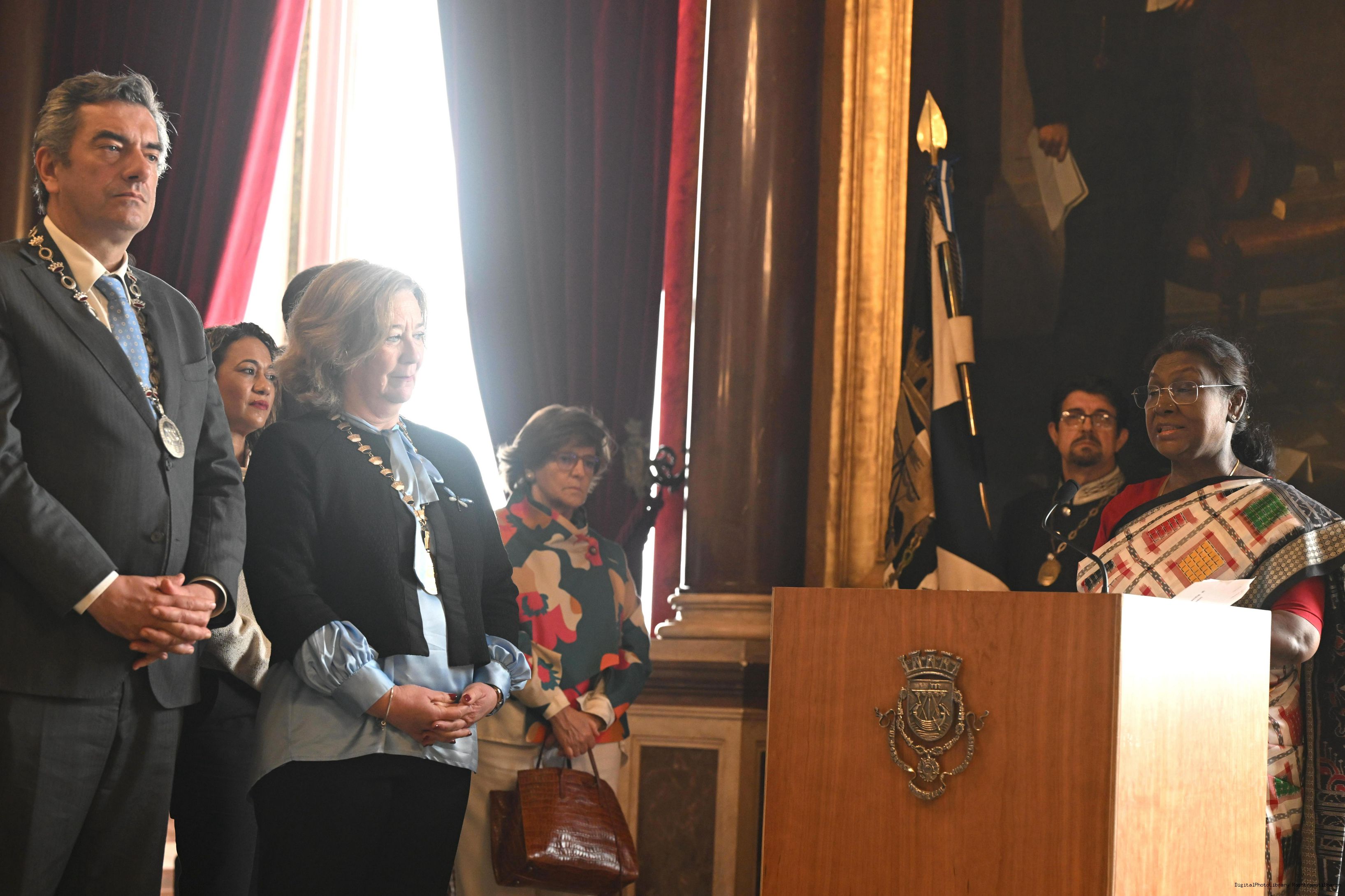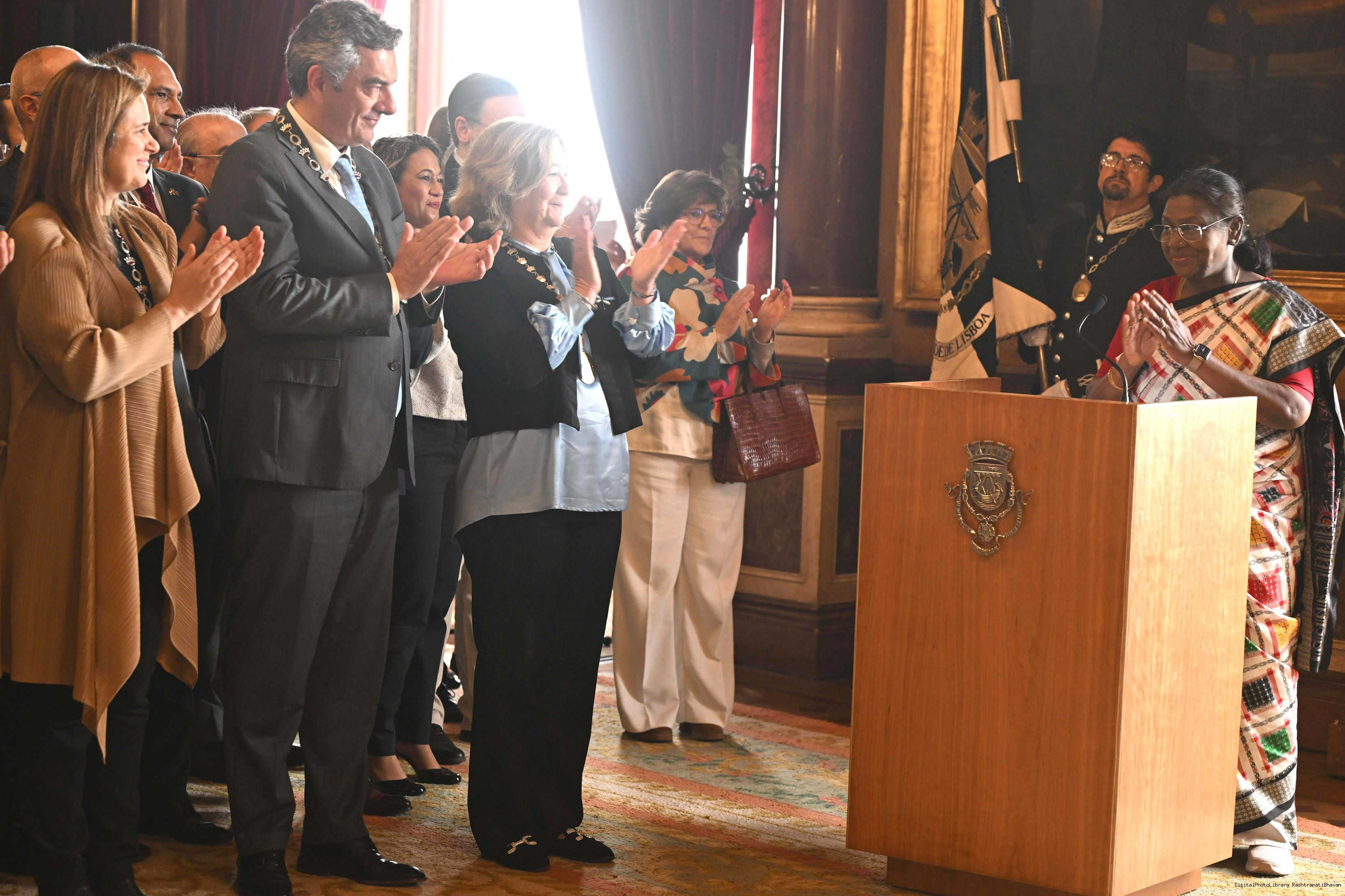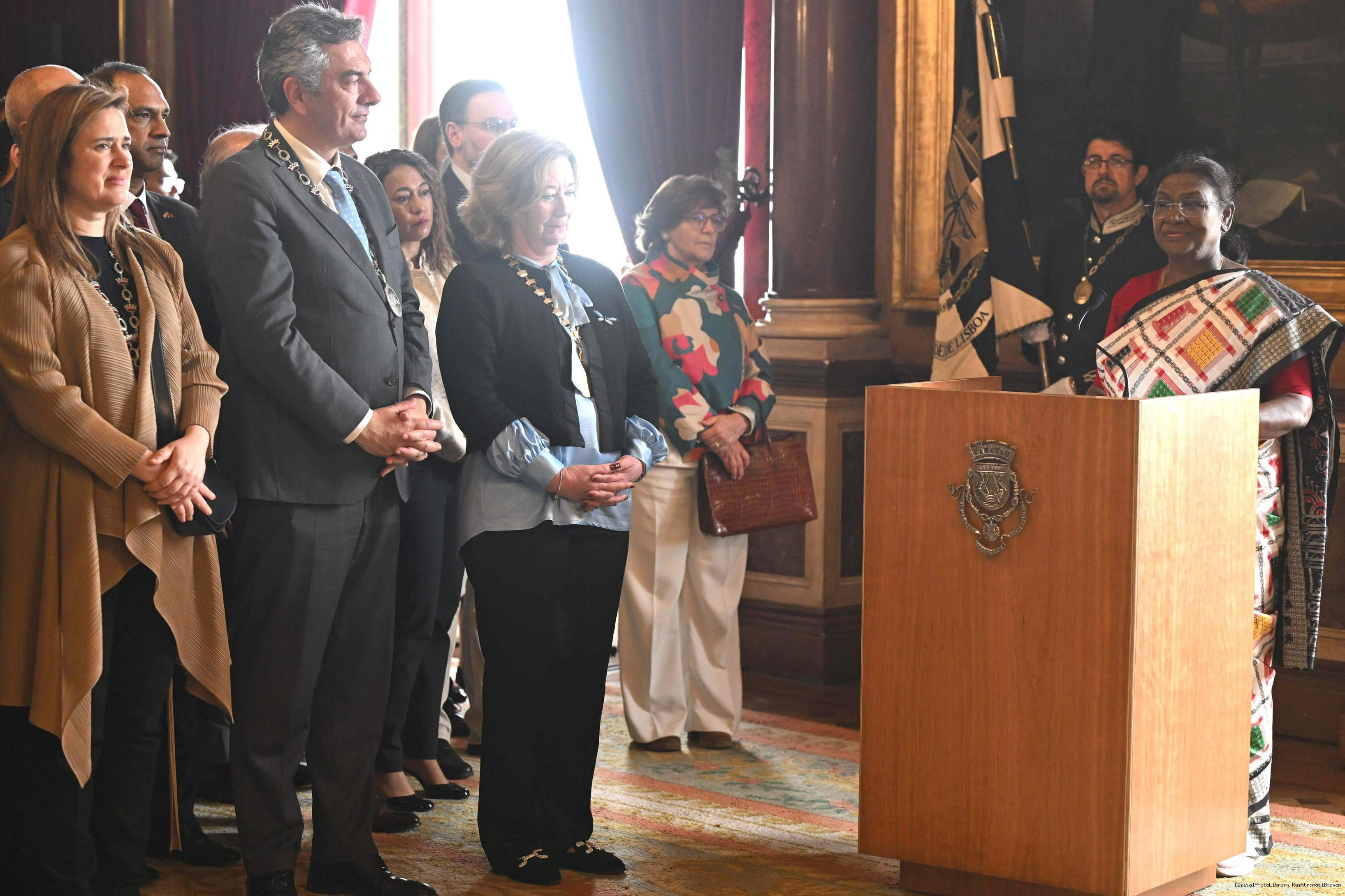 | Caption: | The President of India, Smt Droupadi Murmu received the ‘City Key of Honour’ of Lisbon City from the Mayor of Lisbon at a function held at the City Hall of Lisbon, Portugal on April 7, 2025. Vol-II |