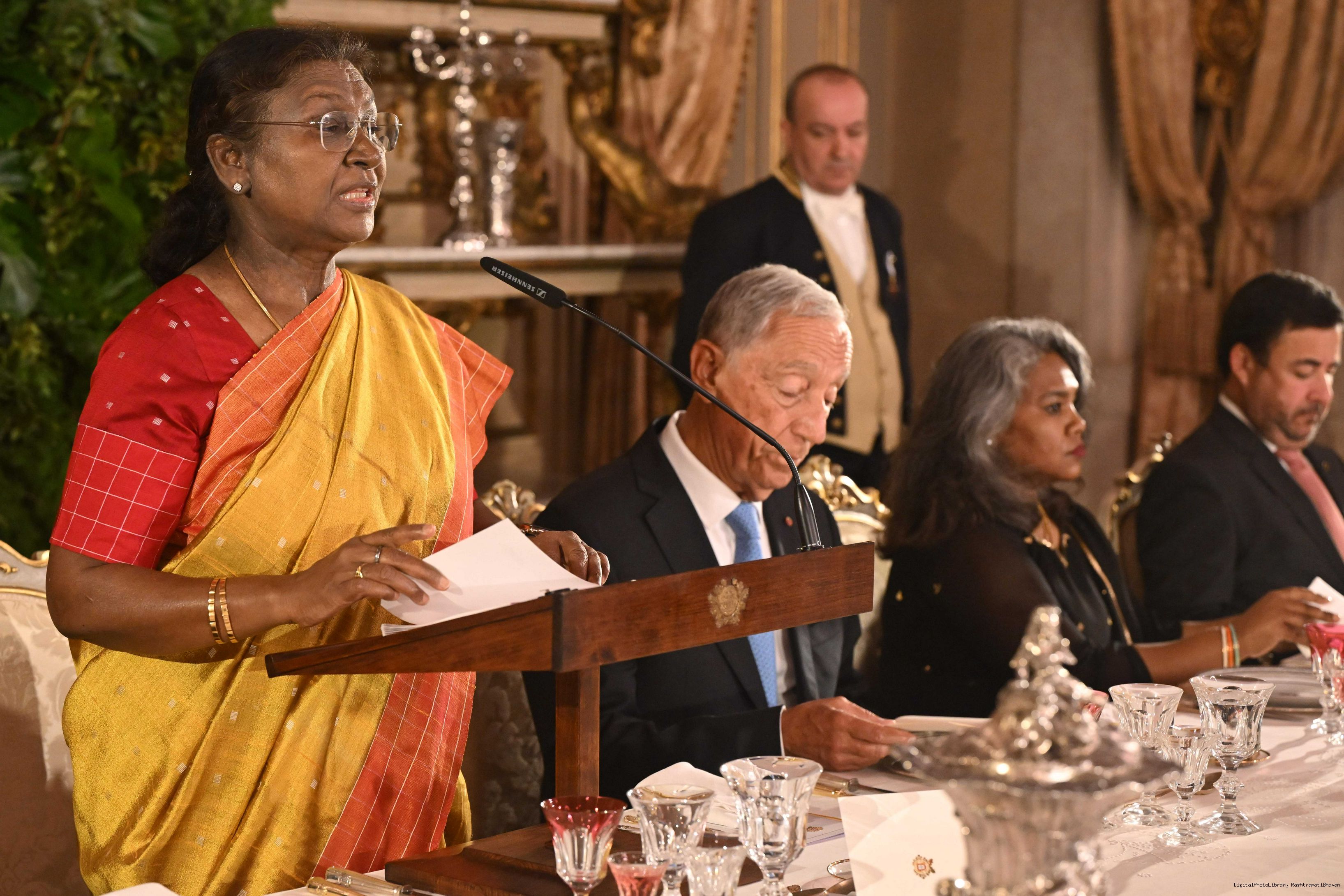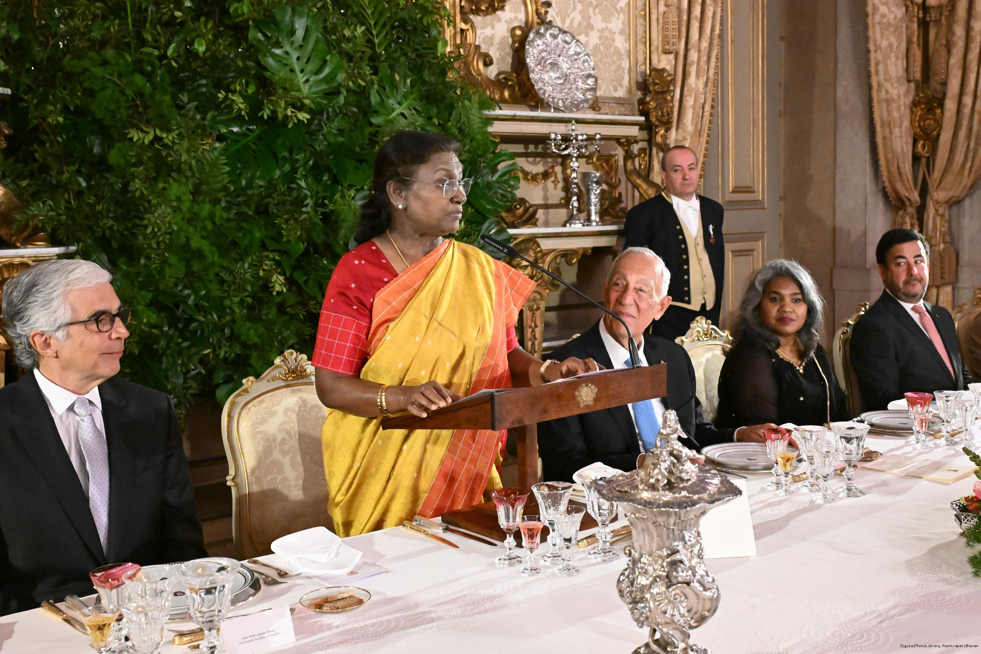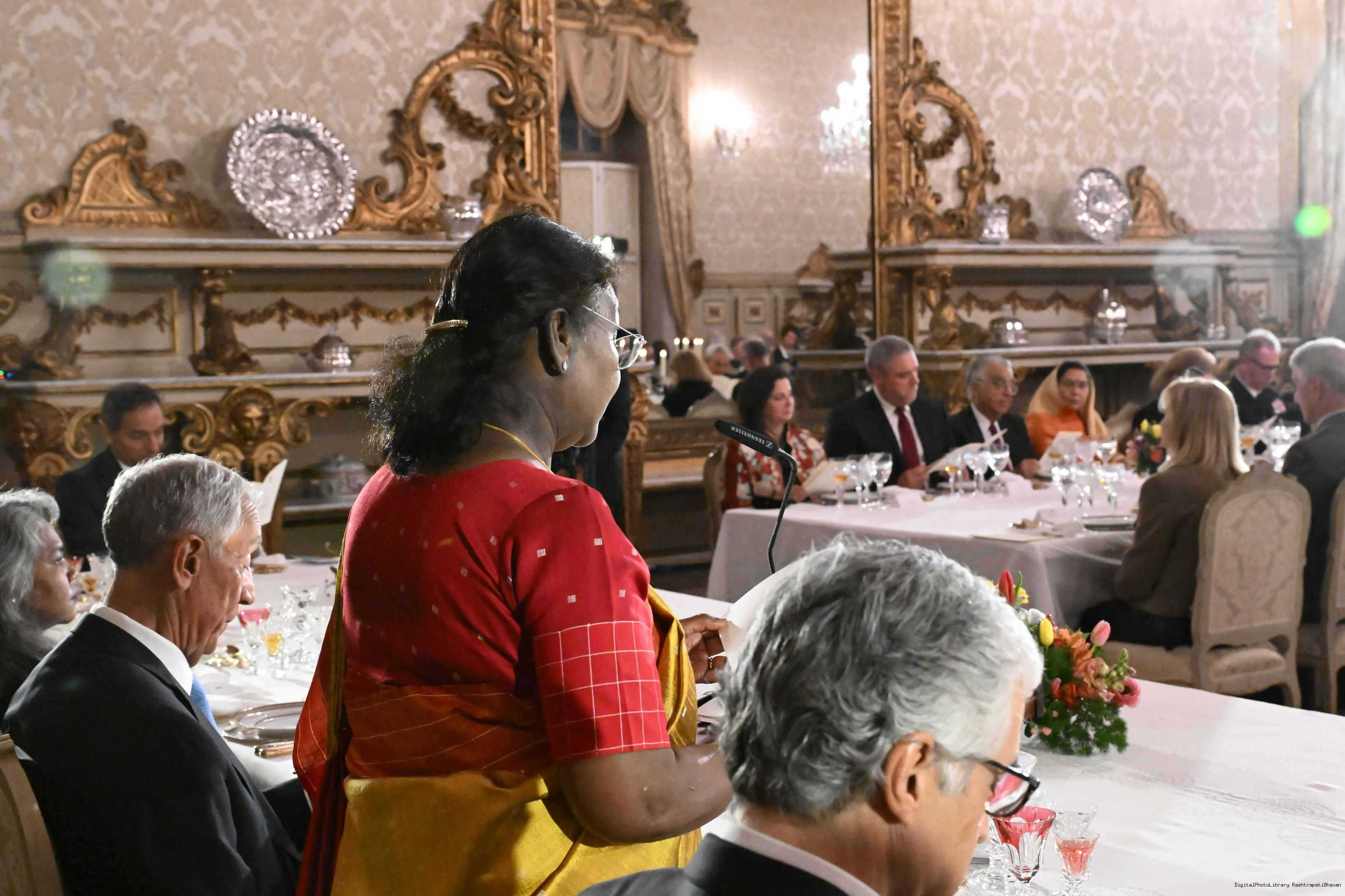 | Caption: | The President of India, Smt Droupadi Murmu attended a banquet hosted in her honour by President Marcelo Rebelo de Sousa of Portugal at Palacio da Ajuda, Lisbon on April 7, 2025. |
