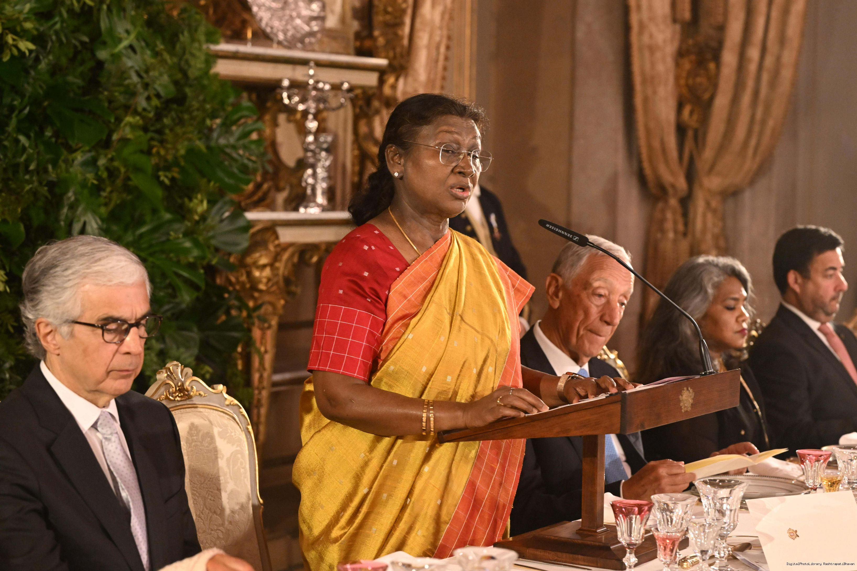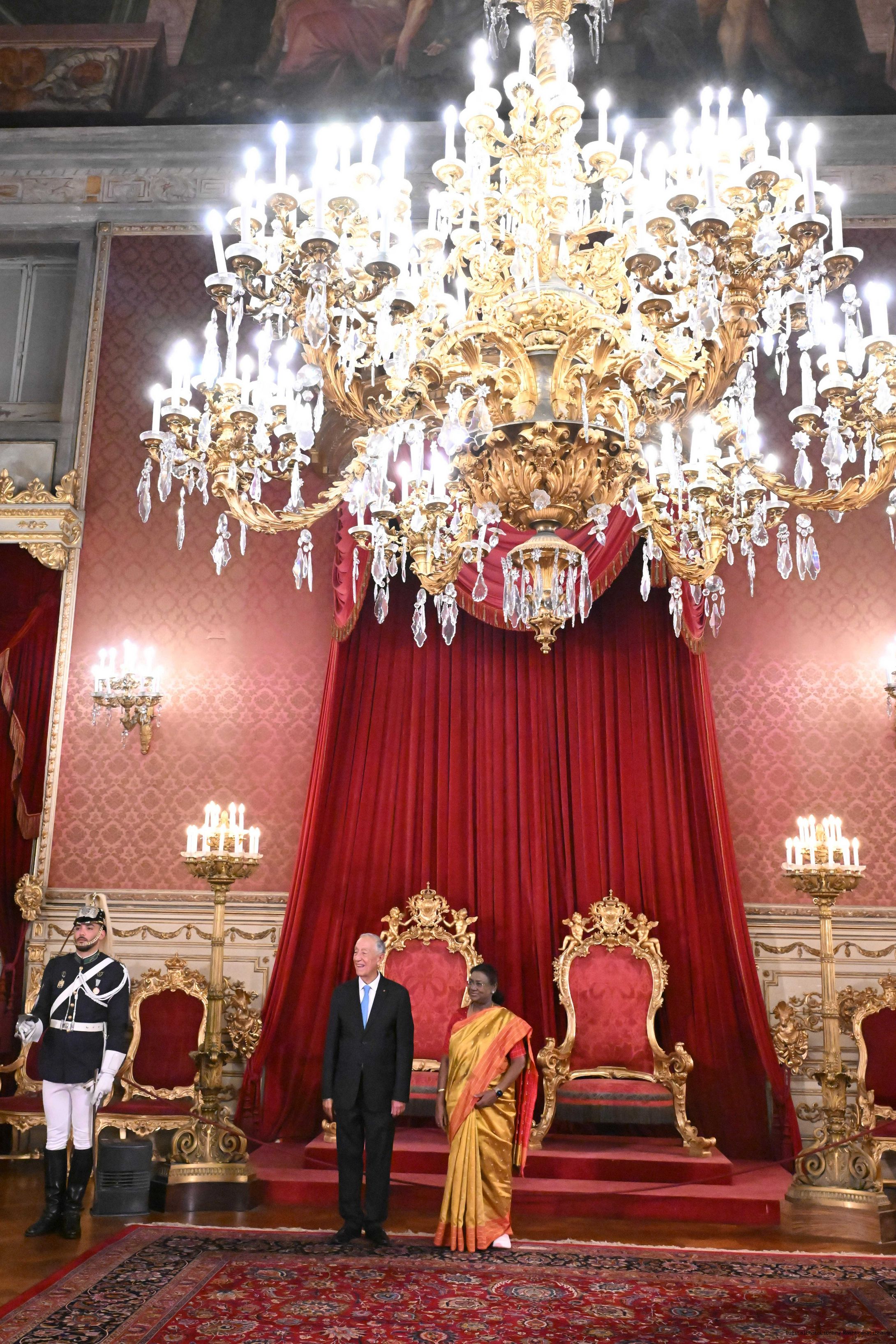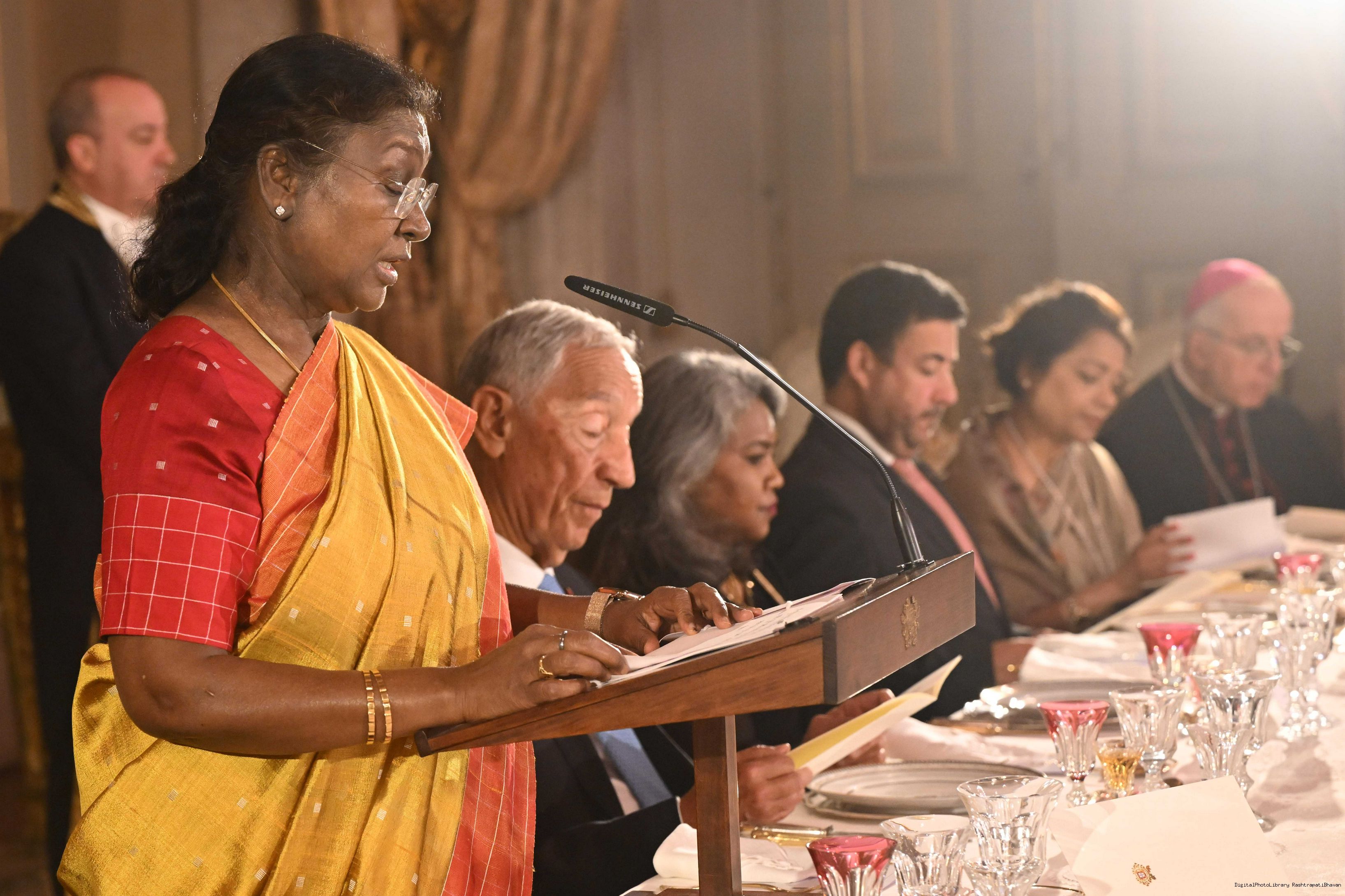 | Caption: | The President of India, Smt Droupadi Murmu attended a banquet hosted in her honour by President Marcelo Rebelo de Sousa of Portugal at Palacio da Ajuda, Lisbon on April 7, 2025. |
