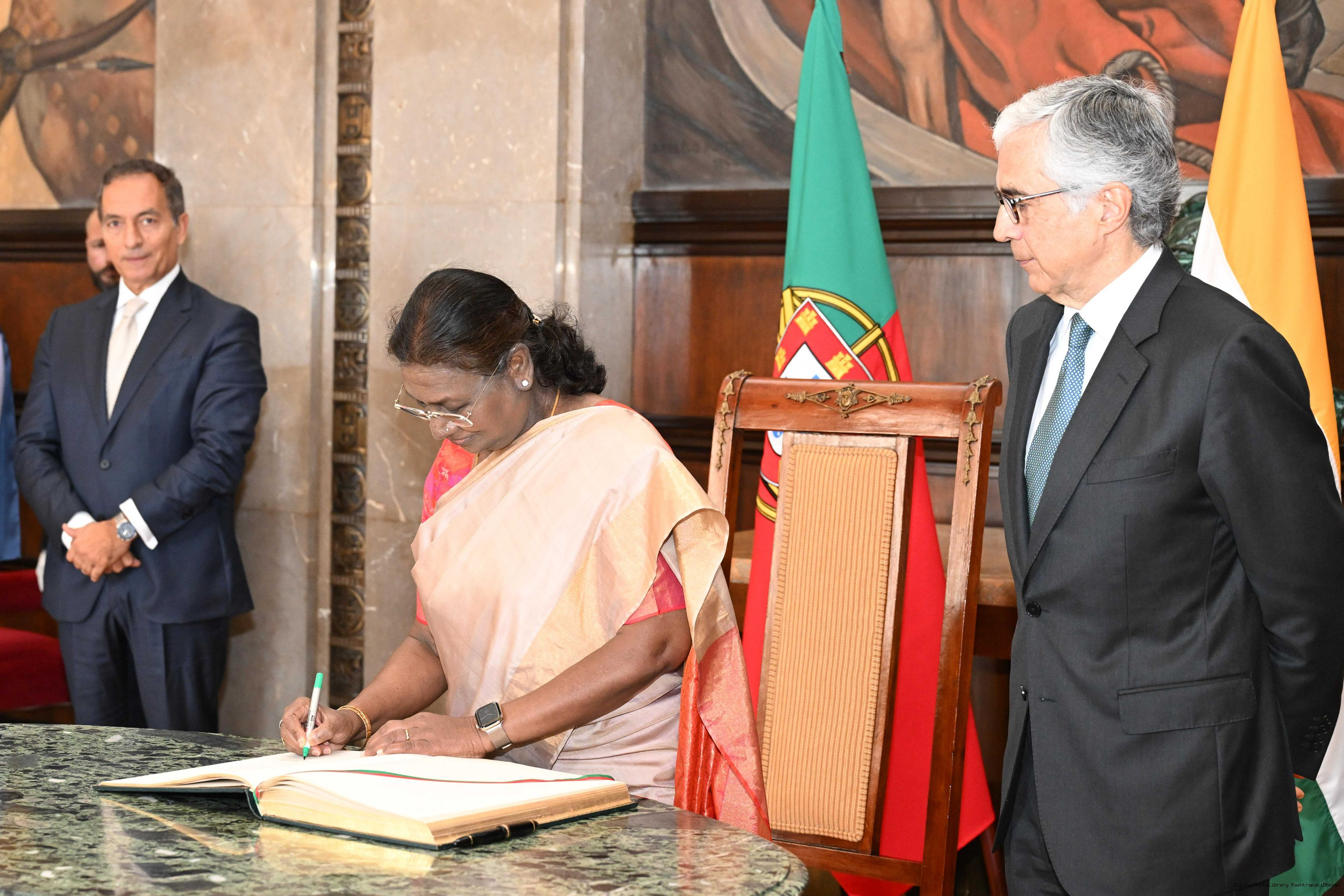 | Caption: | The President of India, Droupadi Murmu Introduced and Signing of Book of Honour at Assembleia Da Republica Portugal on April 8, 2025. |