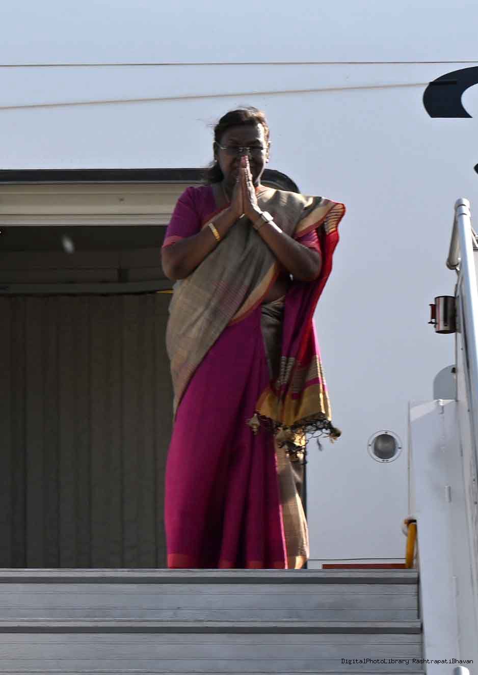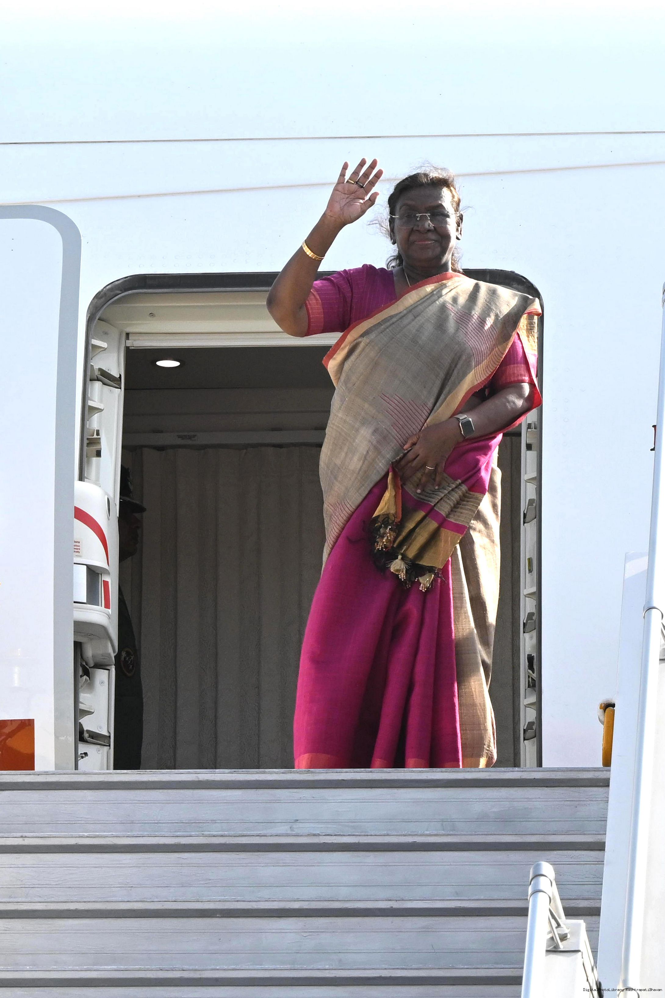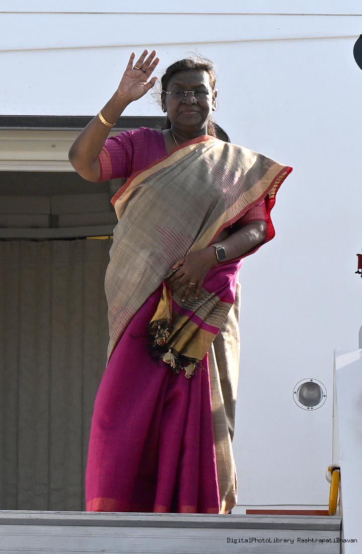| Caption: | The President of India, Smt. Droupadi Murmu departed for historic State visits to Portugal and the Slovak Republic in New Delhi on April 6, 2025. |