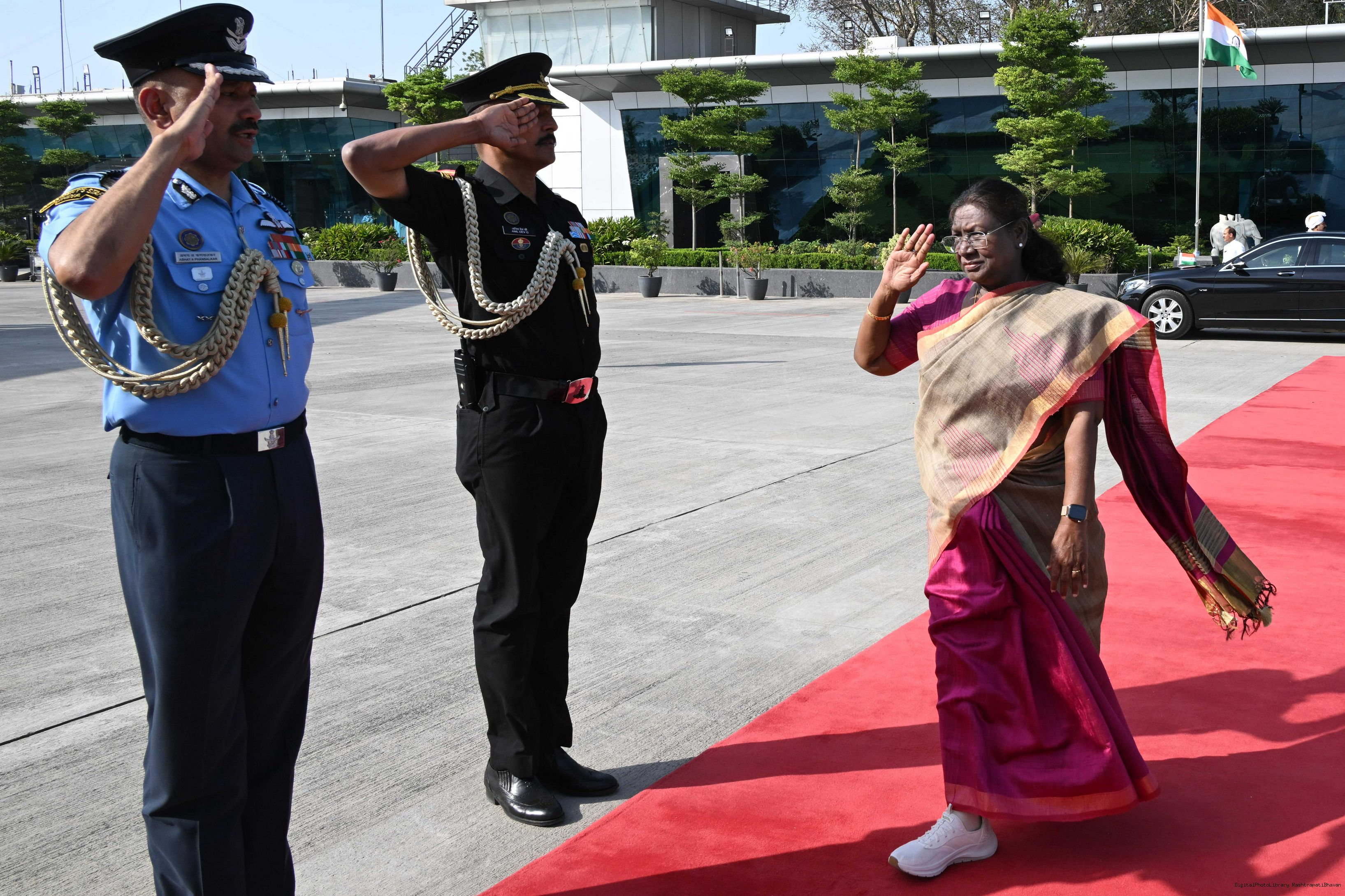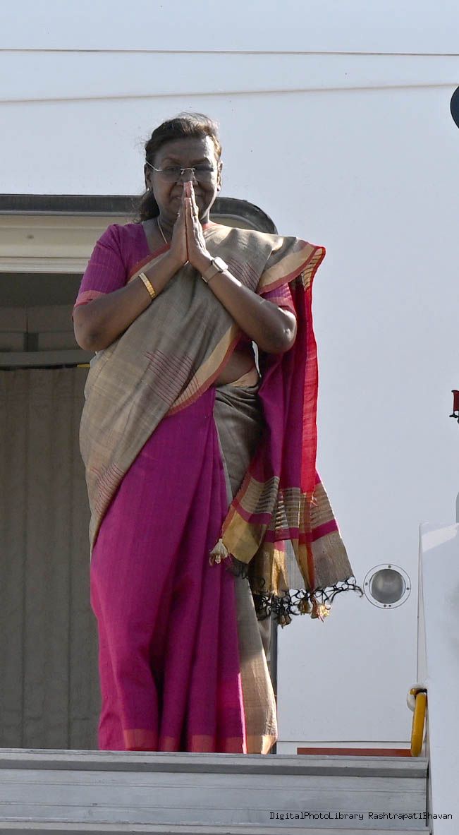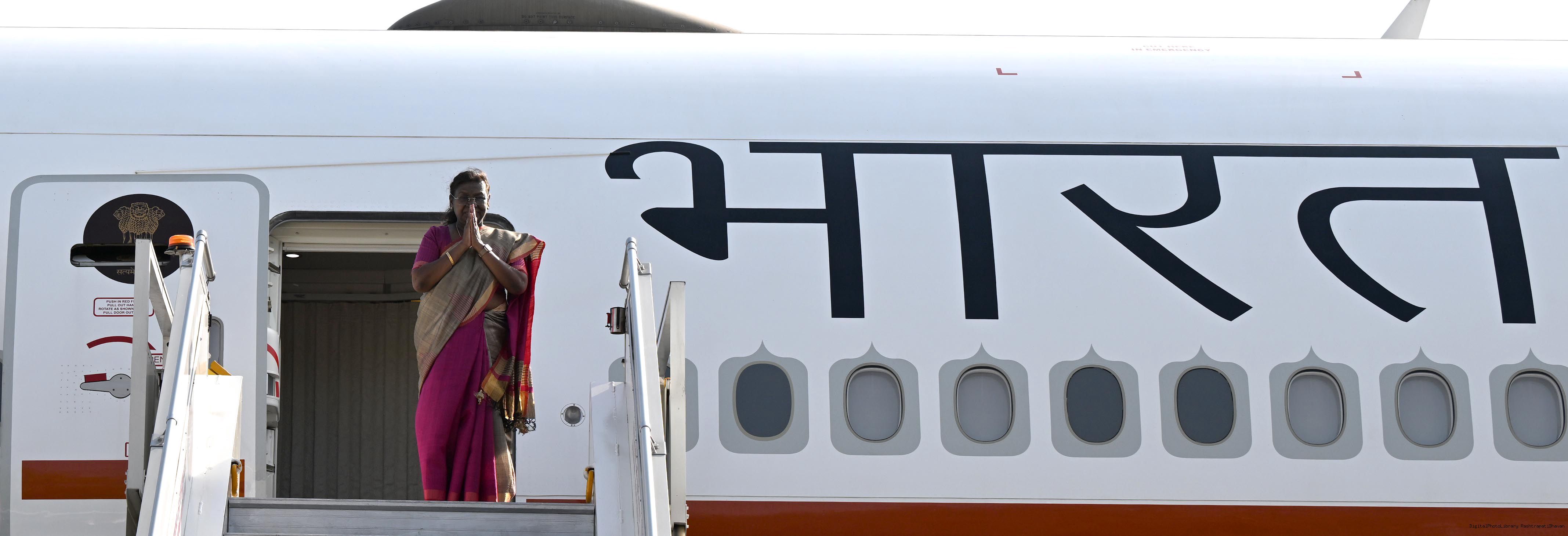 | Caption: | The President of India, Smt. Droupadi Murmu departed for historic State visits to Portugal and the Slovak Republic in New Delhi on April 6, 2025. |