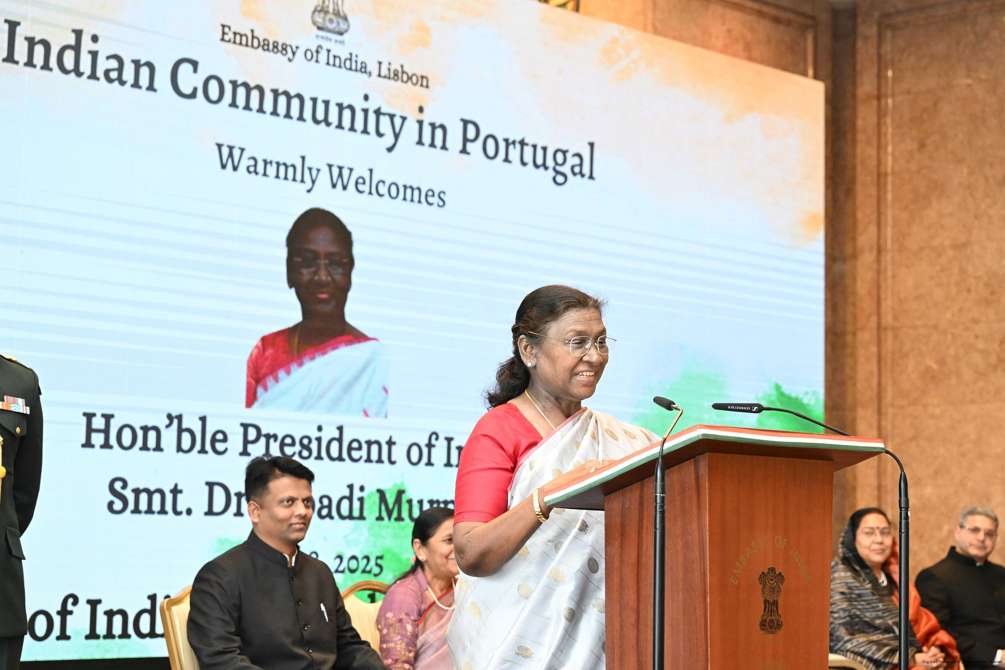 | Caption: | The President of India, Smt.Droupadi Murmu addressed the members of Indian Community at a Reception hosted by the Ambassador of India to Portugal at Lisbon on April 8, 2025. Vol-I |