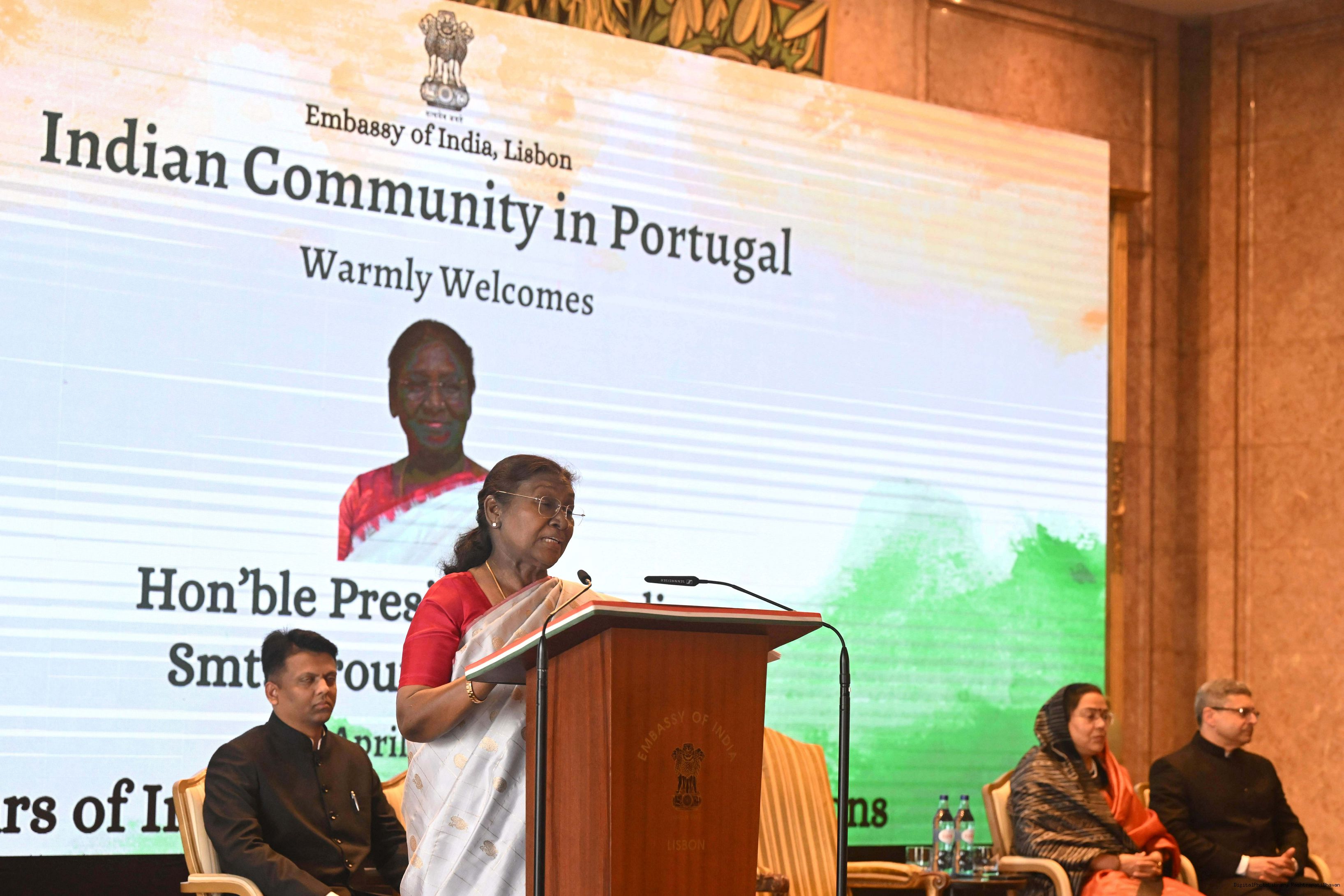 | Caption: | The President of India, Smt.Droupadi Murmu addressed the members of Indian Community at a Reception hosted by the Ambassador of India to Portugal at Lisbon on April 8, 2025. Vol-II |