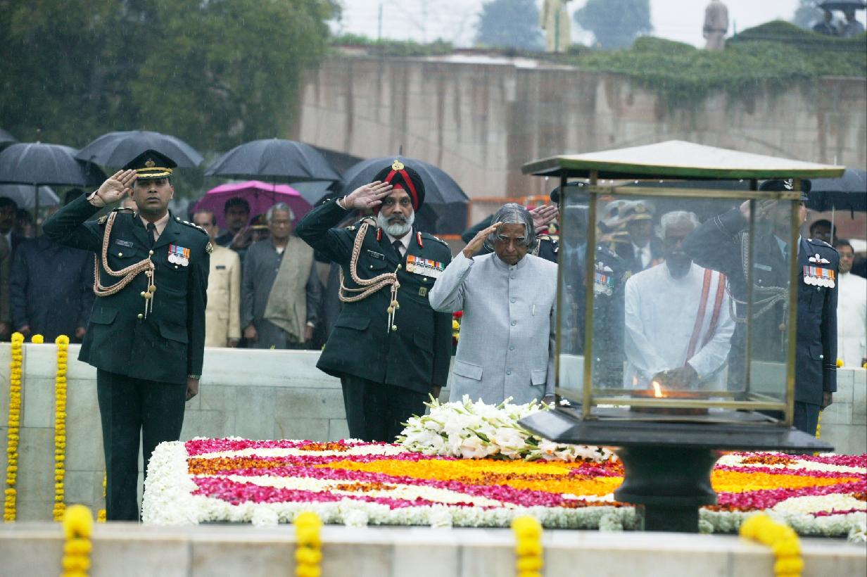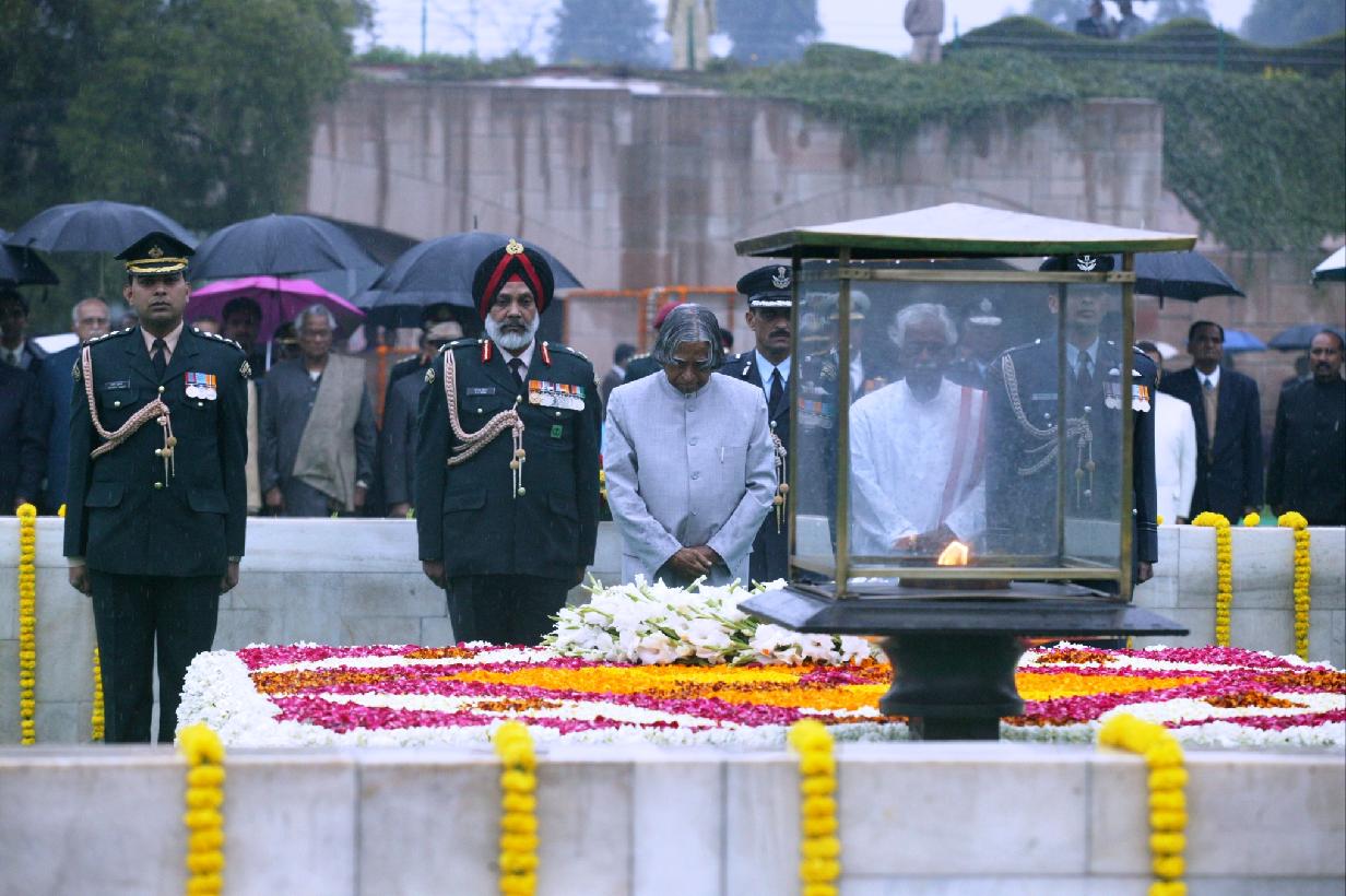 | Caption: | The President of India, Dr A P J Abdul Kalam paying homage to Mahatma Gandhi and also attending the Memorial Service on Martyr's Day at Rajghat in New Delhi on Jan 30, 2004 |