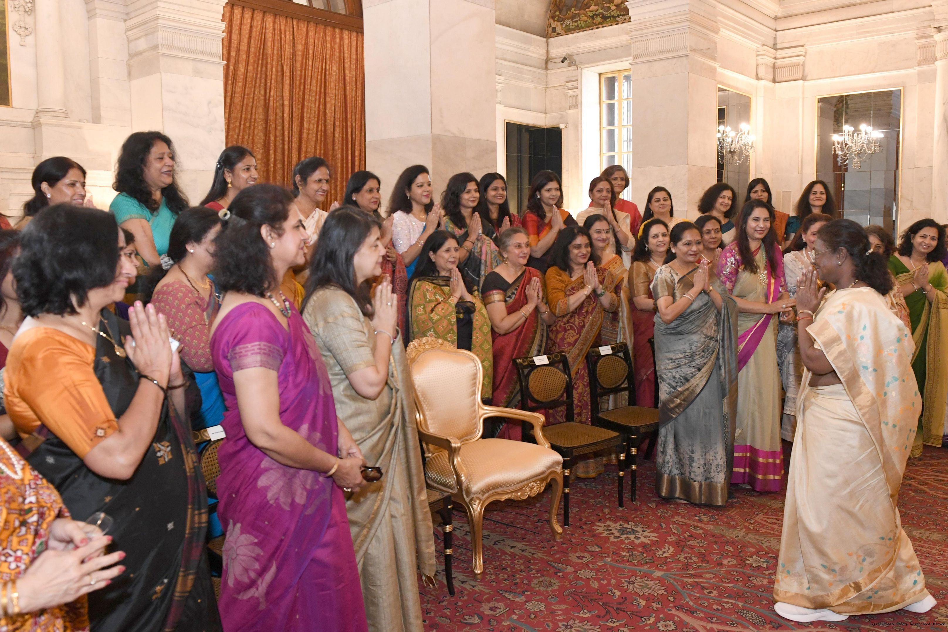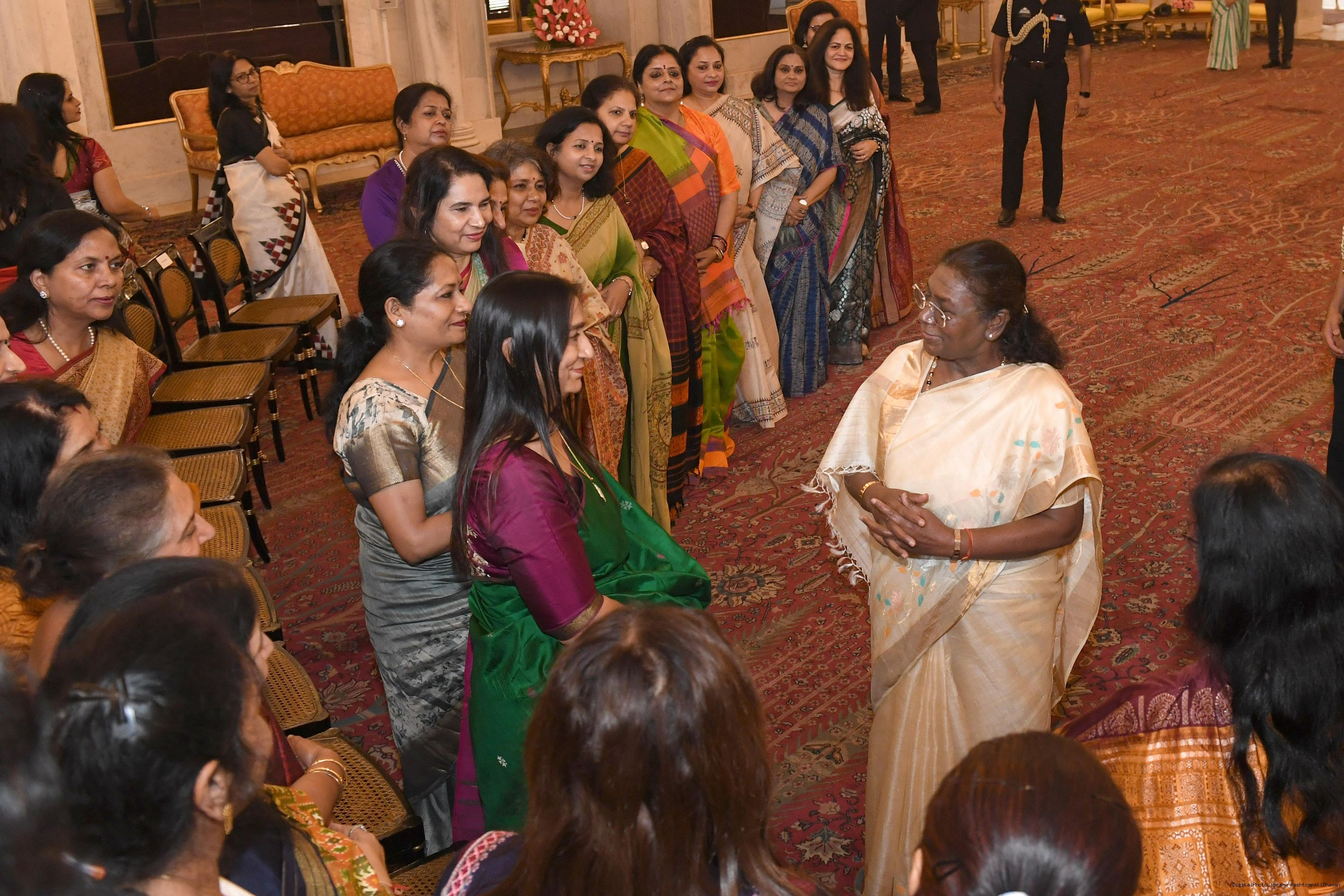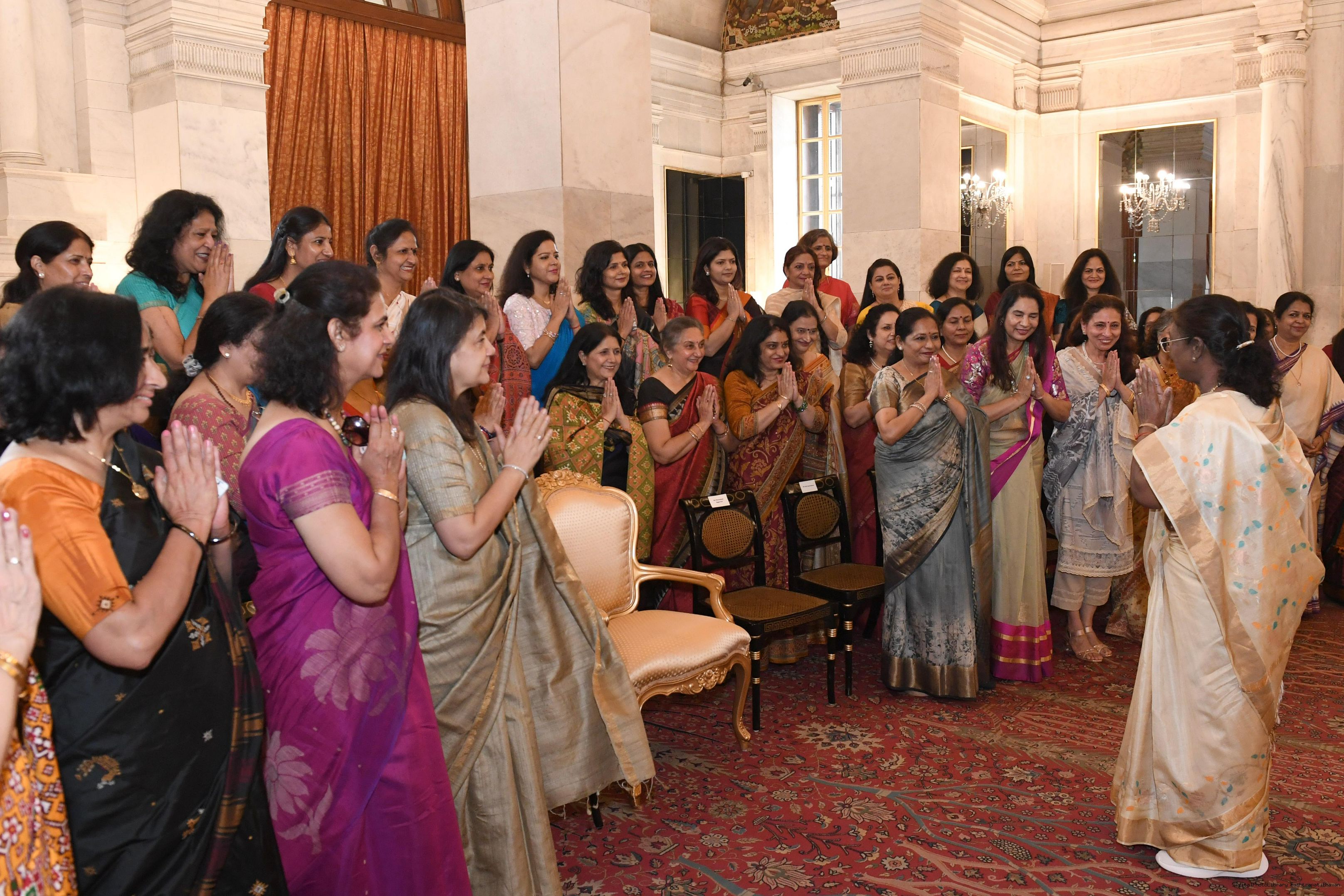 | Caption: | Smt. Meenakshi Aggarwal, Secretary, Manasvini along with 80 other members meeting with the President of India Smt. Droupadi Murmu at Rashtrapati Bhavan on November 5, 2024. |