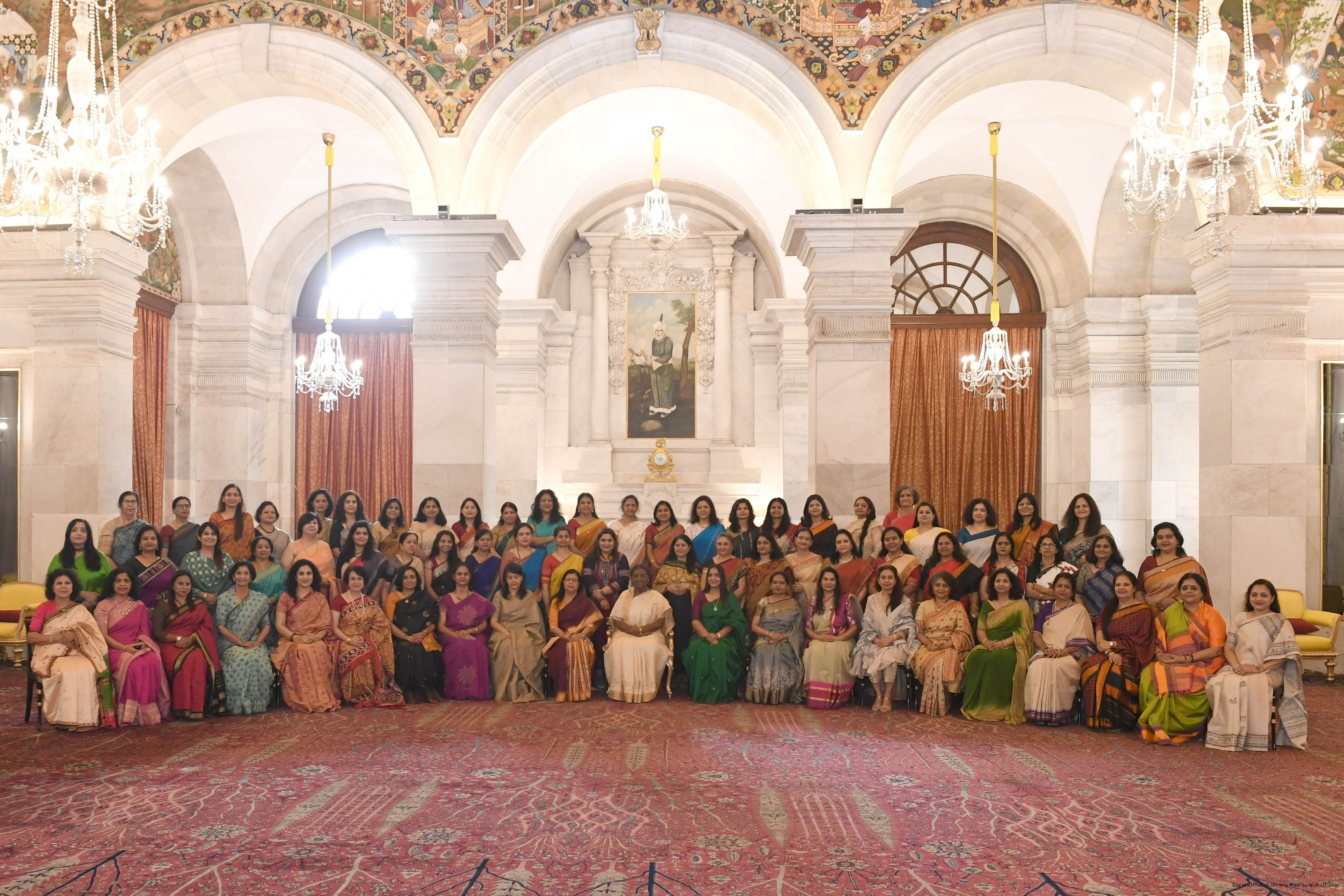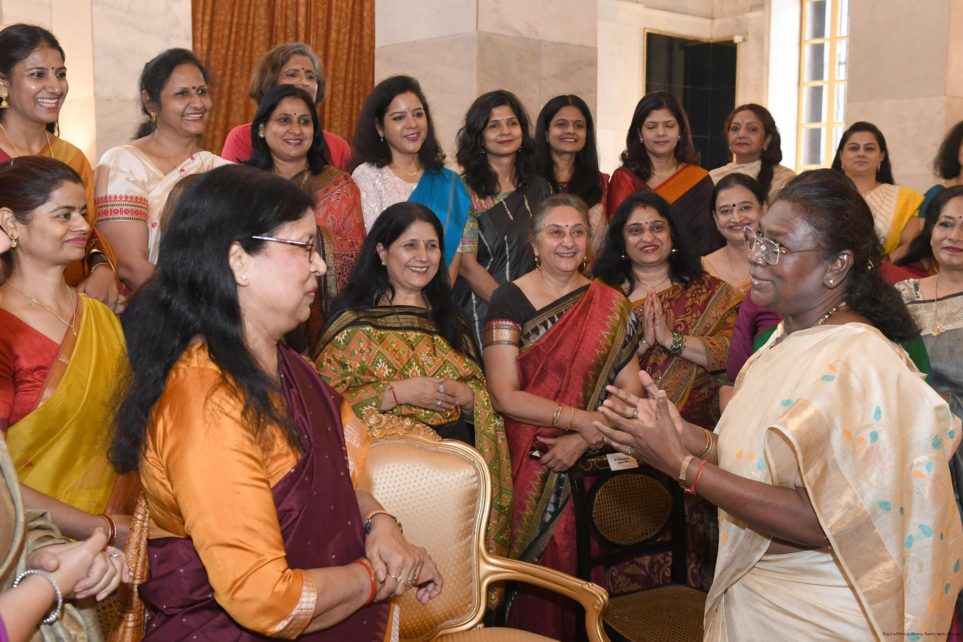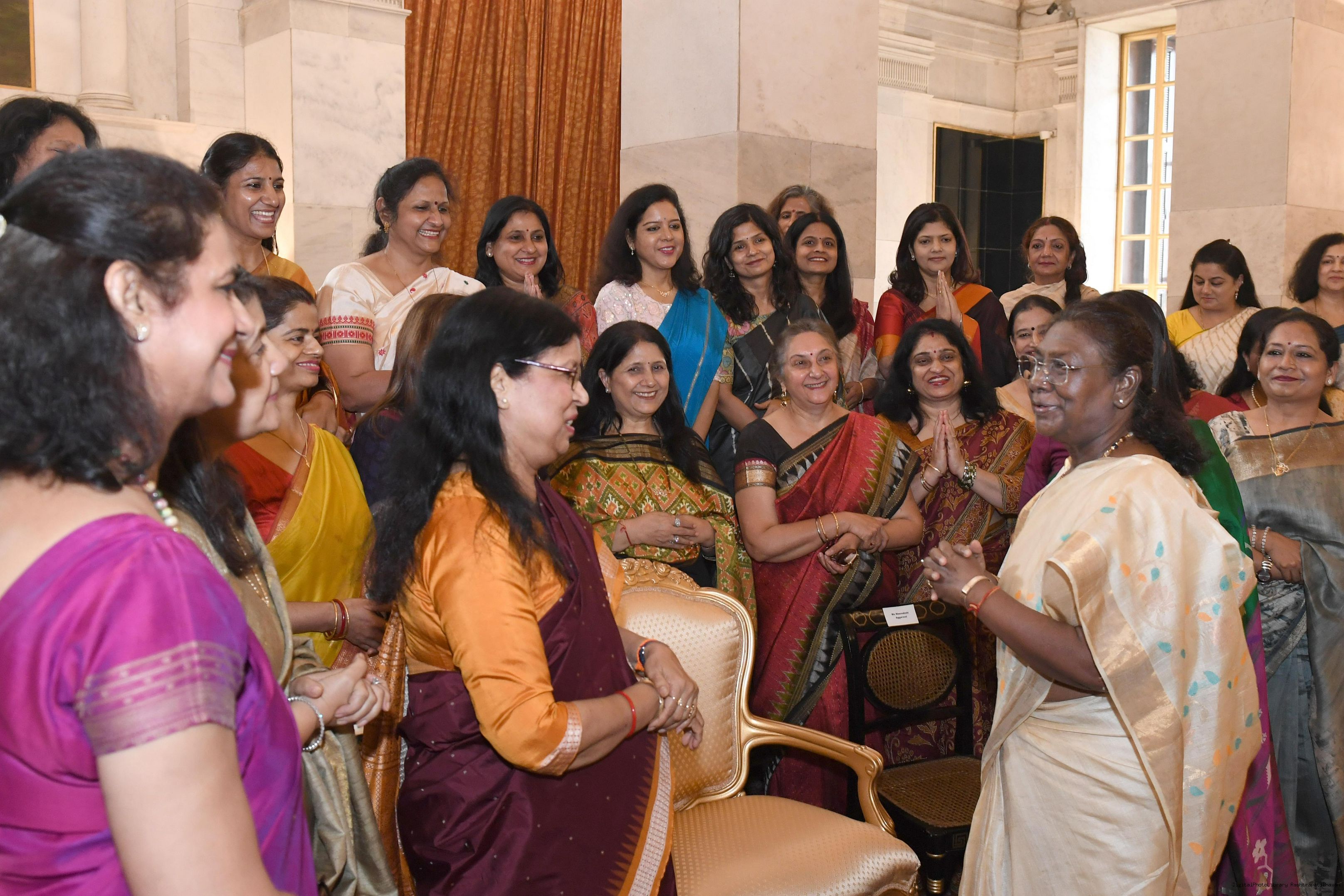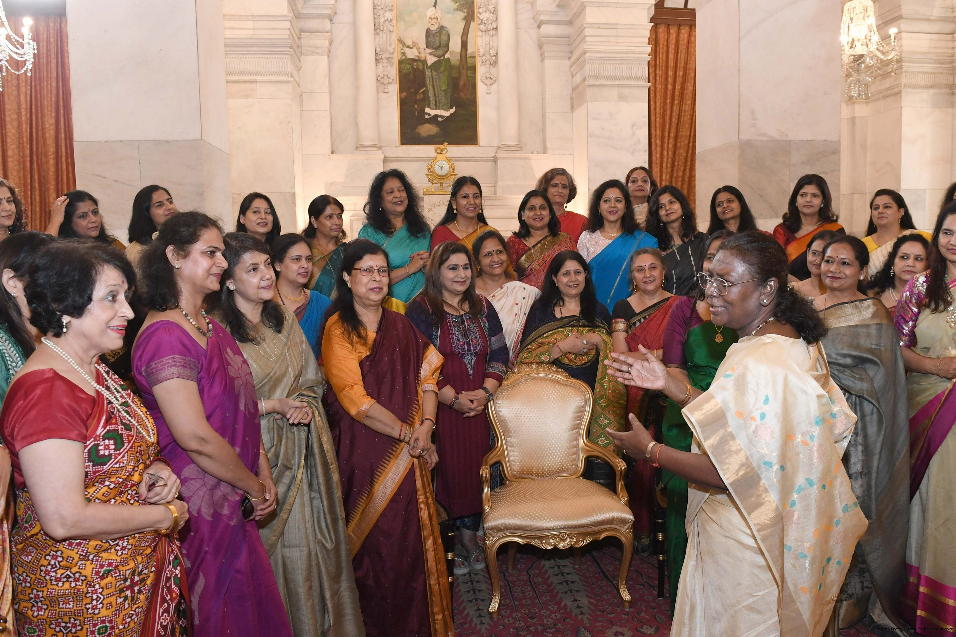 | Caption: | Smt. Meenakshi Aggarwal, Secretary, Manasvini along with 80 other members meeting with the President of India Smt. Droupadi Murmu at Rashtrapati Bhavan on November 5, 2024. |