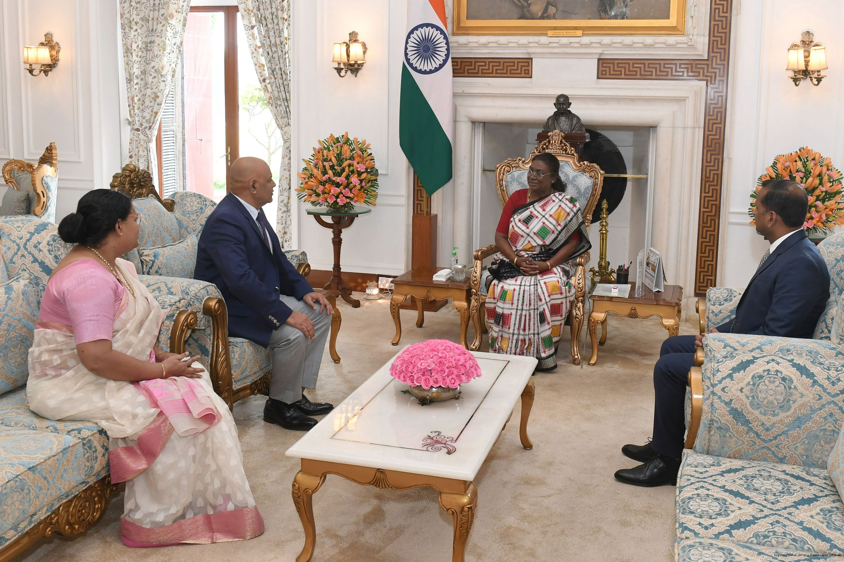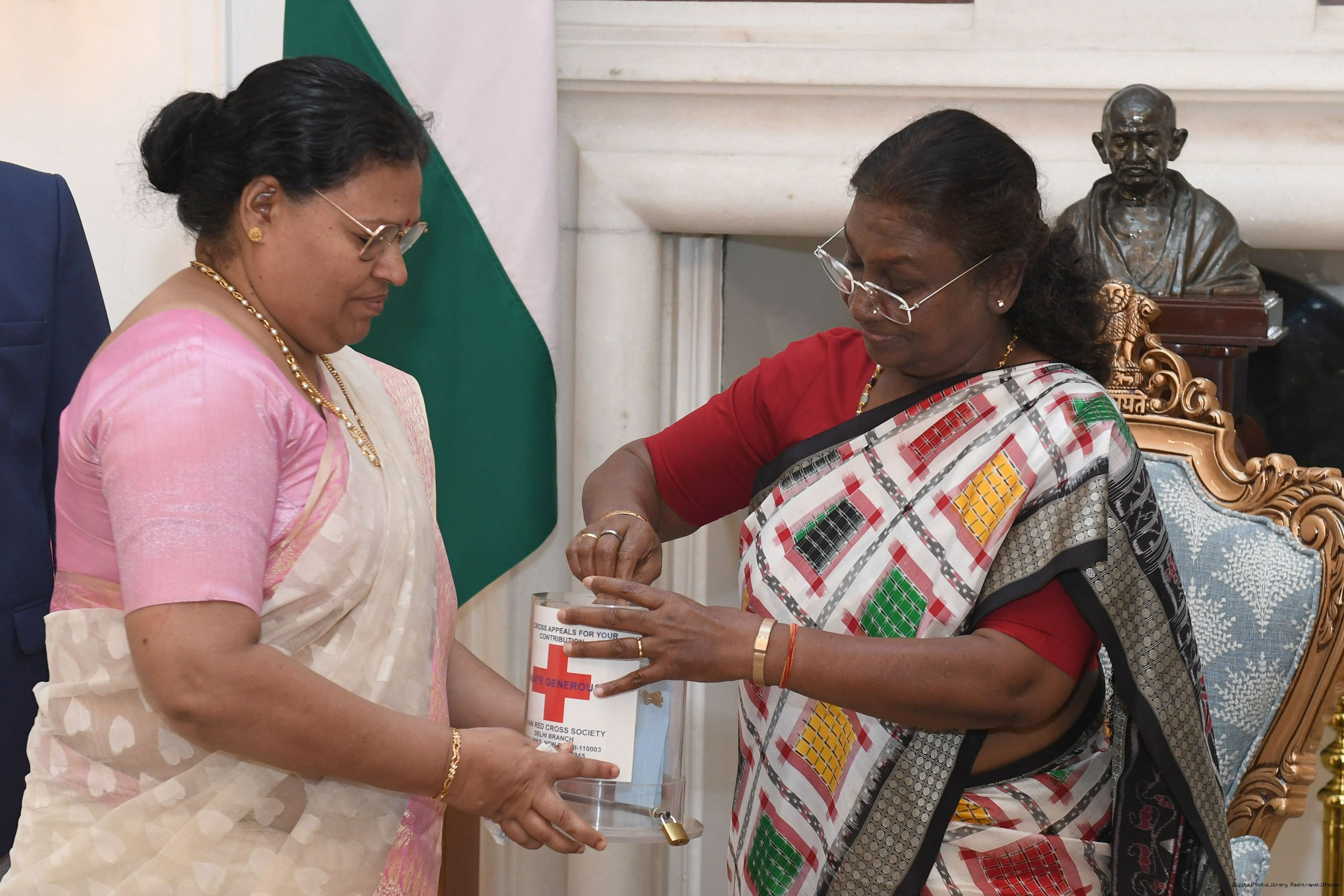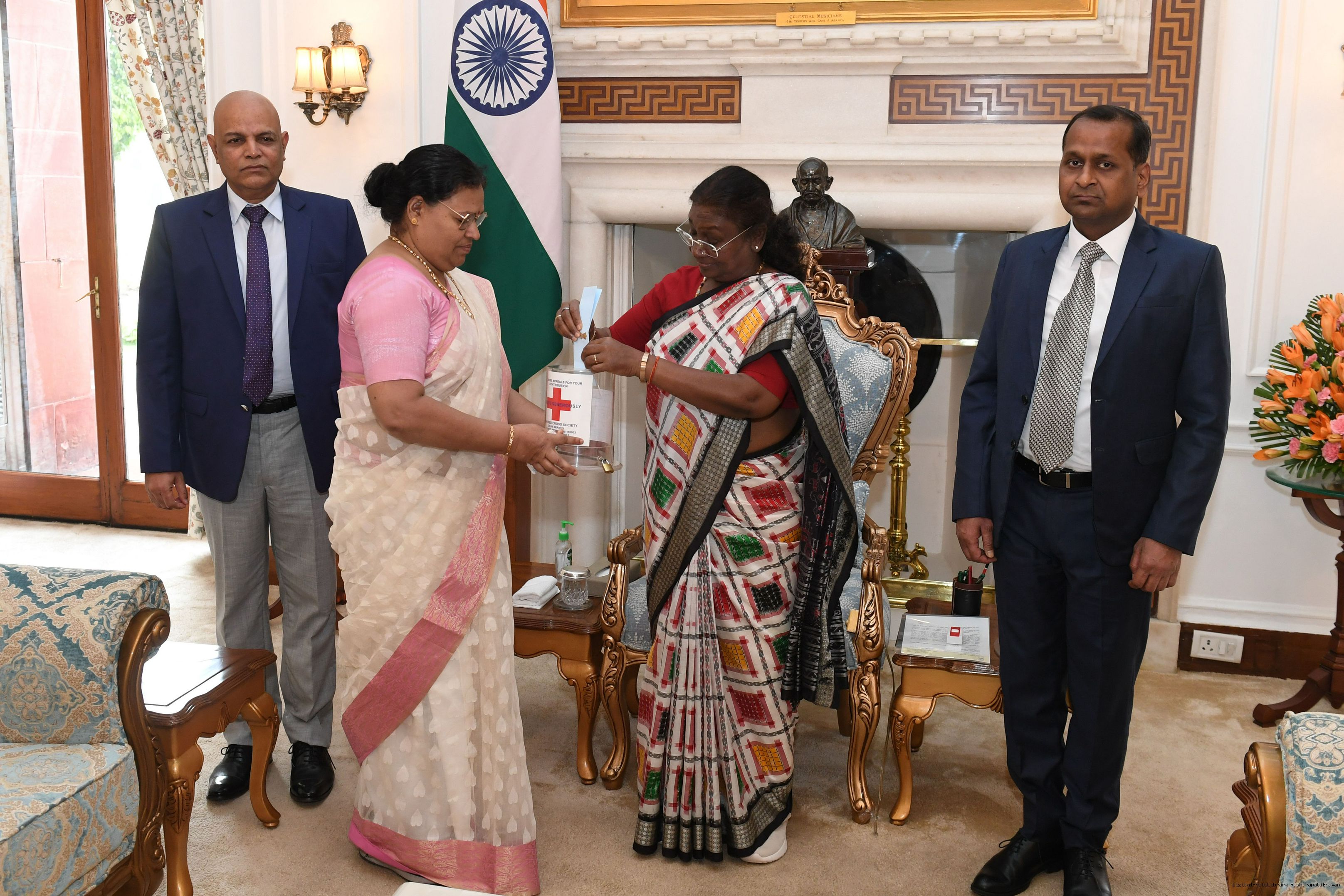 | Caption: | Shri Ashish Chandra Verma, Vice Chairman, Shri Anil Banka, Secretary and Ms. Seena Jose, Treasurer, Indian Red Cross Society, Delhi meeting with the President of India Smt. Droupadi Murmu at Rashtrapati Bhavan on November 6, 2024. |