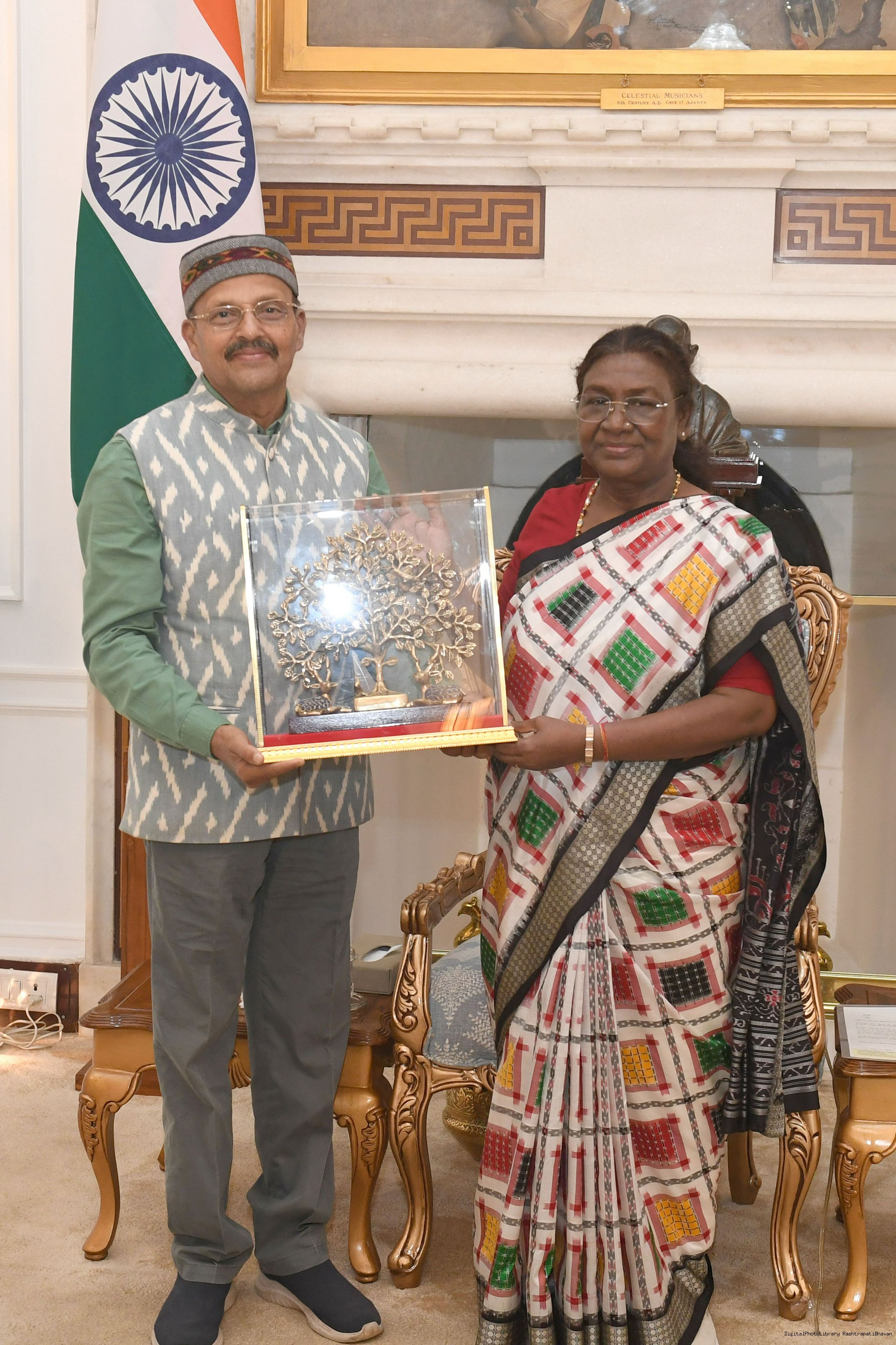 | Caption: | Shri V. Sriniwasa Raju, Chairman, Vyasa International School Bangalore meeting with the President of India Smt. Droupadi Murmu at Rashtrapati Bhavan on November 6, 2024. |