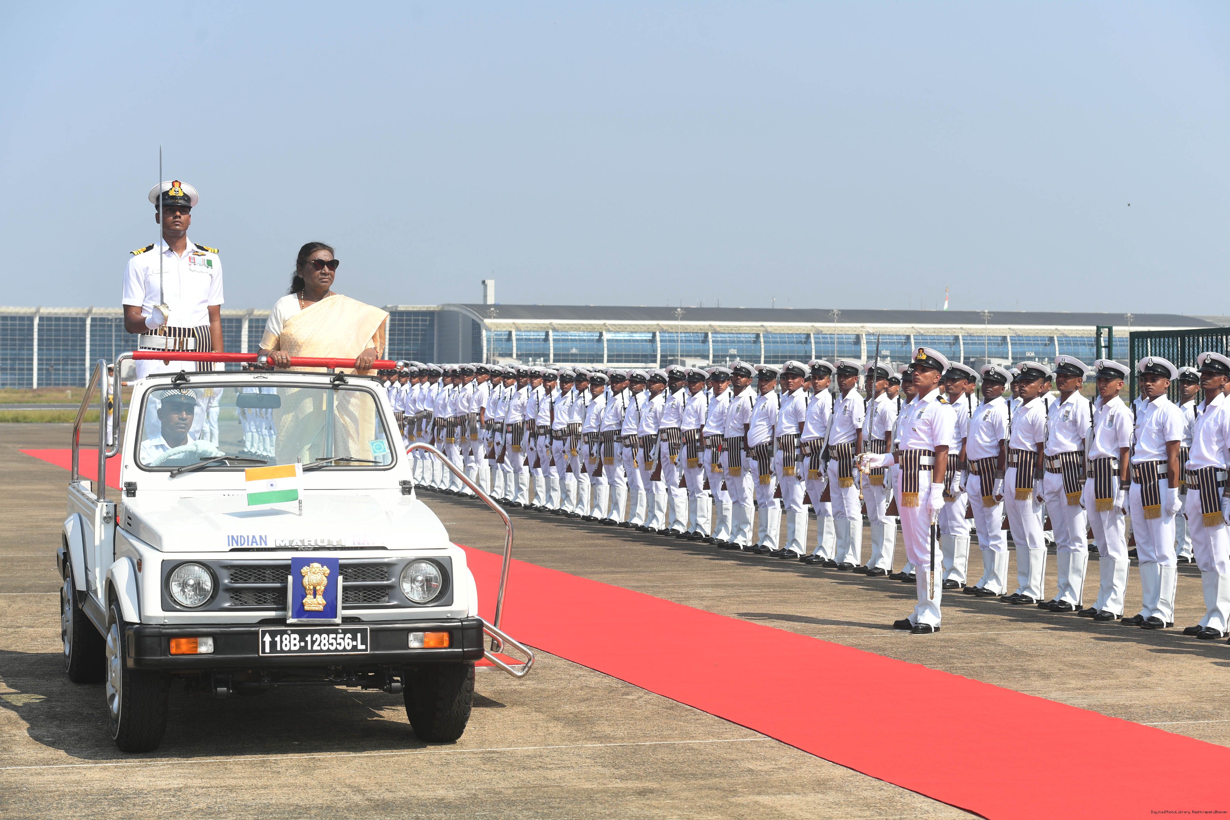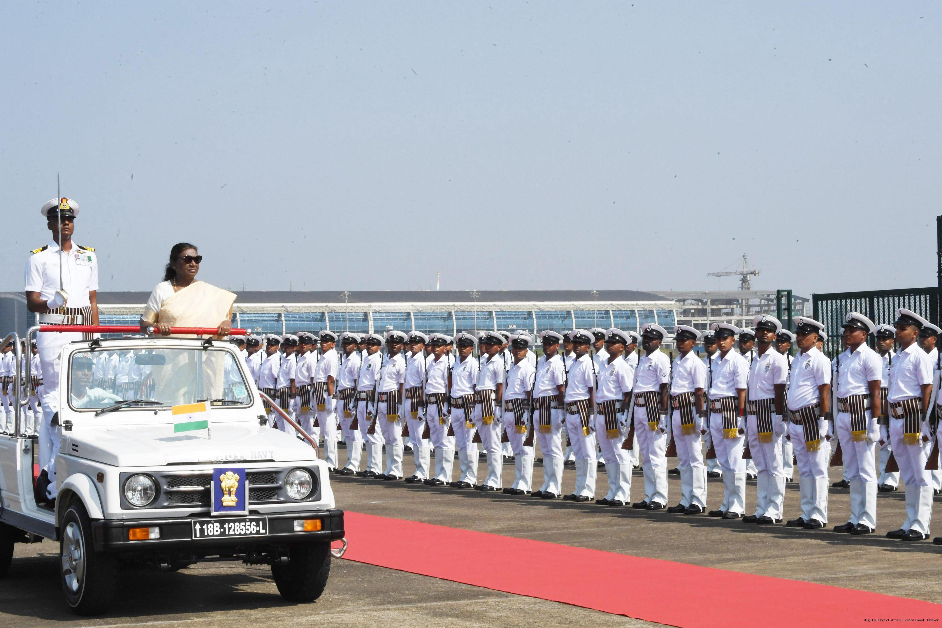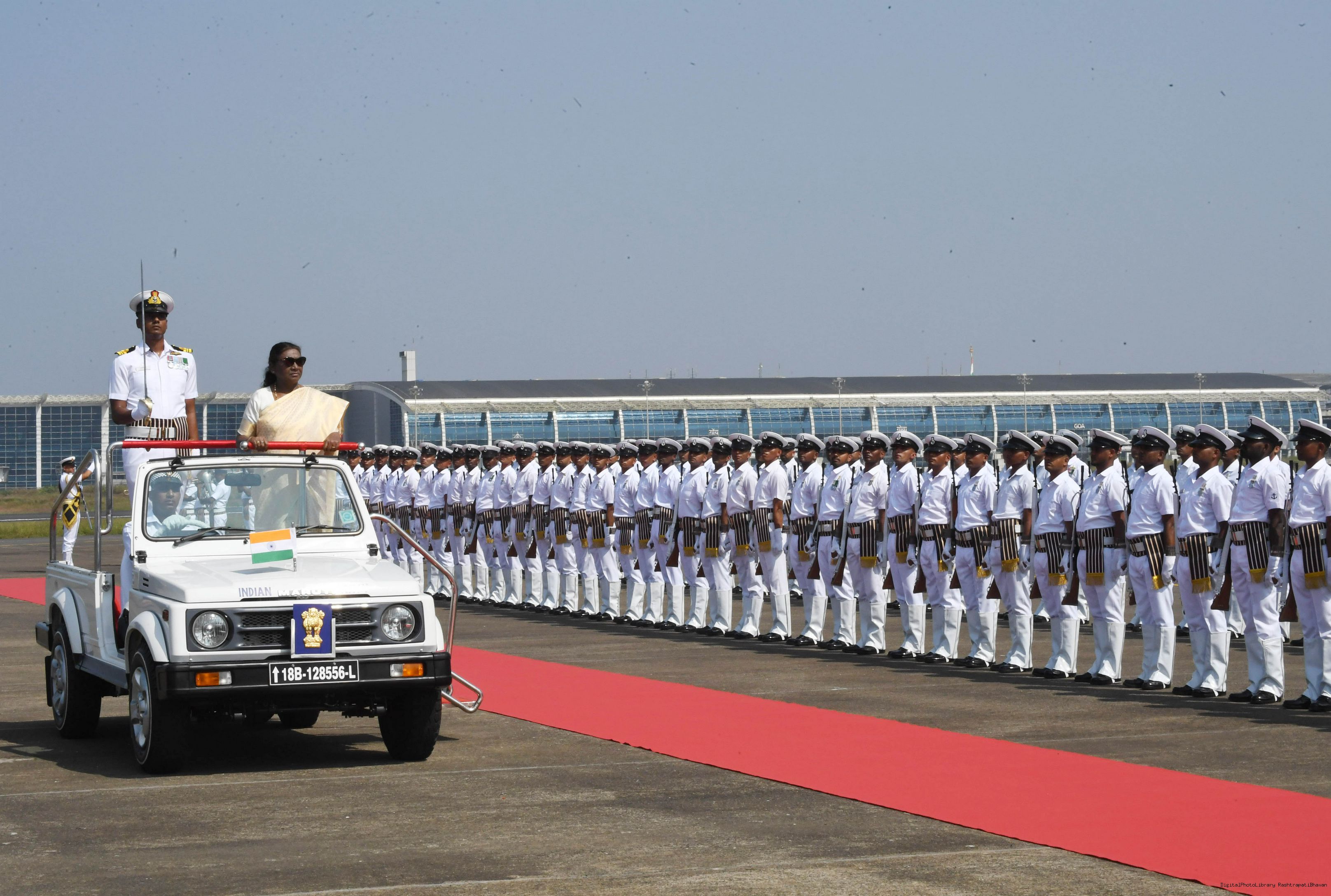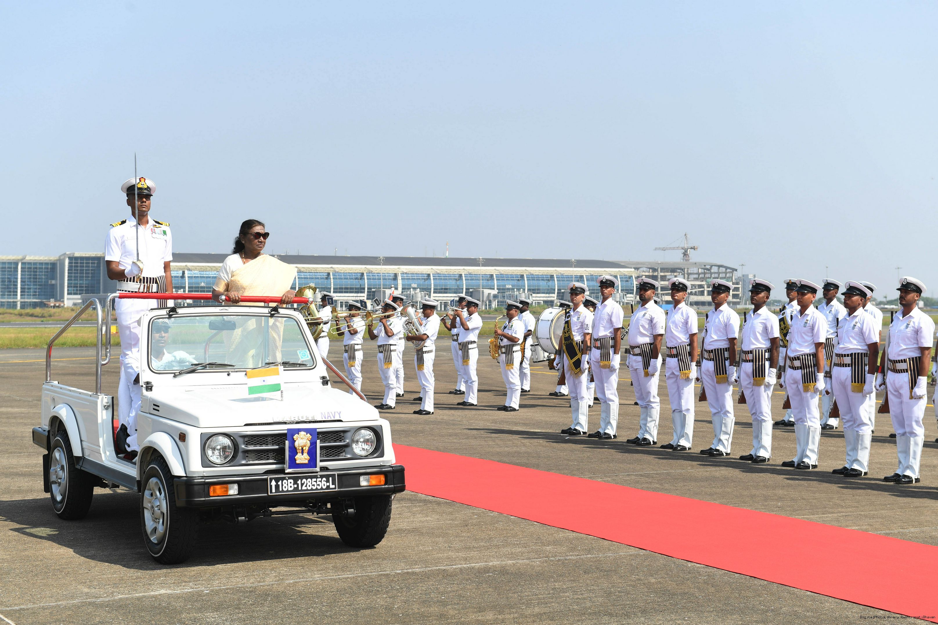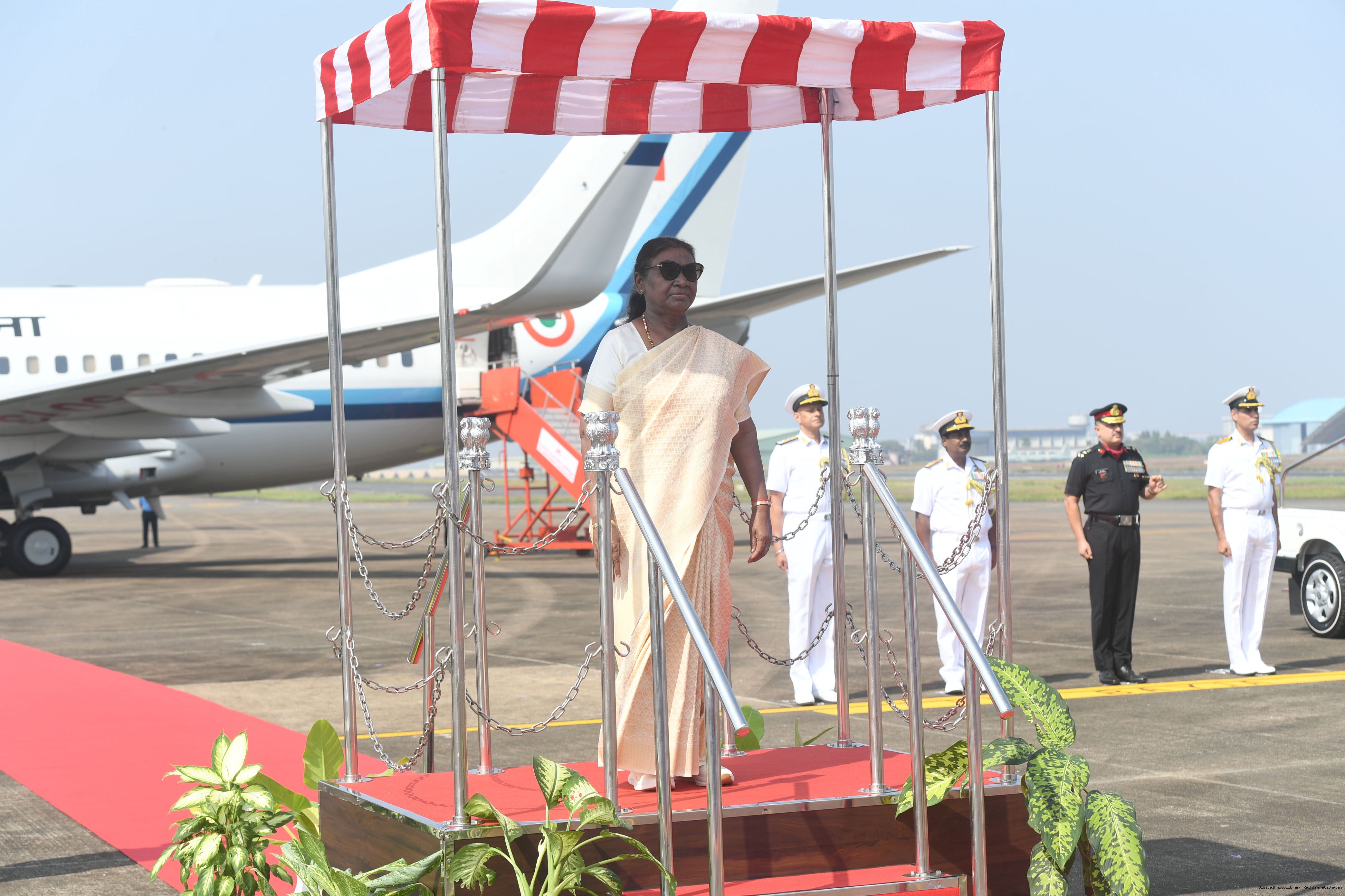 | Caption: | The President of India, Smt. Droupadi Murmu was accorded a guard of honour on her arrival at Goa on November 7, 2024. |