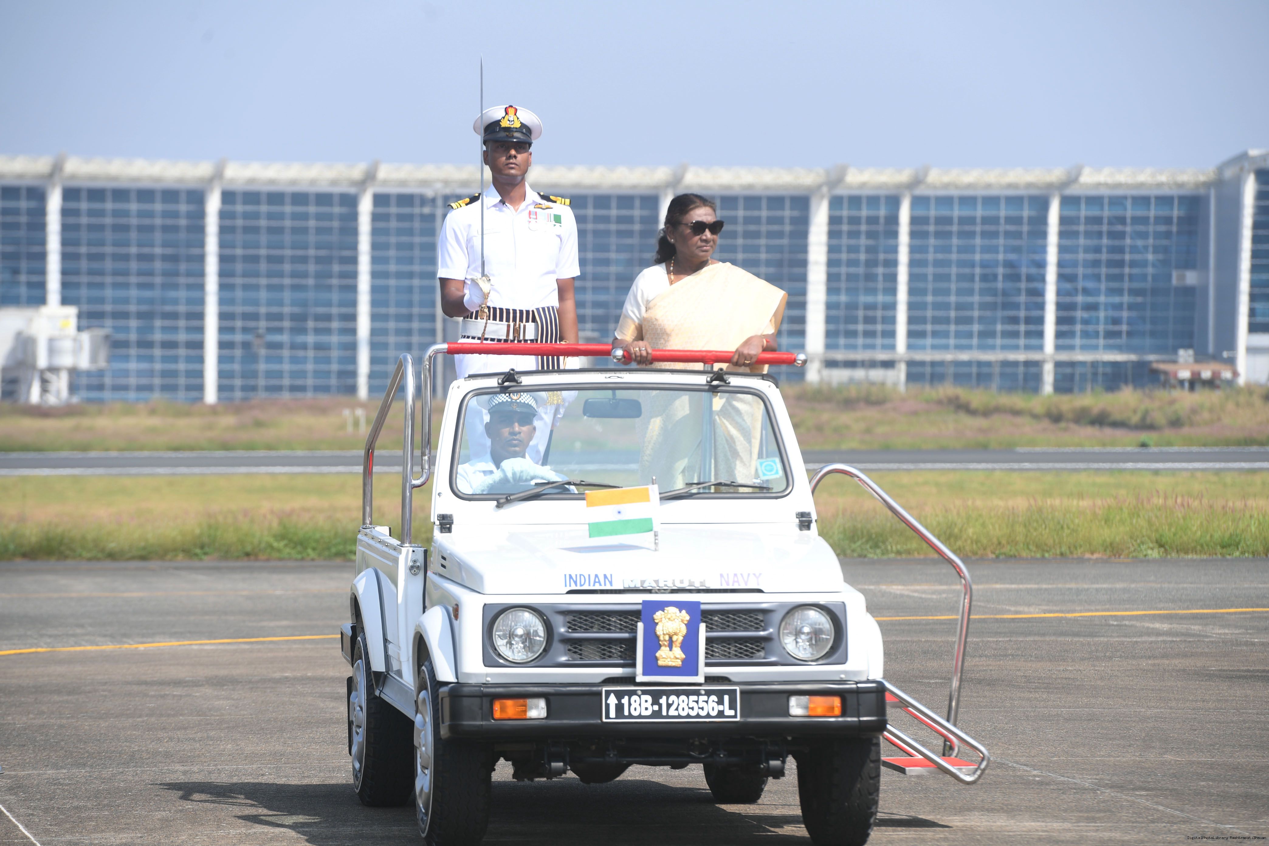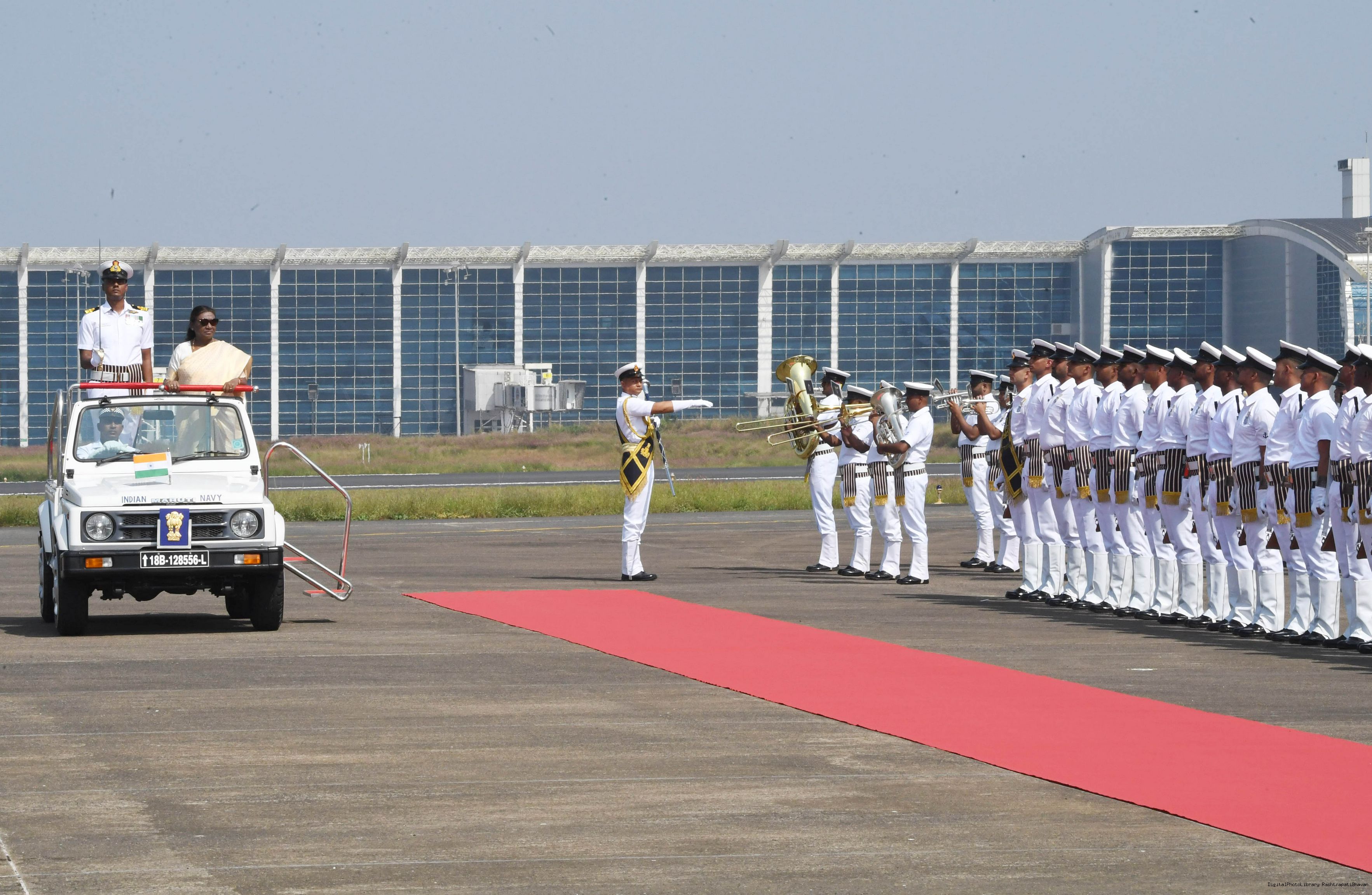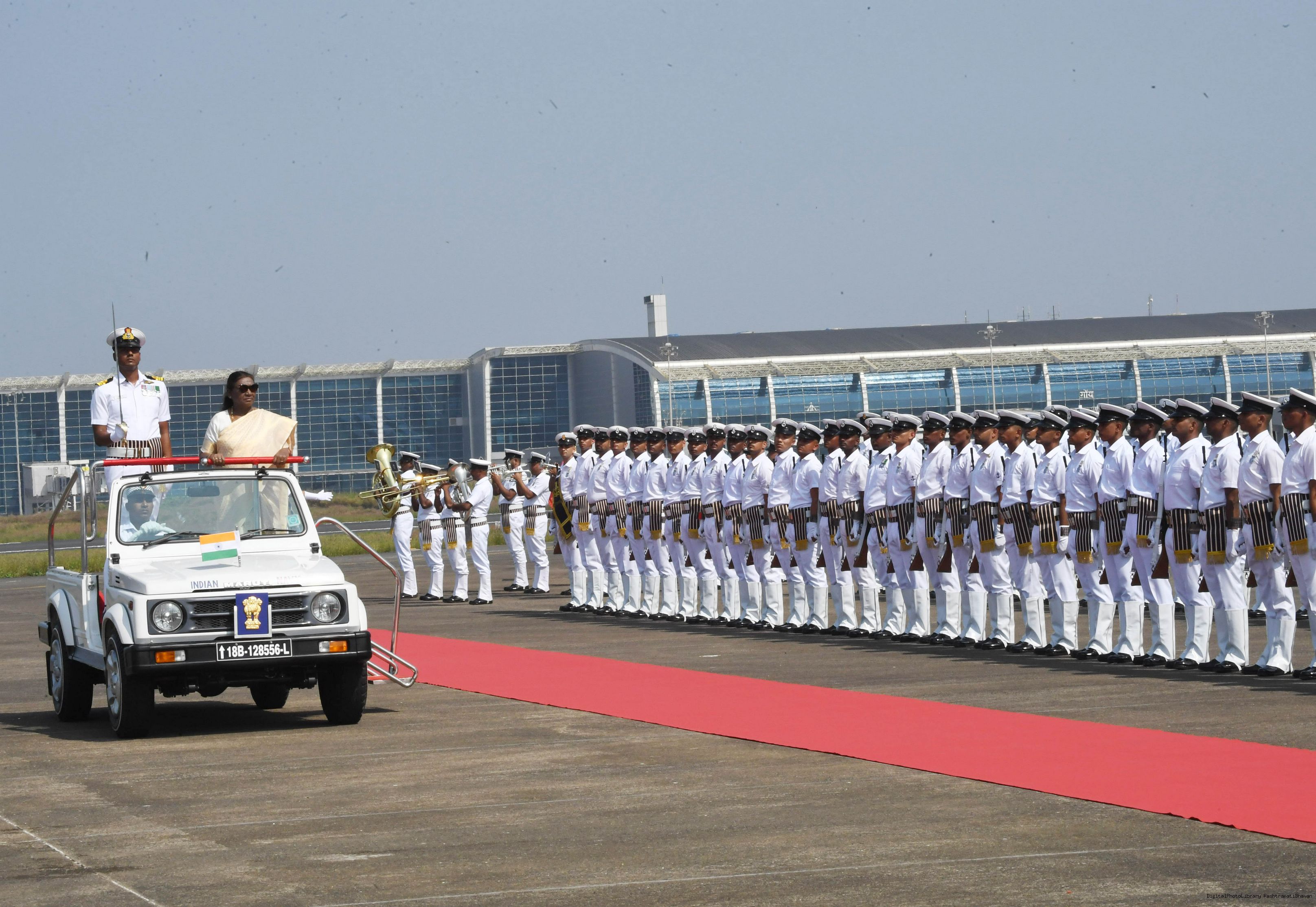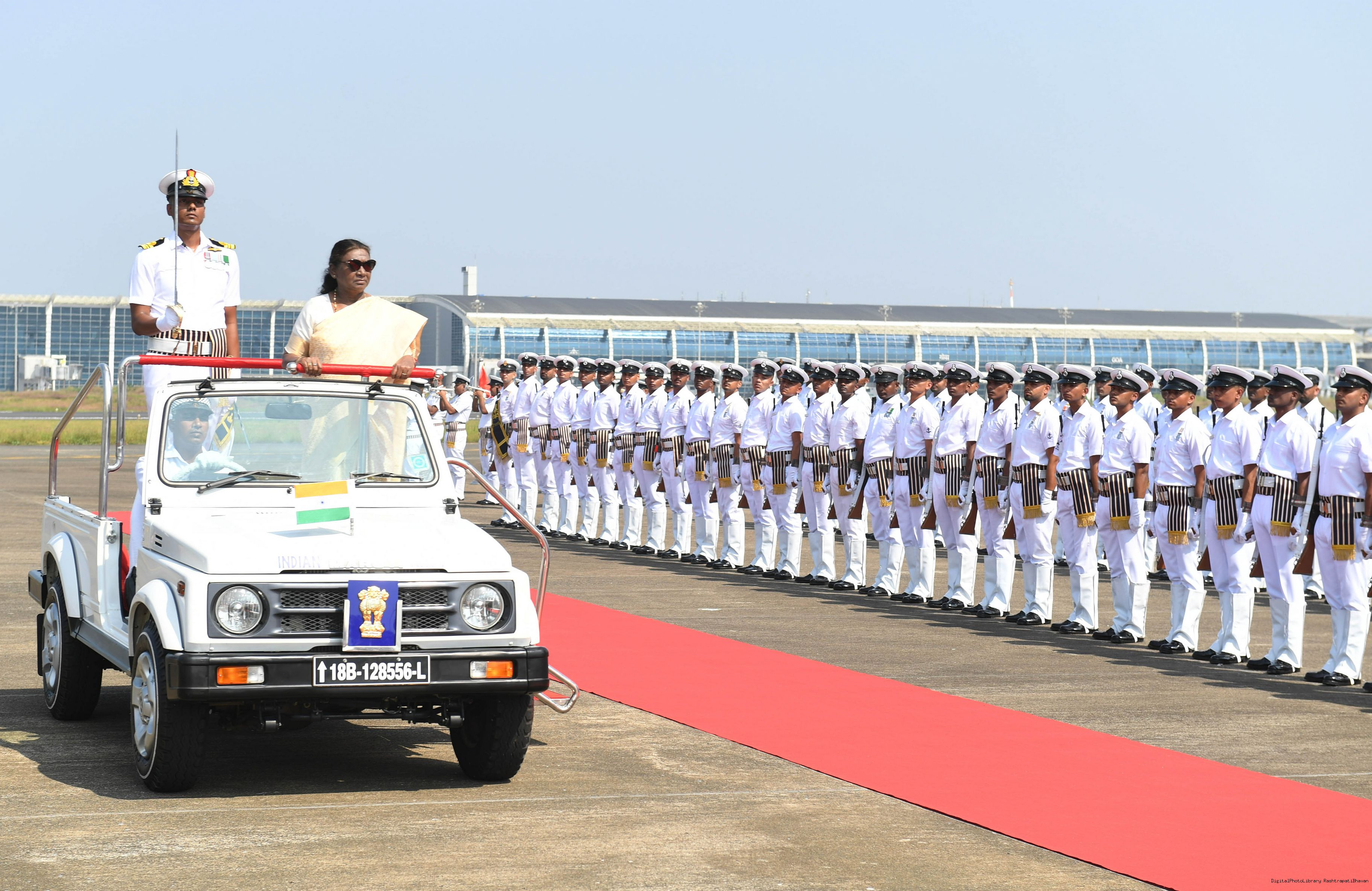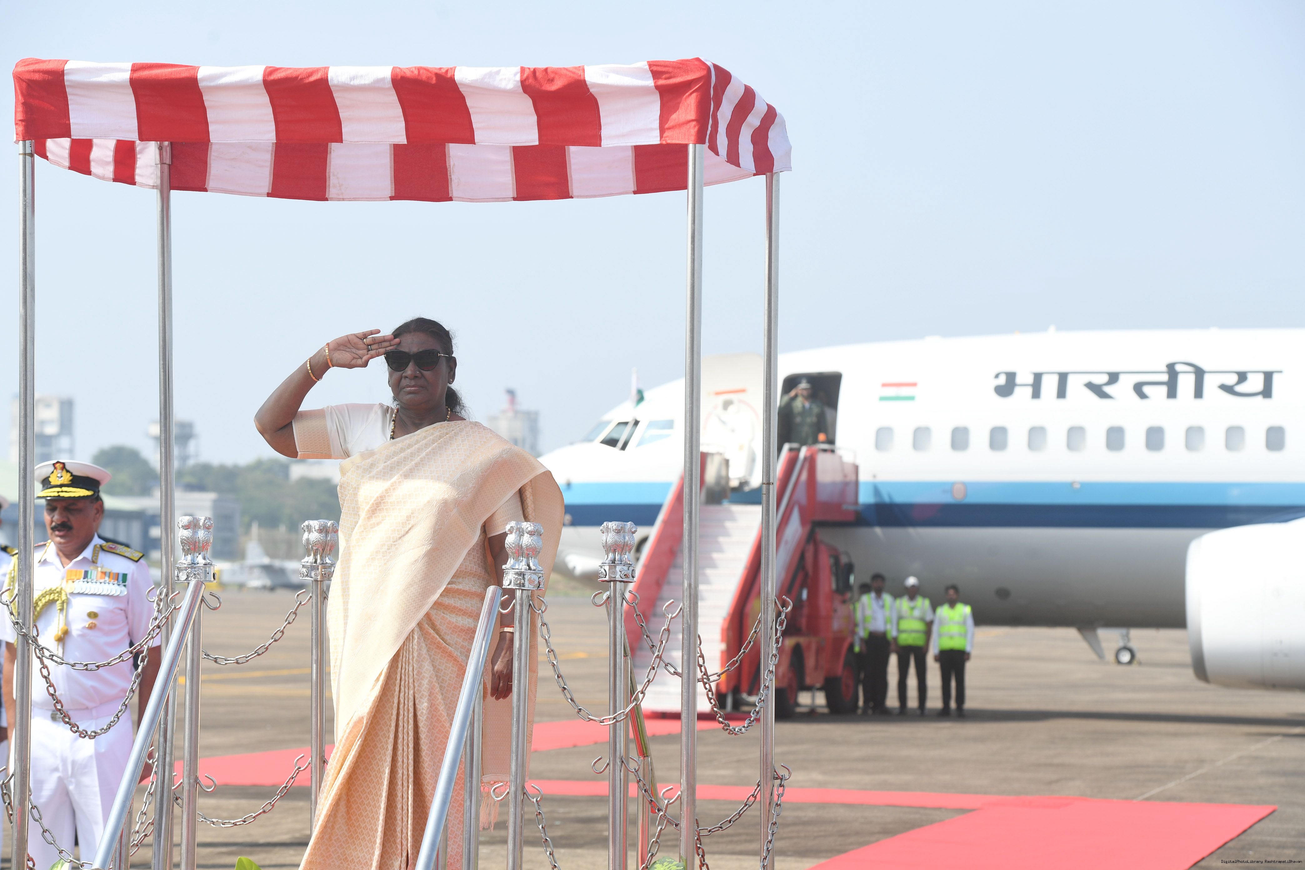 | Caption: | The President of India, Smt. Droupadi Murmu was accorded a guard of honour on her arrival at Goa on November 7, 2024. |