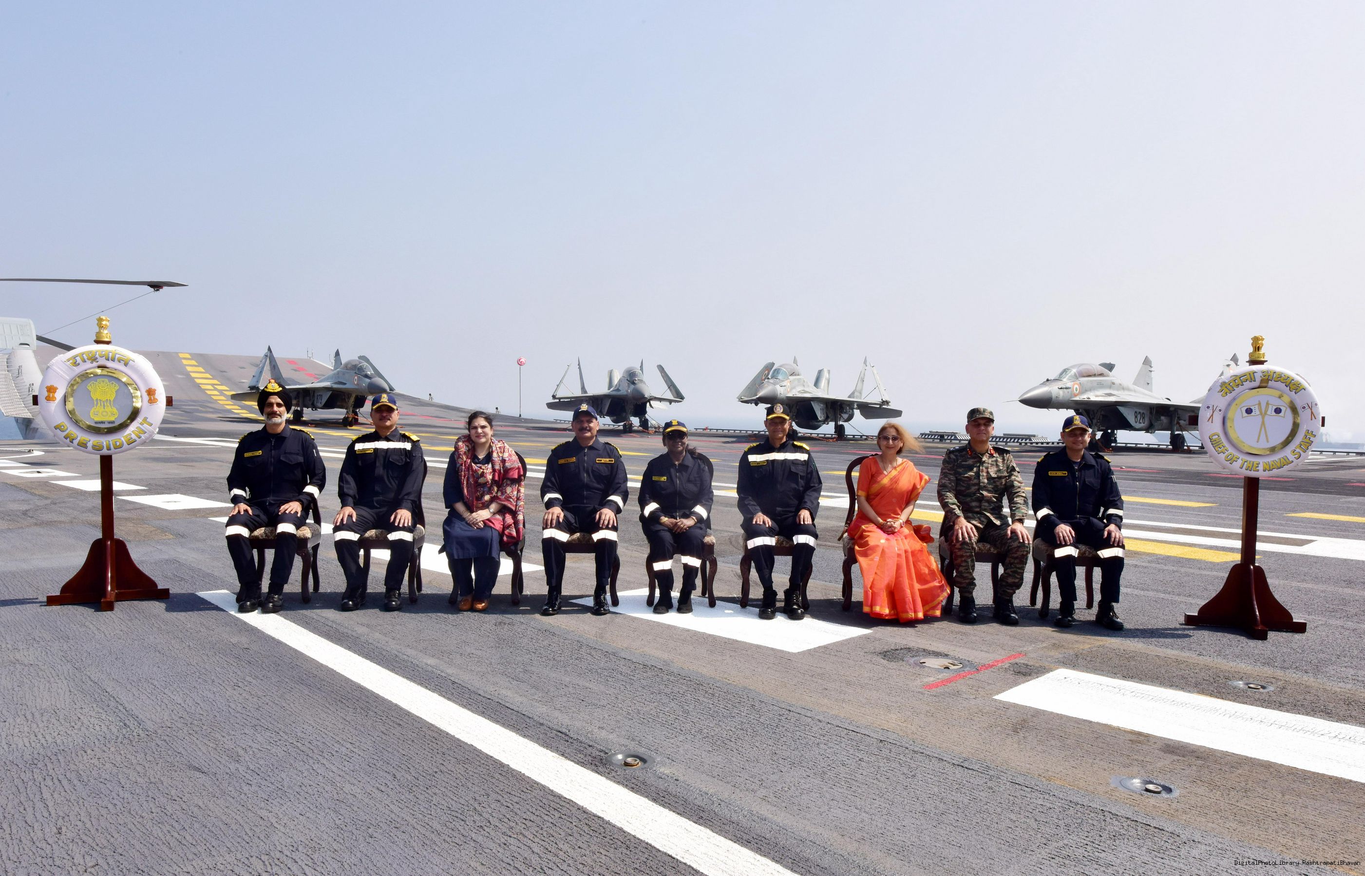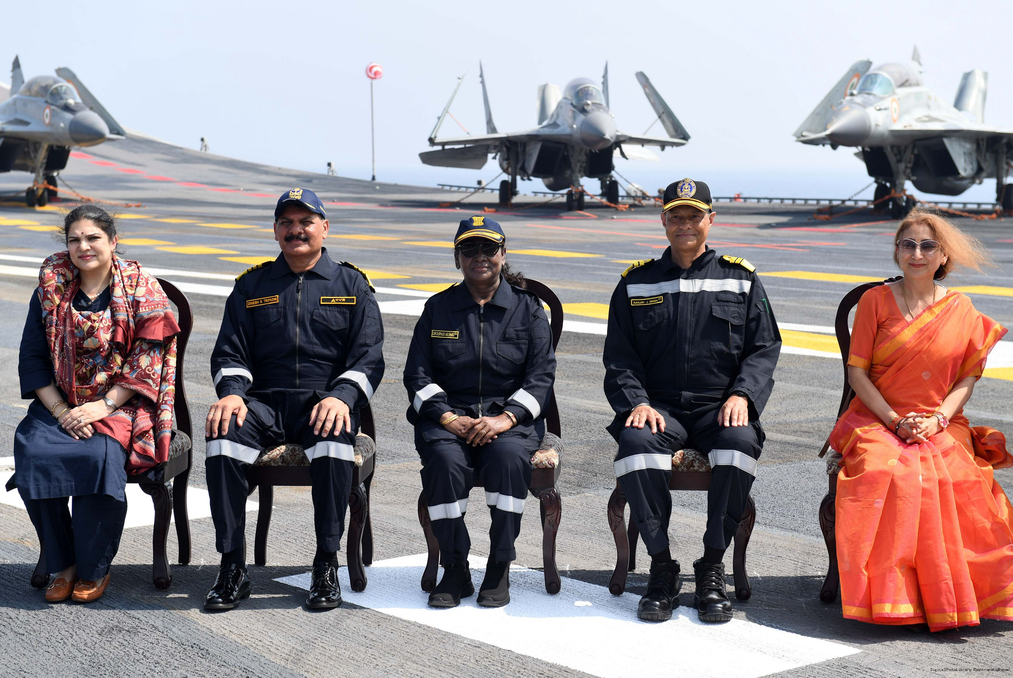 | Caption: | The President of India Smt. Draupadi Murmu posing a Group Photograph on the fight Deck of INS Vikrant in Goa on November 7, 2024 |