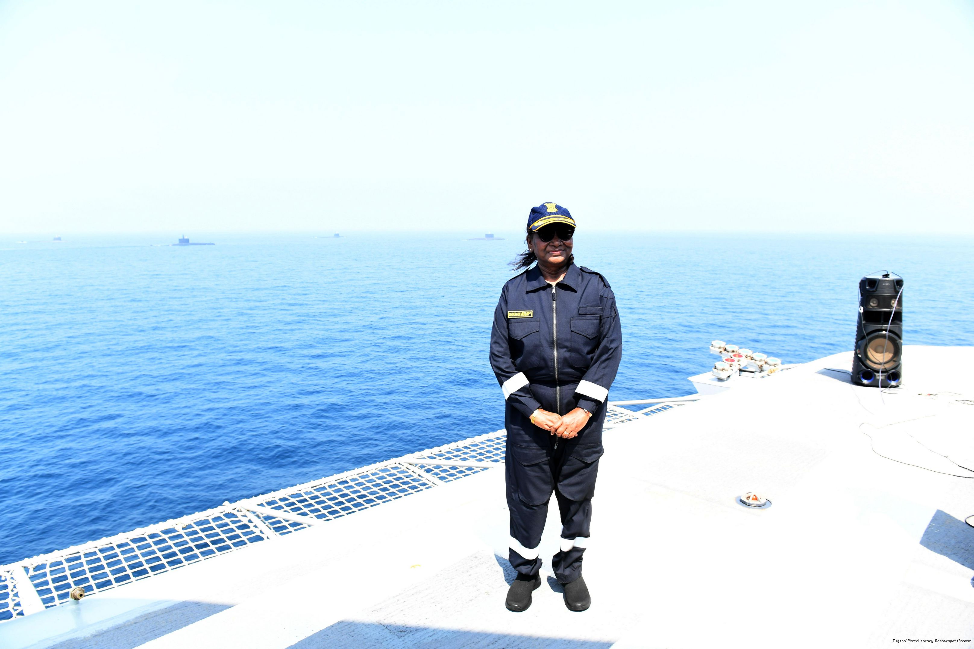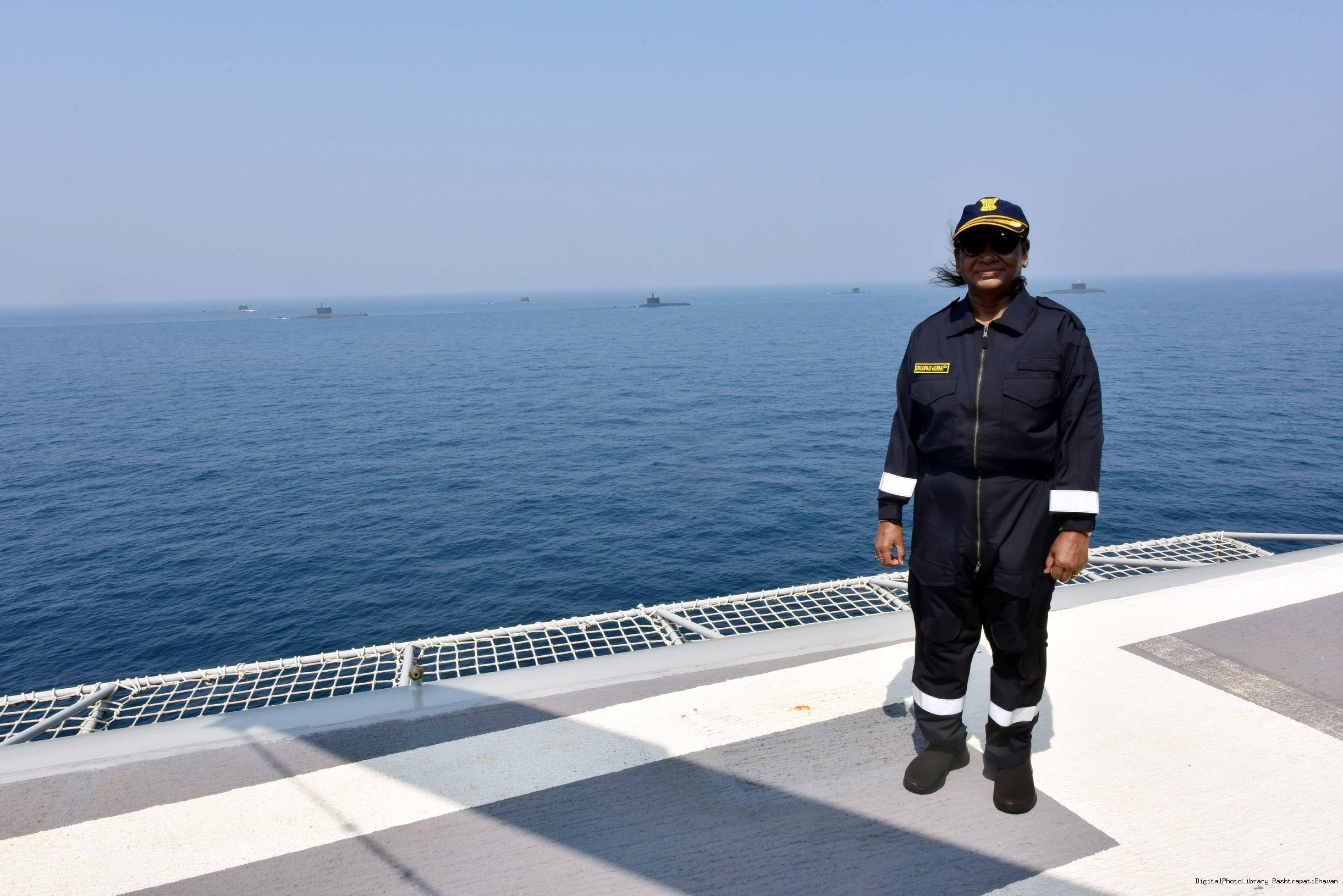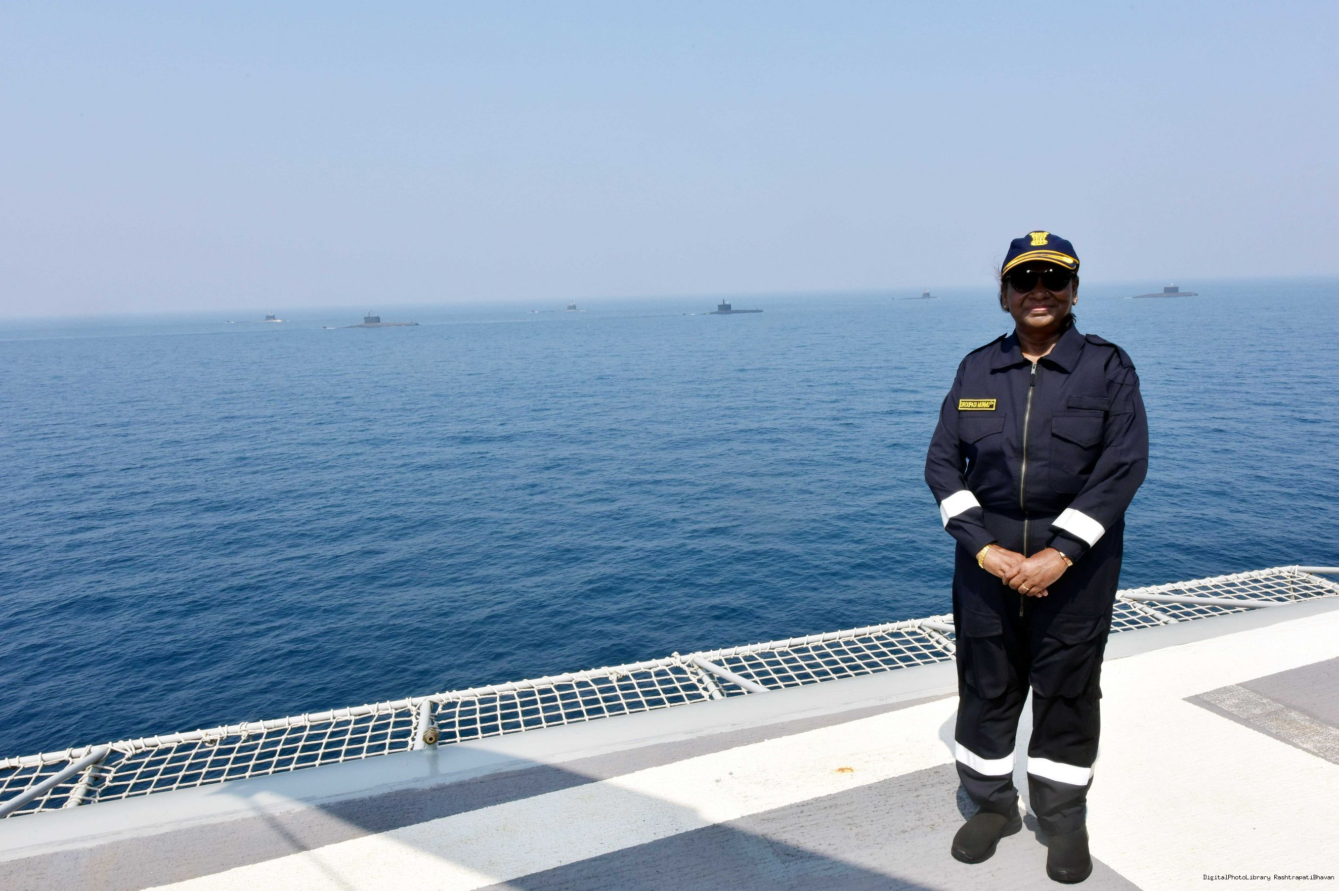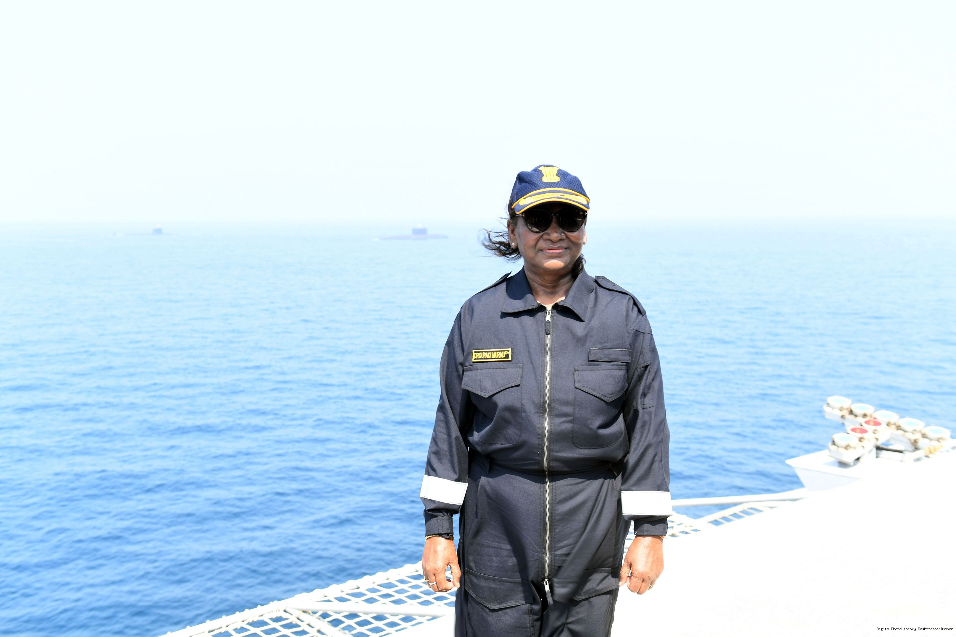The President of India Smt. Draupadi Murmu during Submarine Demonstration in Goa on November 7, 2024.