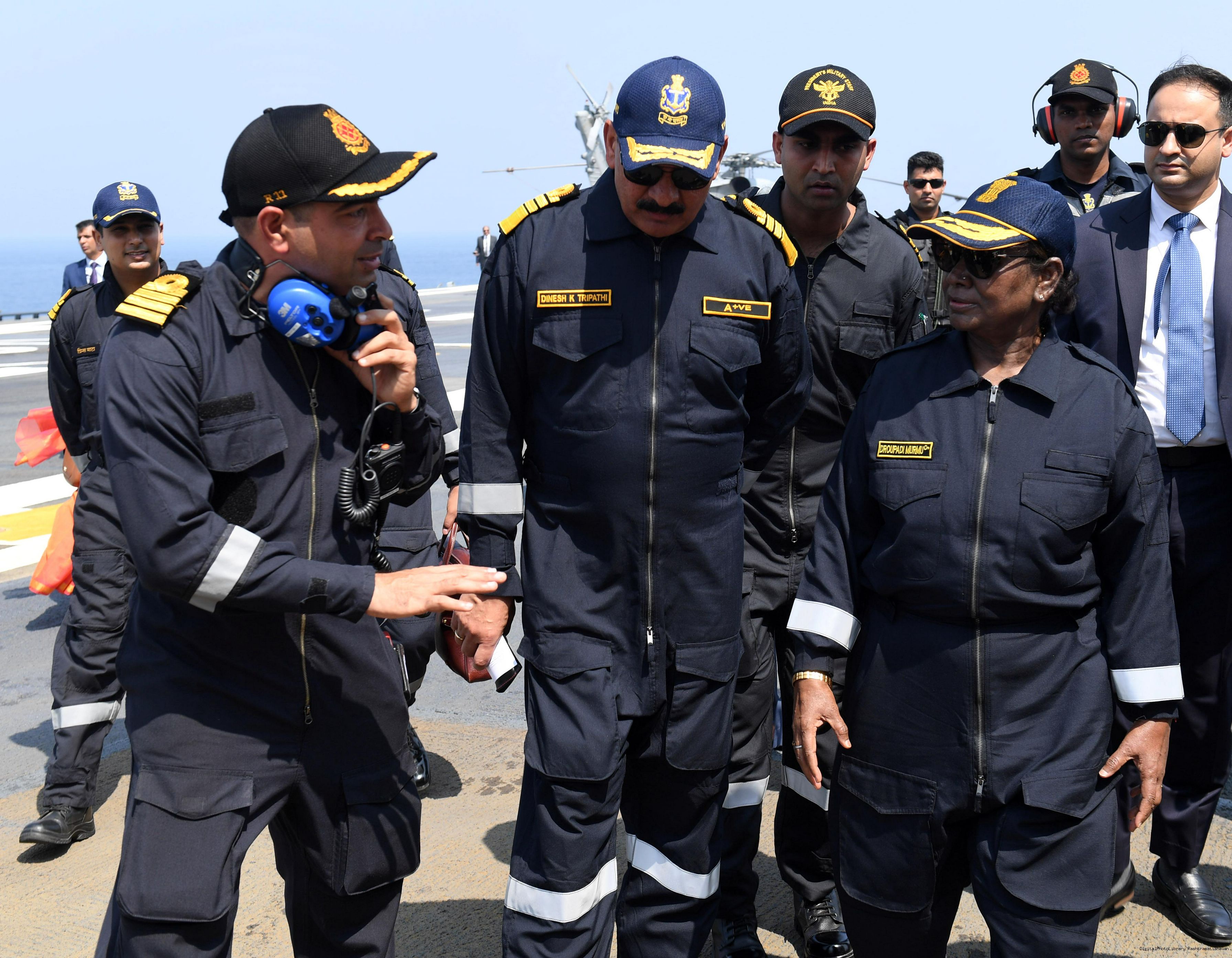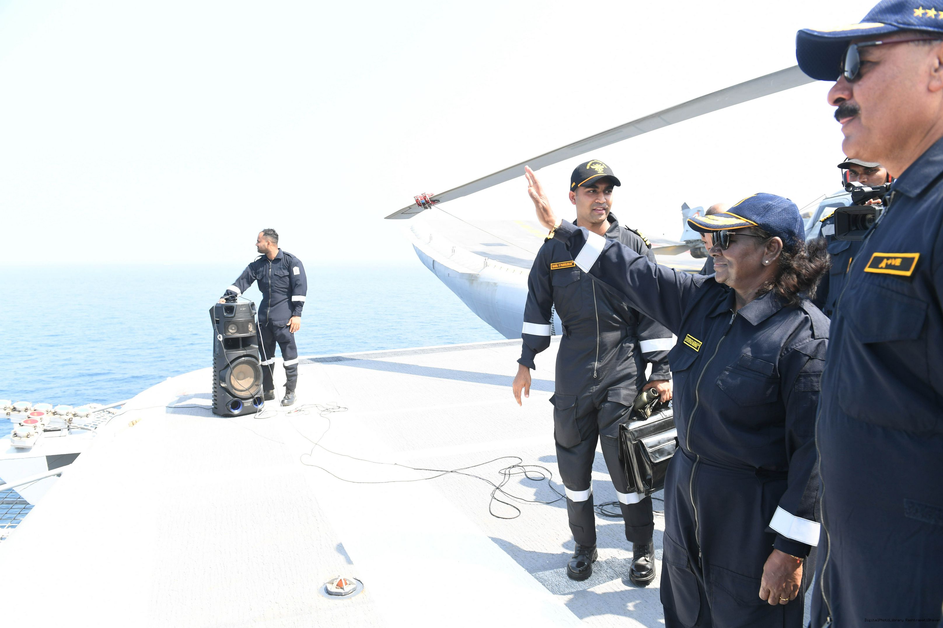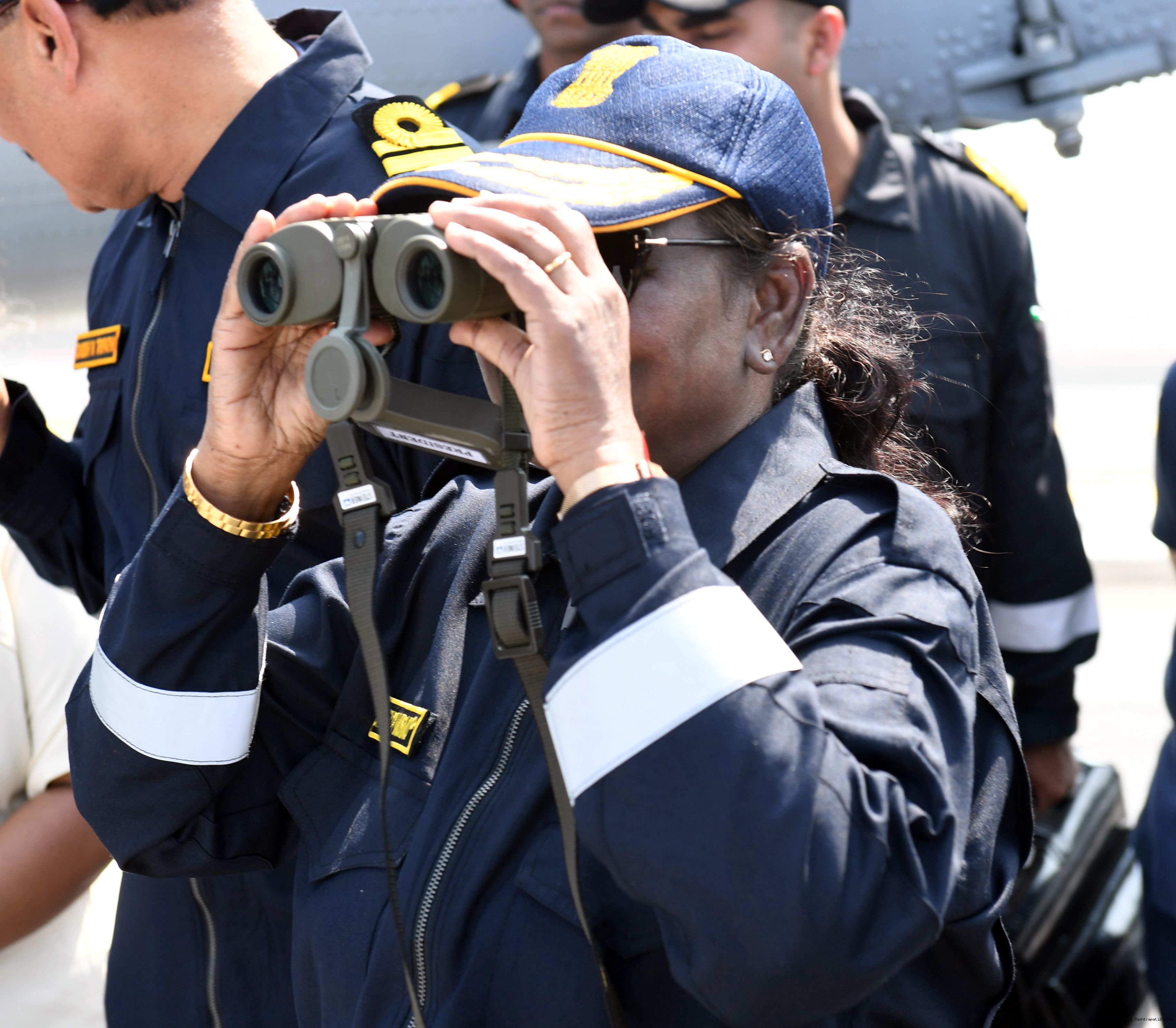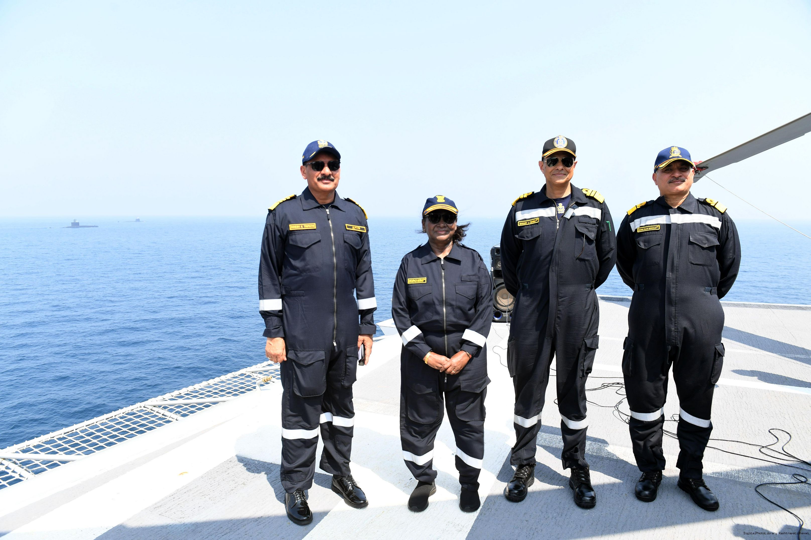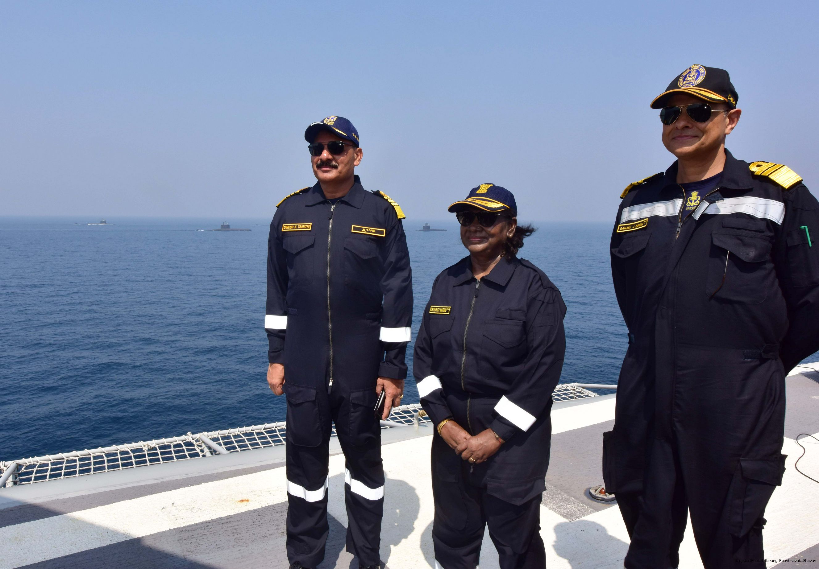 The President of India Smt. Draupadi Murmu during Submarine Demonstration in Goa on November 7, 2024.