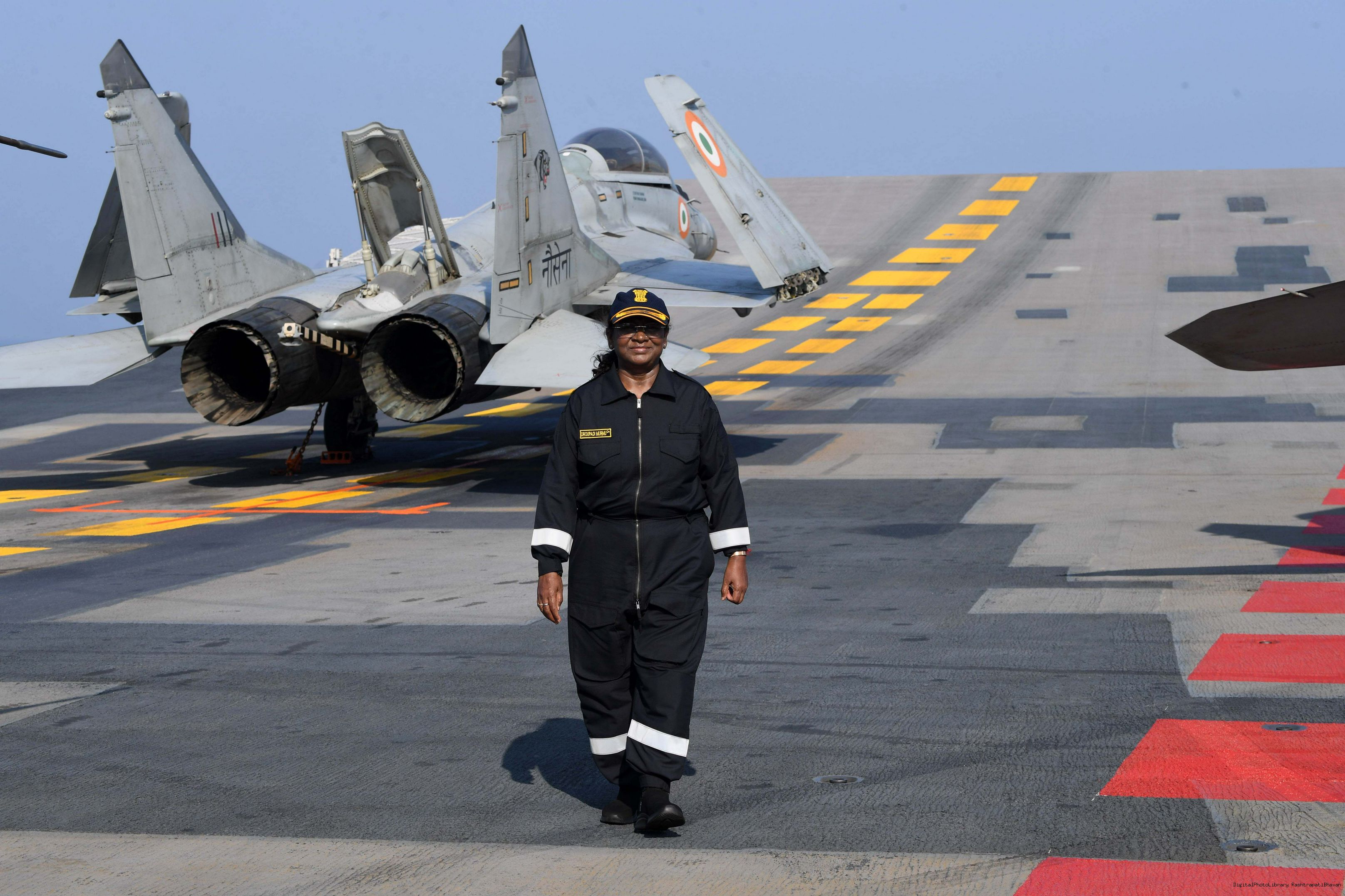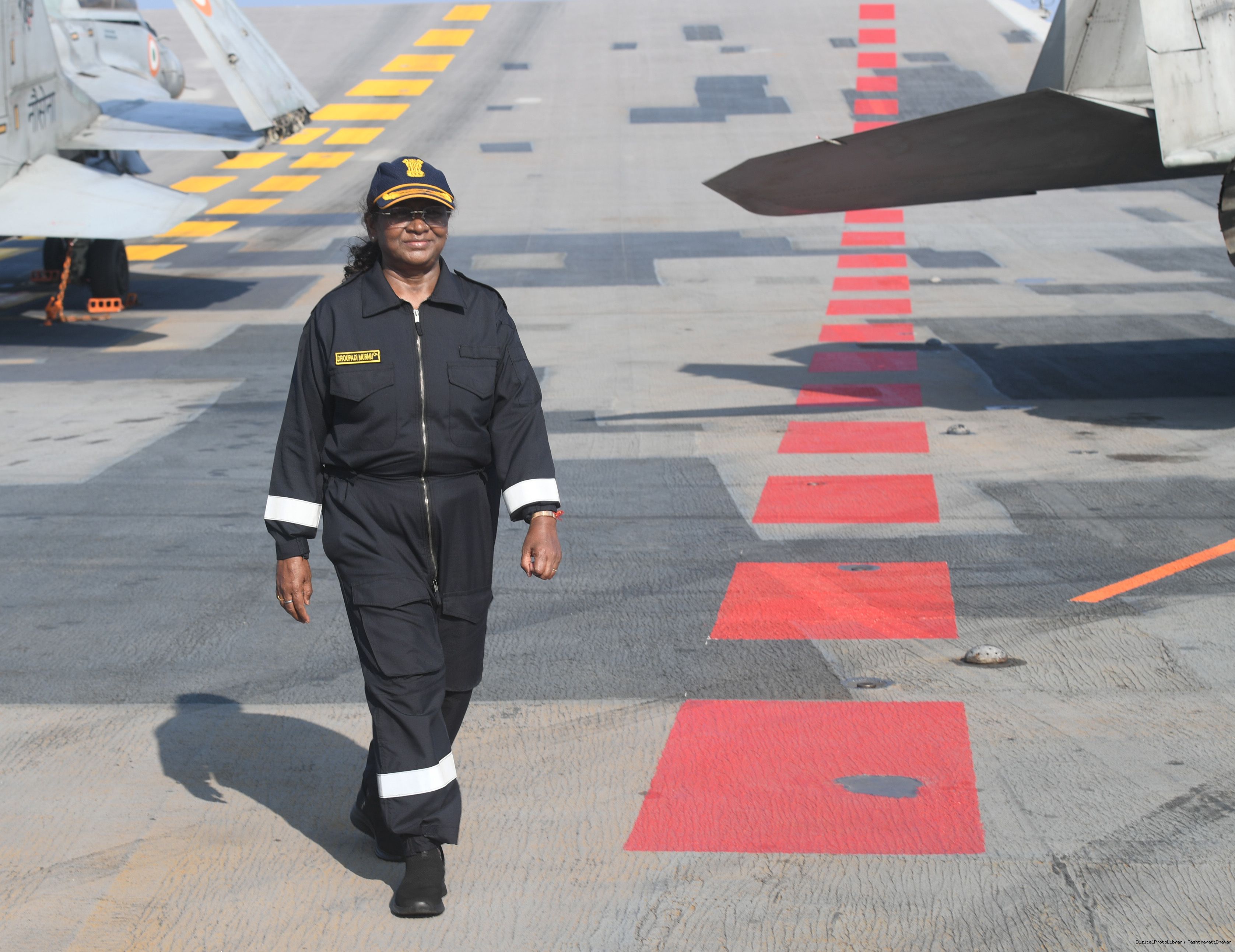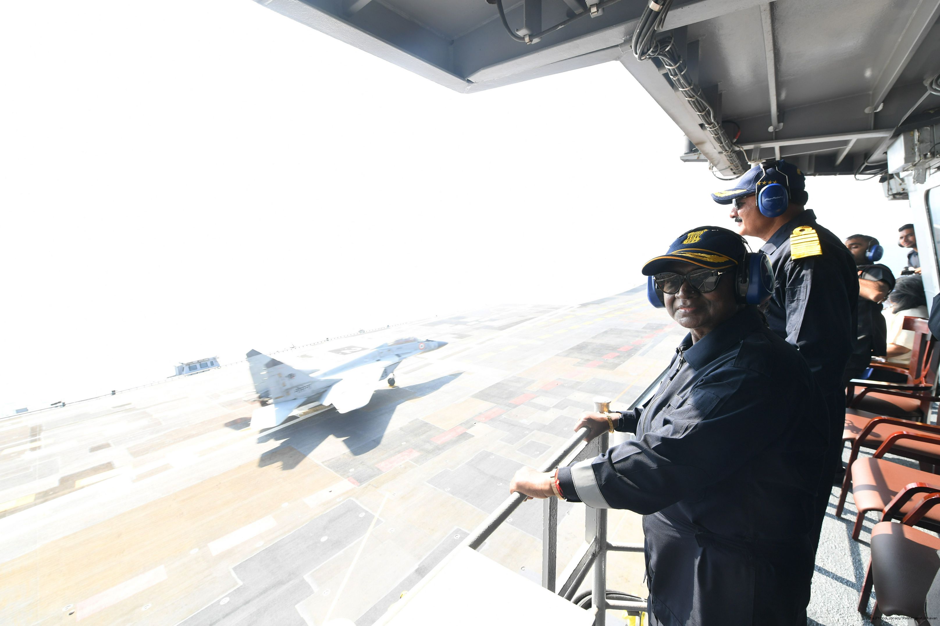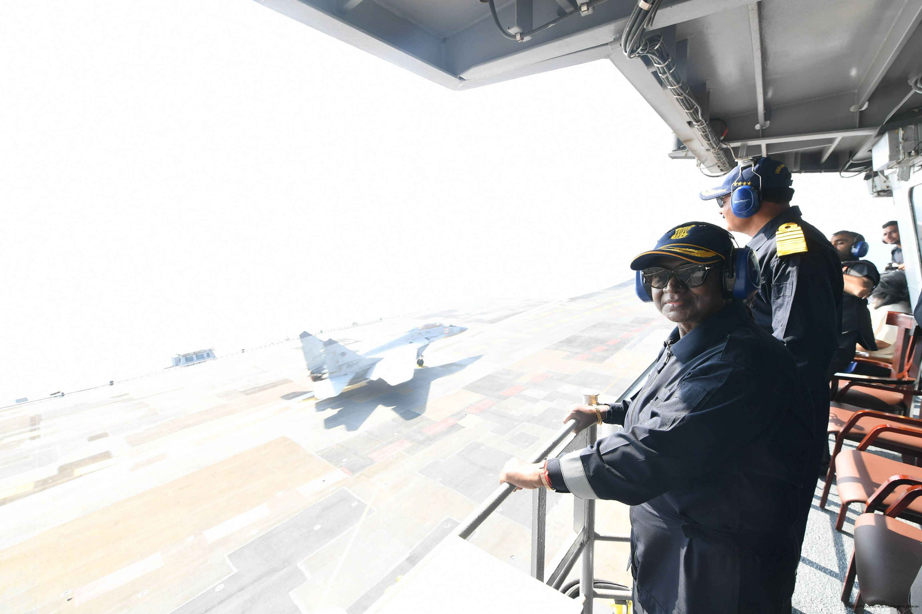 | Caption: | The President of India Smt. Draupadi Murmu during Flyex Air power Demo and posing a Group Photograh in Goa on November 7, 2024. |
