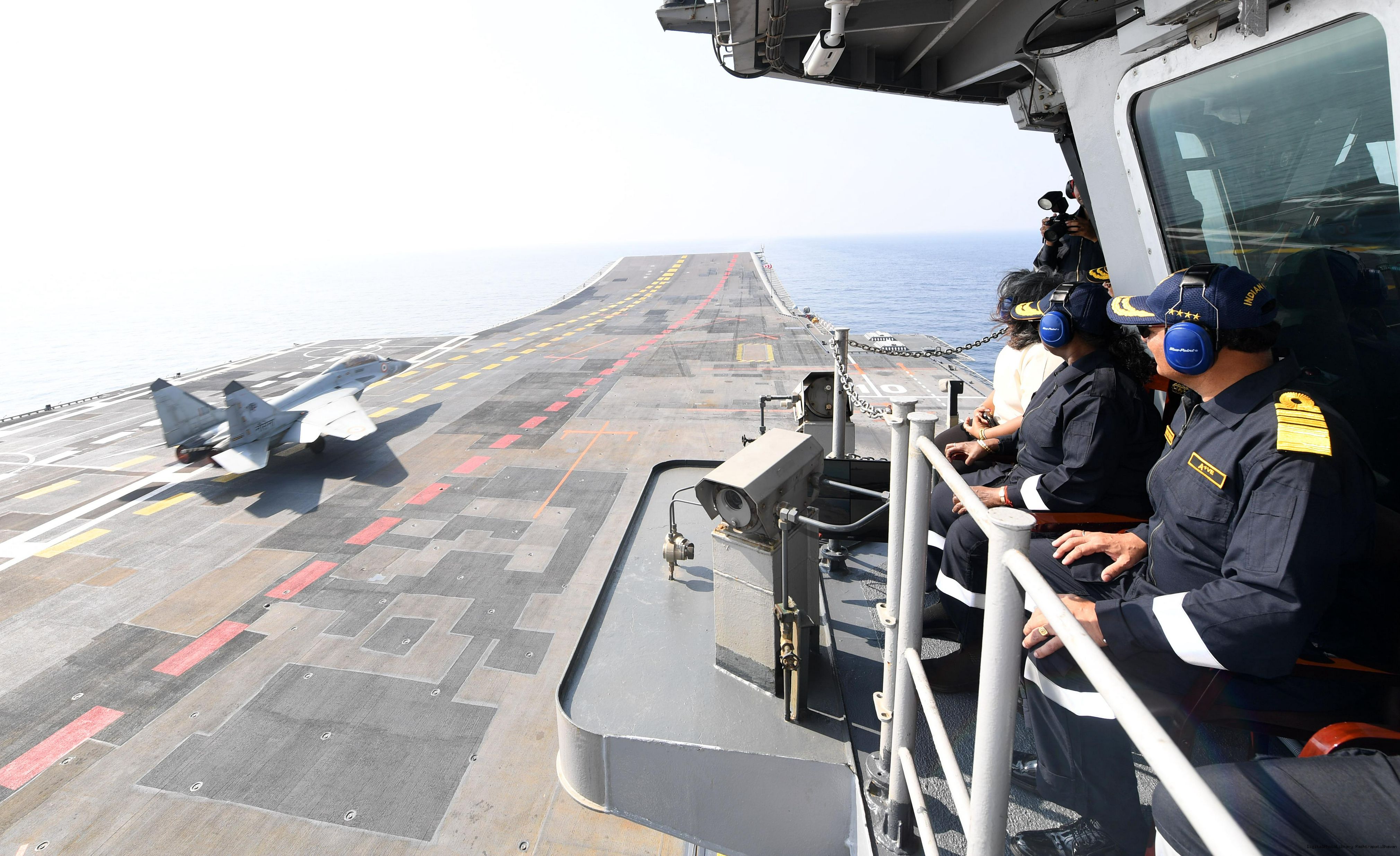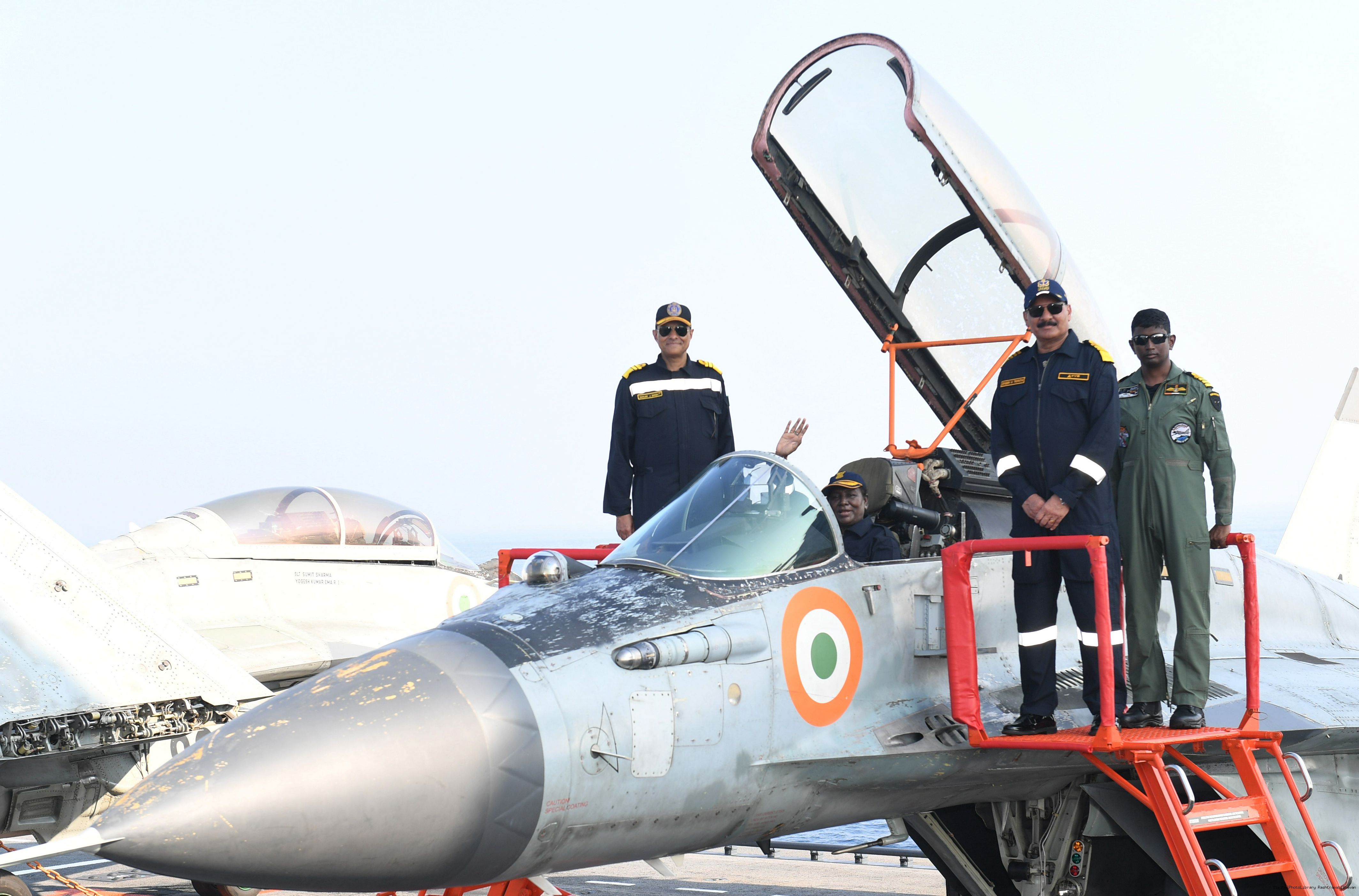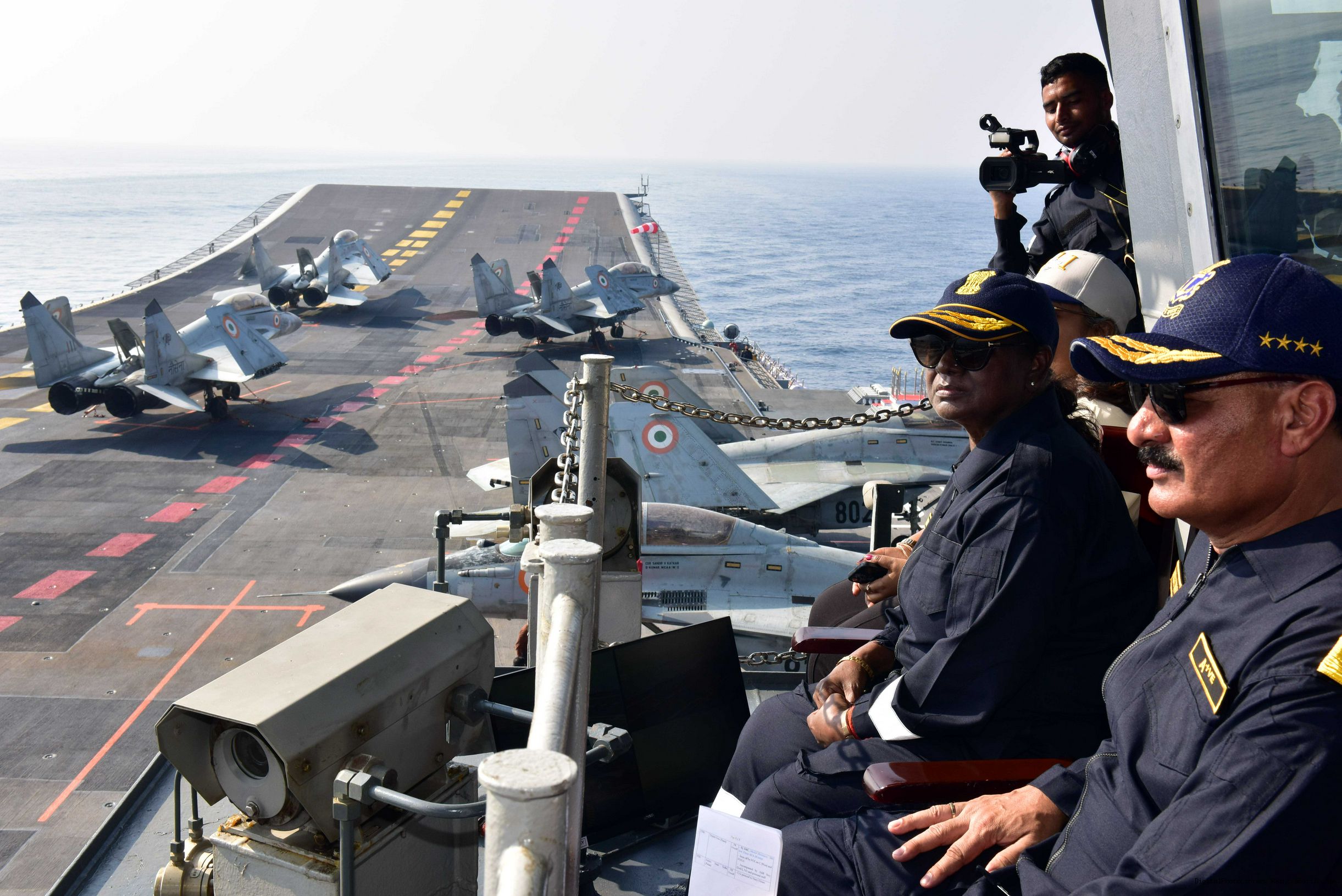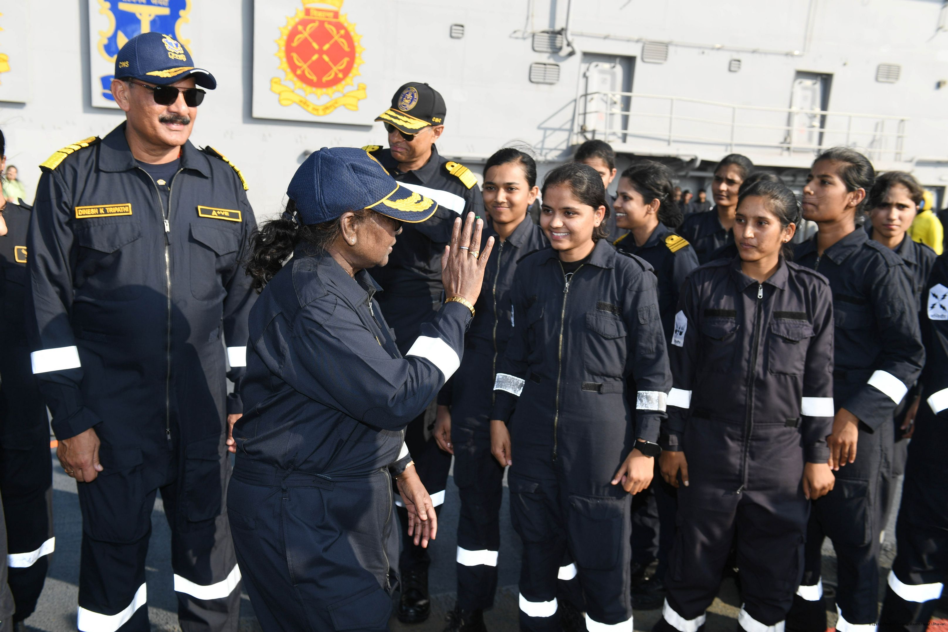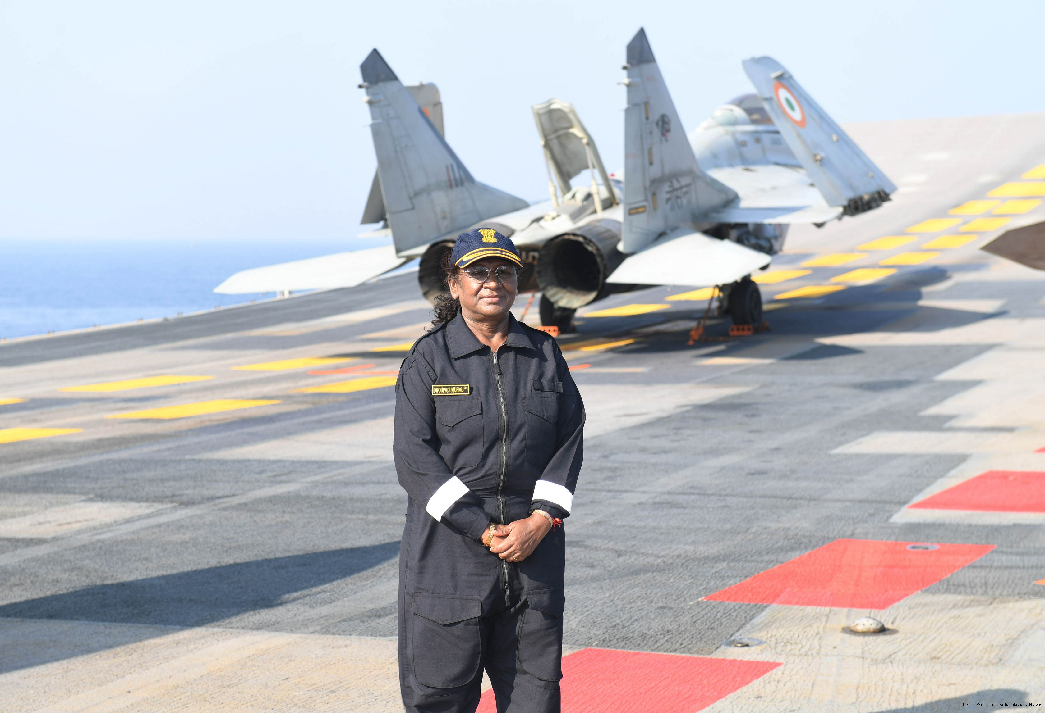 | Caption: | The President of India Smt. Draupadi Murmu during Flyex Air power Demo and posing a Group Photograh in Goa on November 7, 2024. |