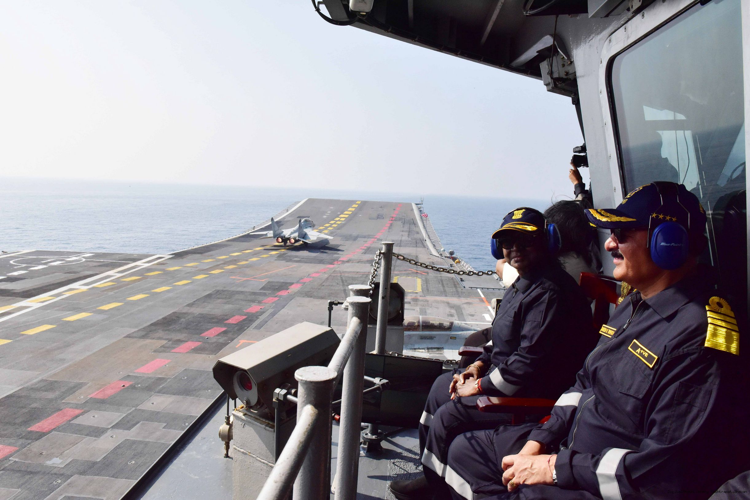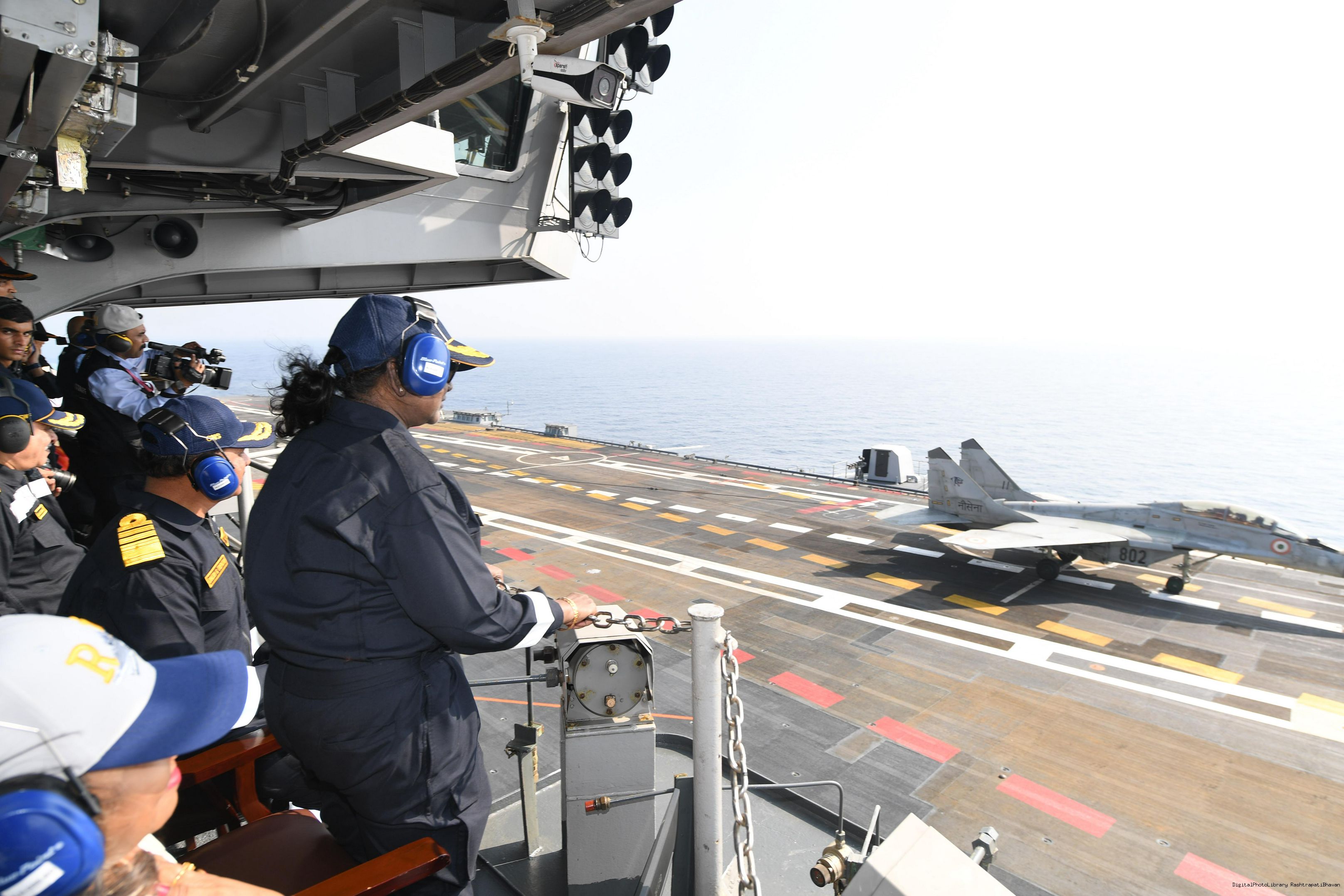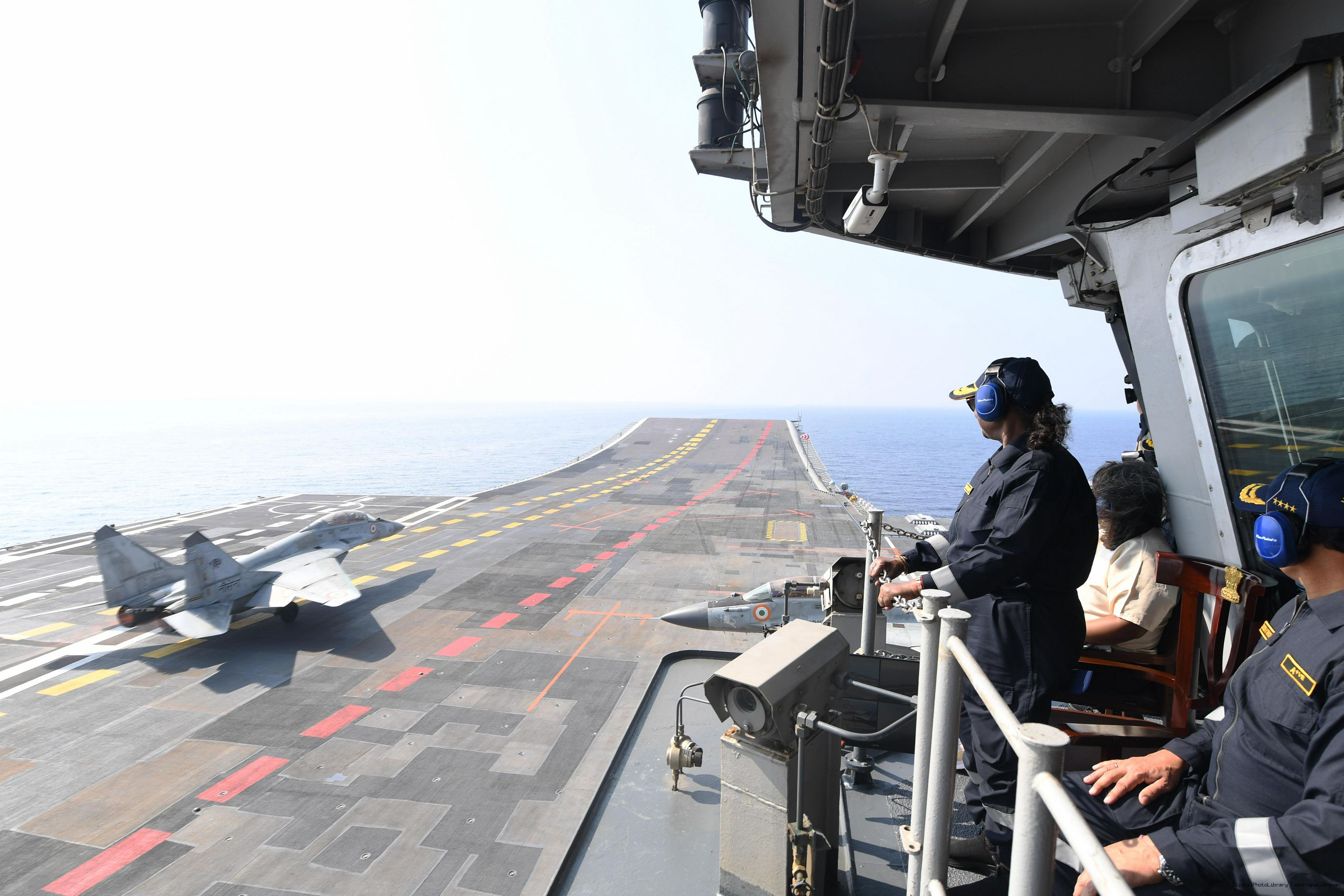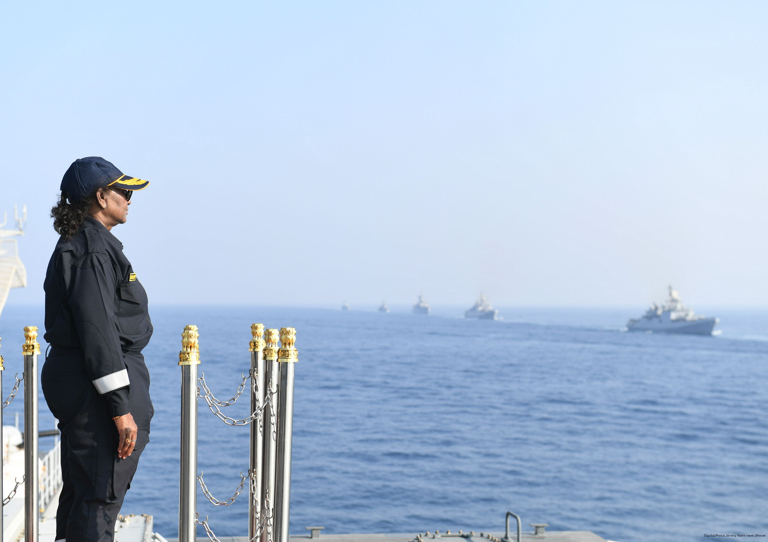 | Caption: | The President of India Smt. Draupadi Murmu during Flyex Air power Demo and posing a Group Photograh in Goa on November 7, 2024. |