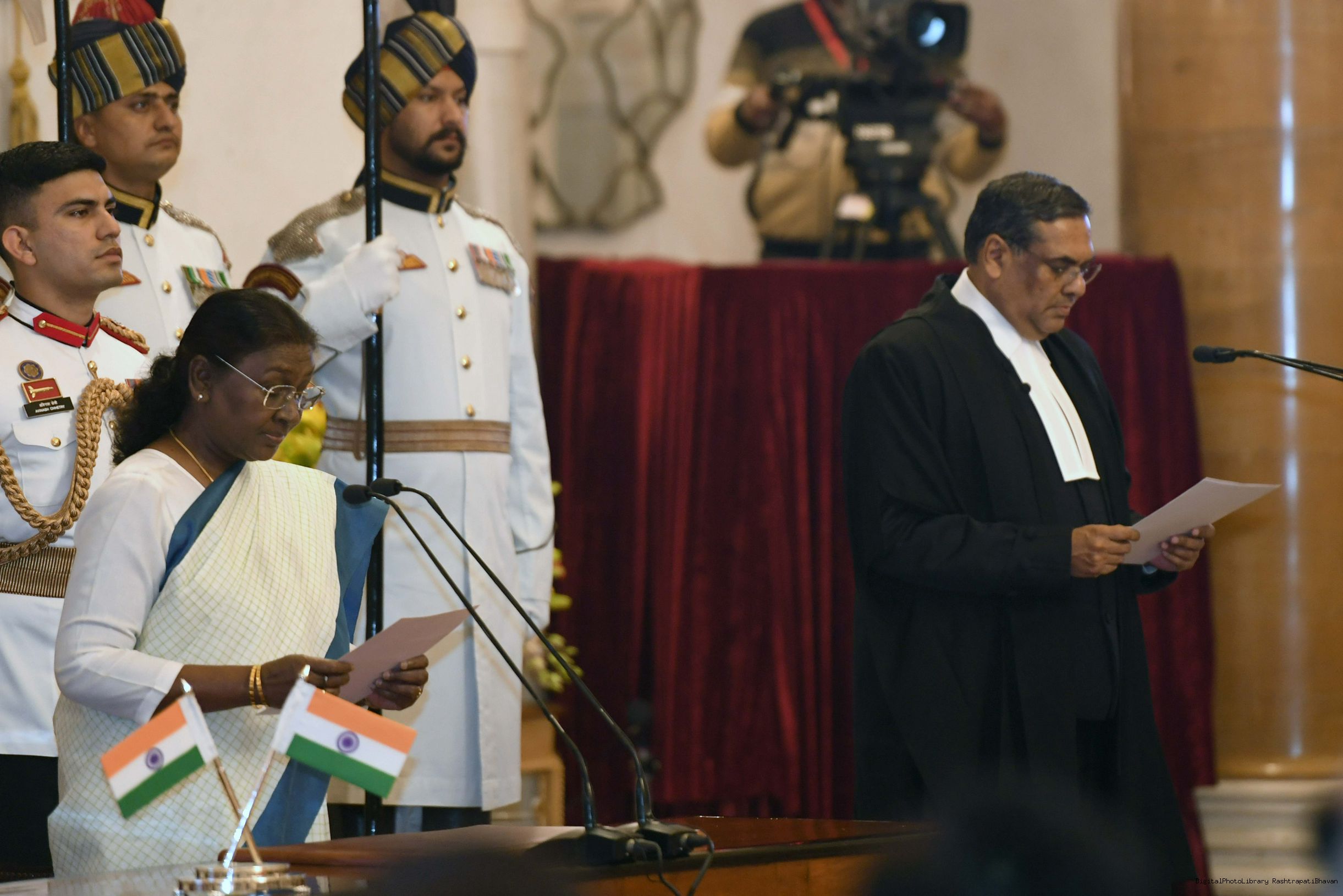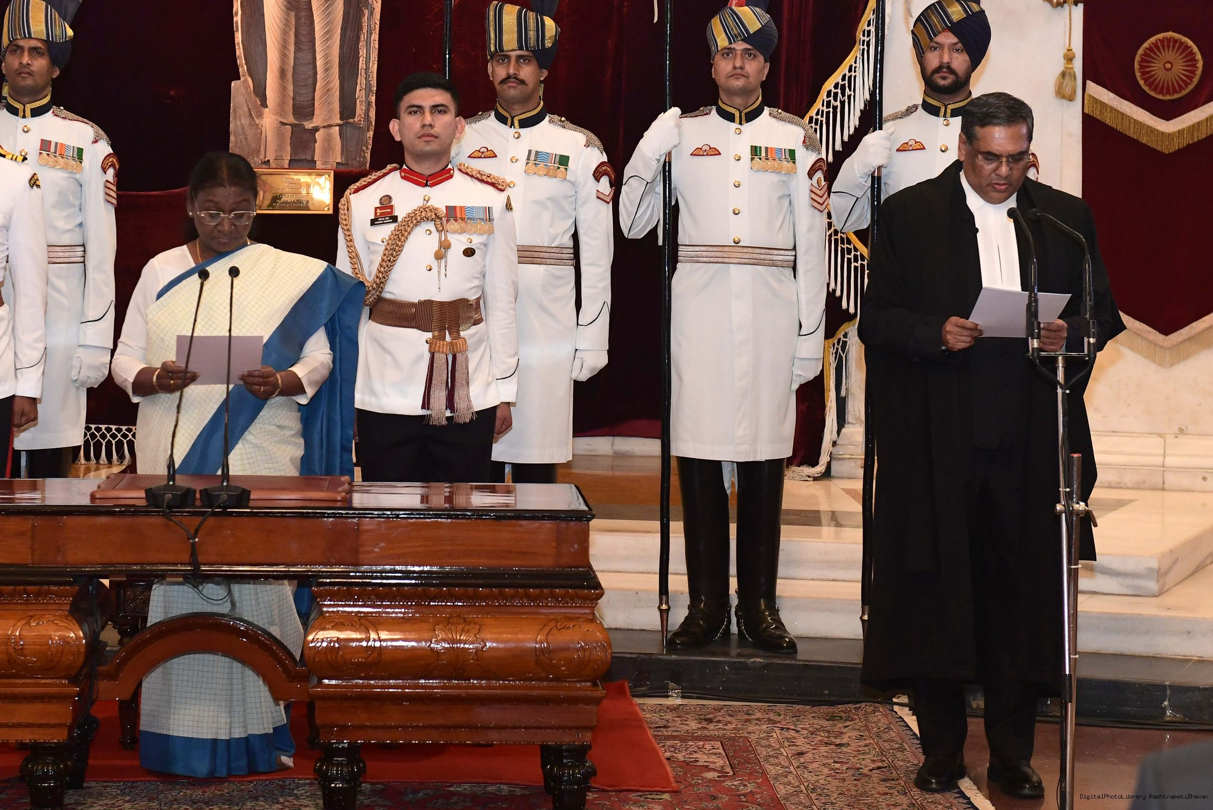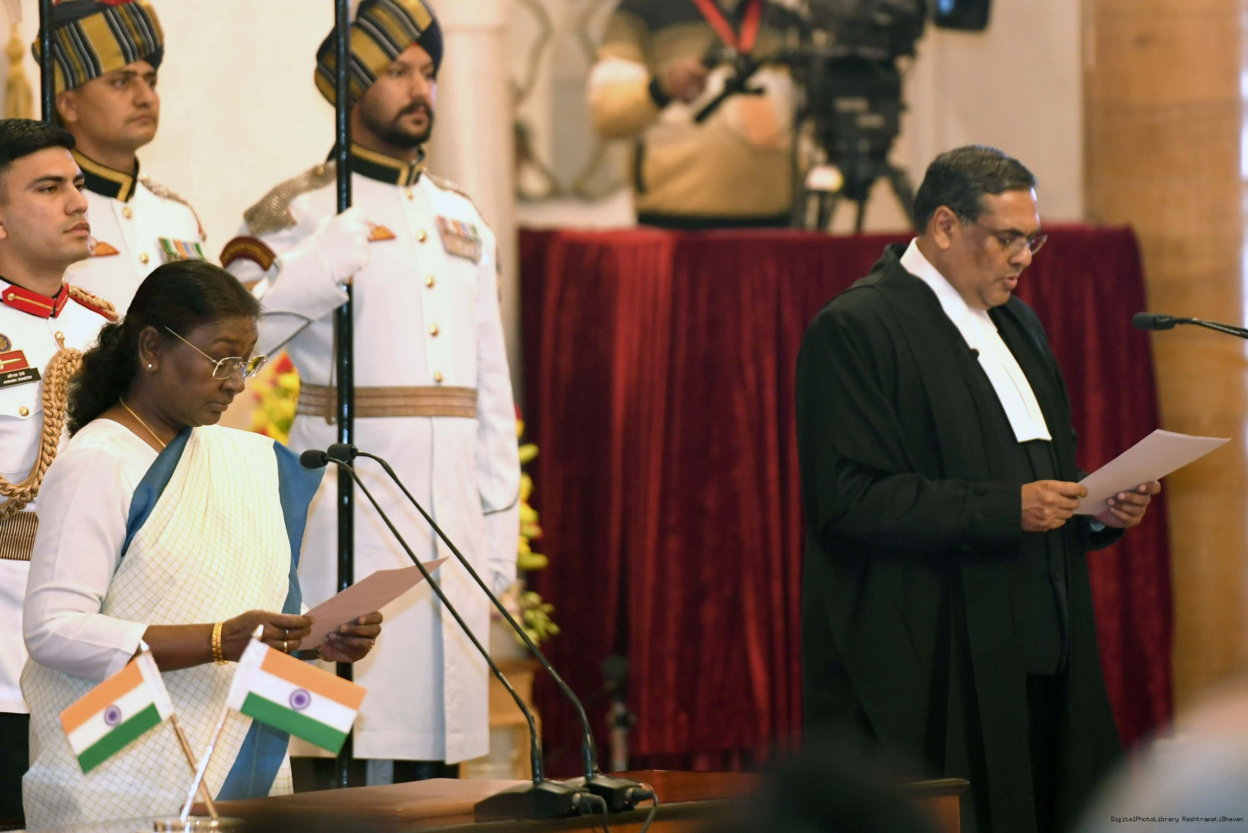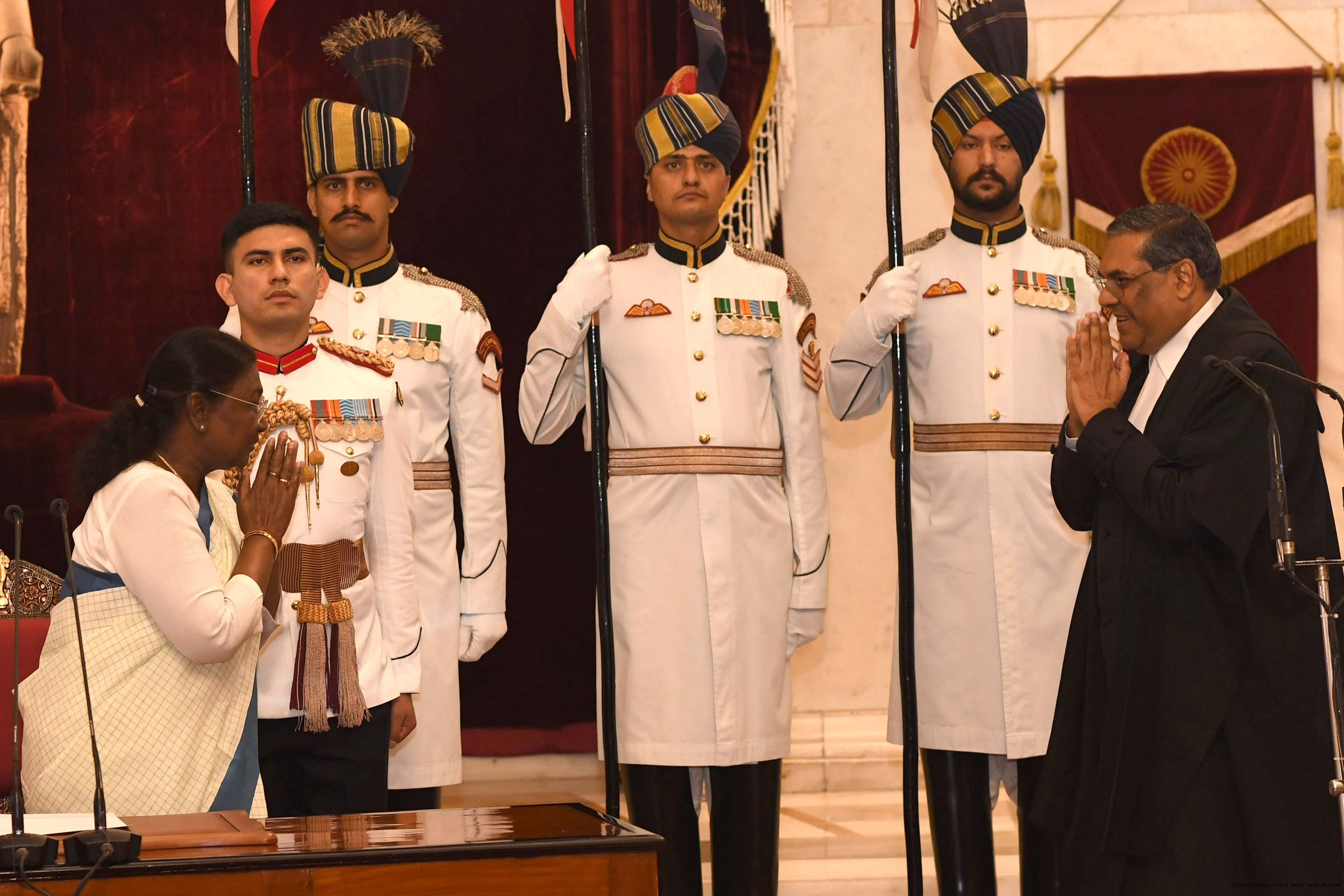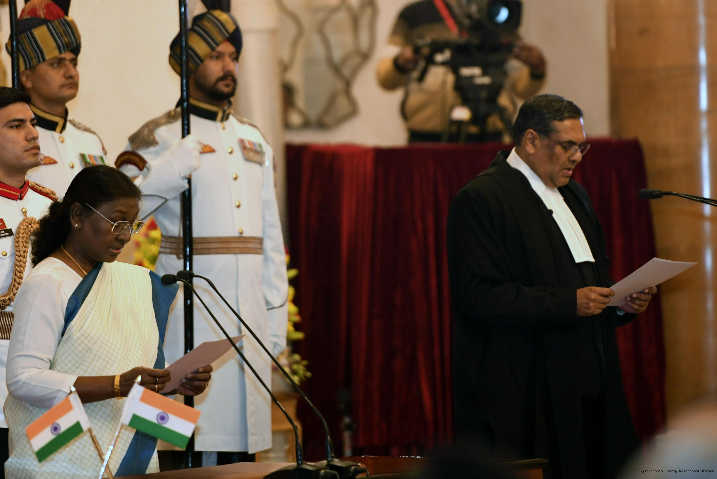 | Caption: | The President of India, Smt. Droupadi Murmu administered the oath of office to Shri Justice Sanjiv Khanna as the Chief Justice of the Supreme Court of India, at a Swearing-in-Ceremony in Rashtrapati Bhavan, New Delhi on November 11, 2024. |