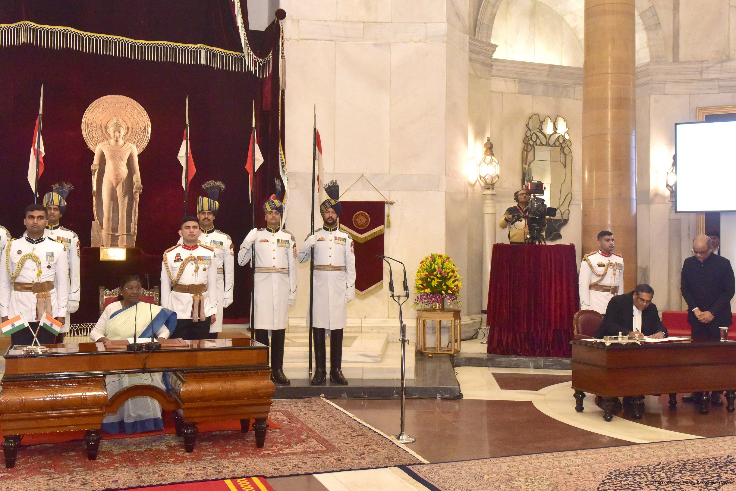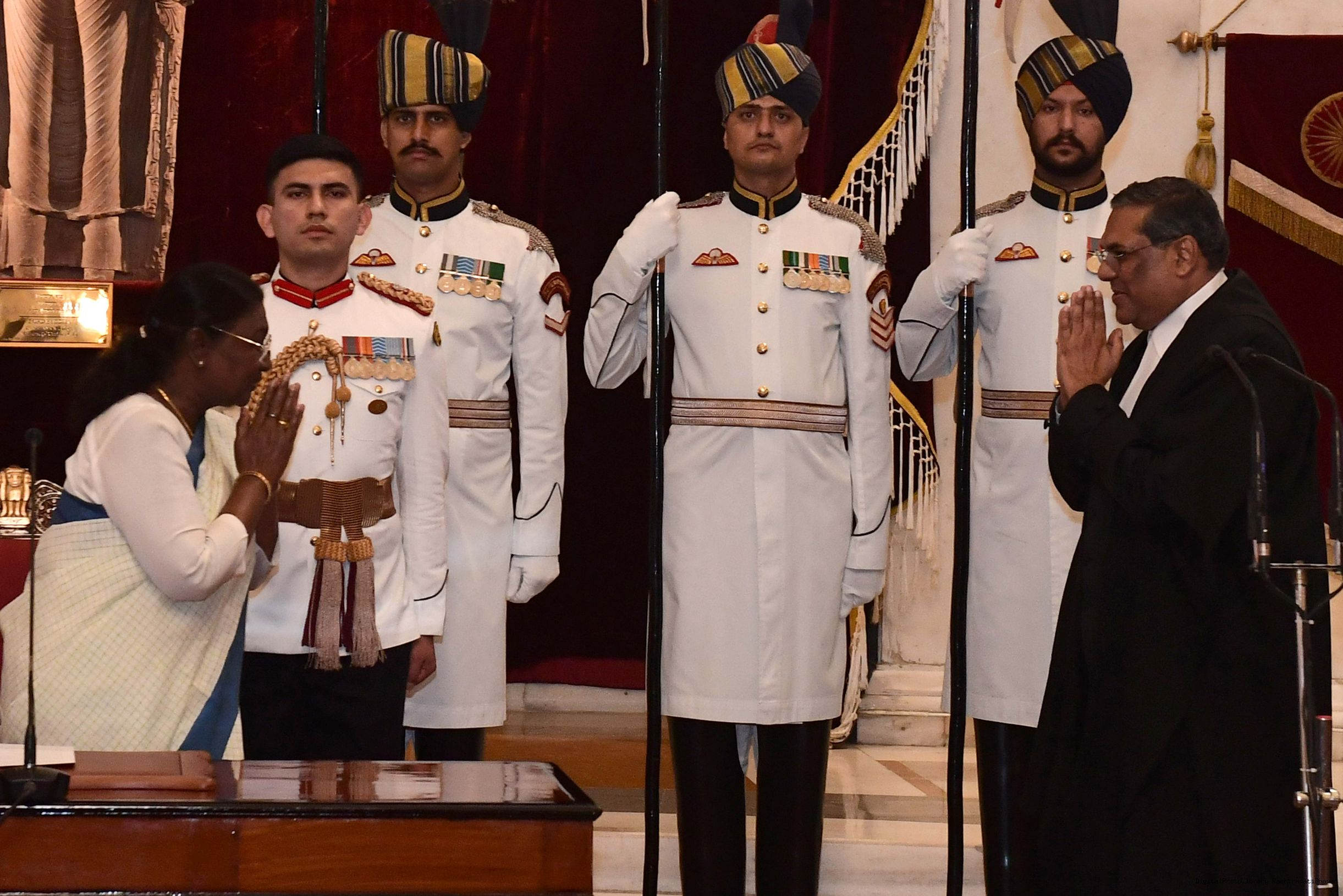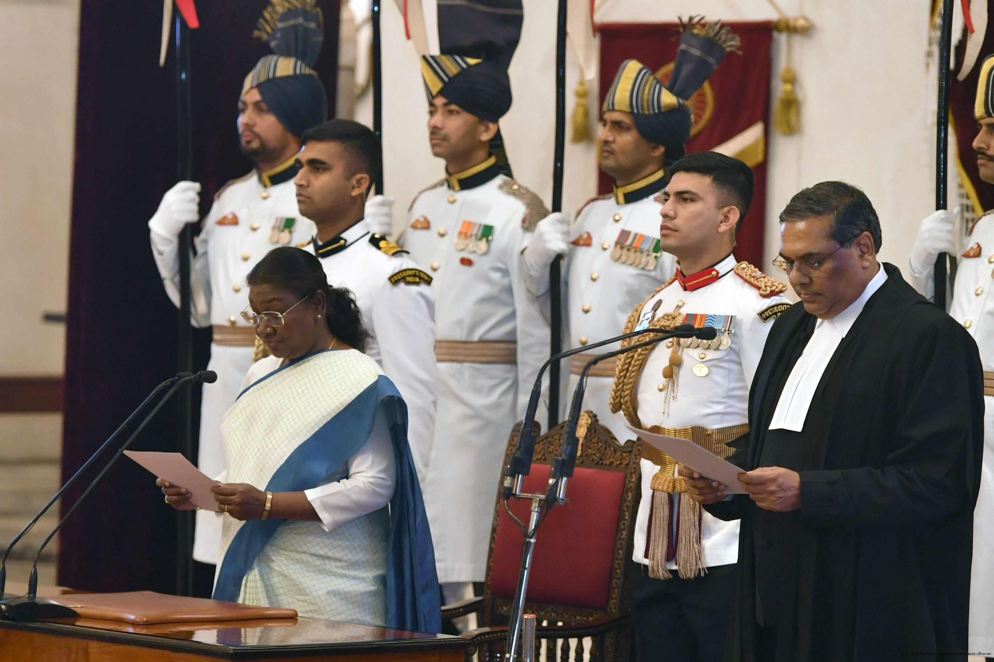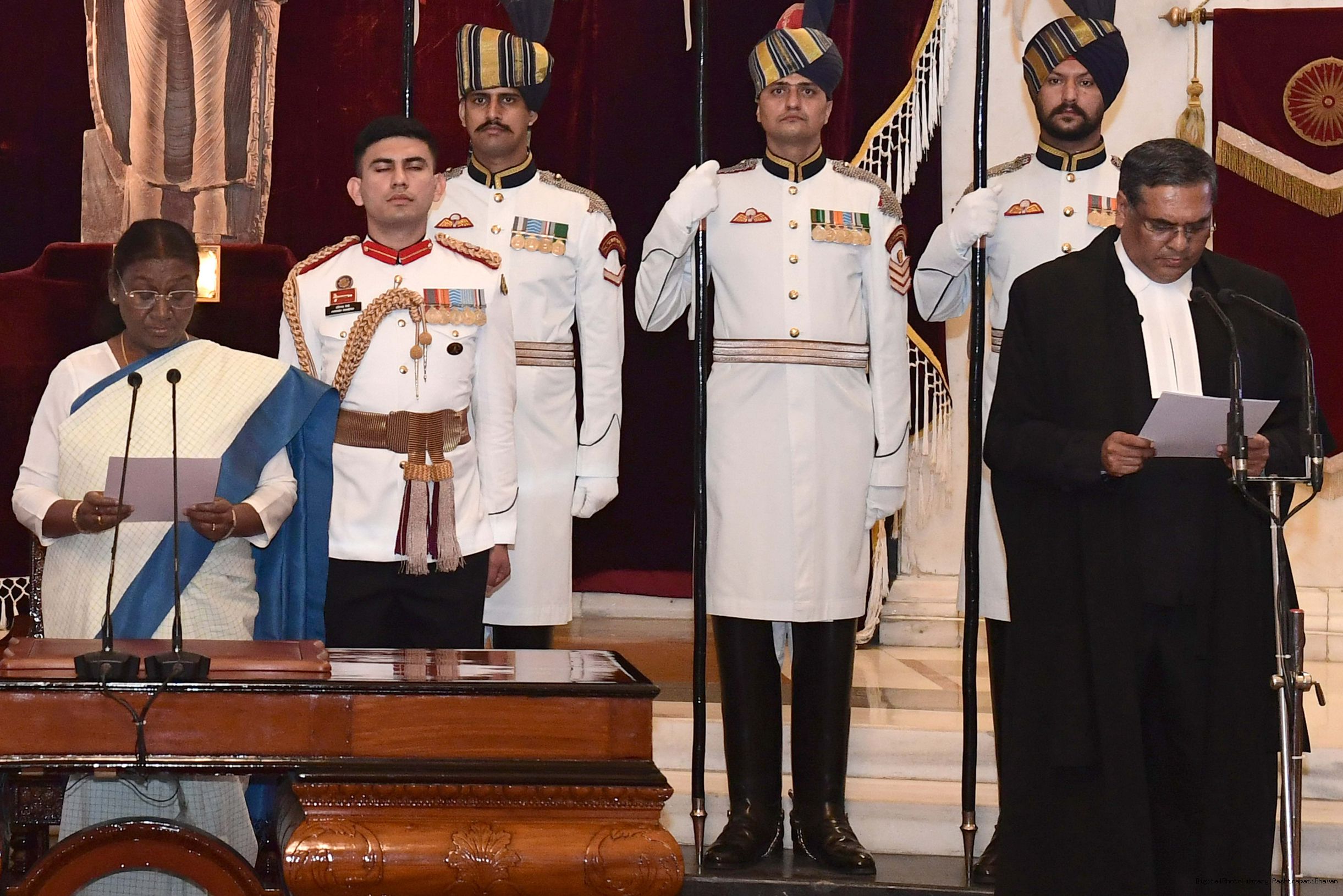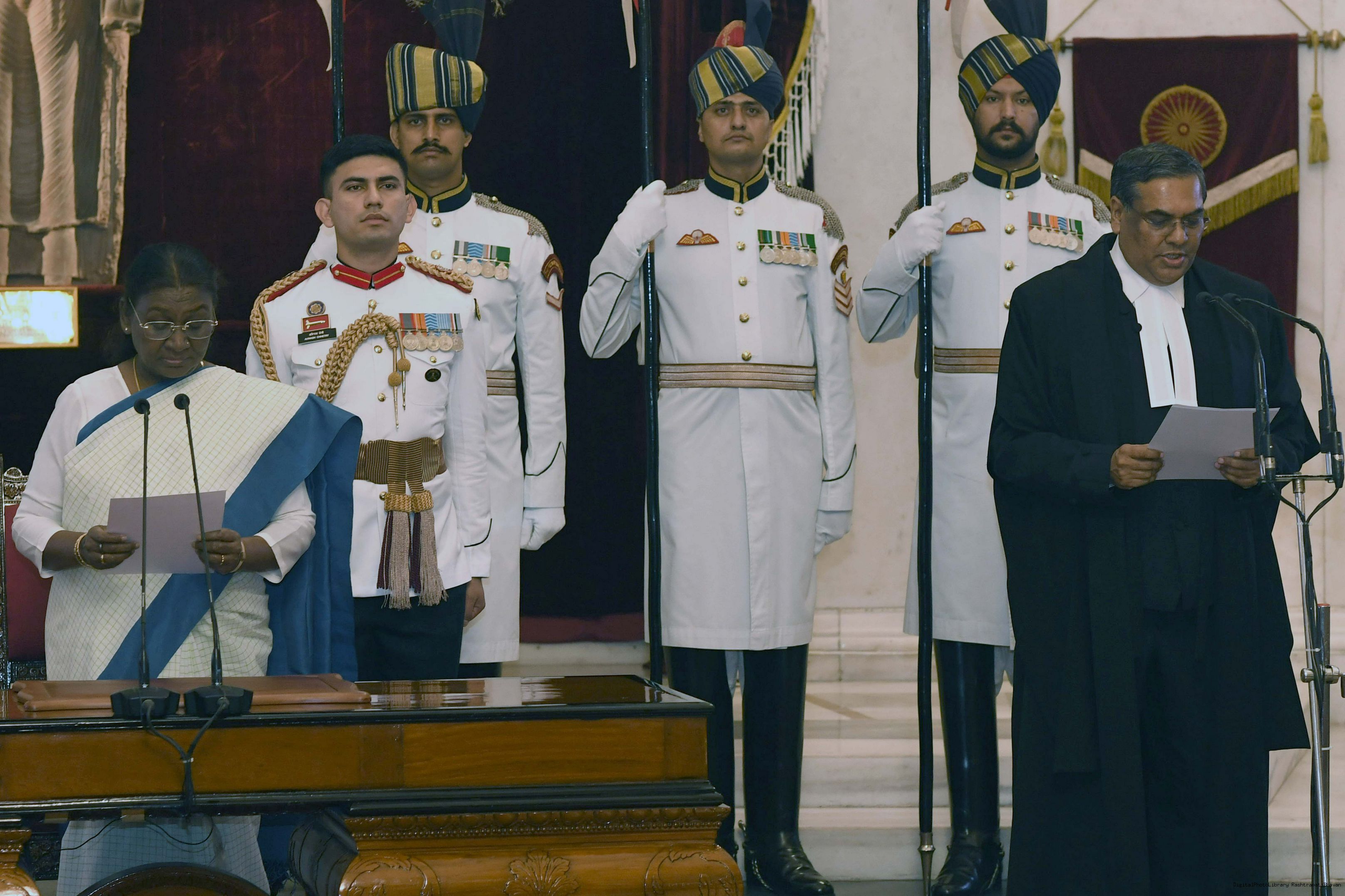 | Caption: | The President of India, Smt. Droupadi Murmu administered the oath of office to Shri Justice Sanjiv Khanna as the Chief Justice of the Supreme Court of India, at a Swearing-in-Ceremony in Rashtrapati Bhavan, New Delhi on November 11, 2024. |