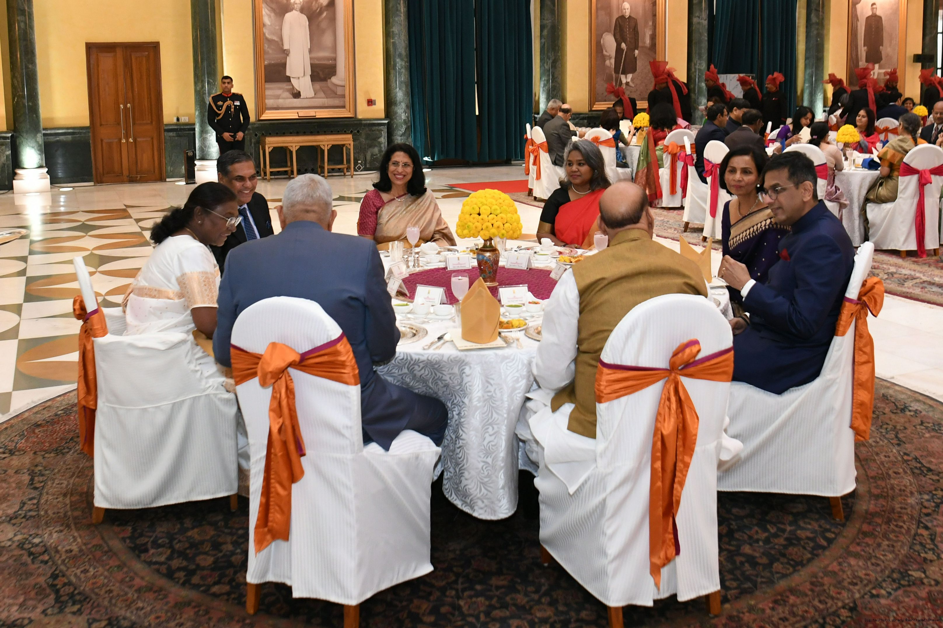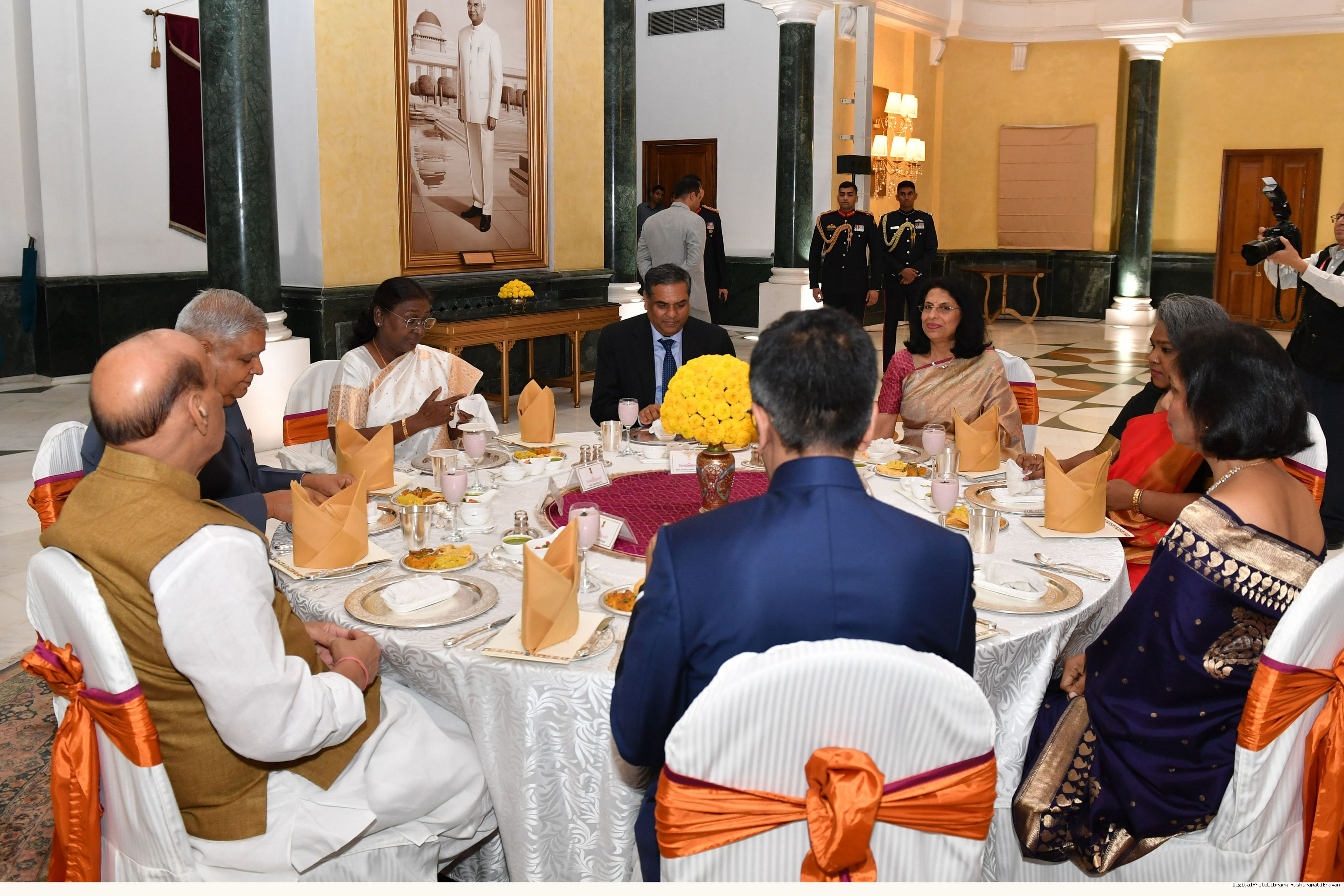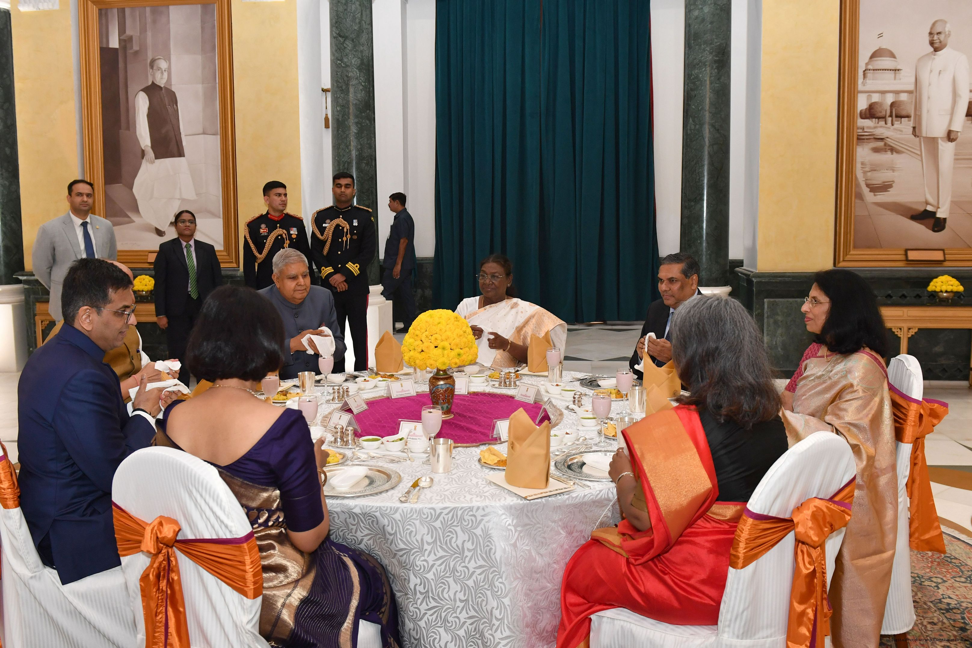 | Caption: | The President of India Smt. Droupadi Murmu hosted a dinner at Rashtrapati Bhavan Cultural Centre to welcome the newly sworn-in Chief Justice of India, Shri Justice Sanjiv Khanna on November 11, 2024. |