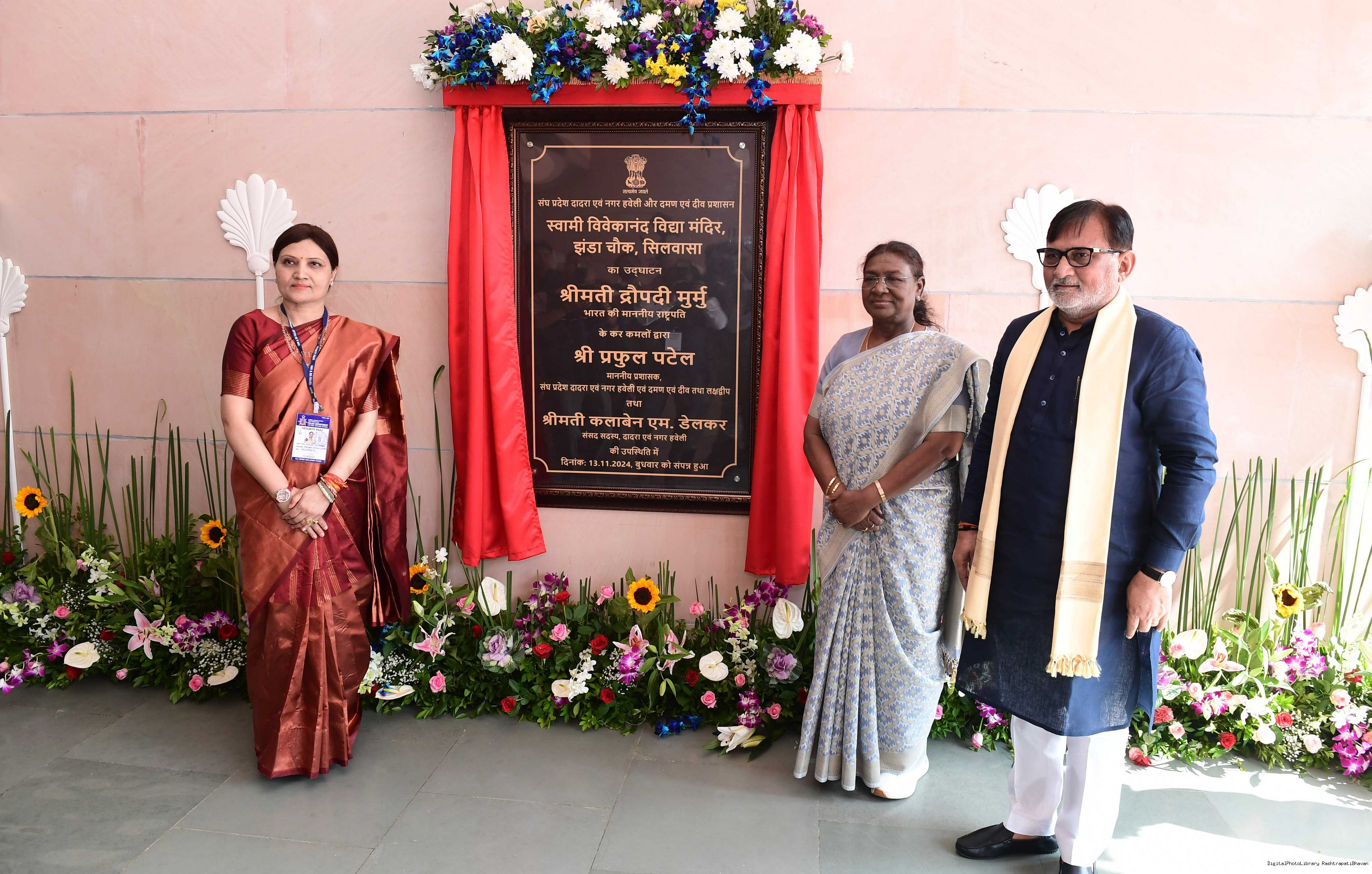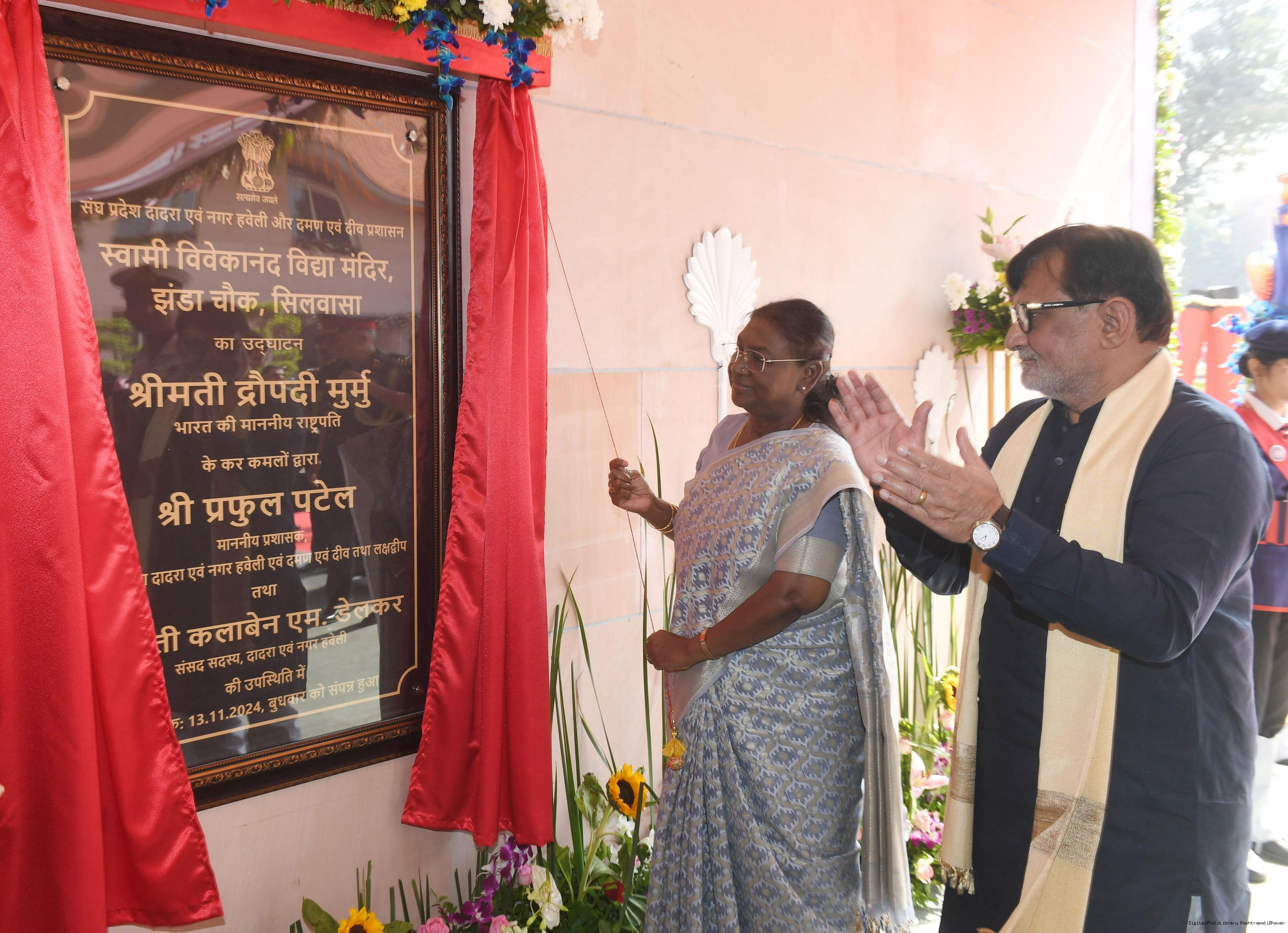 | Caption: | The President of India, Smt Droupadi Murmu inaugurated Swami Vivekananda Vidya Mandir, Zanda Chowk and addressed a public function at Silvassa, Dadra and Nagar Haveli and Daman and Diu on November 13, 2024. |