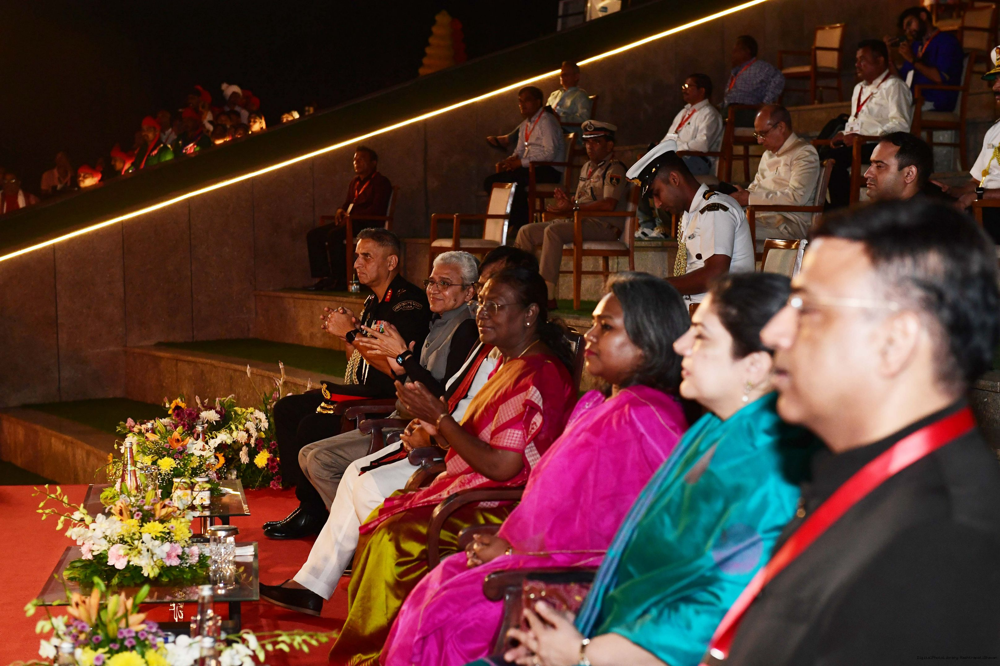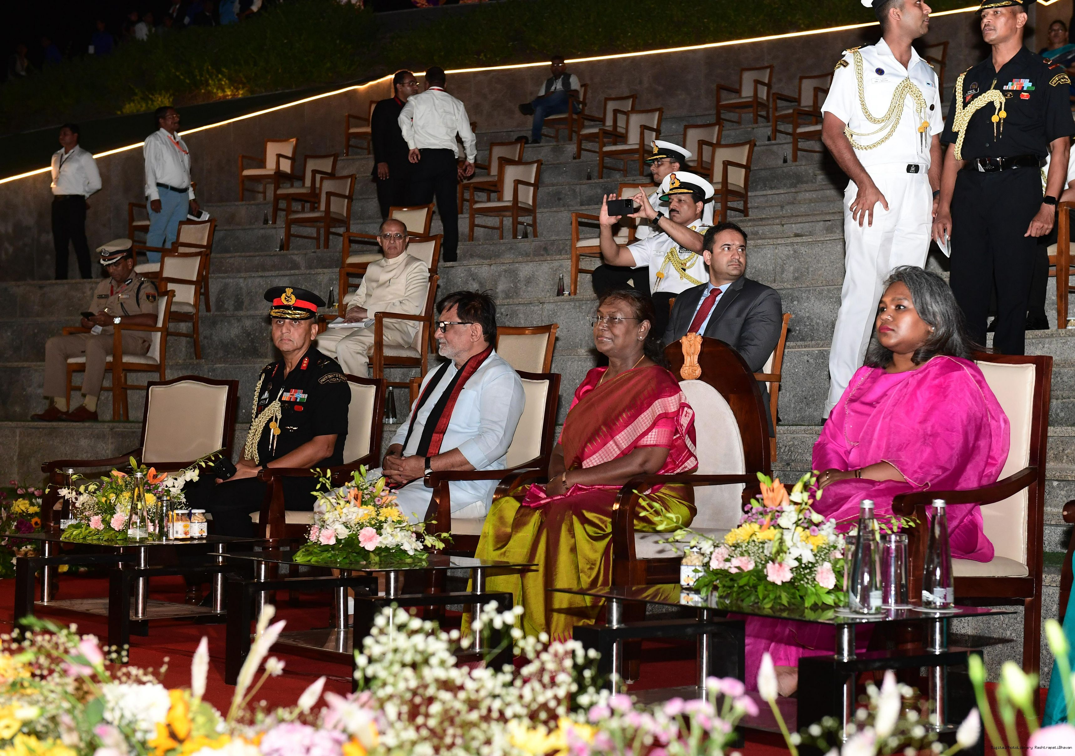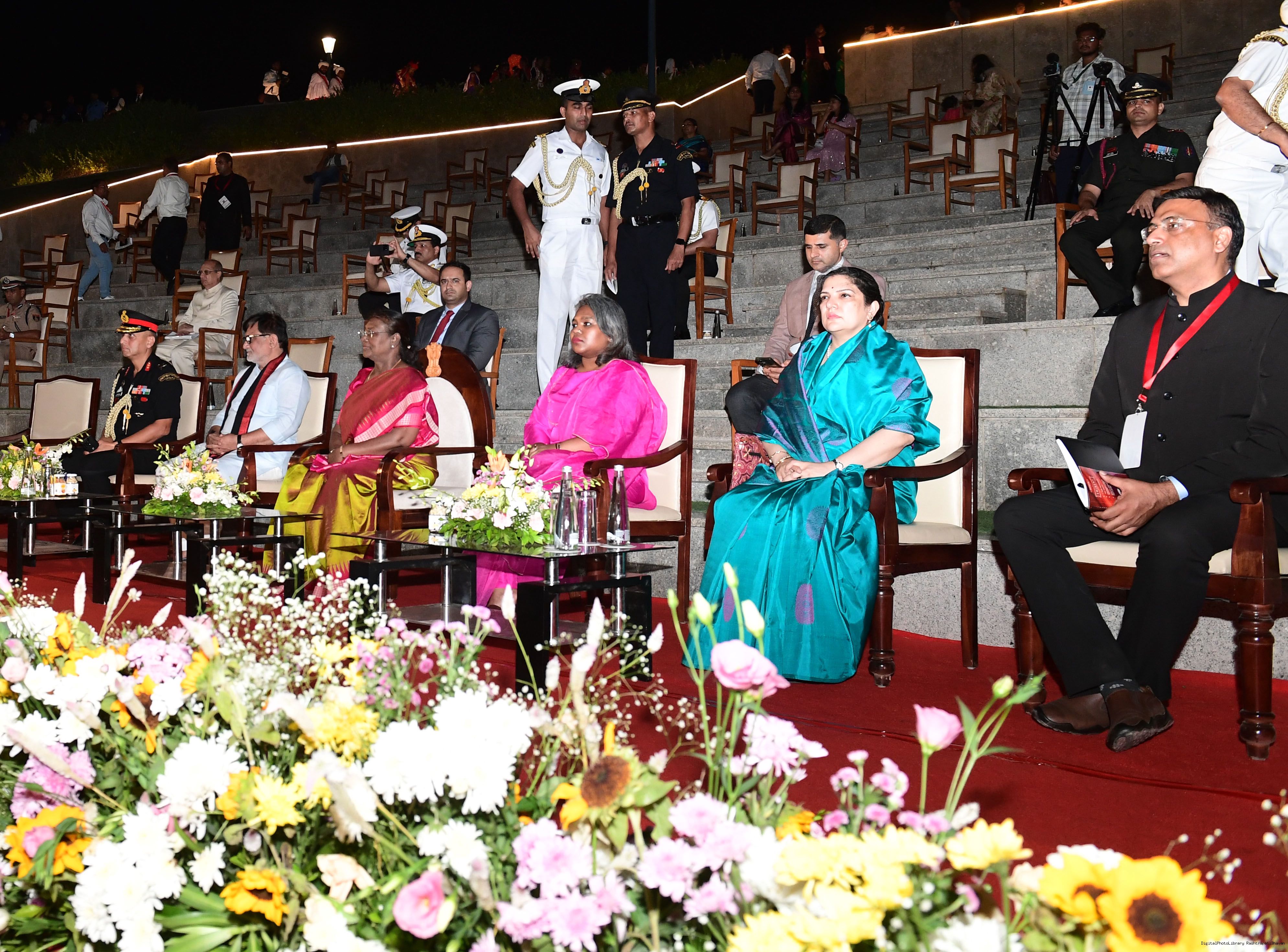 | Caption: | The President of India Smt. Droupadi Murmu witnessed cultural performances at the INS Khukri Memorial Amphitheatre, Dadra and Nagar Haveli and Daman and Diu on November 13, 2024. |