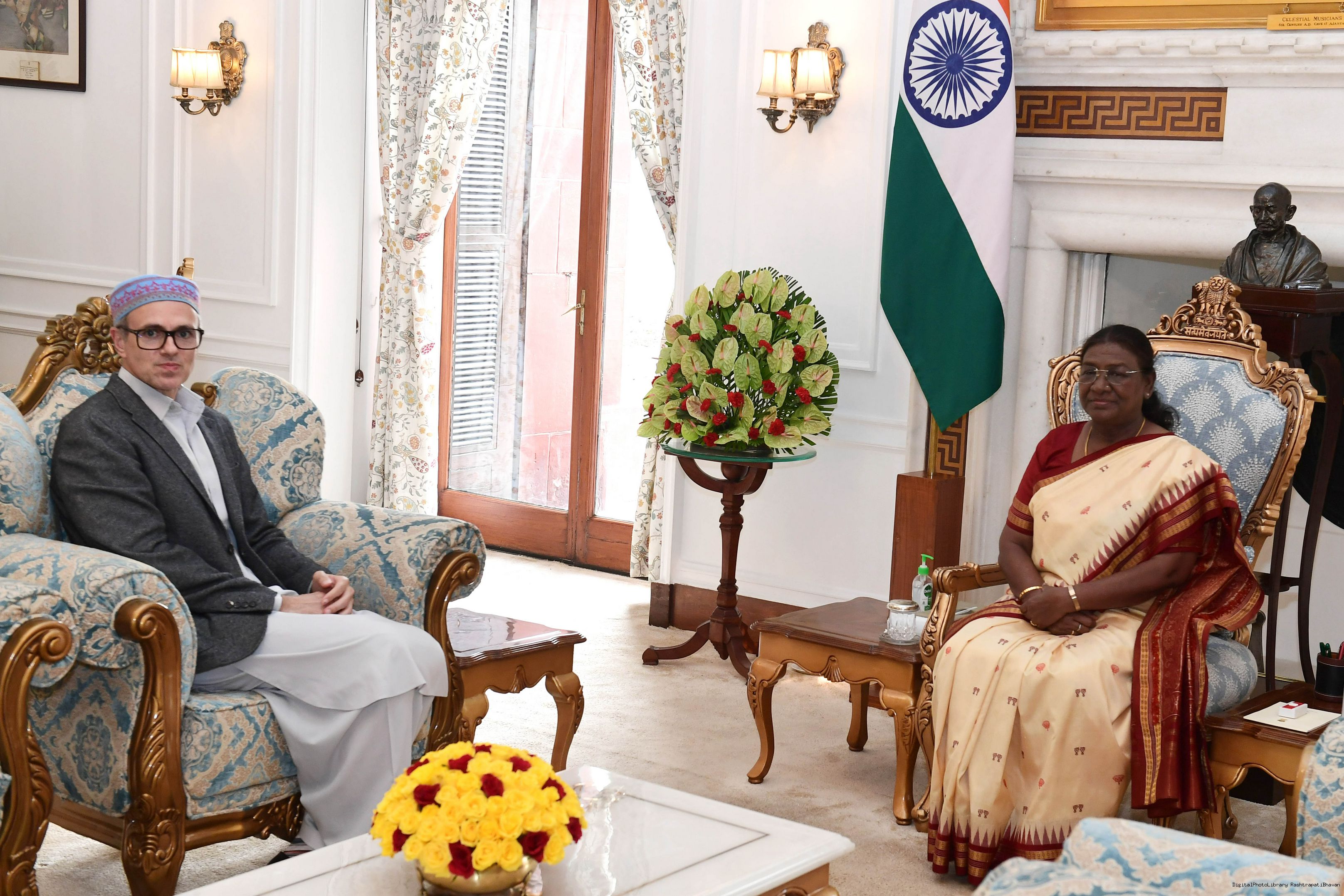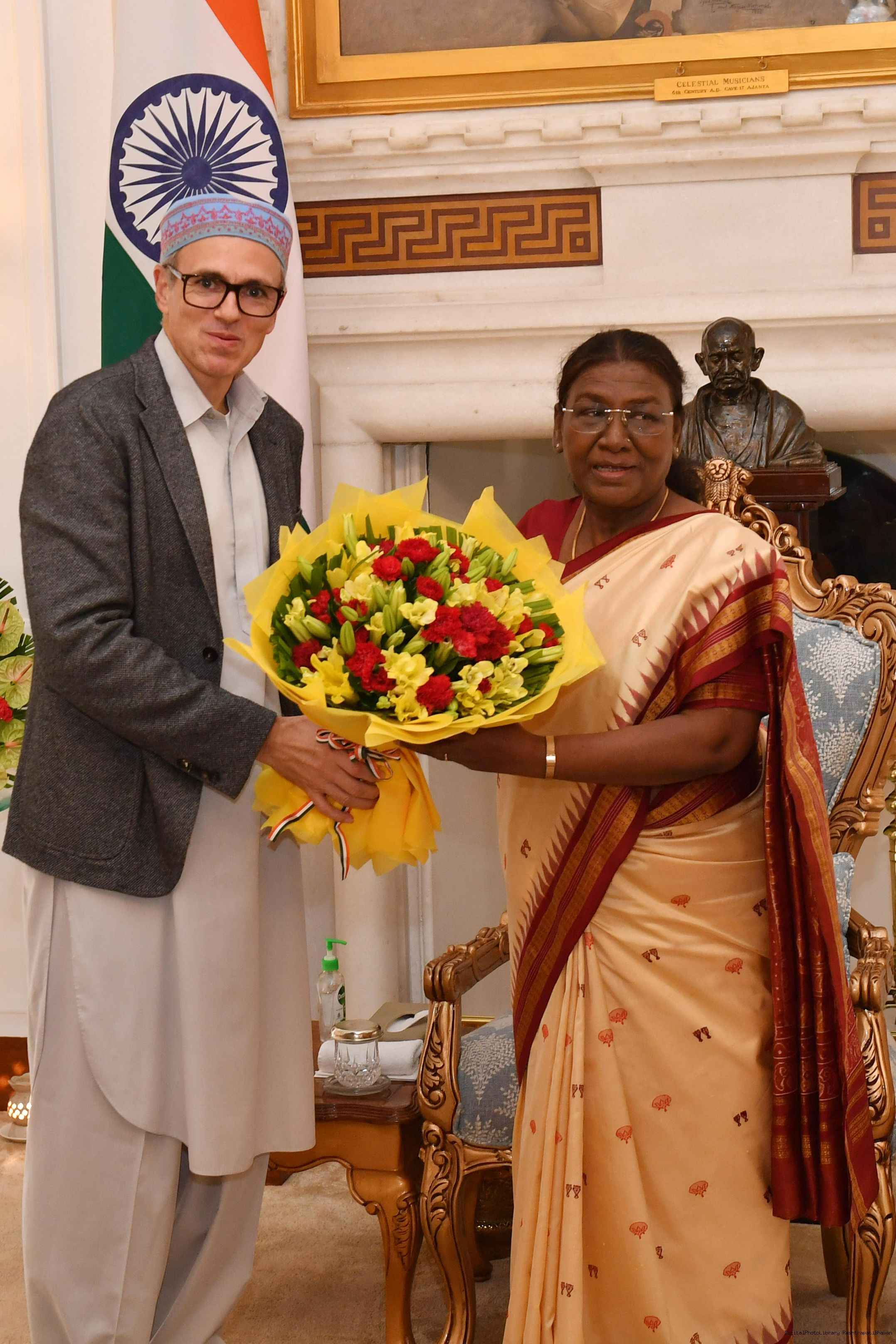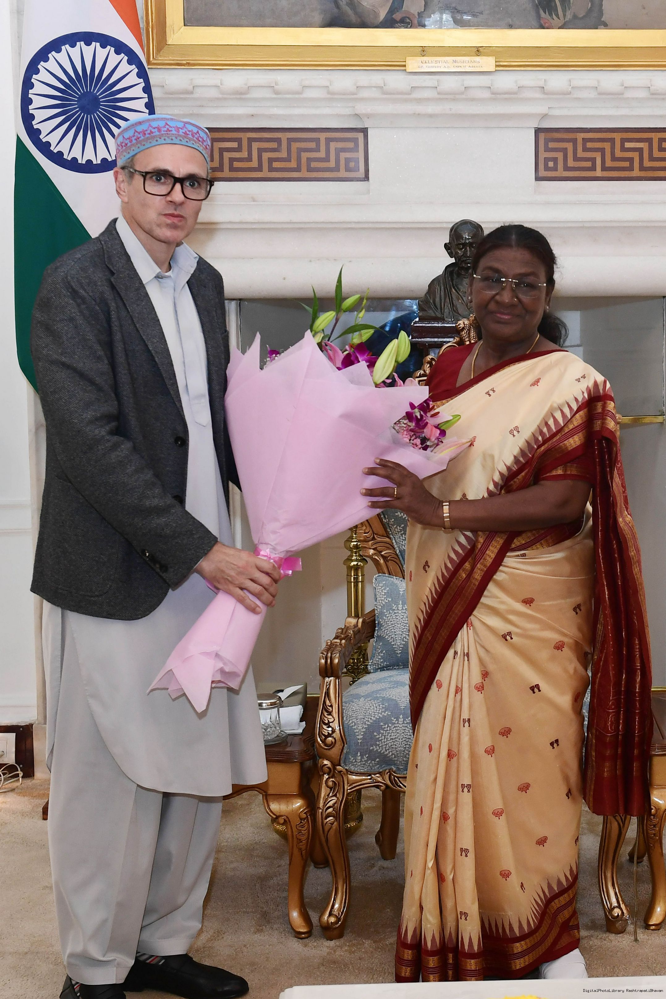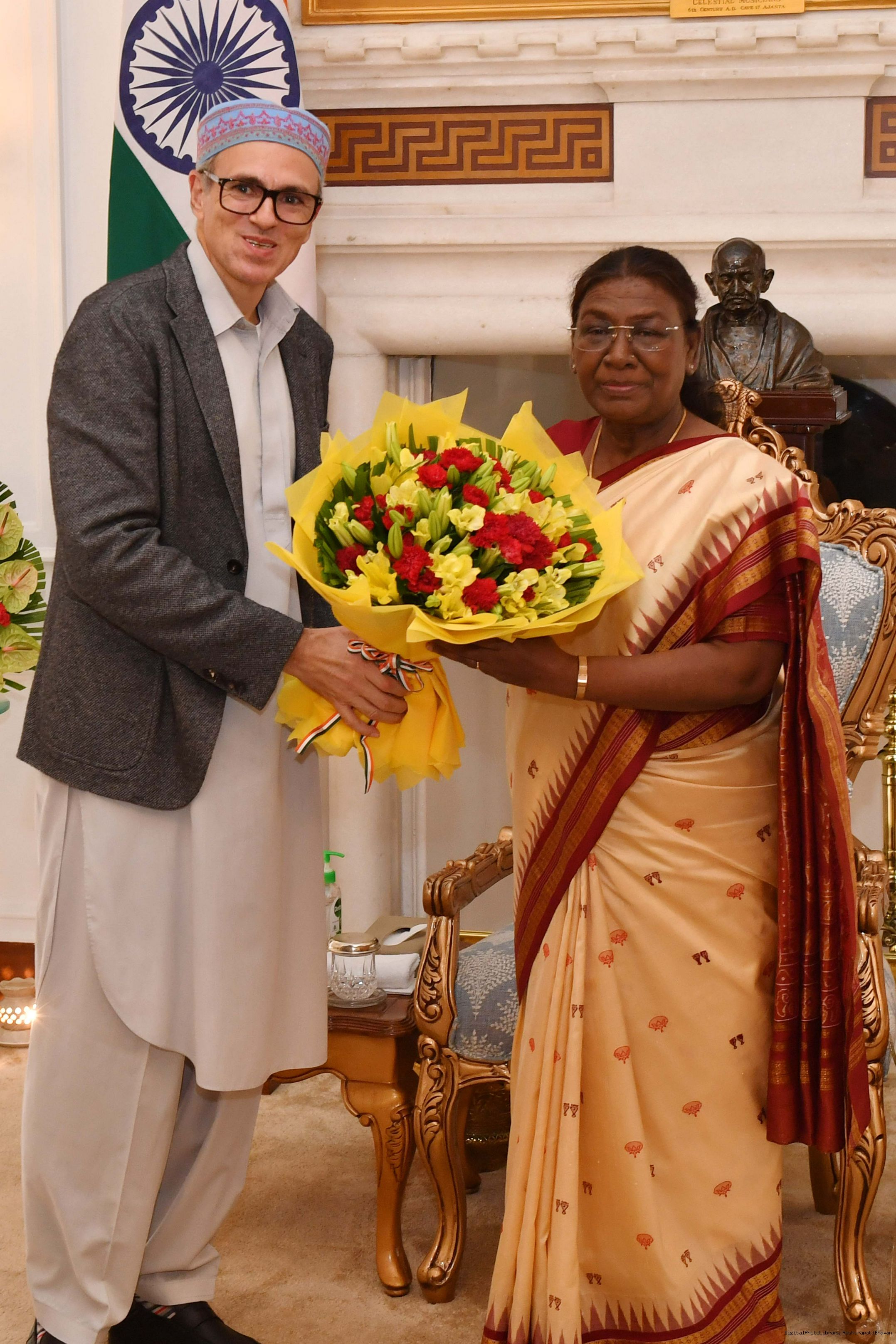 | Caption: | The Chief Minister of the Union Territory of Jammu and Kashmir, Shri Omar Abdullah called on the President of India Smt. Droupadi Murmu at Rashtrapati Bhavan on November 14, 2024. |