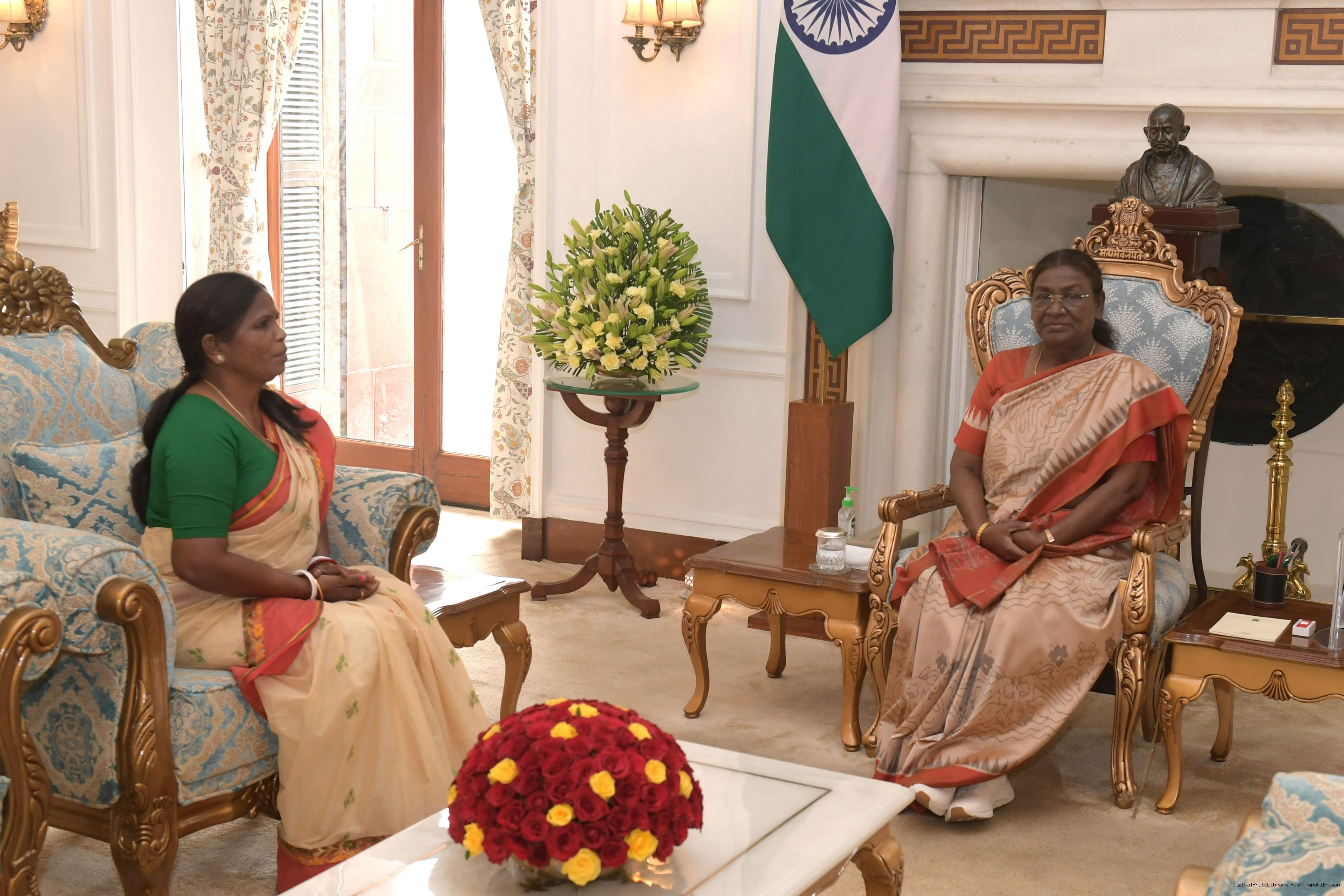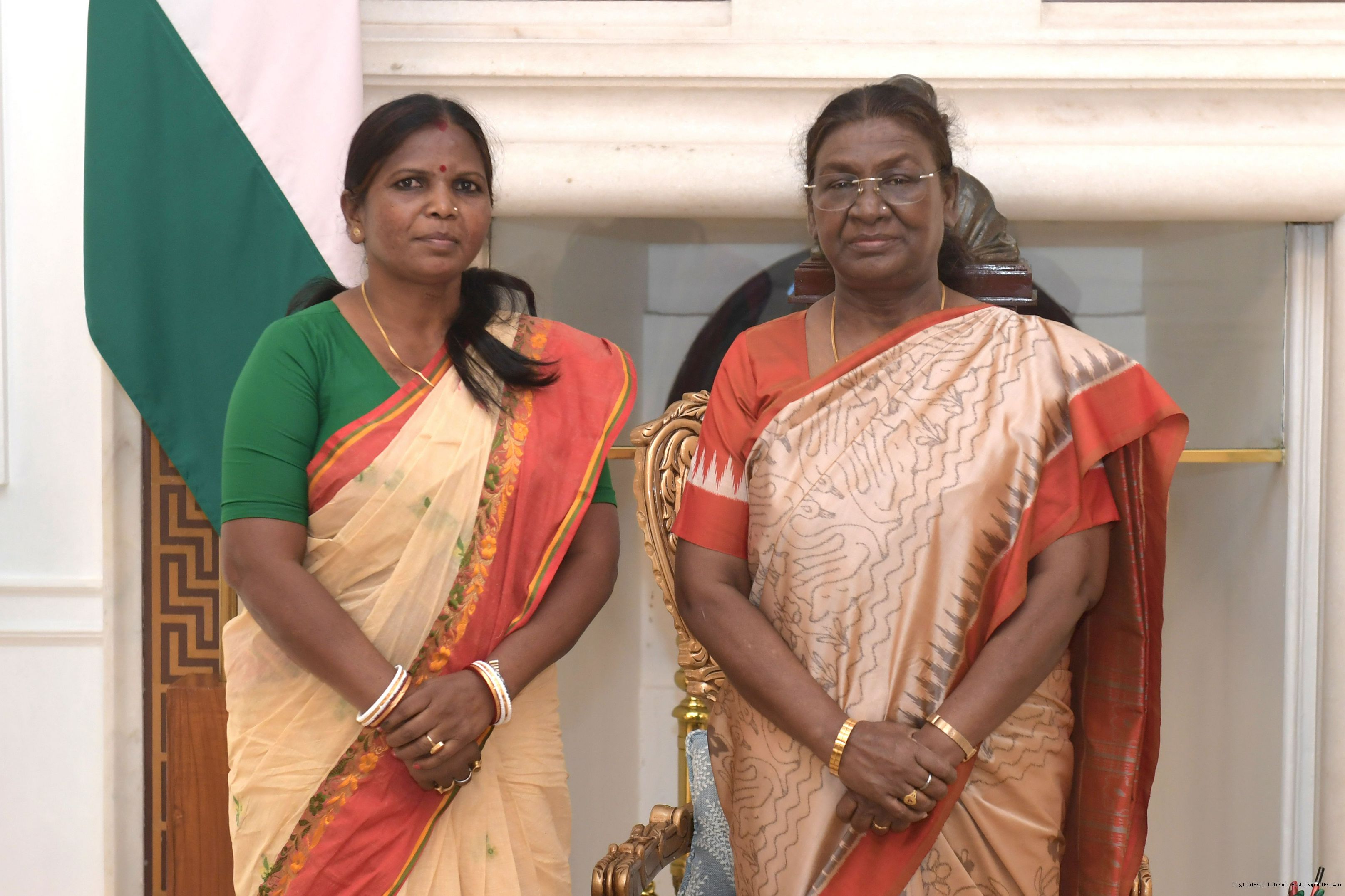 | Caption: | Ms. Jamuna Tudu, Padma Shri Awardee meeting with the President of India Smt. Droupadi Murmu at Rashtrapati Bhavan on November 18, 2024. |