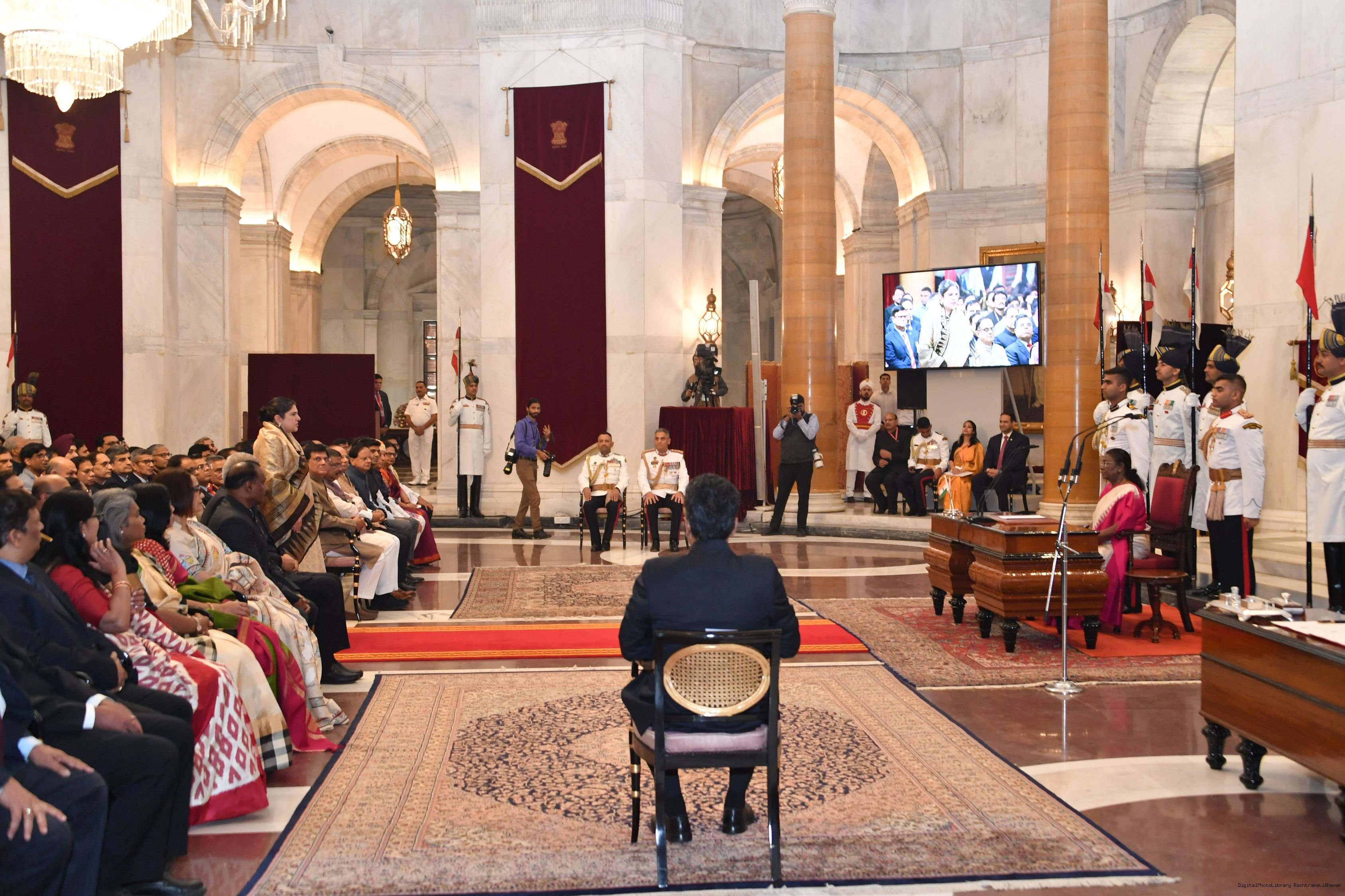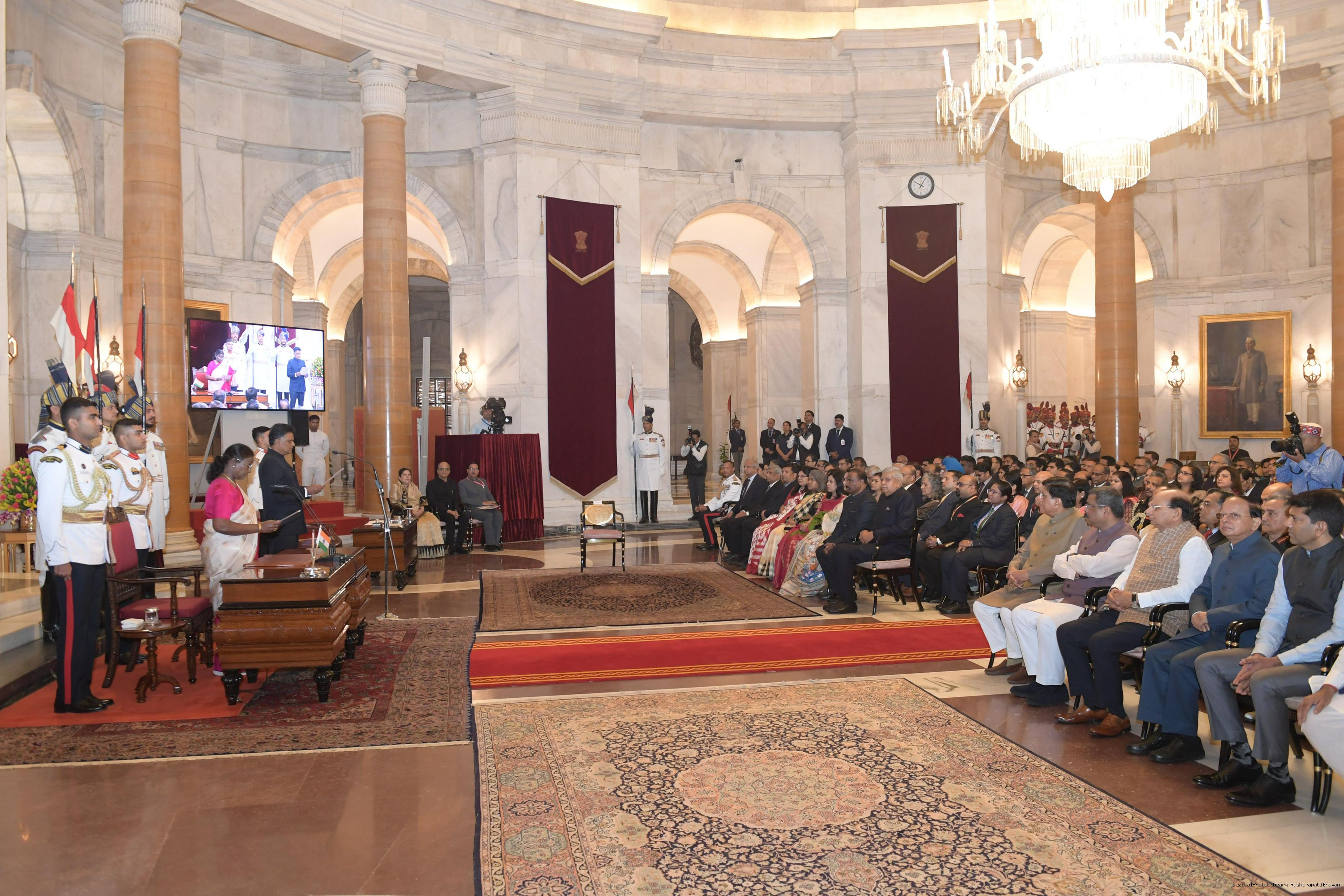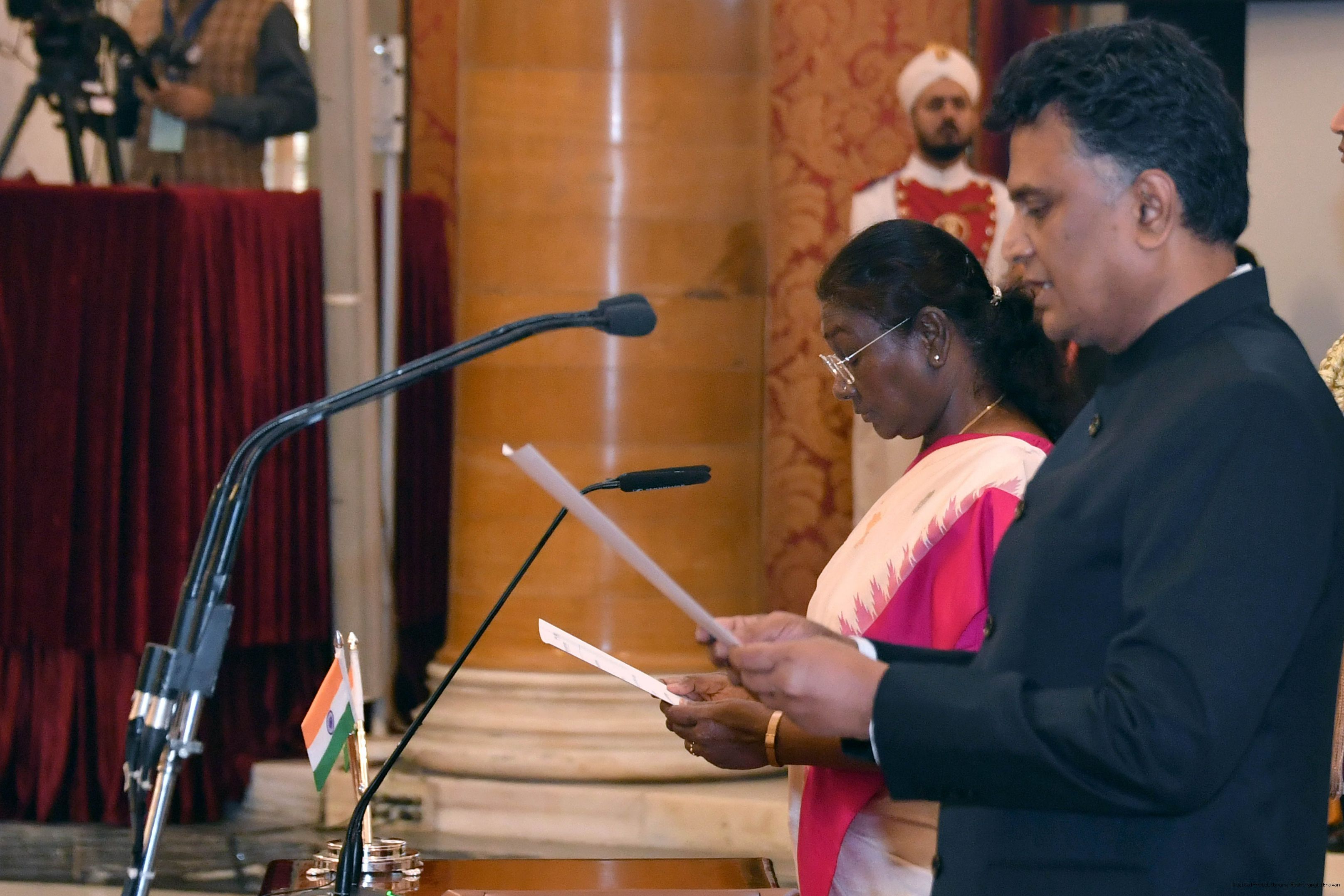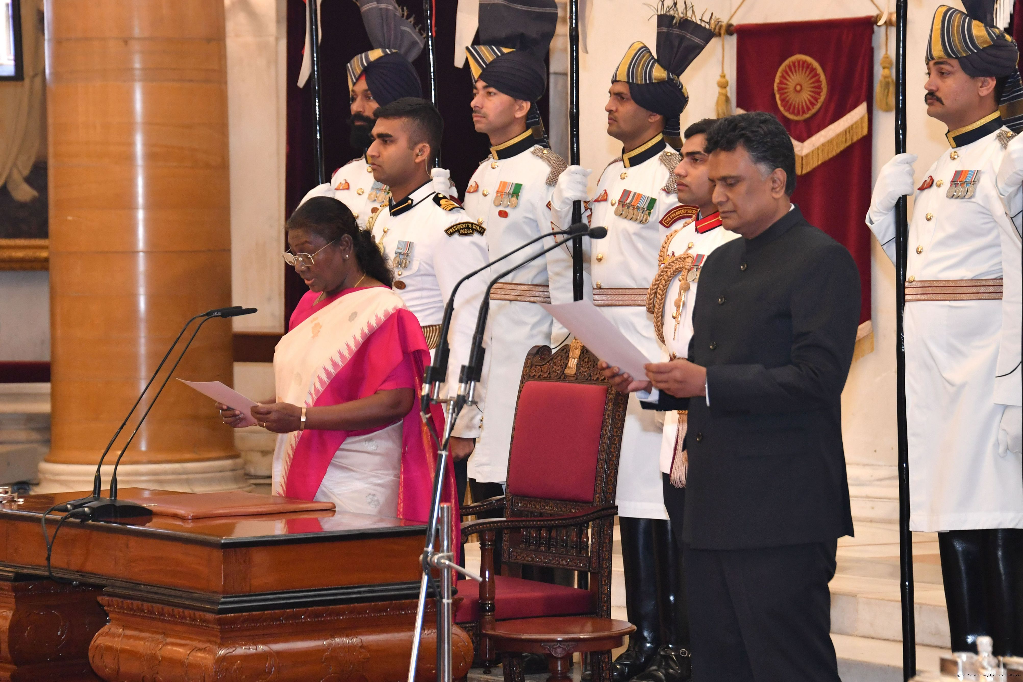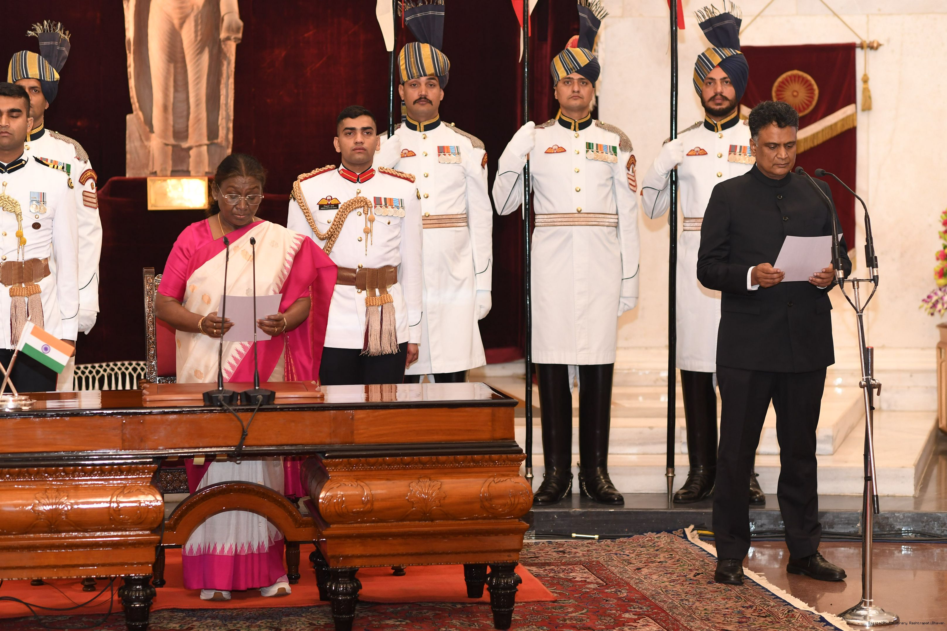 | Caption: | The President of India Smt. Droupadi Murmu administering the oath of office to Shri K. Sanjay Murthy as the Comptroller and Auditor-General of India, at Rashtrapati Bhavan on November 20, 2024. |