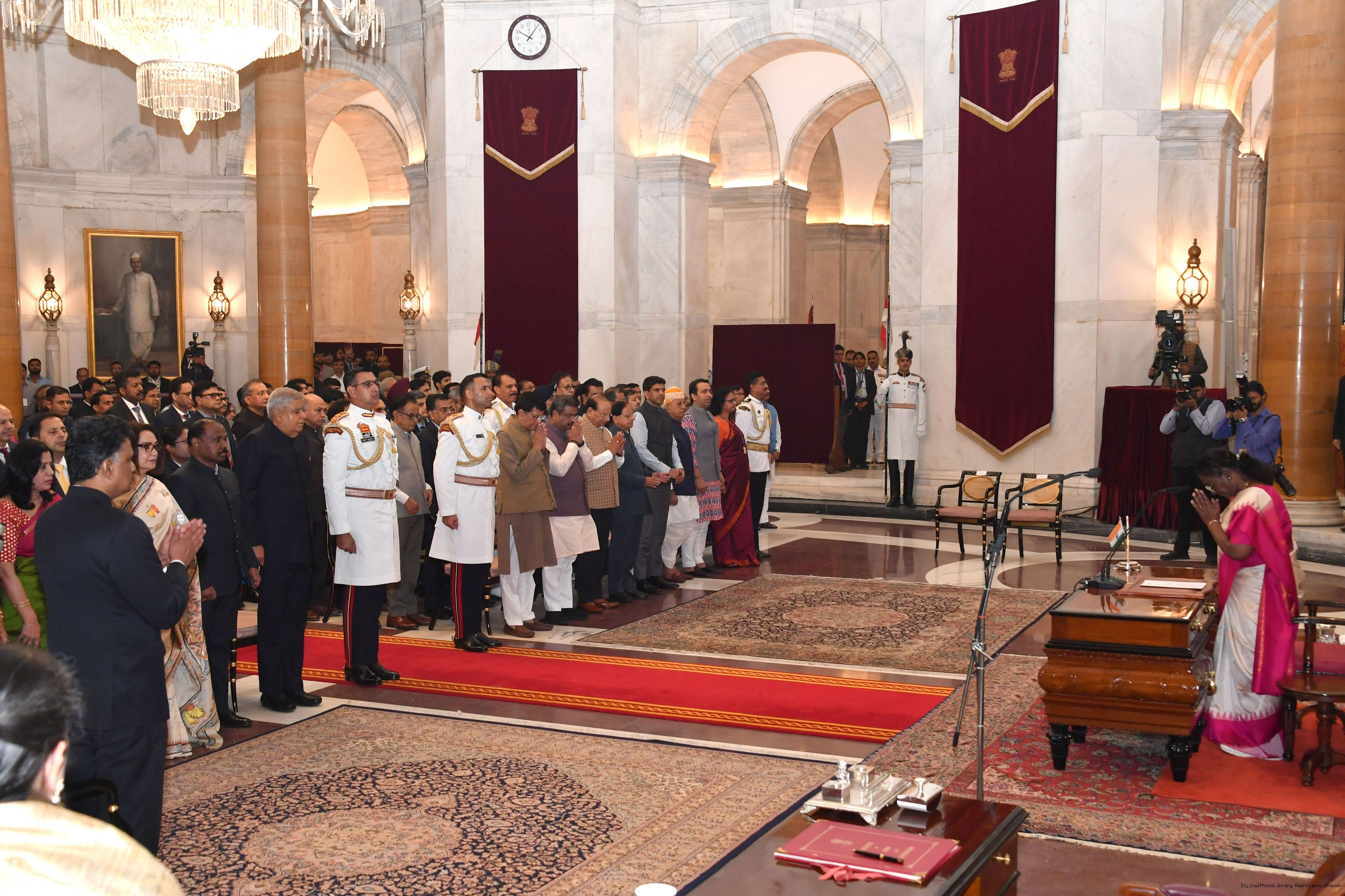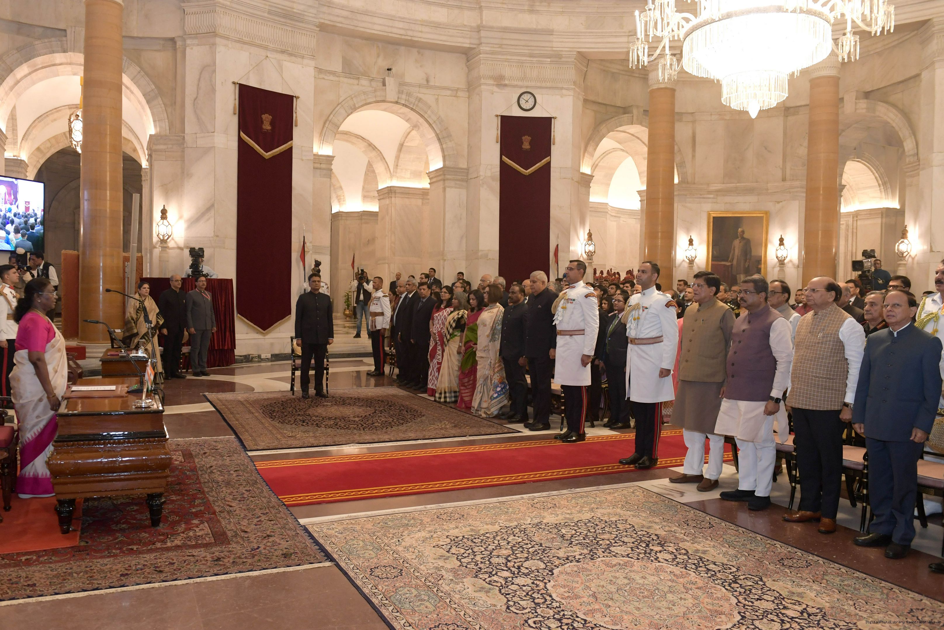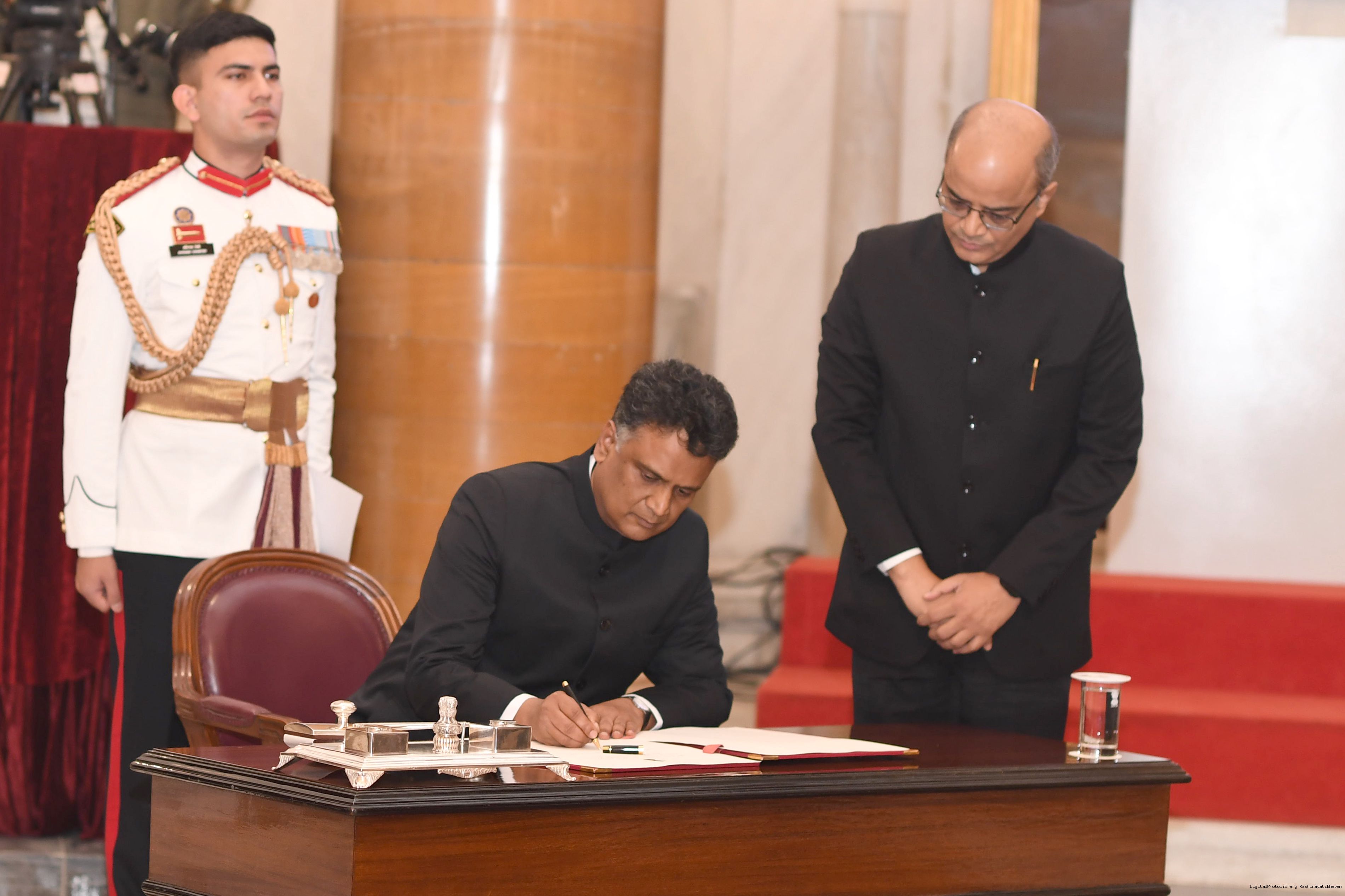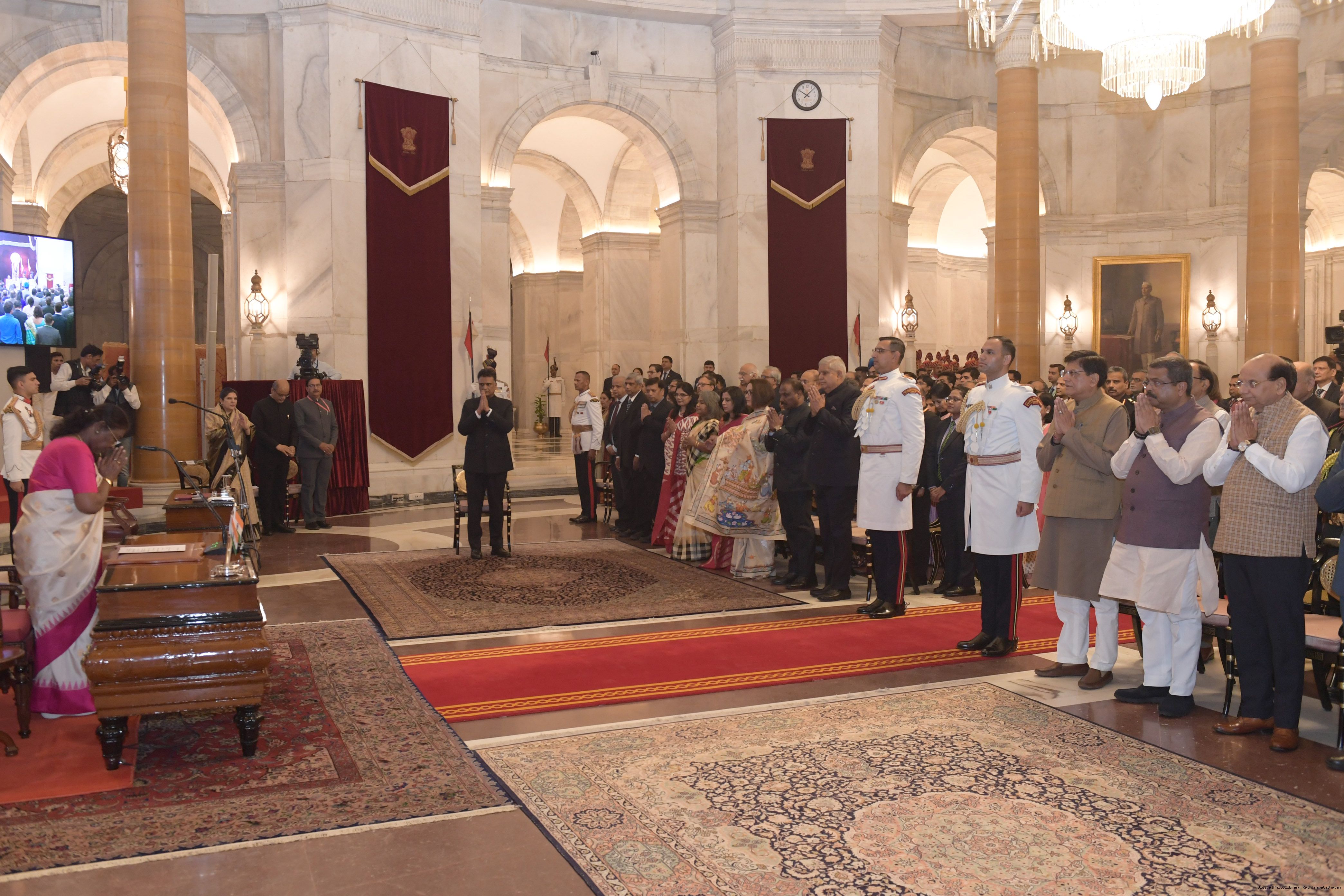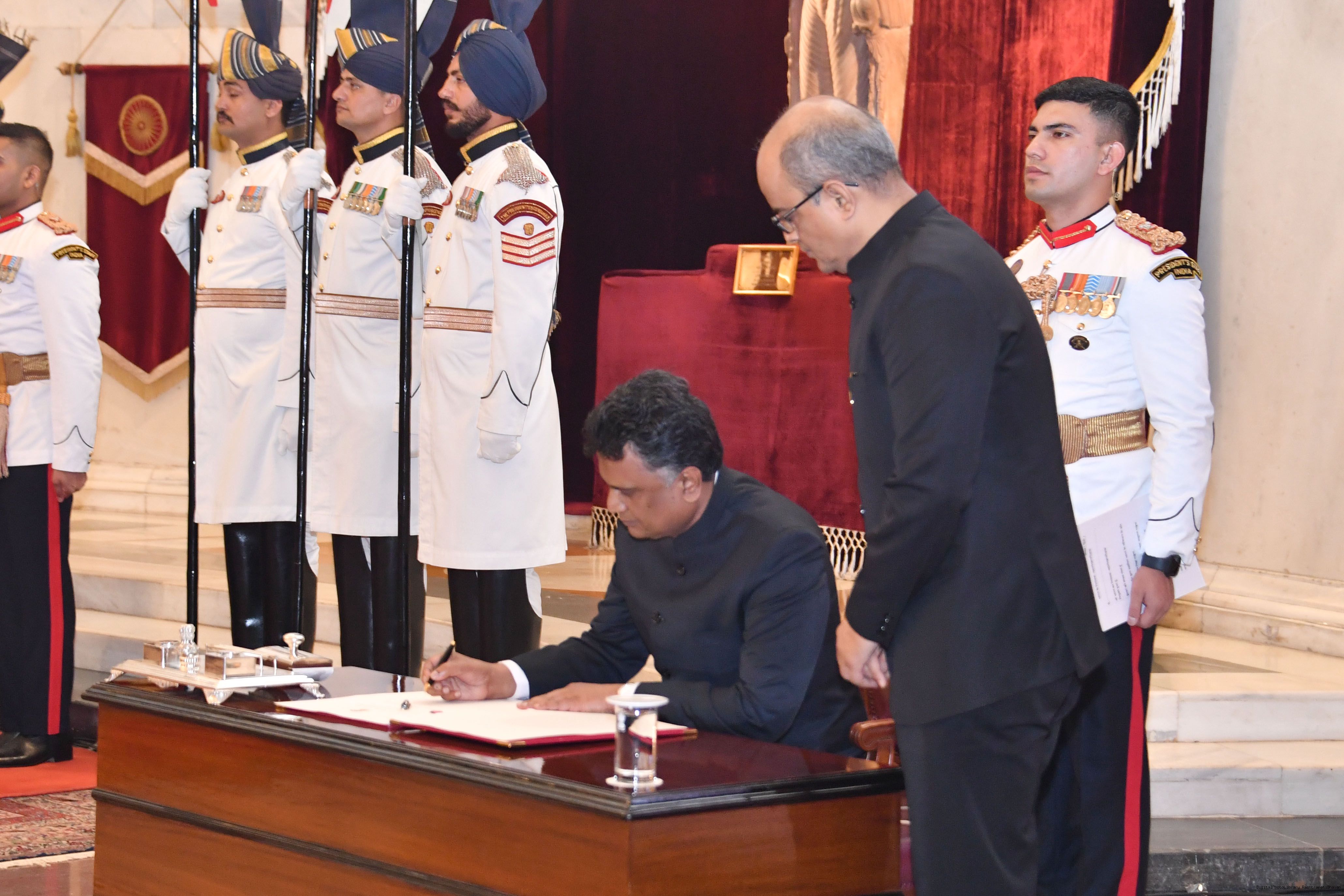 | Caption: | The President of India Smt. Droupadi Murmu administering the oath of office to Shri K. Sanjay Murthy as the Comptroller and Auditor-General of India, at Rashtrapati Bhavan on November 20, 2024. |