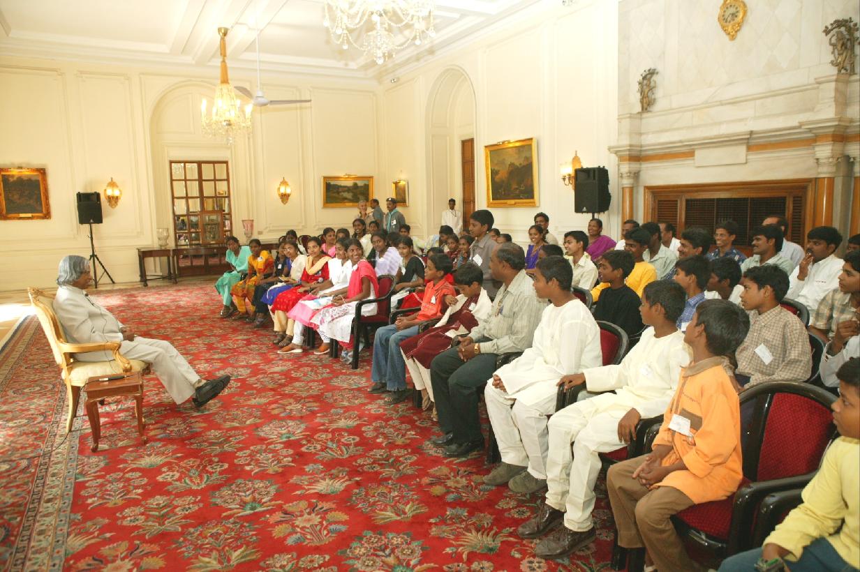 | Caption: | The Students from Railway Mixed High School Vijayawada calling on the President of India, Dr A P J Abdul Kalam at the Yellow Drawing Room of Rashtrapati Bhavan in New Delhi on June 15, 2004 |