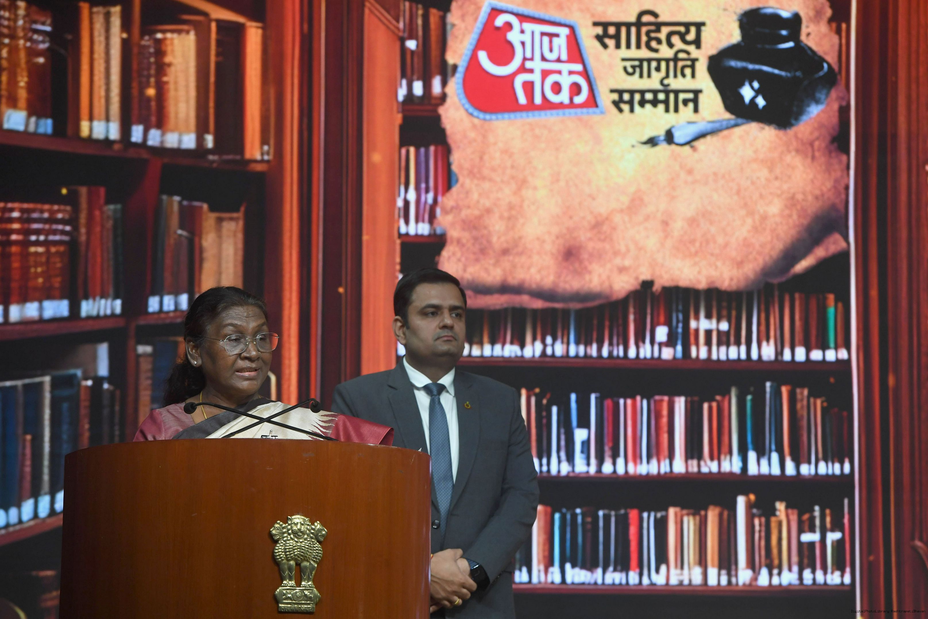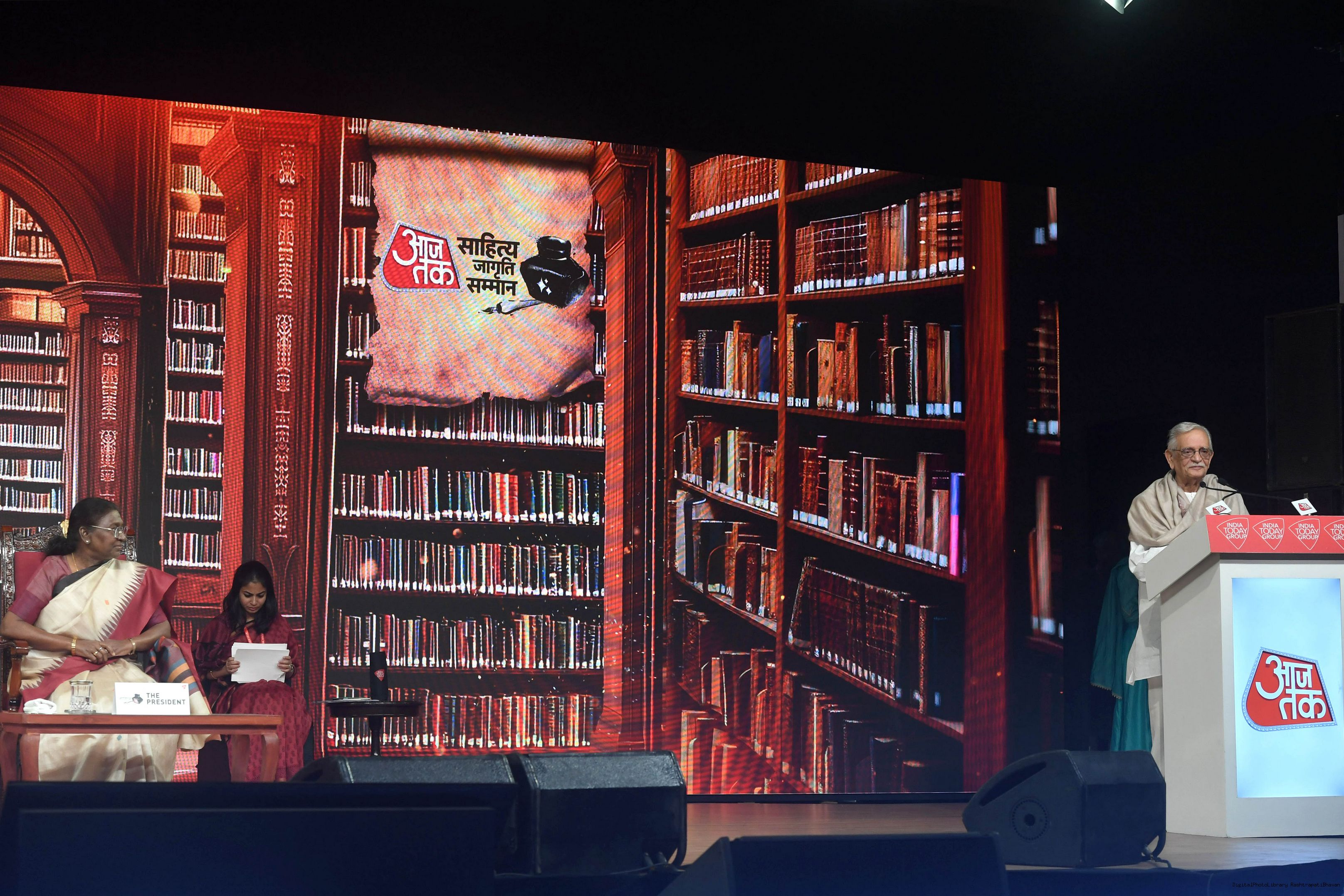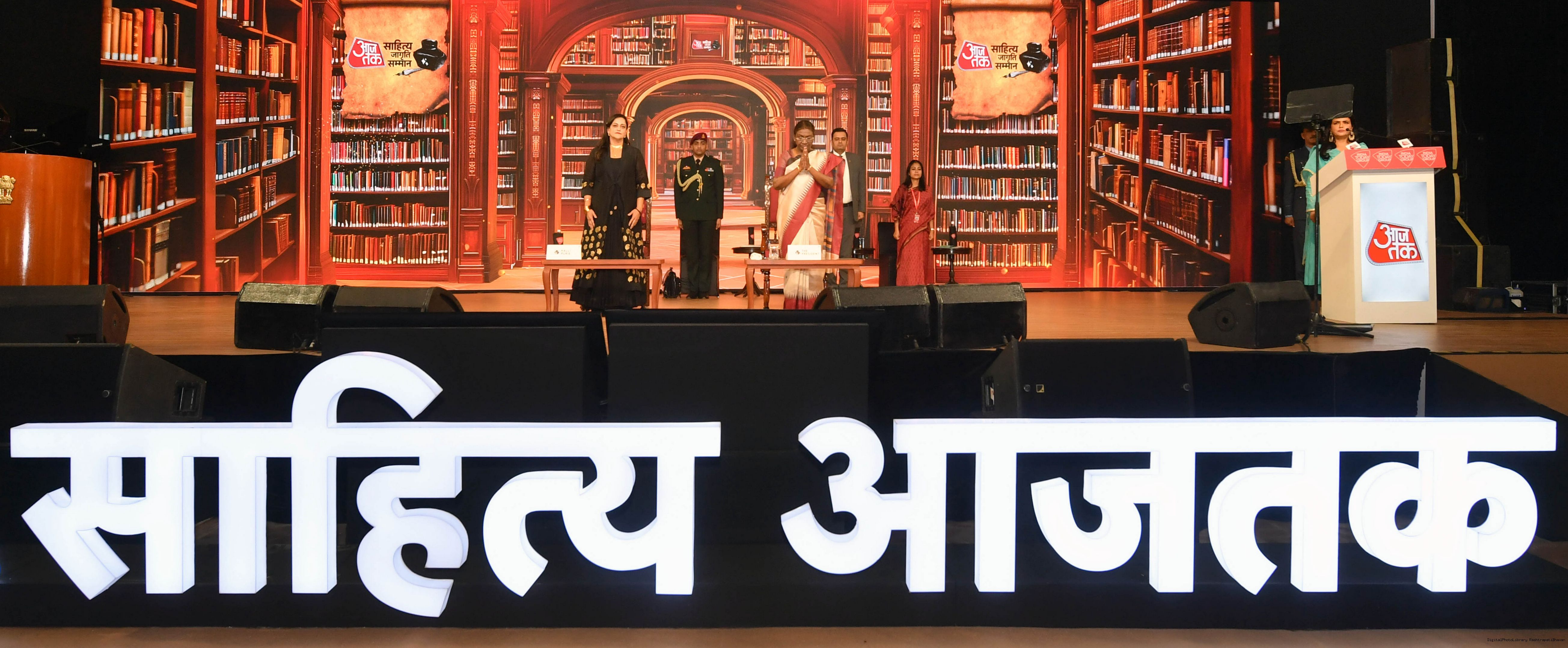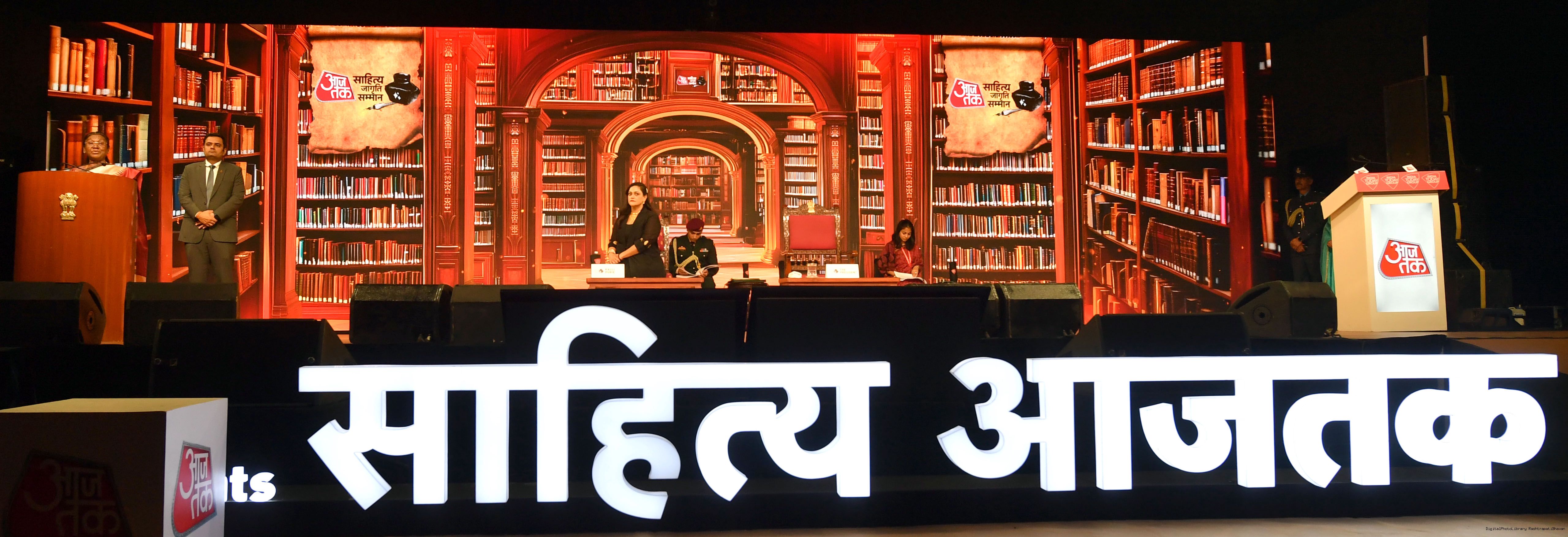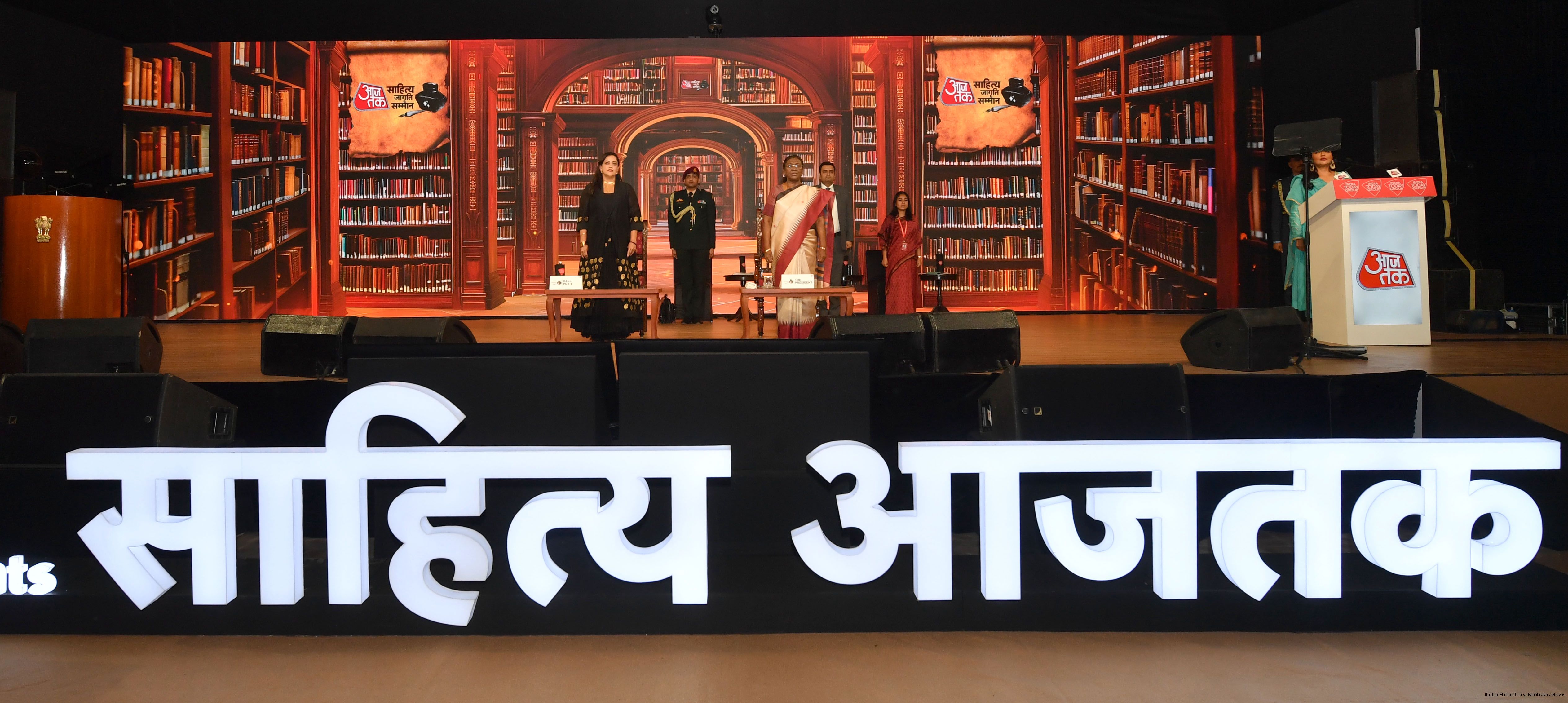 | Caption: | The President of India, Smt. Droupadi Murmu graced Sahitya Aaj Tak and presented Aaj Tak Sahitya Jagriti Samman in New Delhi on November 23, 2024. |