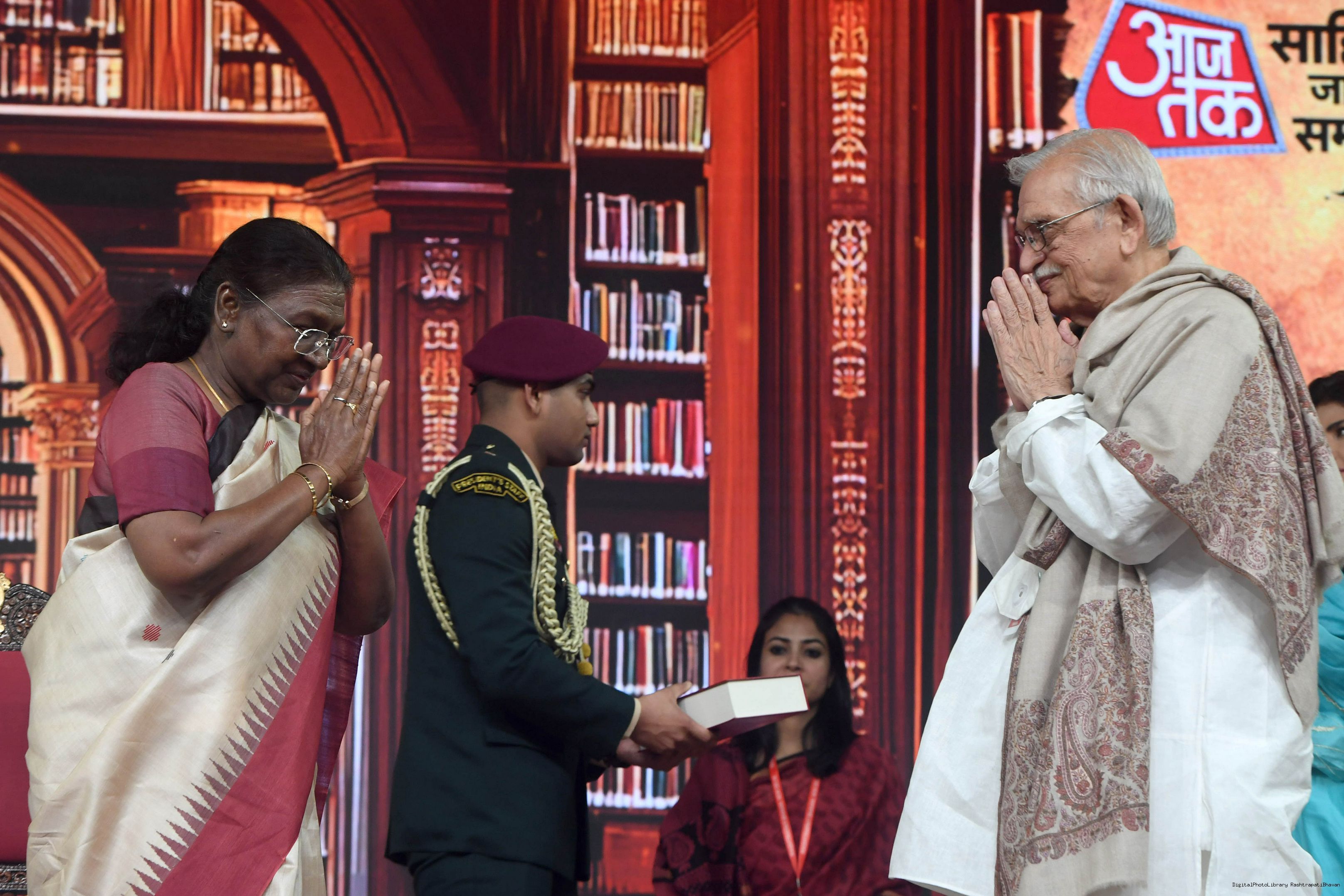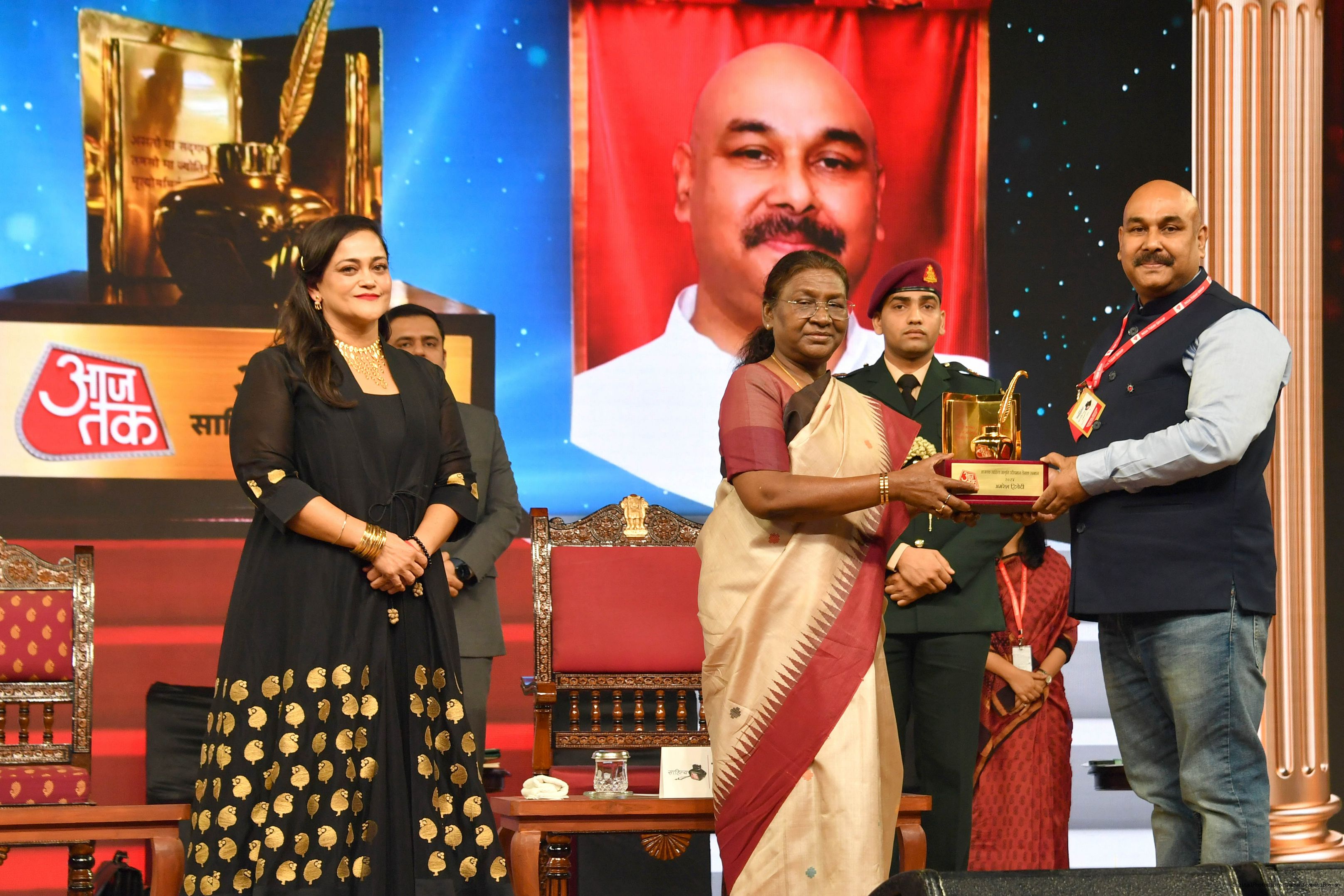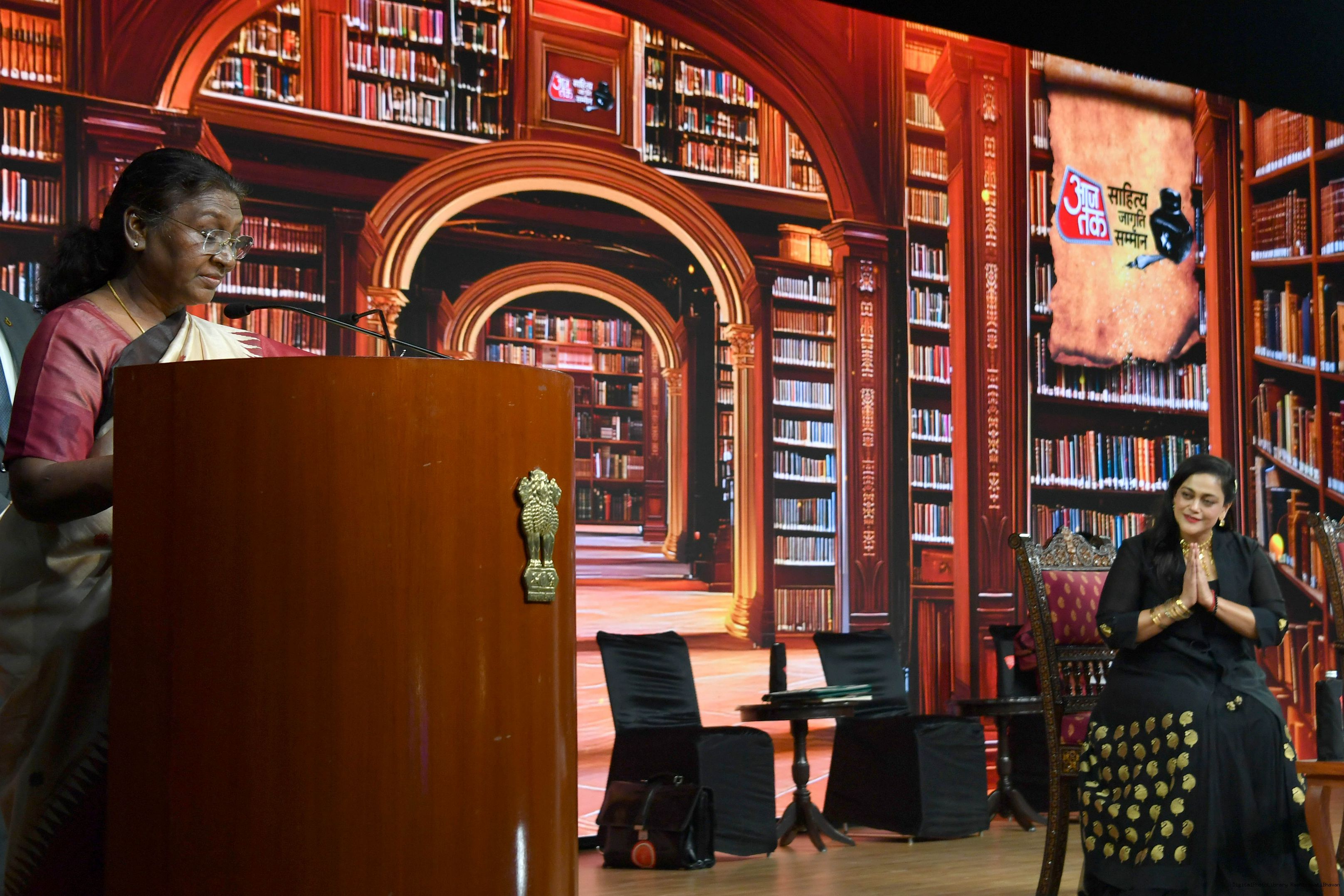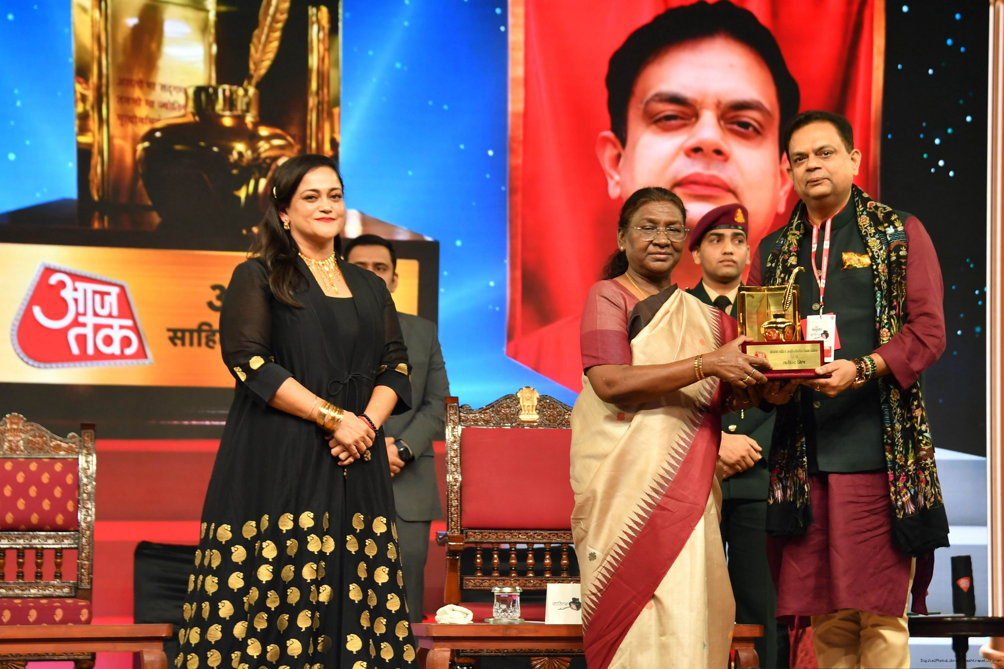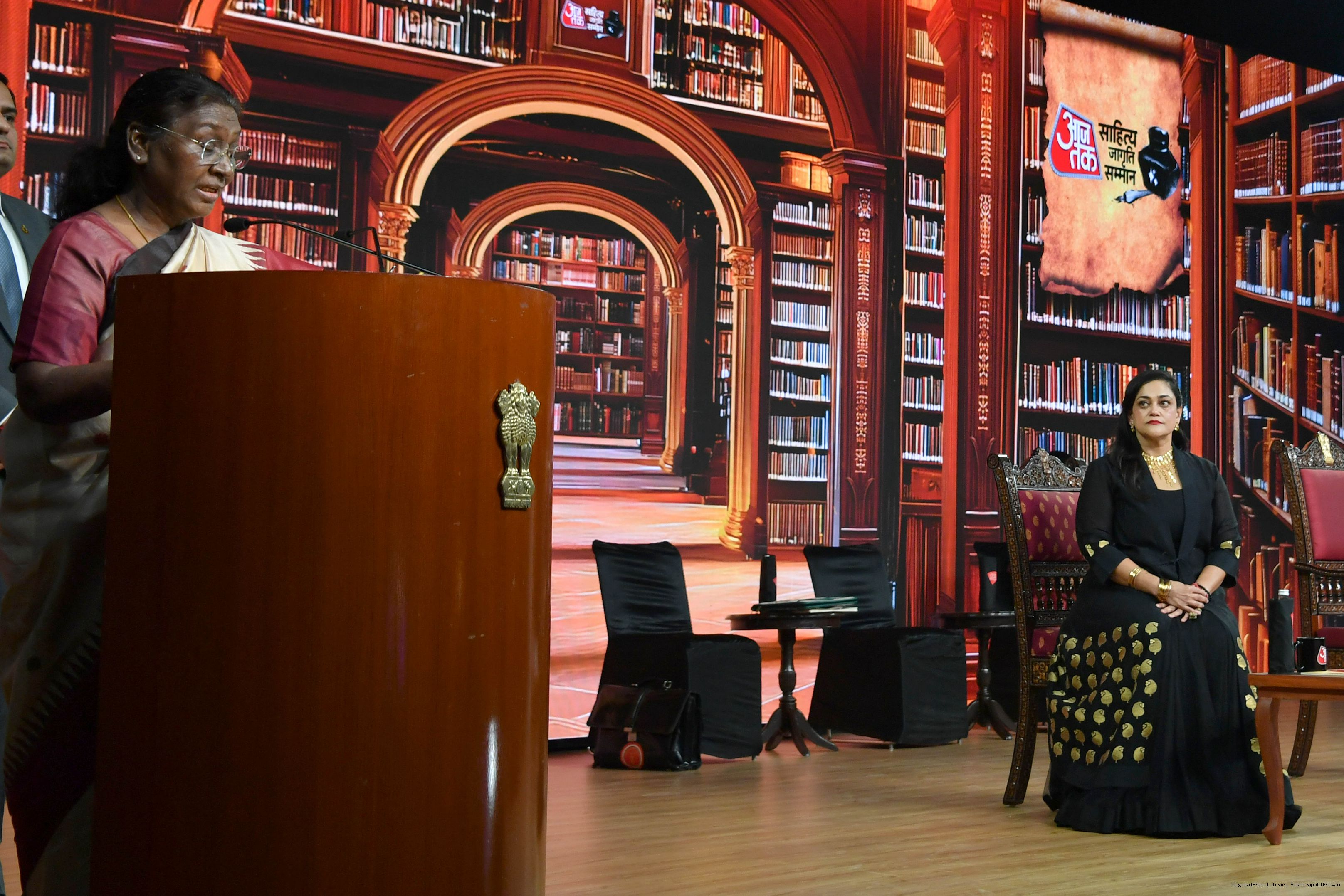 | Caption: | The President of India, Smt. Droupadi Murmu graced Sahitya Aaj Tak and presented Aaj Tak Sahitya Jagriti Samman in New Delhi on November 23, 2024. |