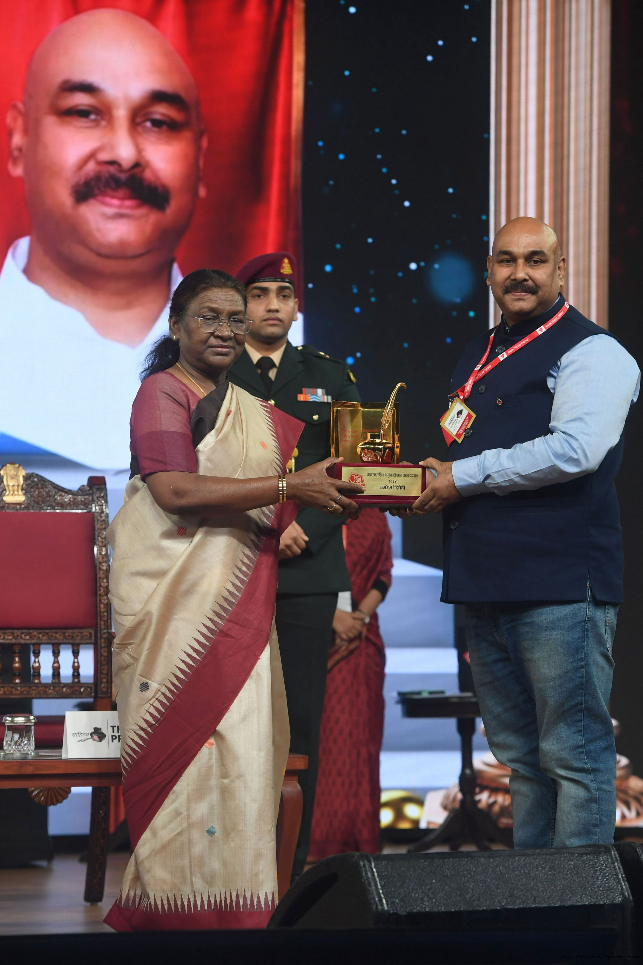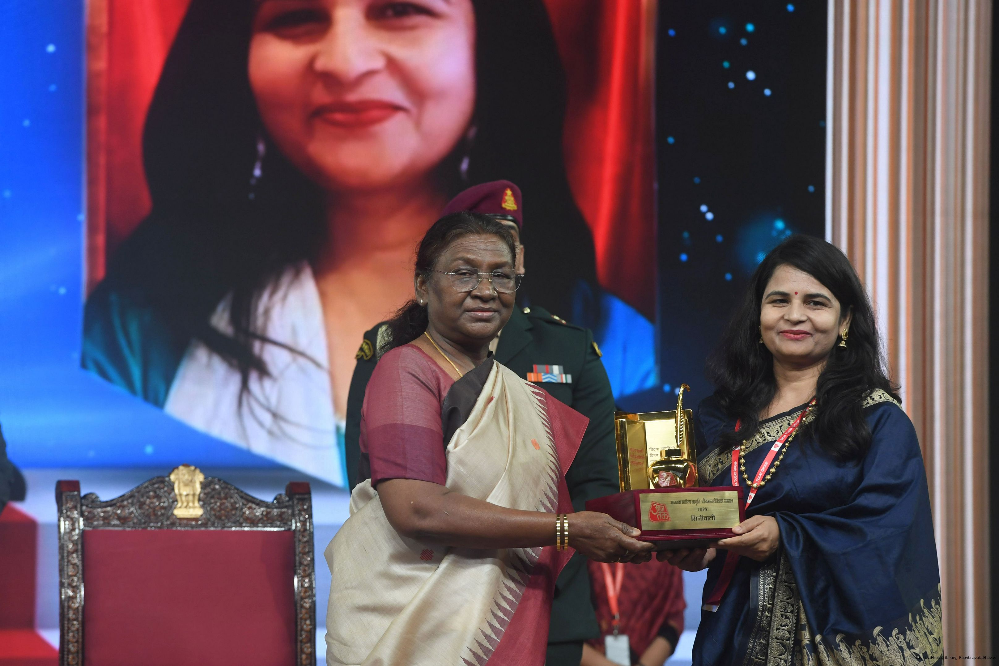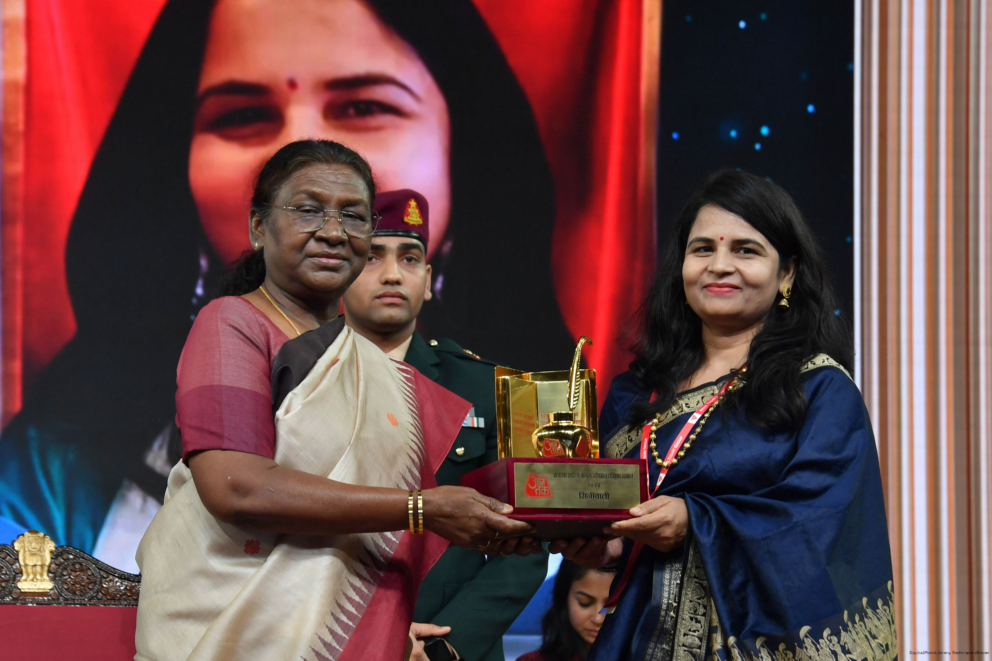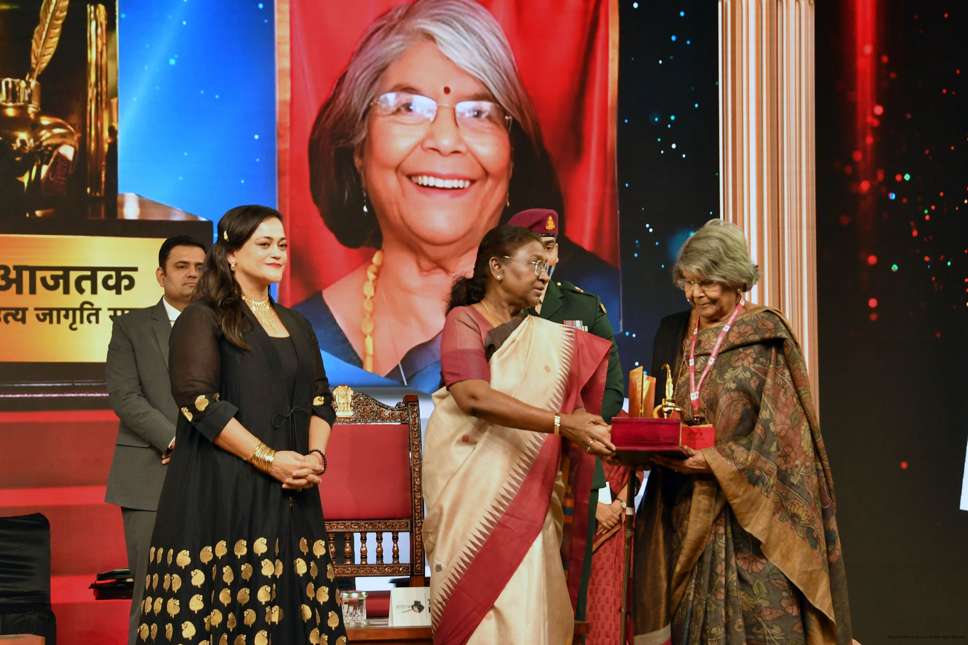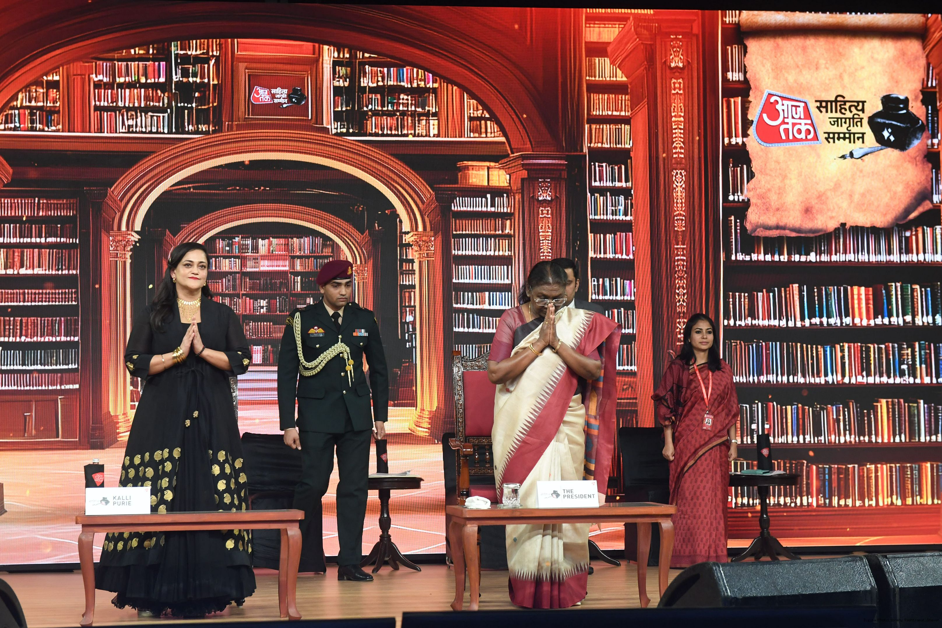 | Caption: | The President of India, Smt. Droupadi Murmu graced Sahitya Aaj Tak and presented Aaj Tak Sahitya Jagriti Samman in New Delhi on November 23, 2024. |