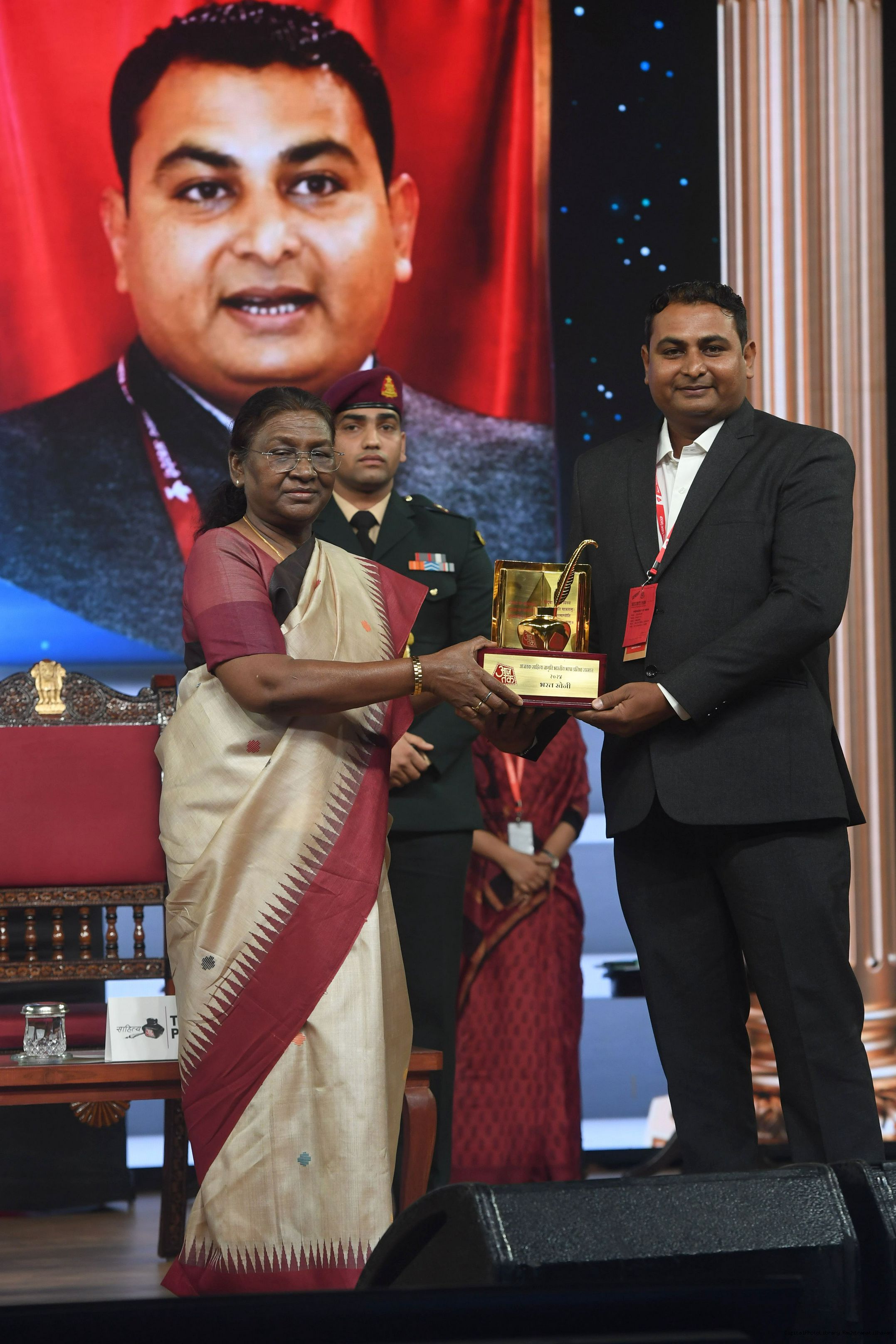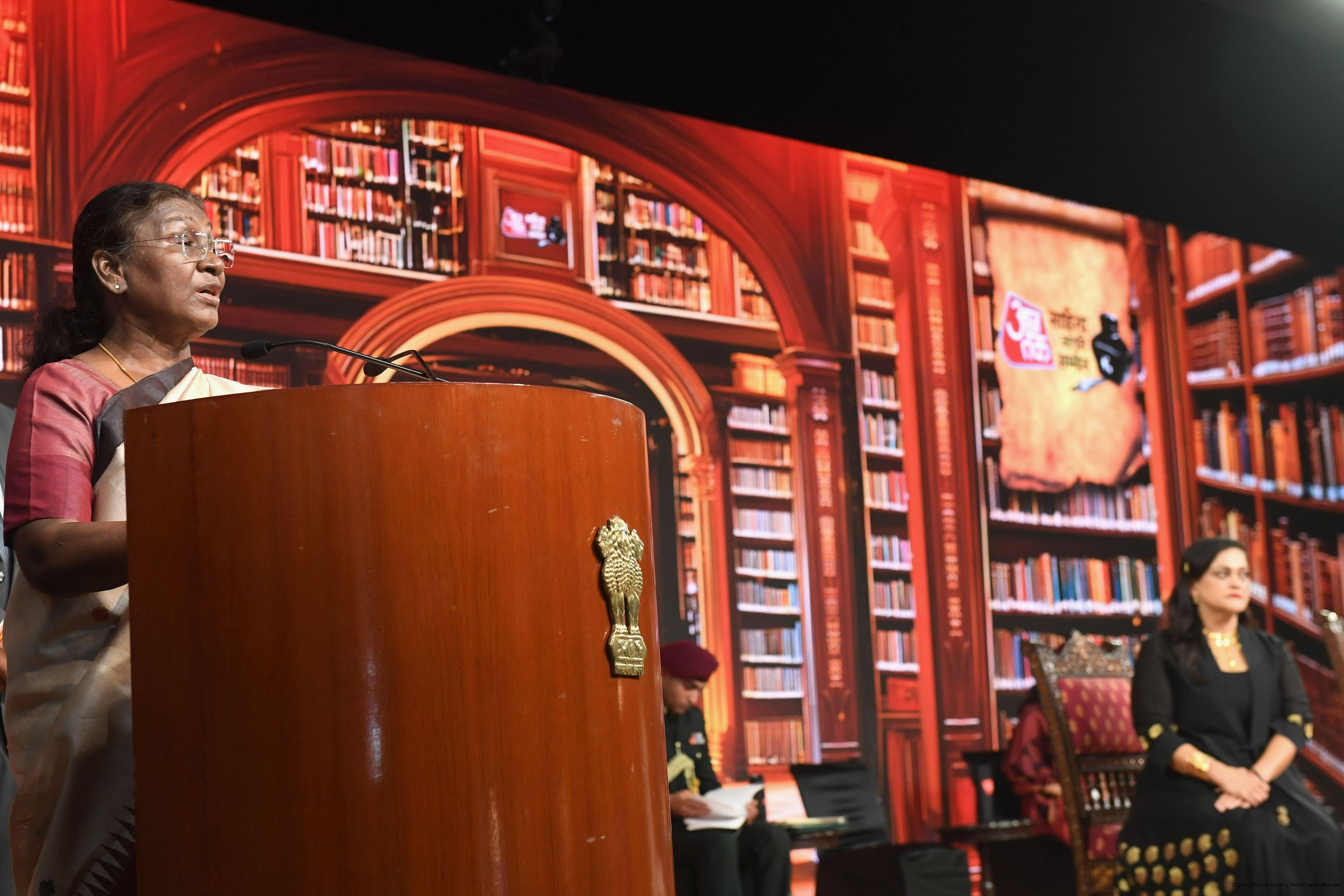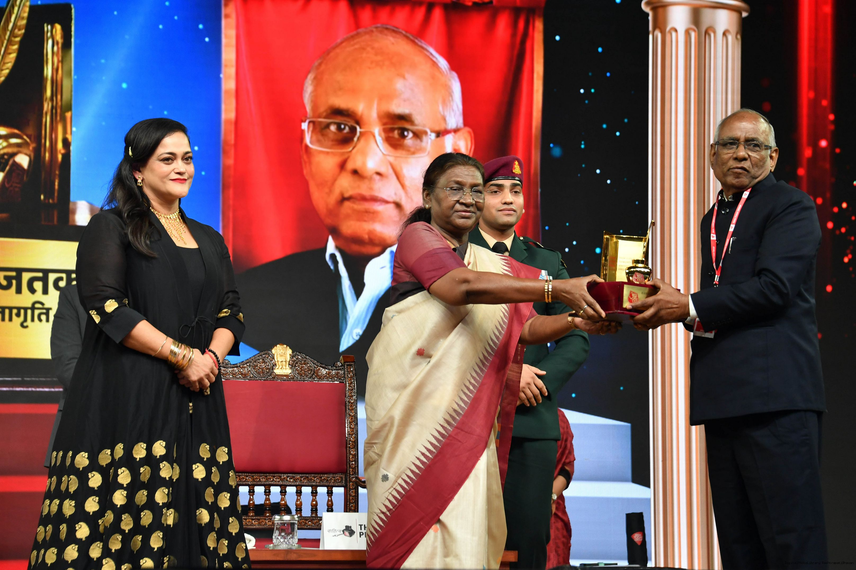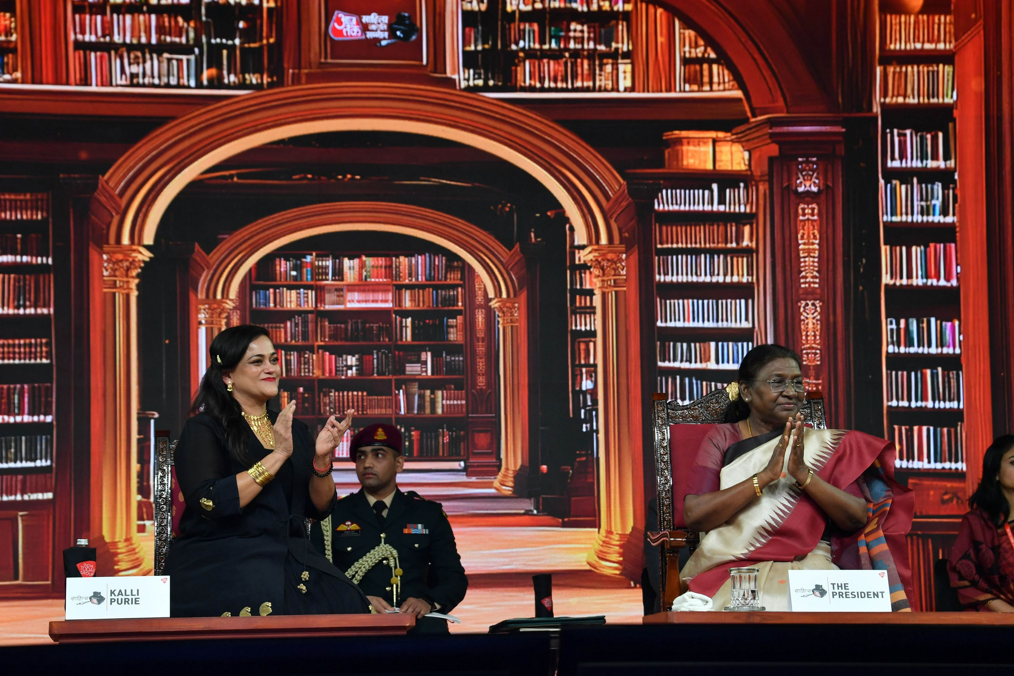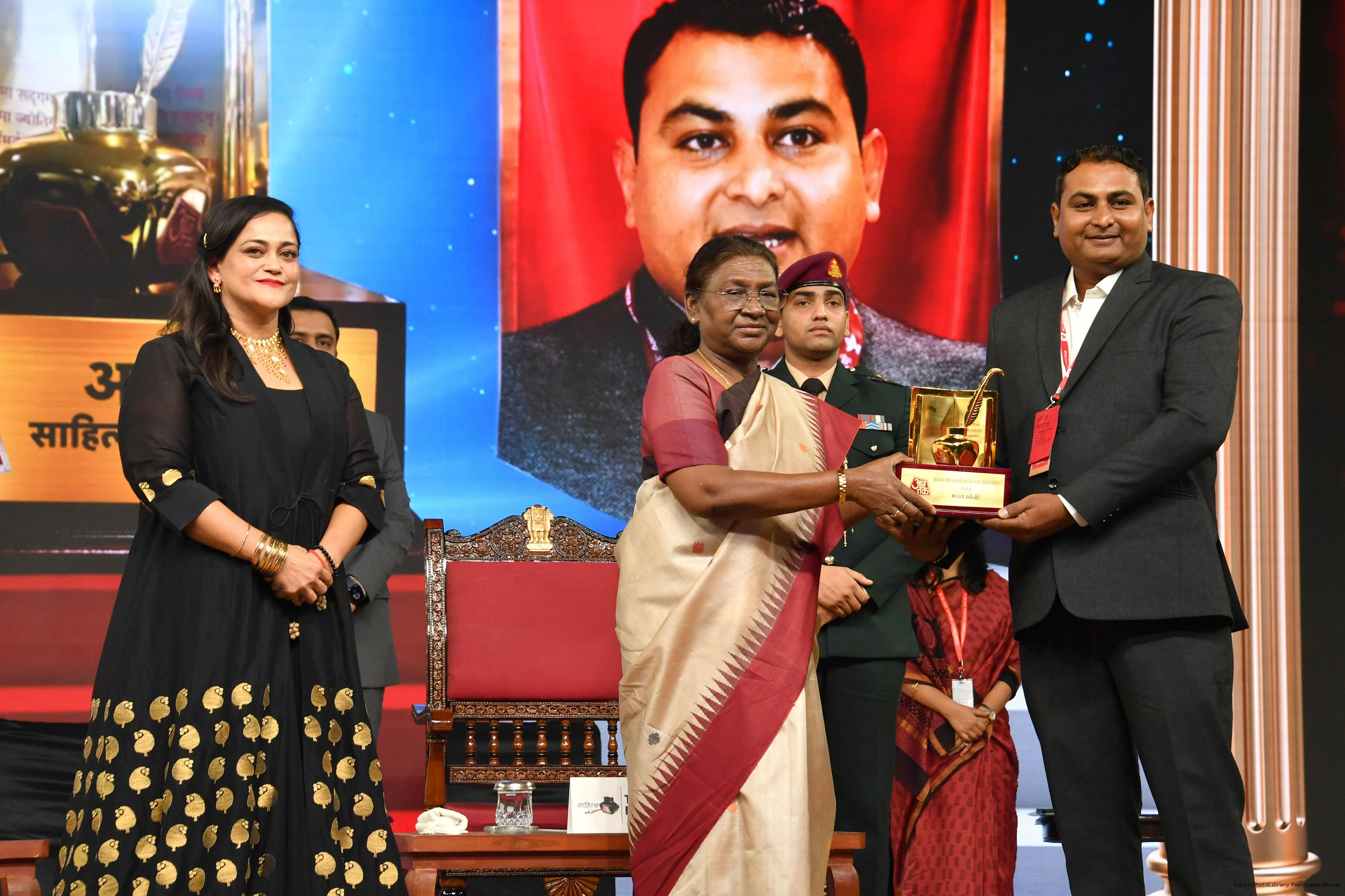 | Caption: | The President of India, Smt. Droupadi Murmu graced Sahitya Aaj Tak and presented Aaj Tak Sahitya Jagriti Samman in New Delhi on November 23, 2024. |