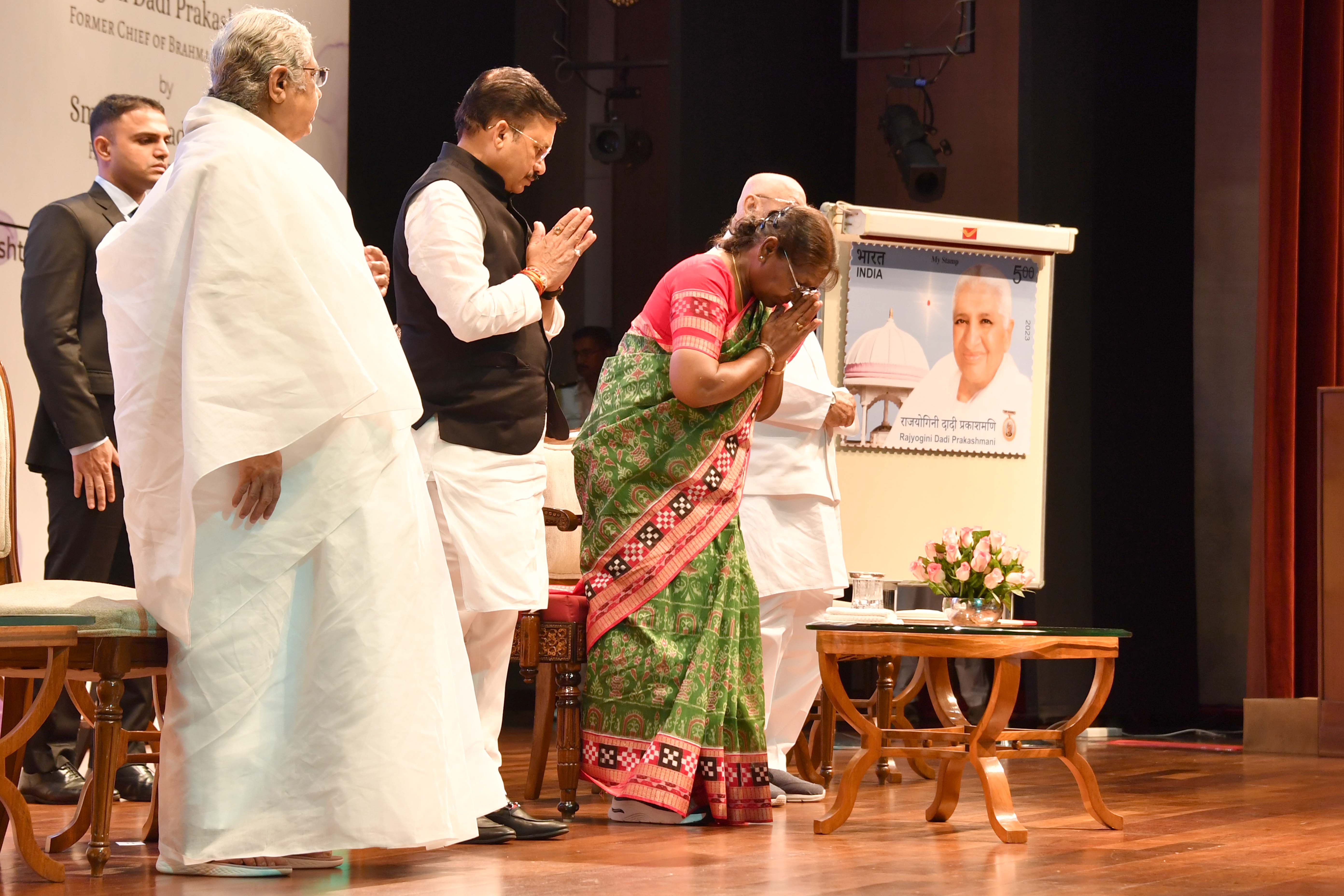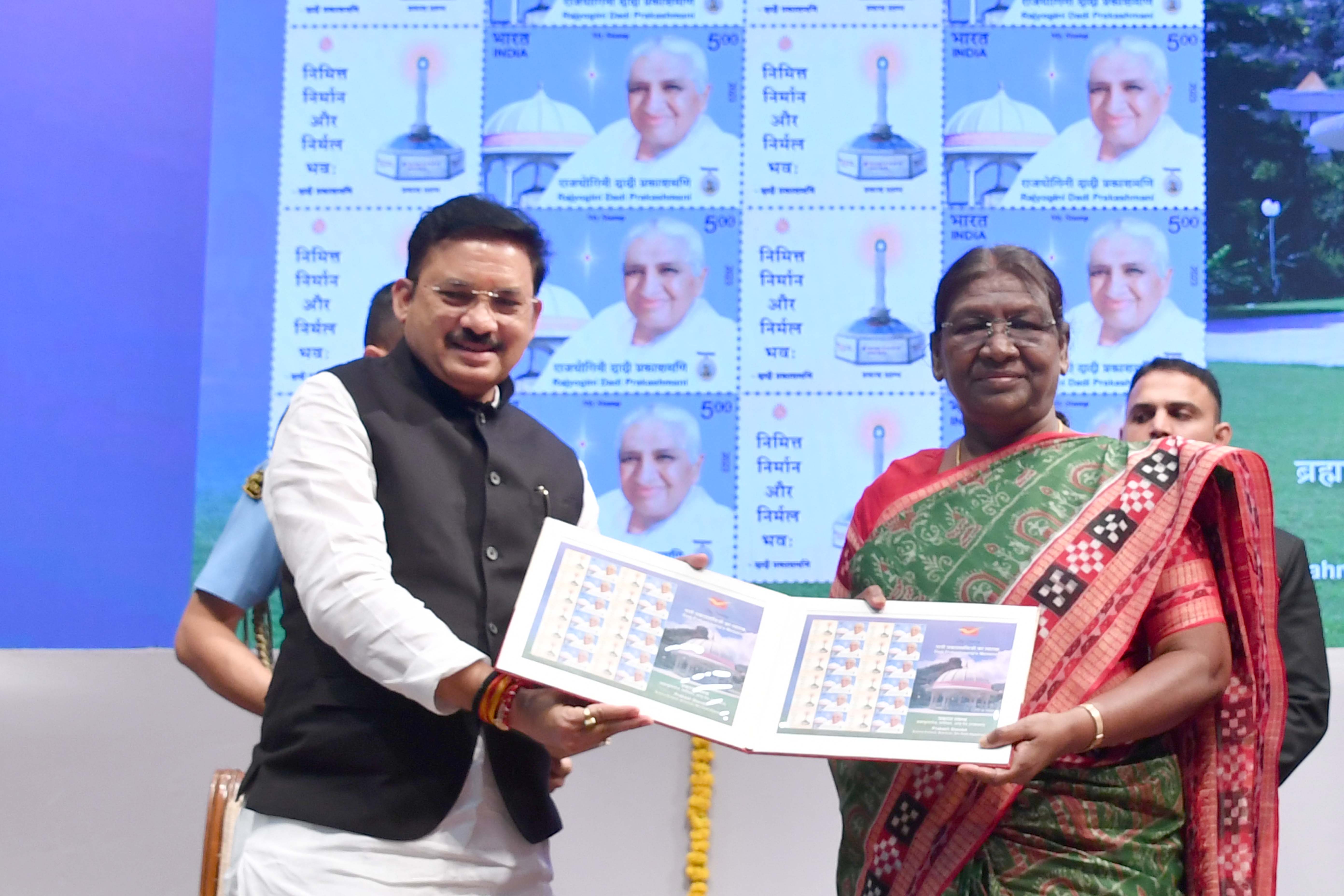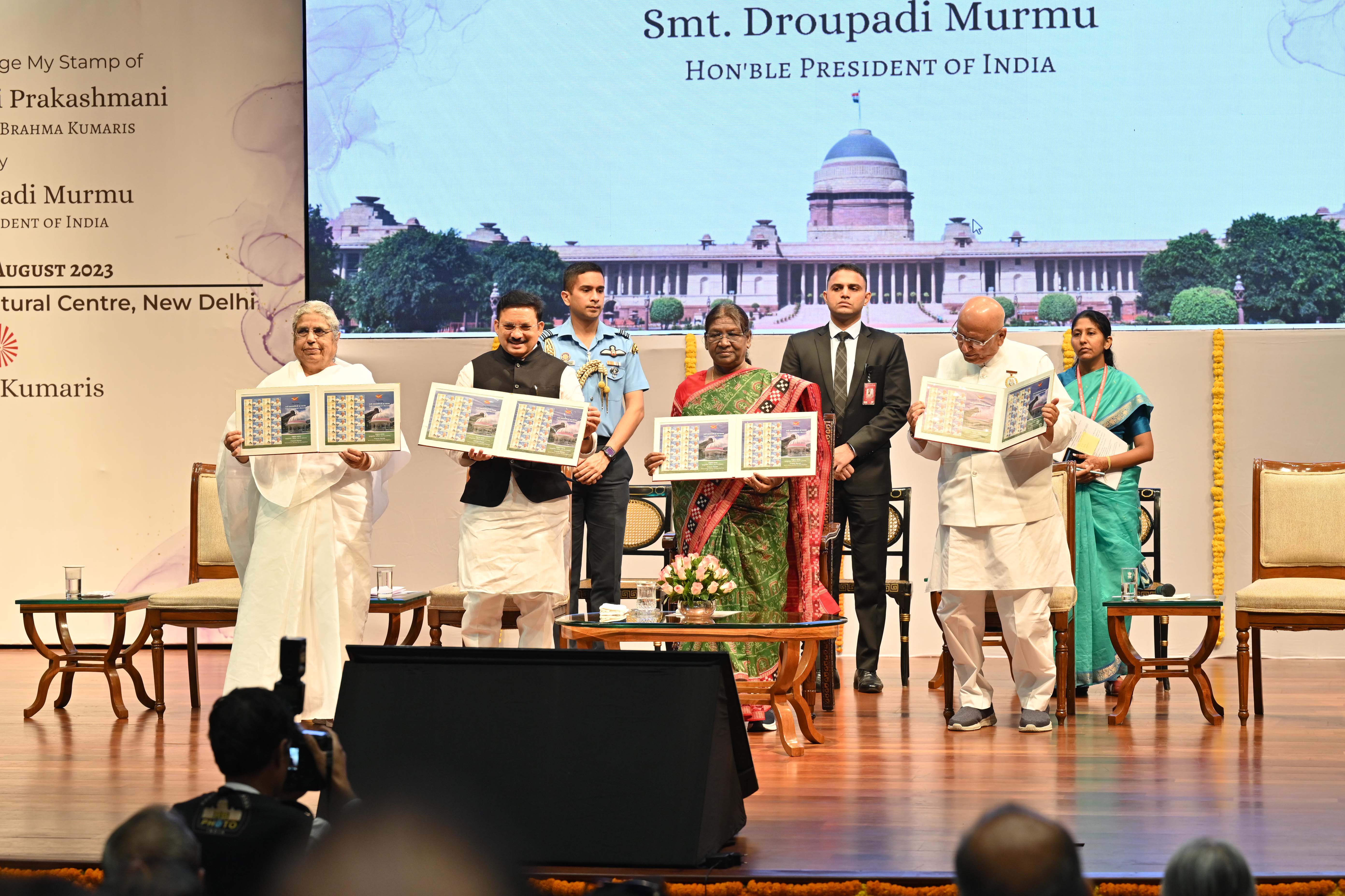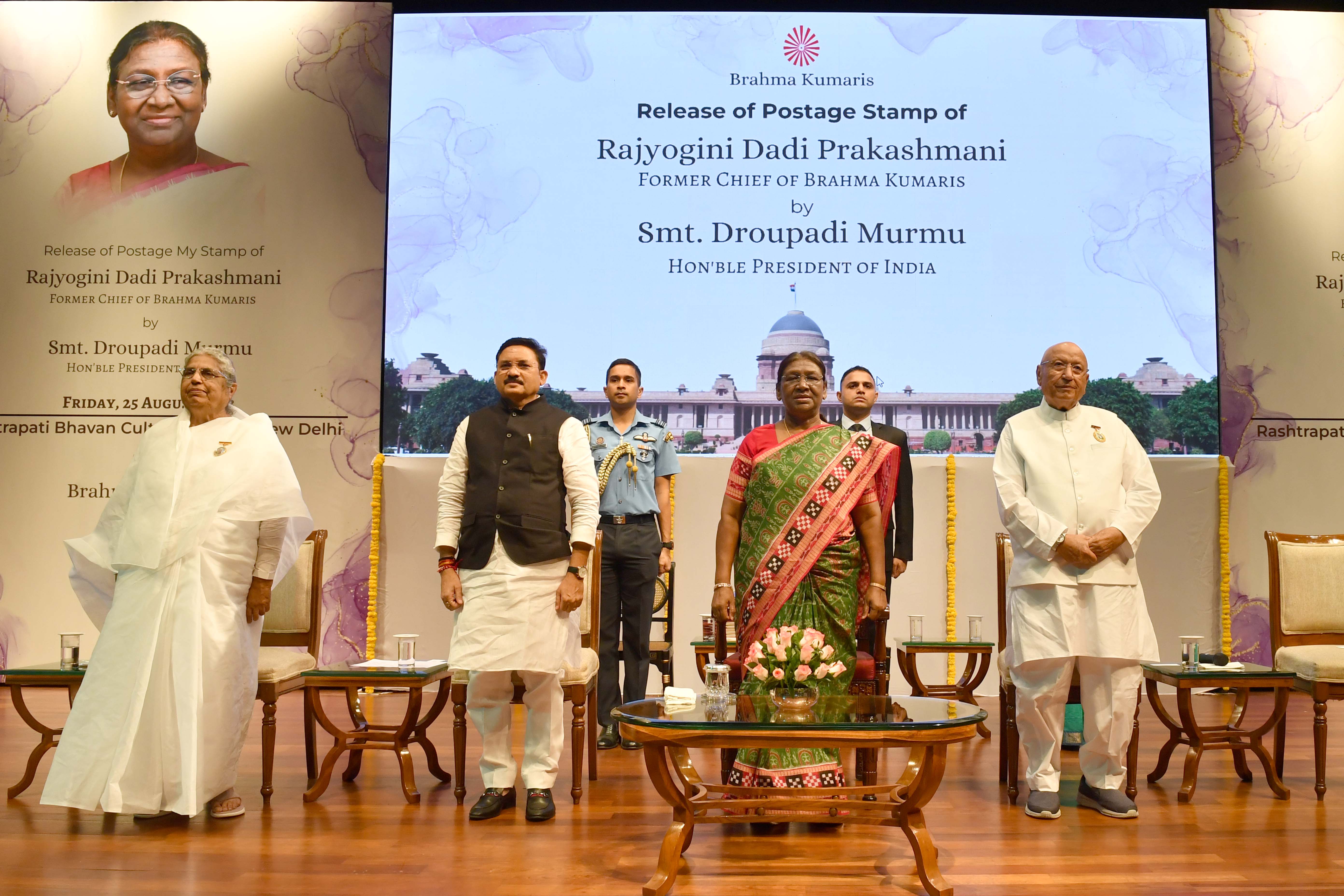 | Caption: | The President of India, Smt Droupadi Murmu released a postage stamp in memory of Dadi Prakashmani, former chief of Brahma Kumaris at Rashtrapati Bhavan Cultural Centre on August 25, 2023. |