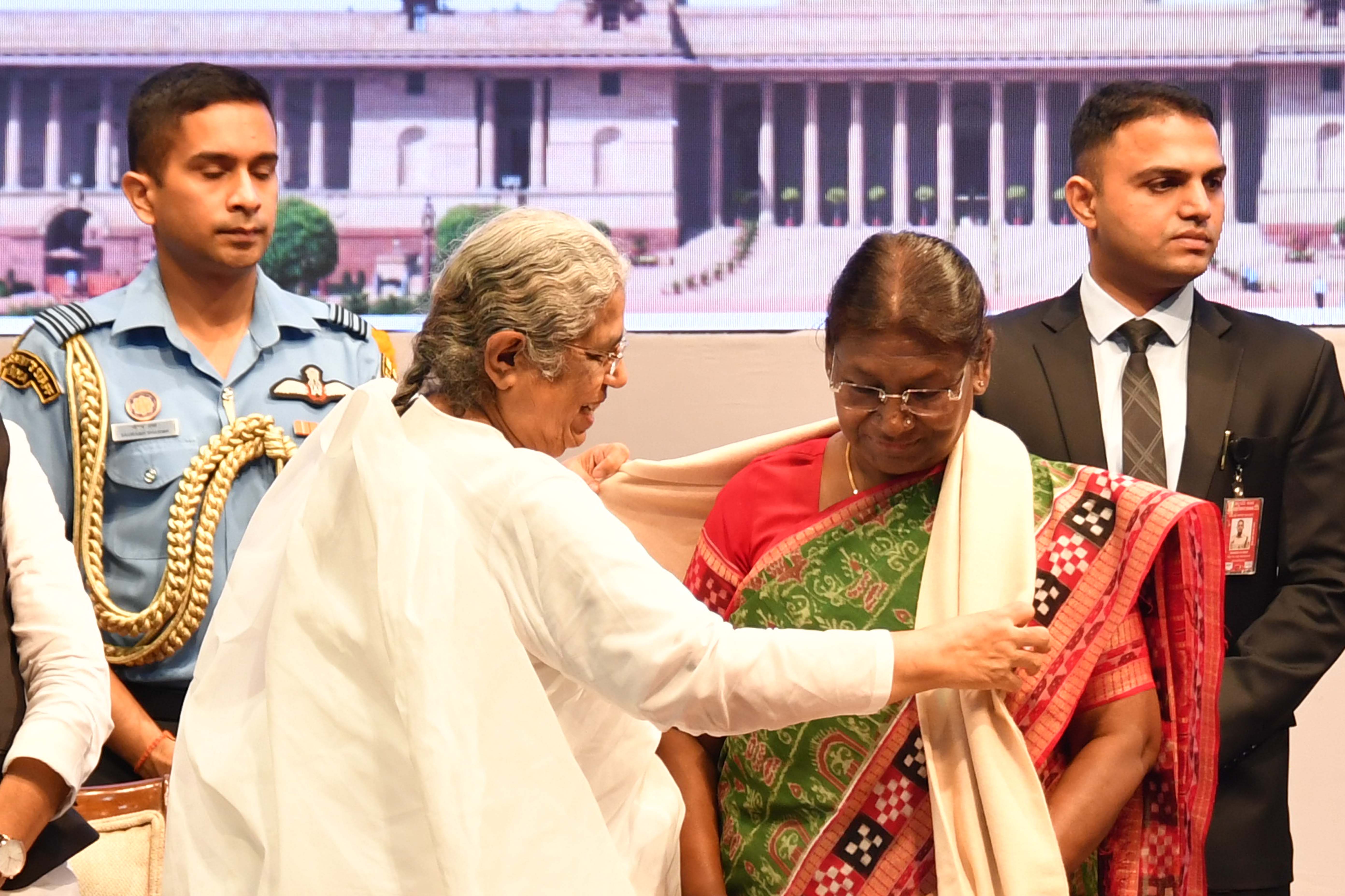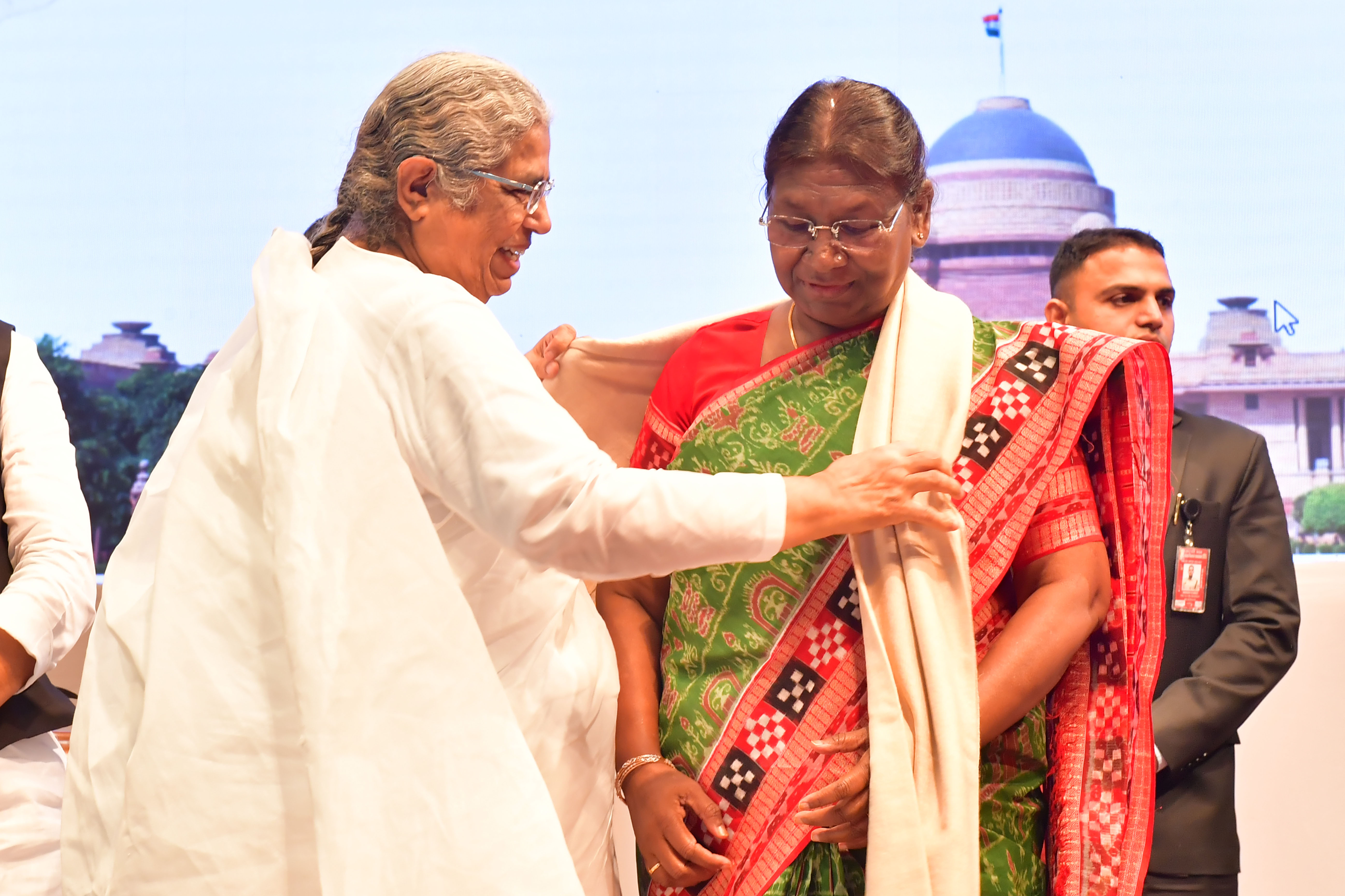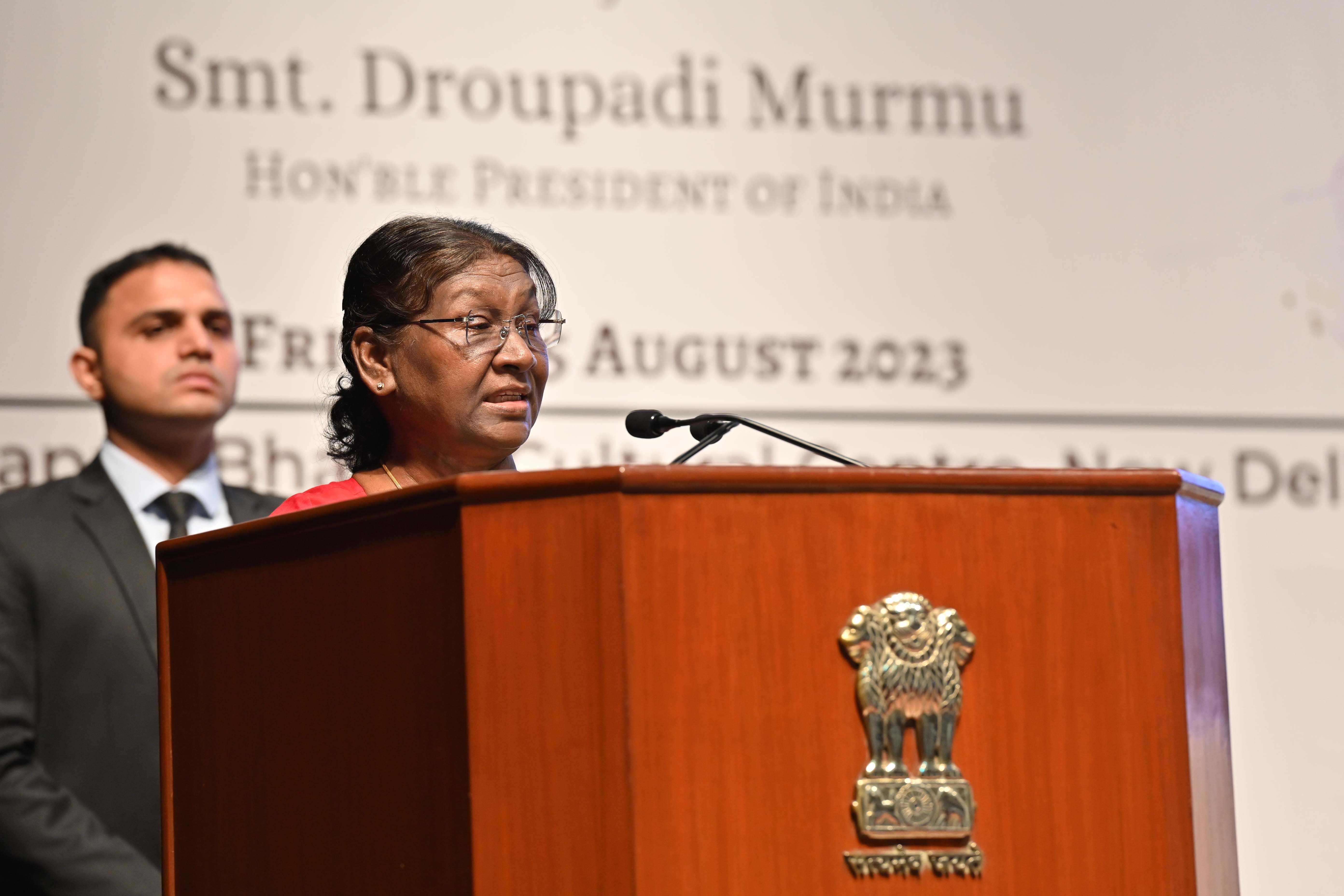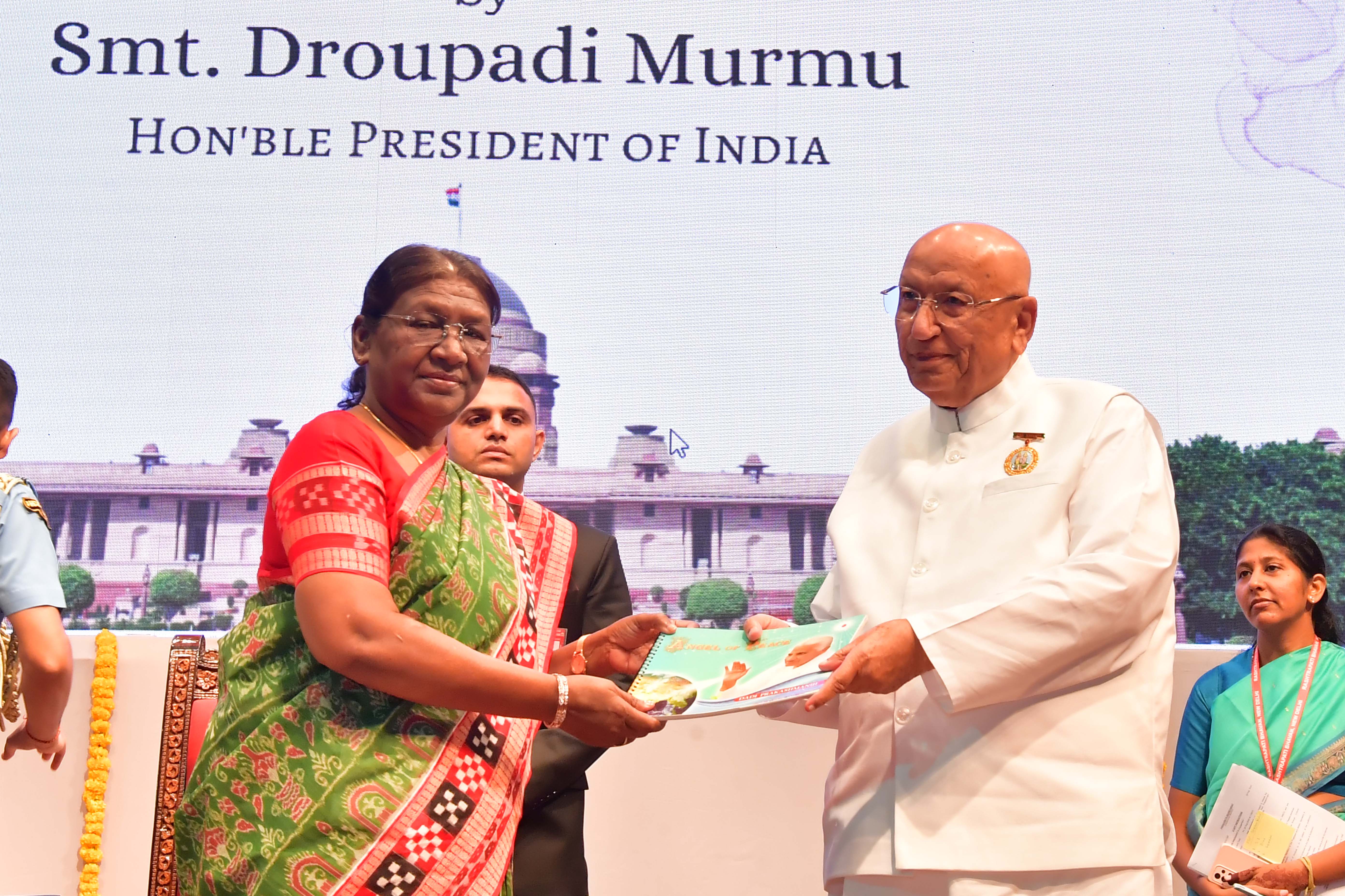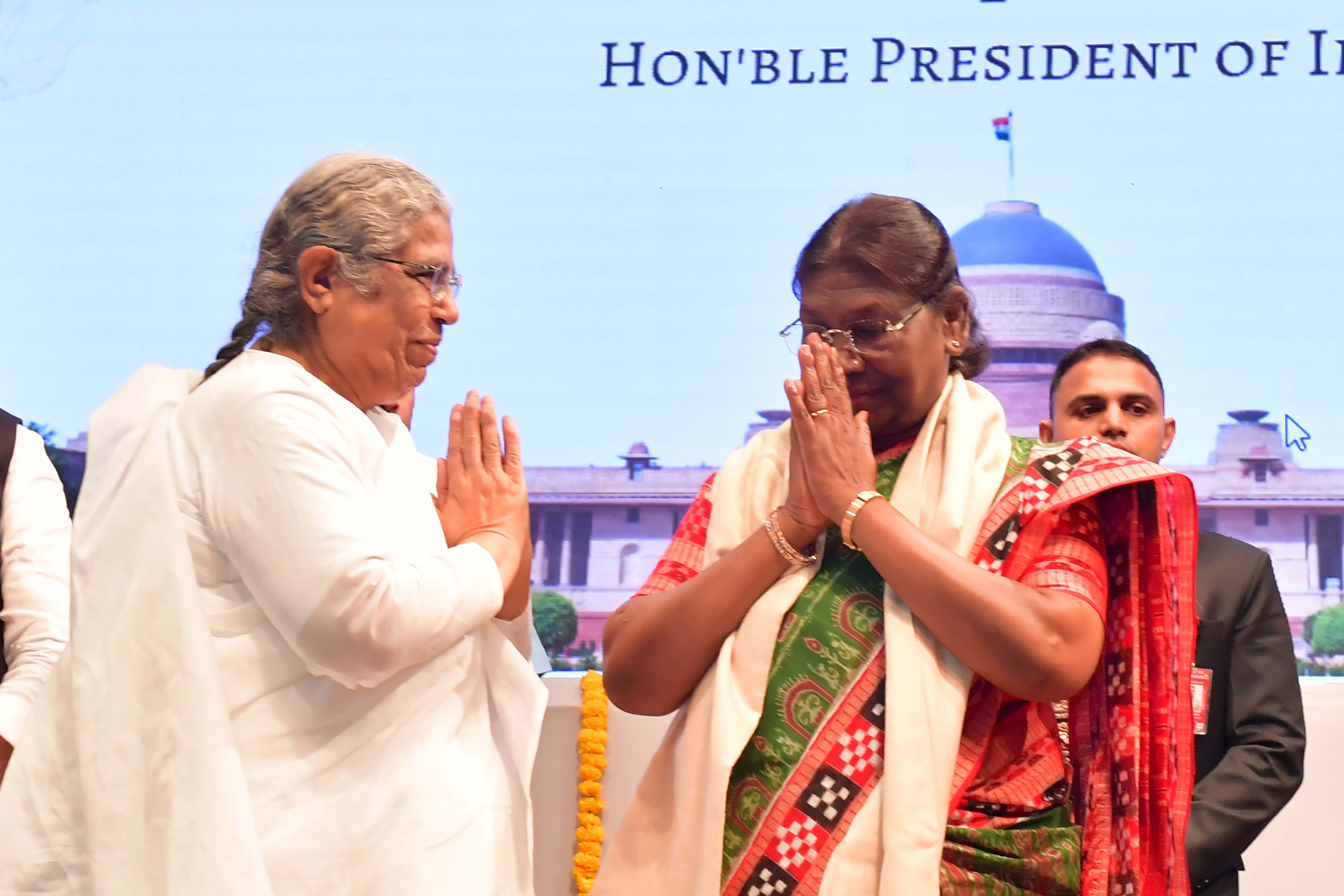| Caption: | The President of India, Smt Droupadi Murmu released a postage stamp in memory of Dadi Prakashmani, former chief of Brahma Kumaris at Rashtrapati Bhavan Cultural Centre on August 25, 2023. |