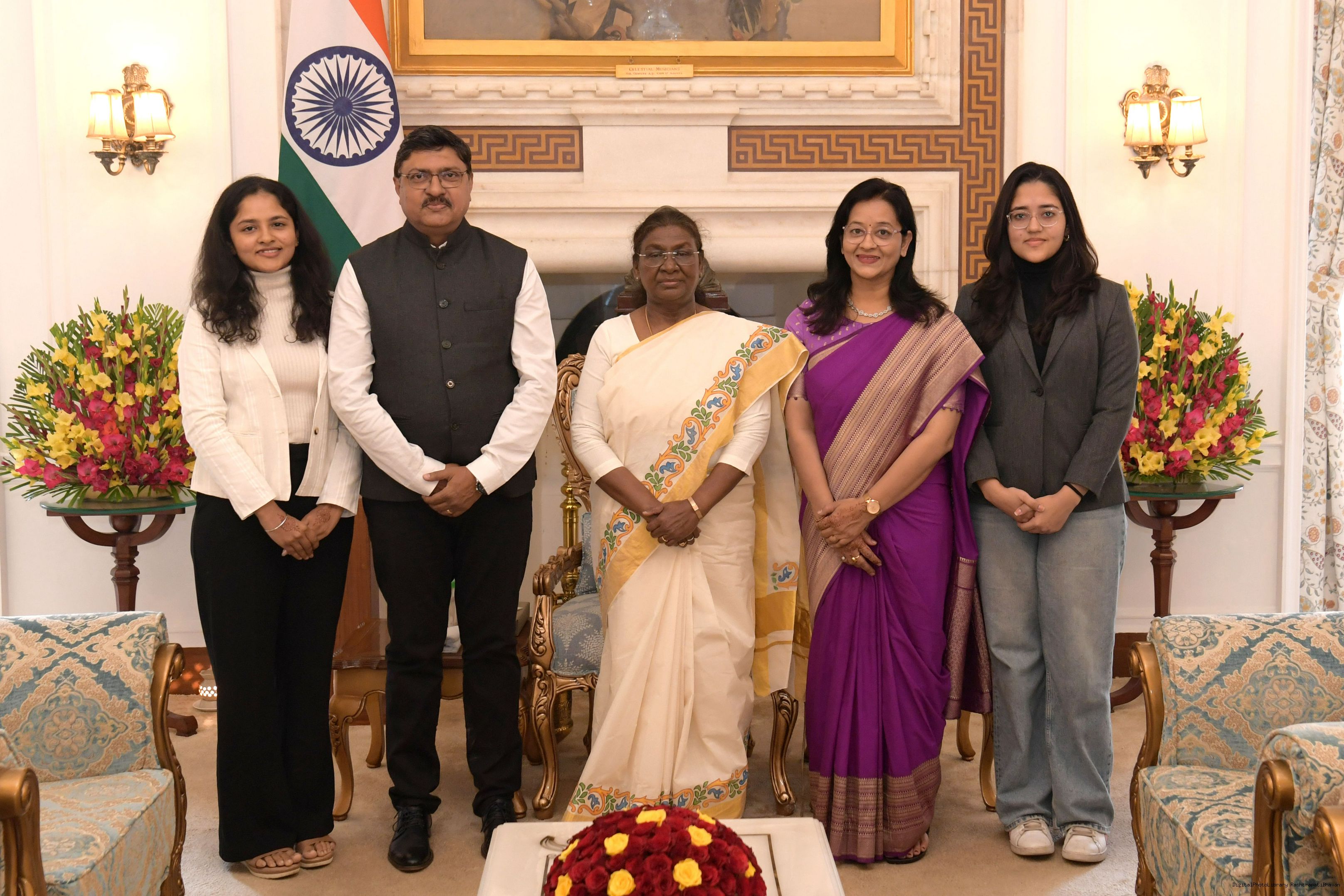 | Caption: | Shri Sandeep Shukla along with others meeting with the President of India Smt. Droupadi Murmu at Rashtrapati Bhavan on November 26, 2024. |