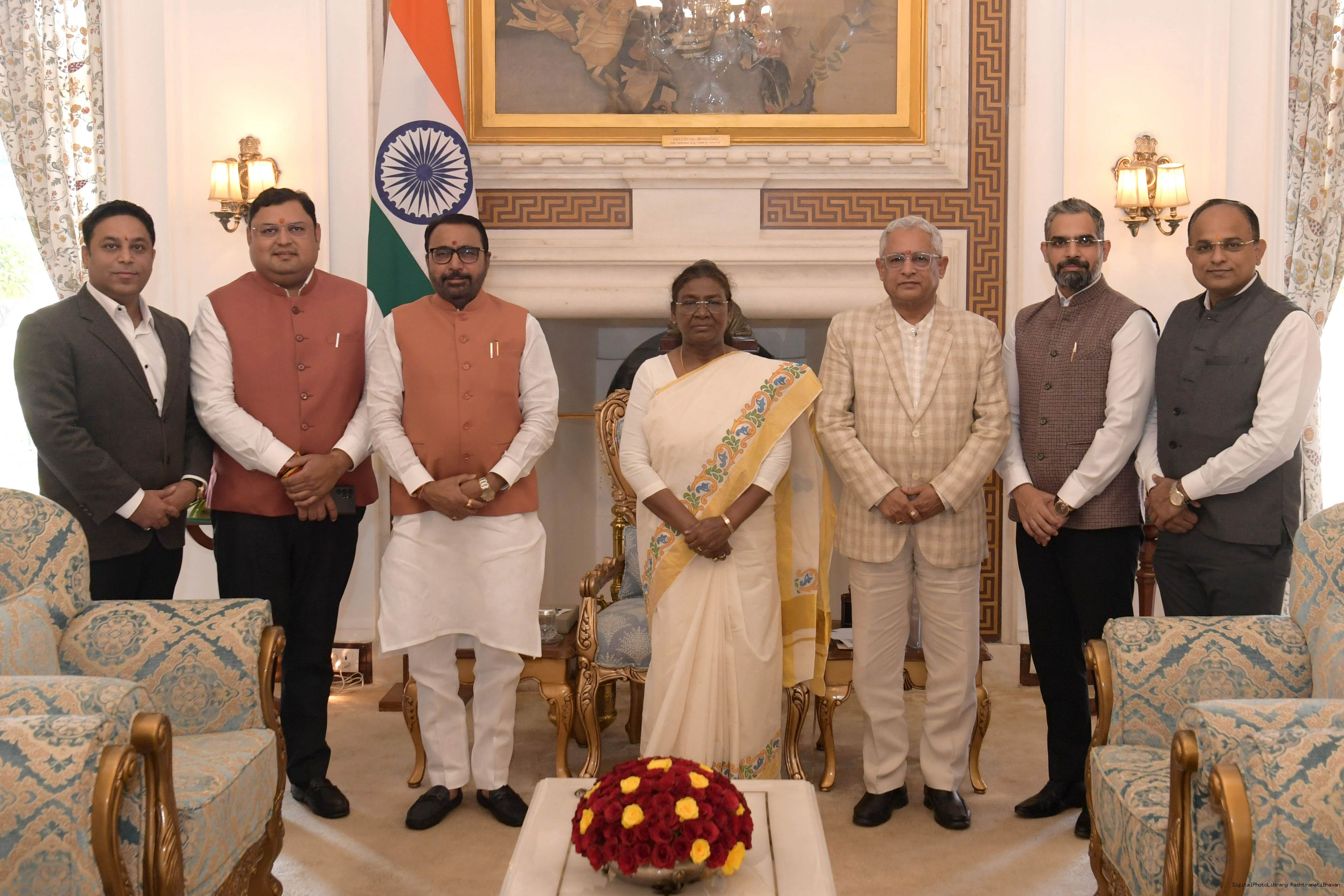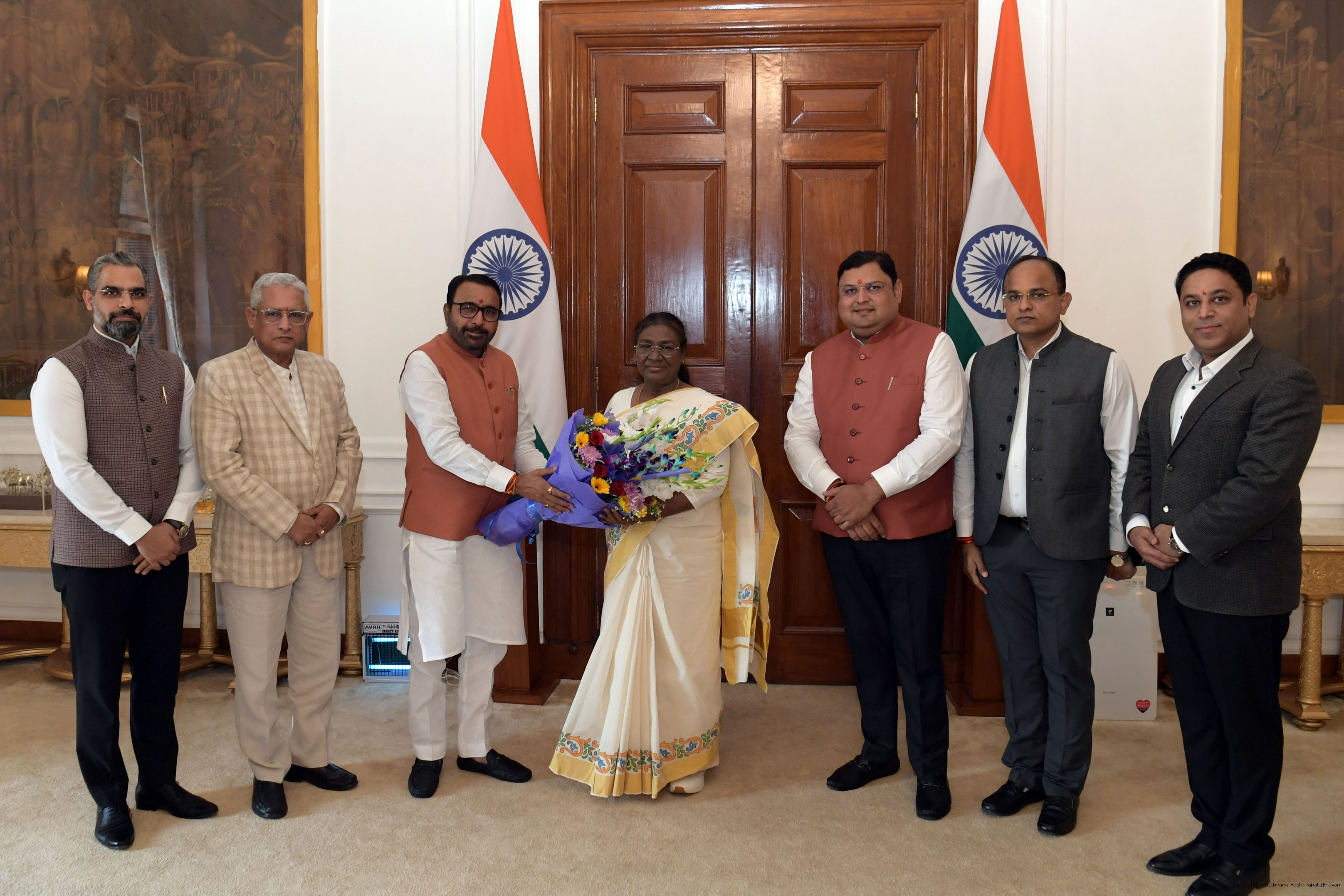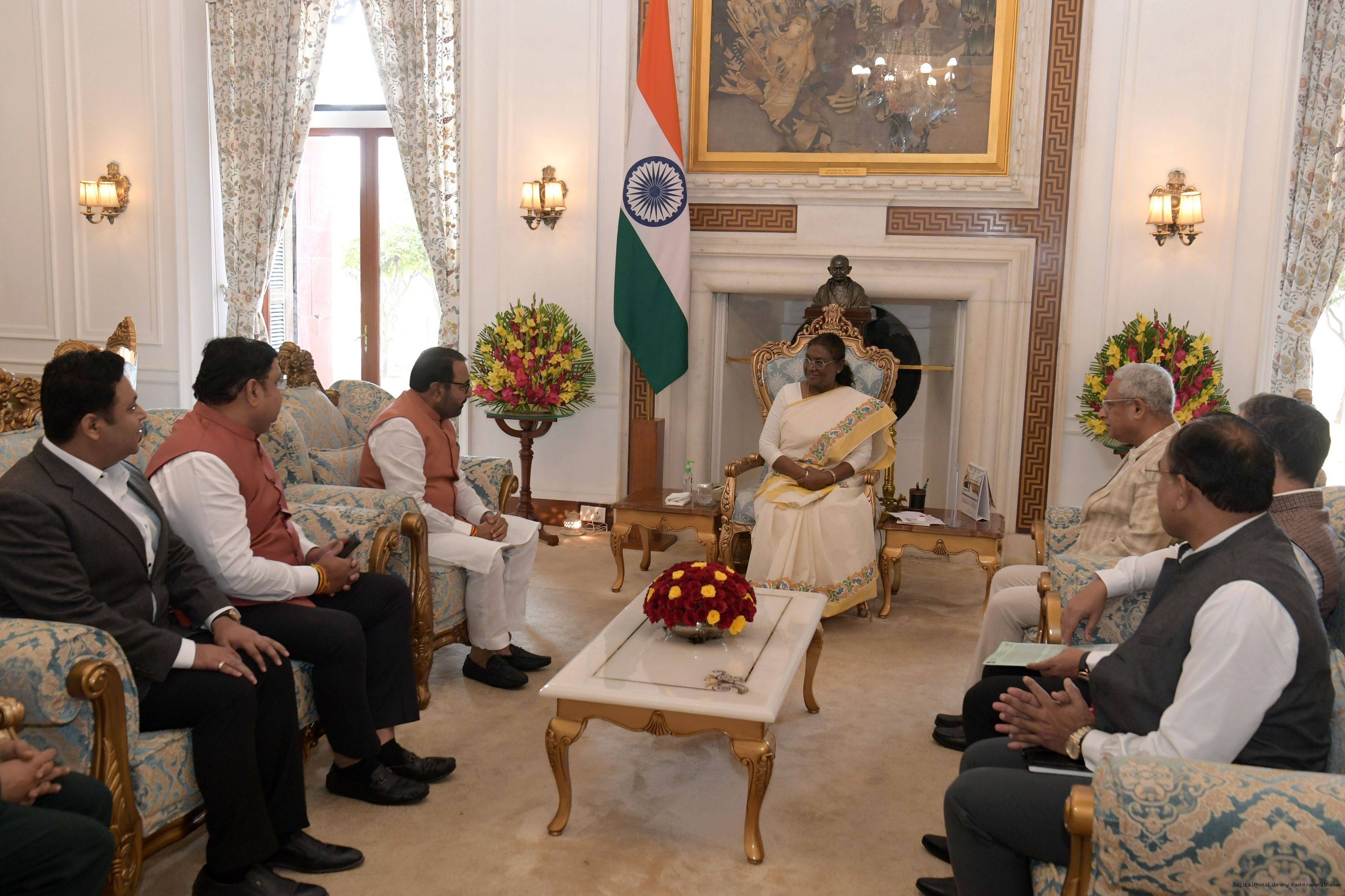 | Caption: | Desh Ka Prakriti Parikshan-'Prakriti Parikshan' by the Ministry of Ayush , Shri Prataprao Jadhav, MoS (IC) for Ayush, MoS for Health and Family Welfare, with others meeting with the President of India Smt. Droupadi Murmu at Rashtrapati Bhavan on November 26, 2024. |