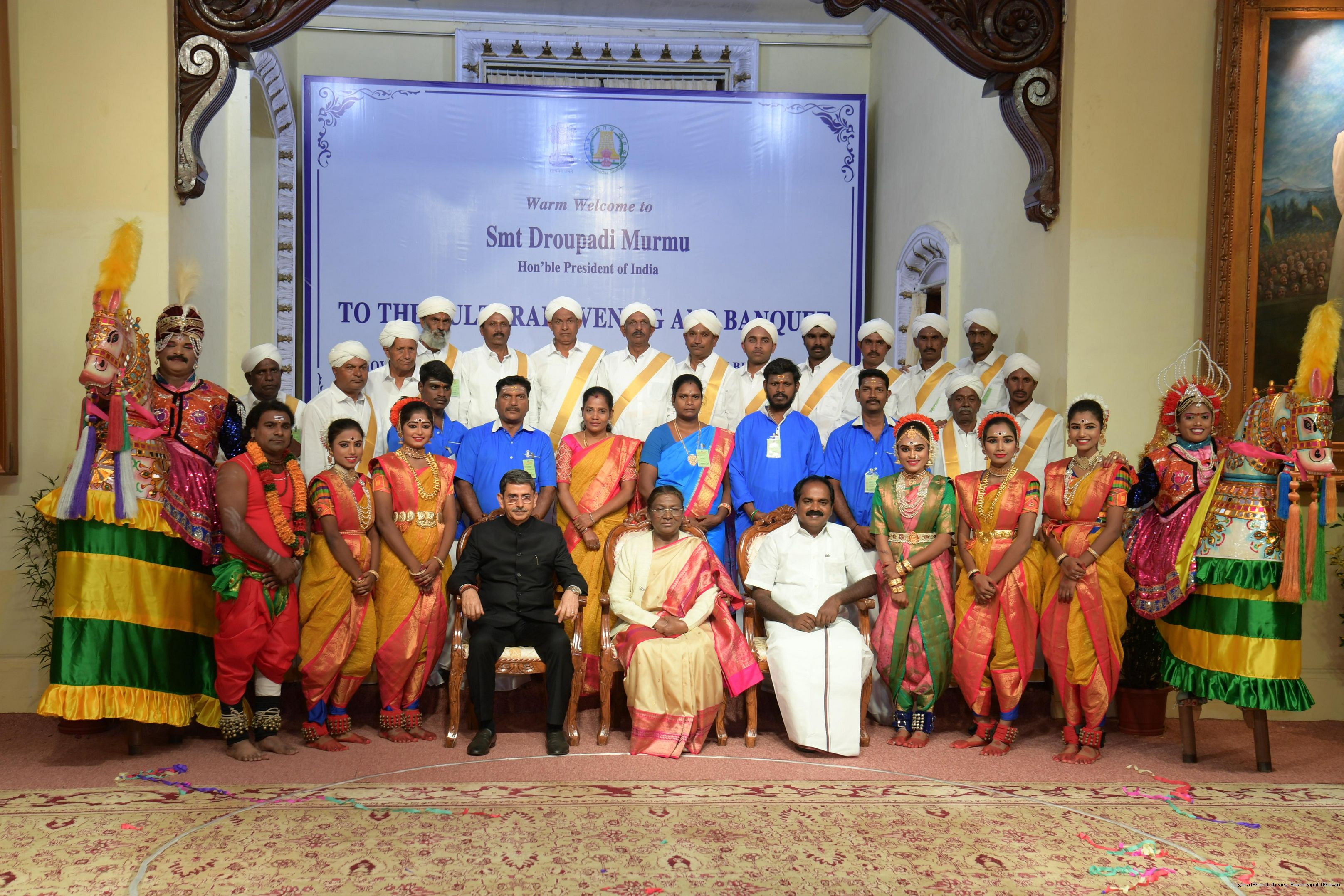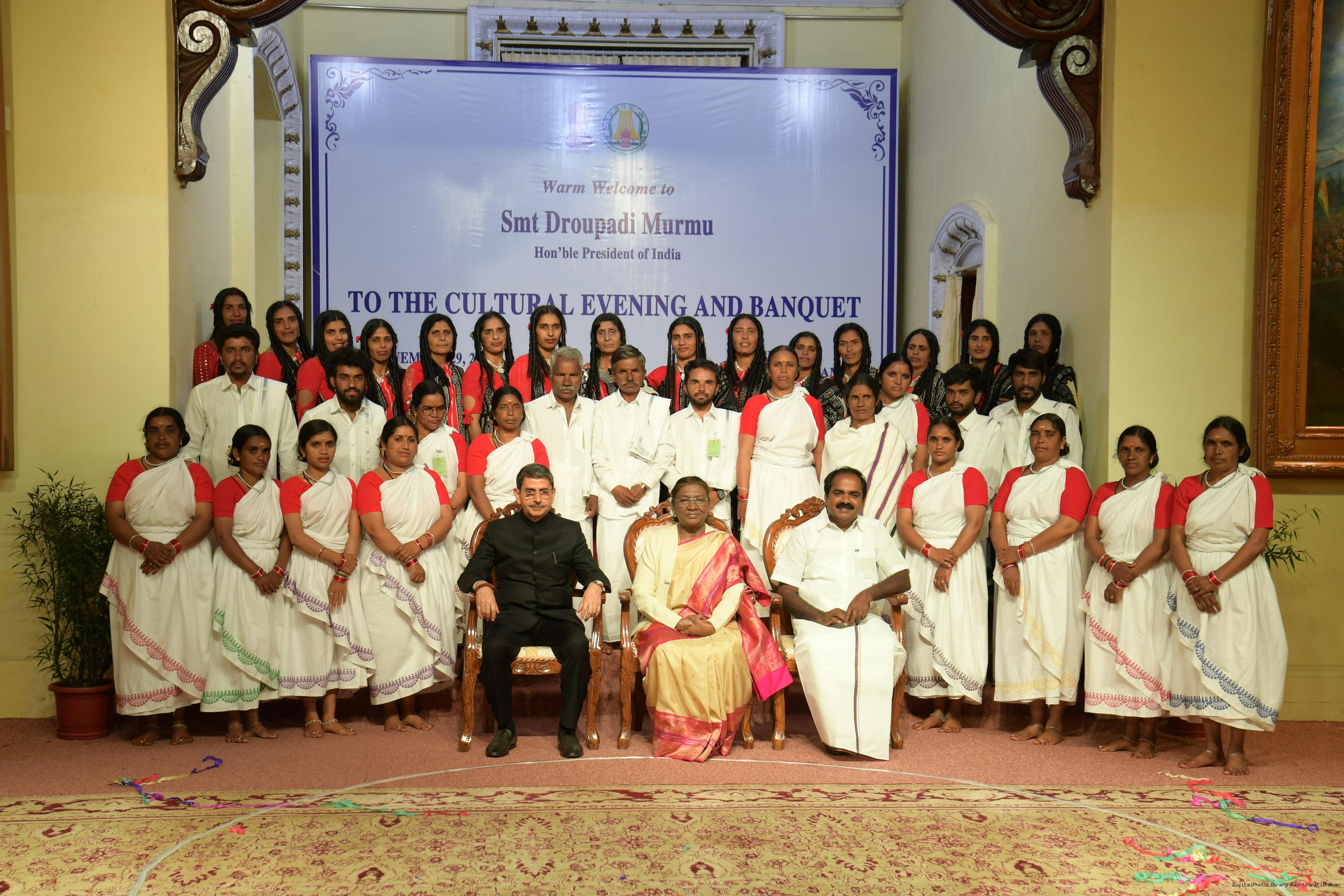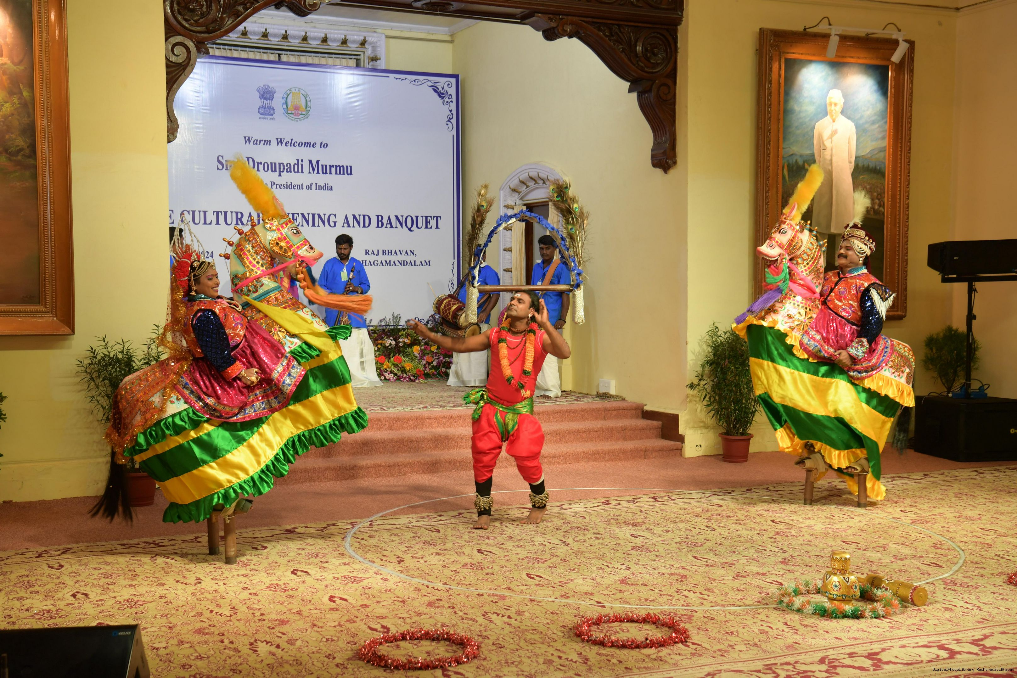 | Caption: | The President of India Smt. Droupadi Murmu witnessing Cultural Programme in Ballroom of at Raj Bhavan Ooty, Tamil Nadu on November 29, 2024. |