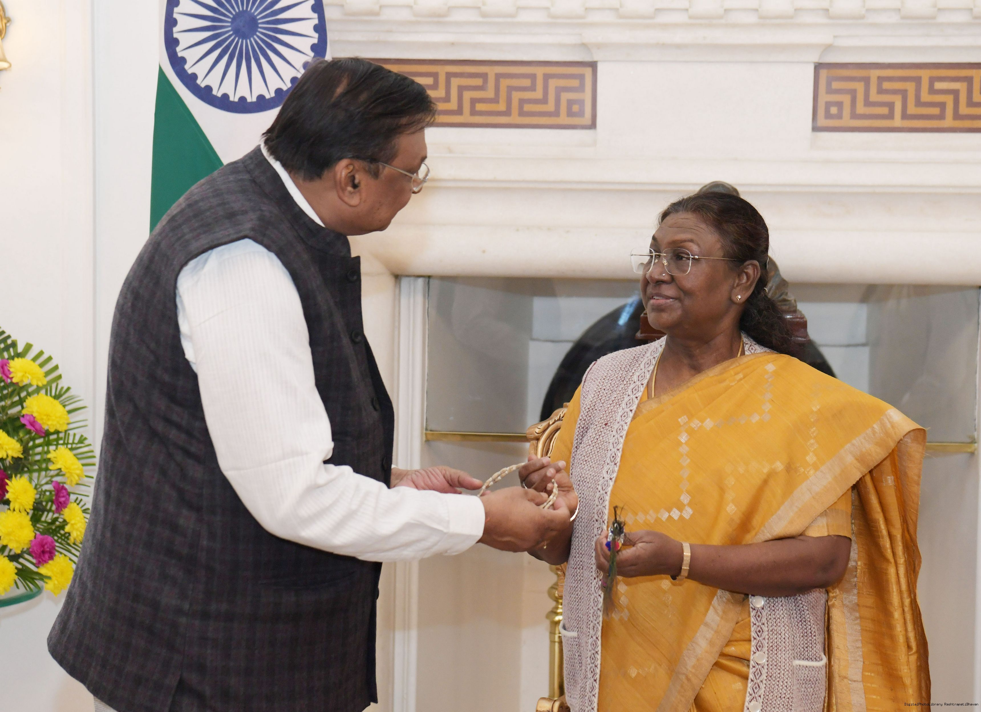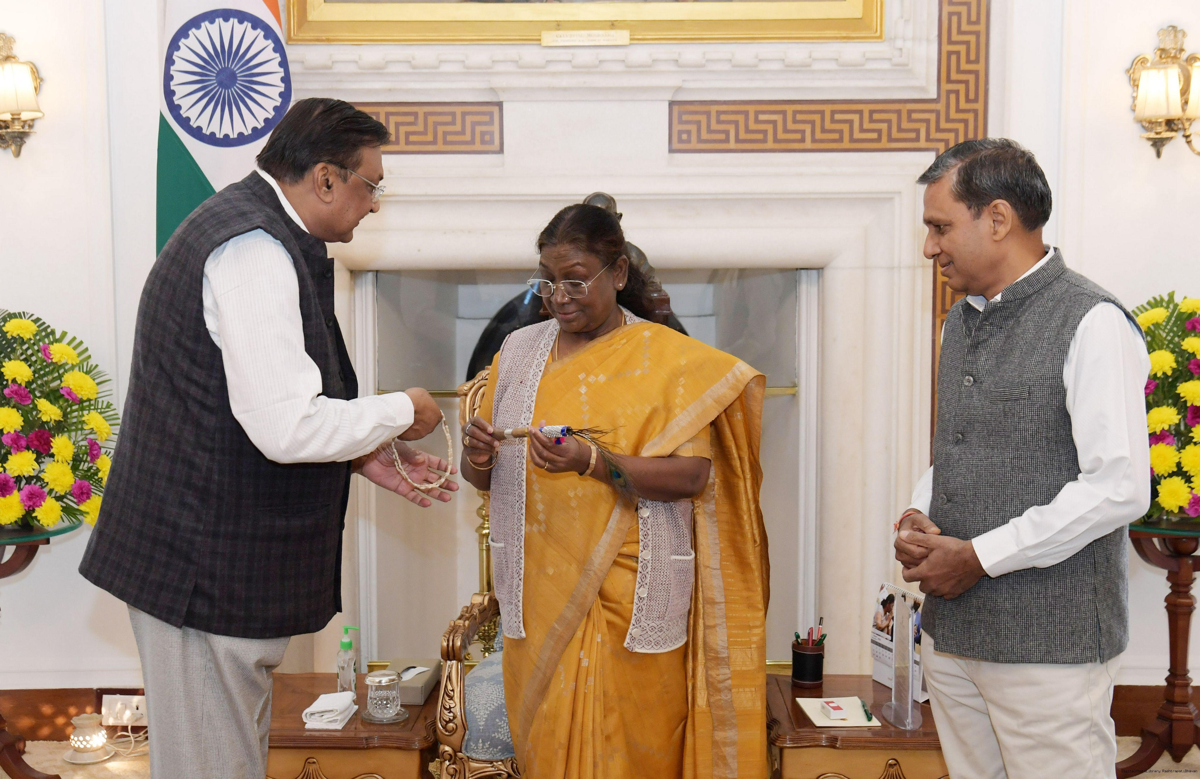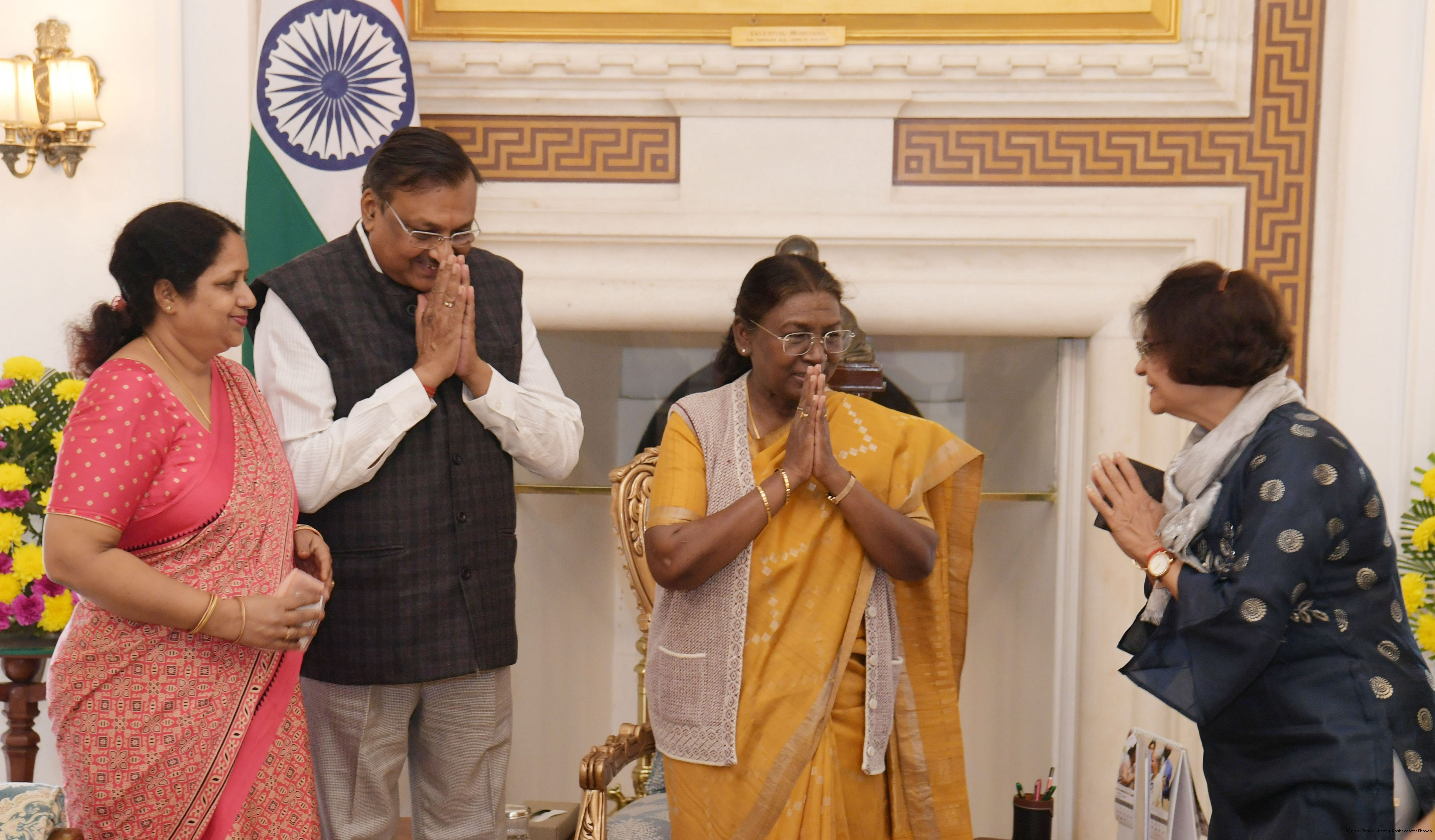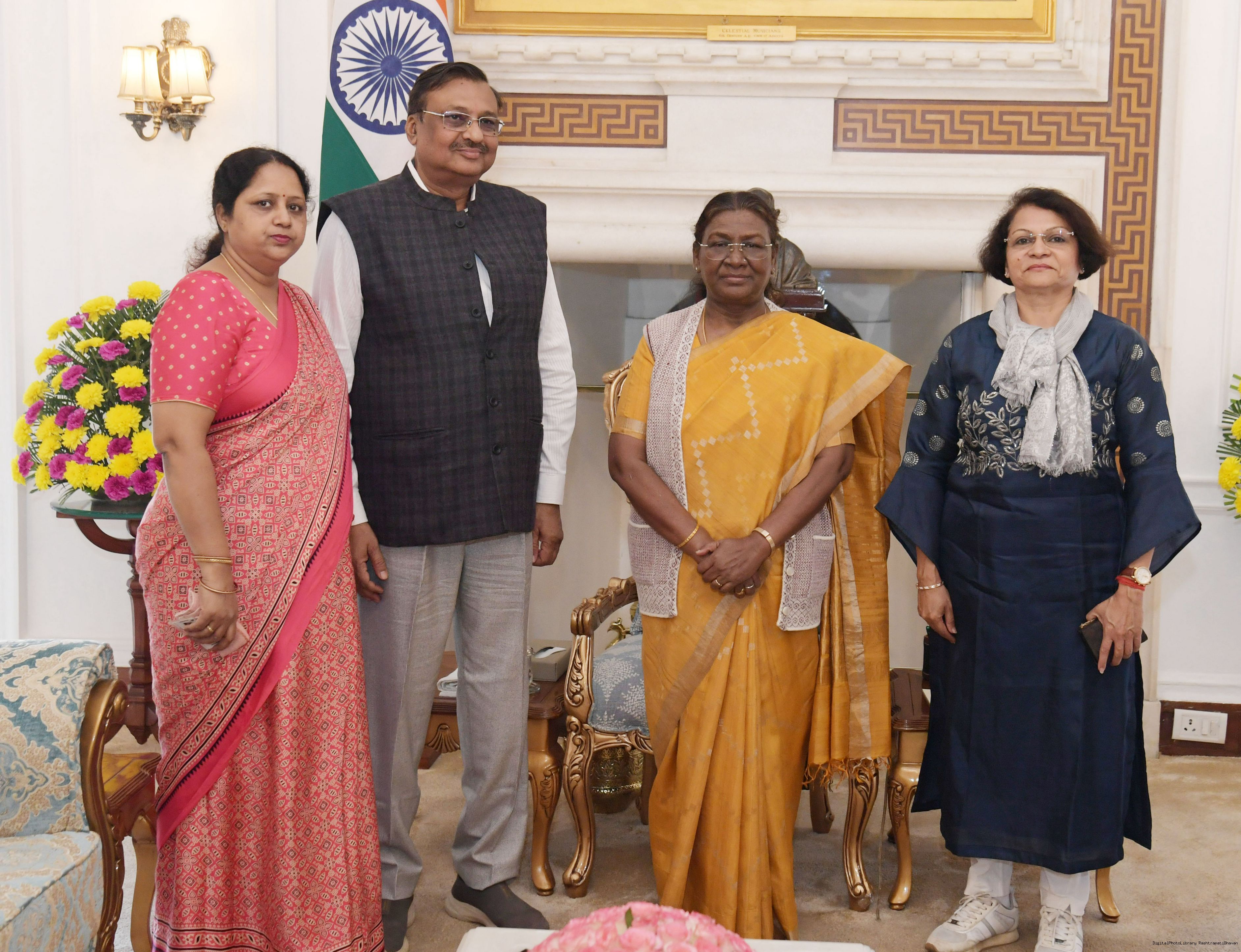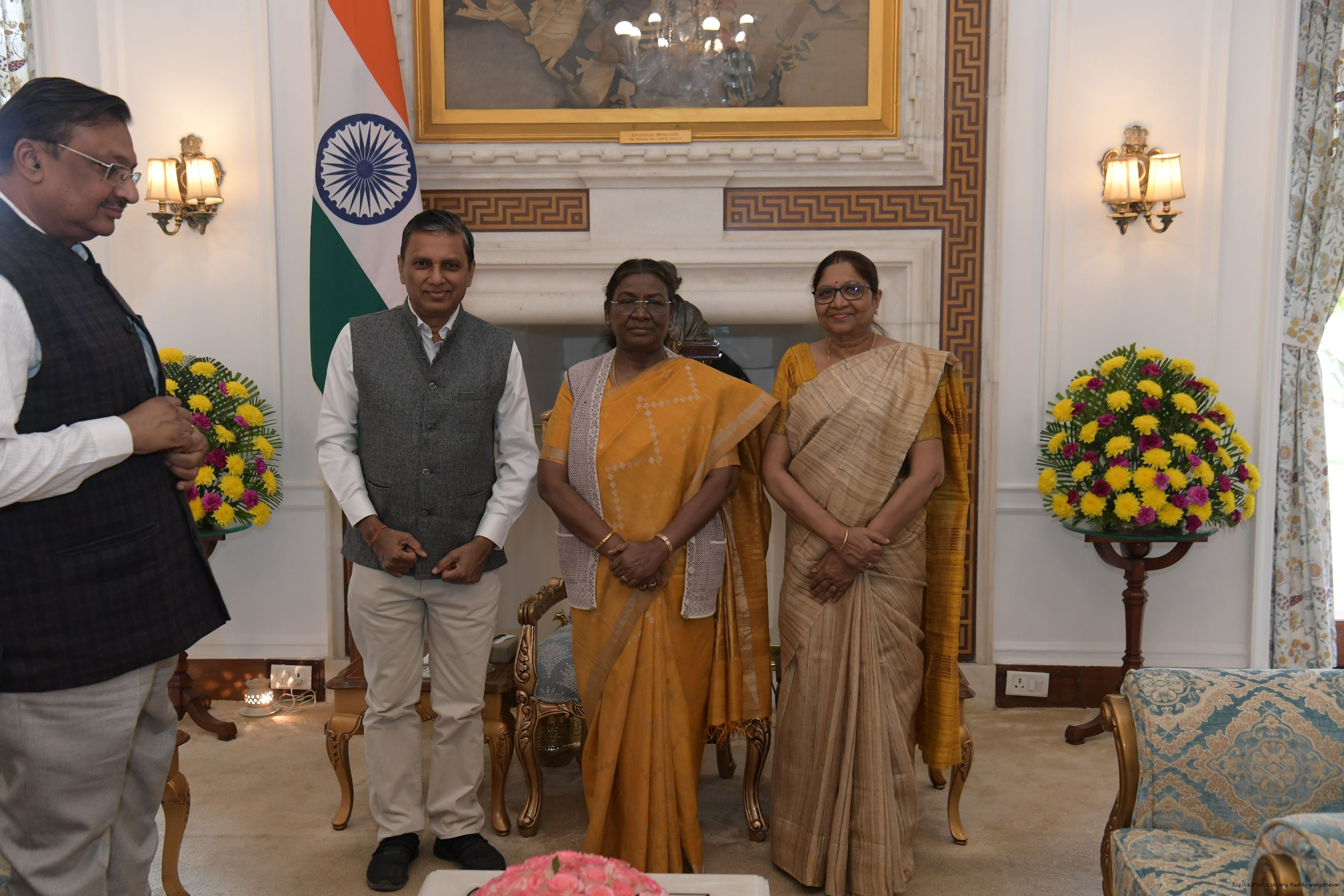 | Caption: | Shri Alok Kumar Agrawalla from Rairangpur along with others meeting with the President of India, Smt. Droupadi Murmu at Rashtrapati Bhavan on December 2, 2024. |