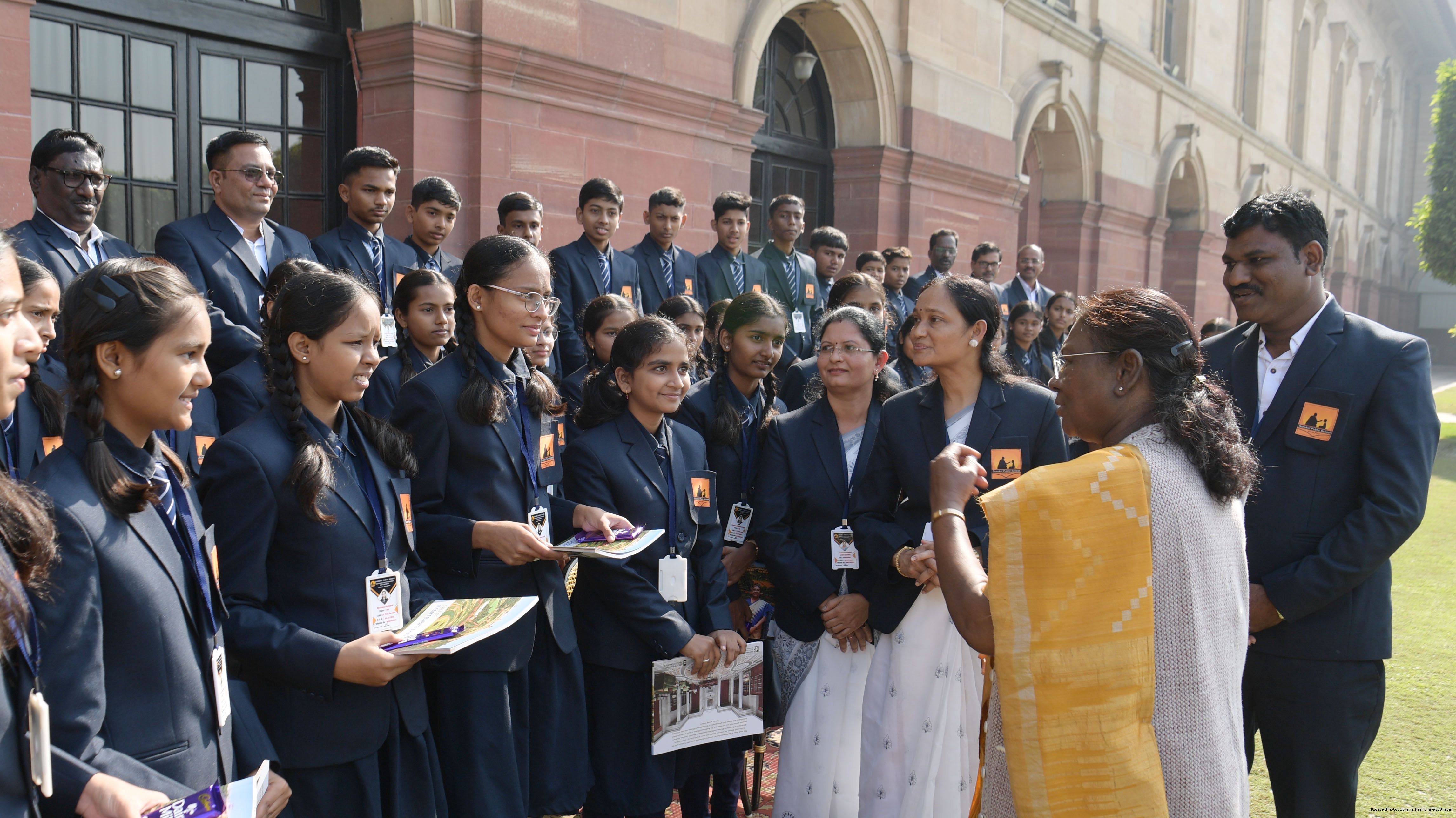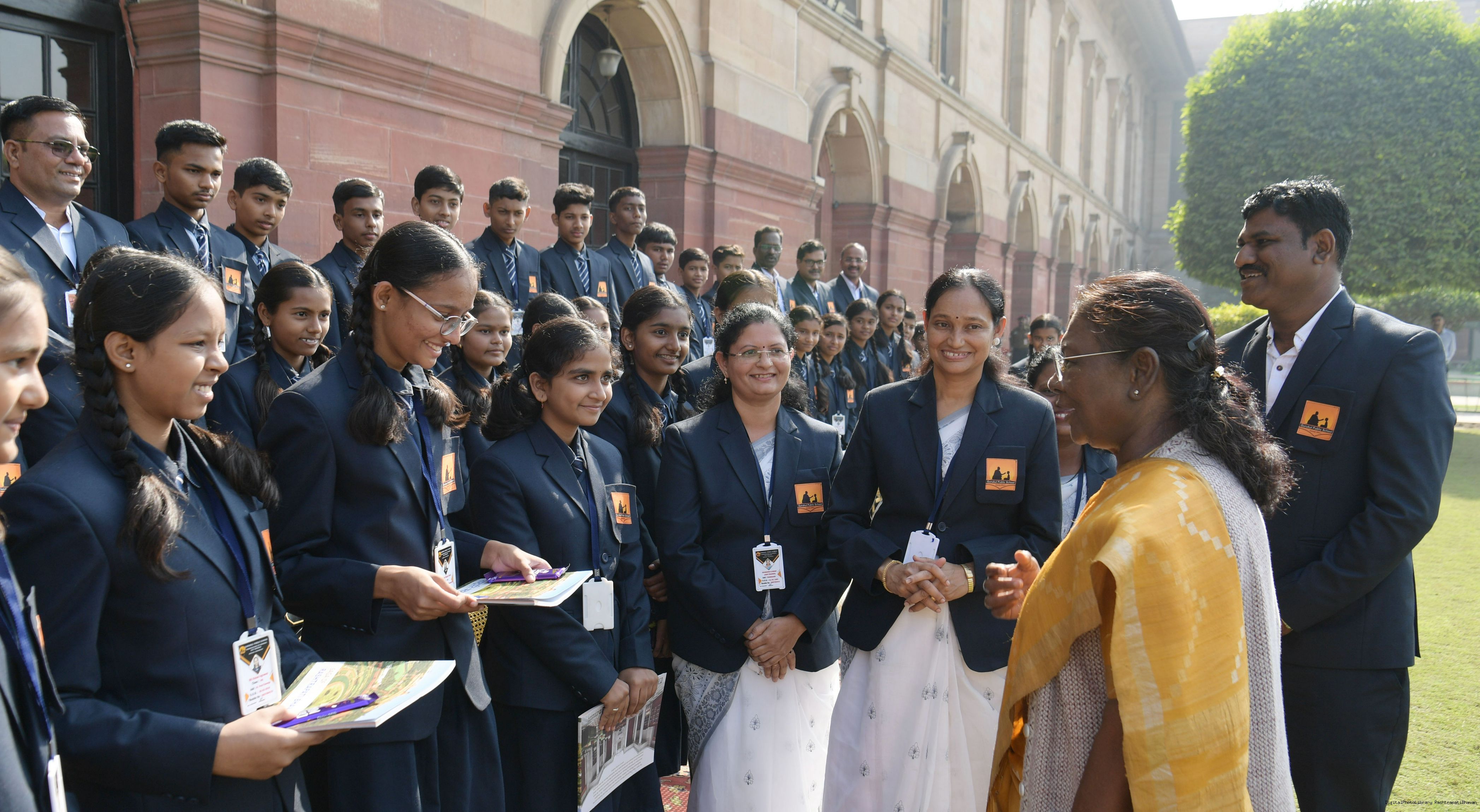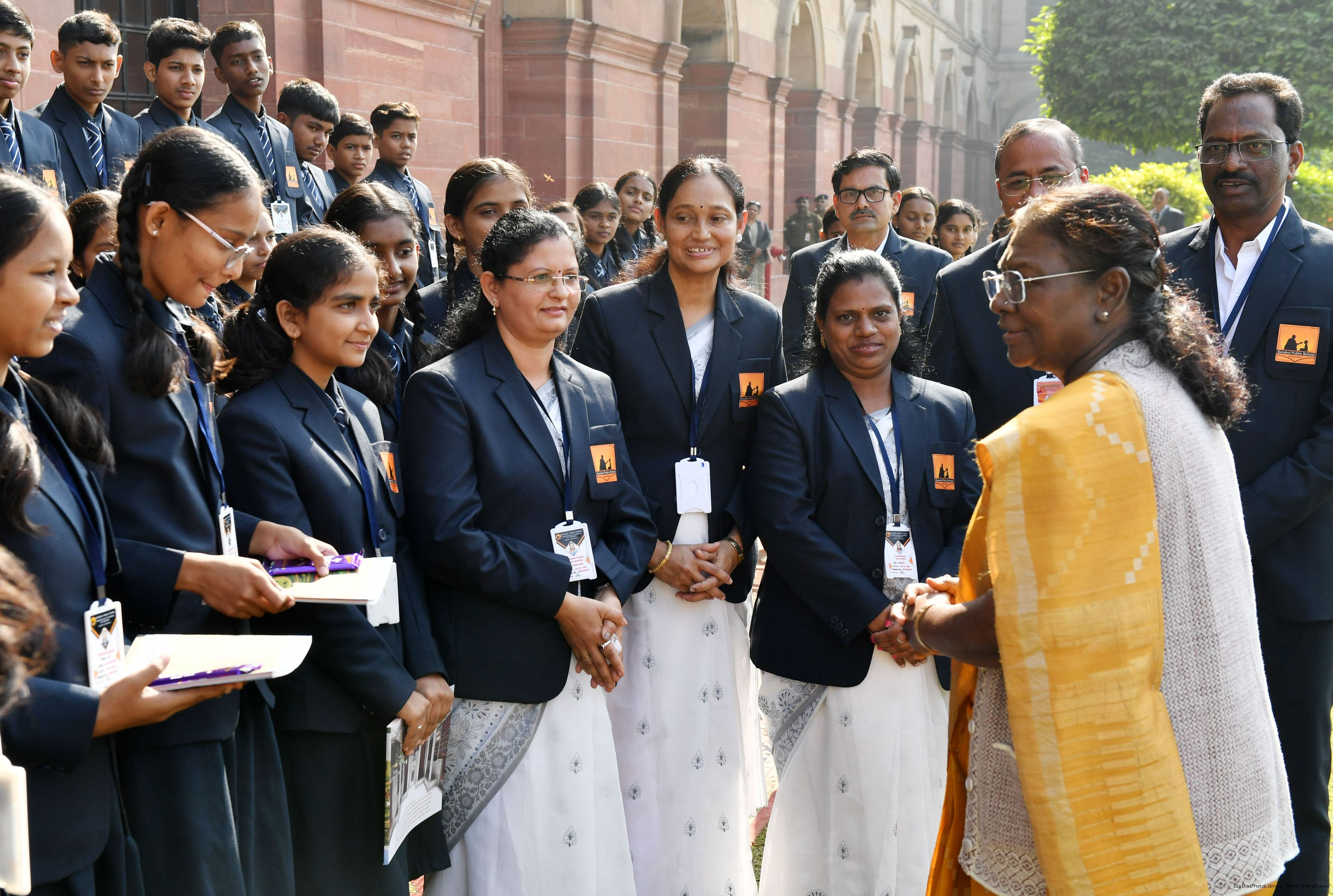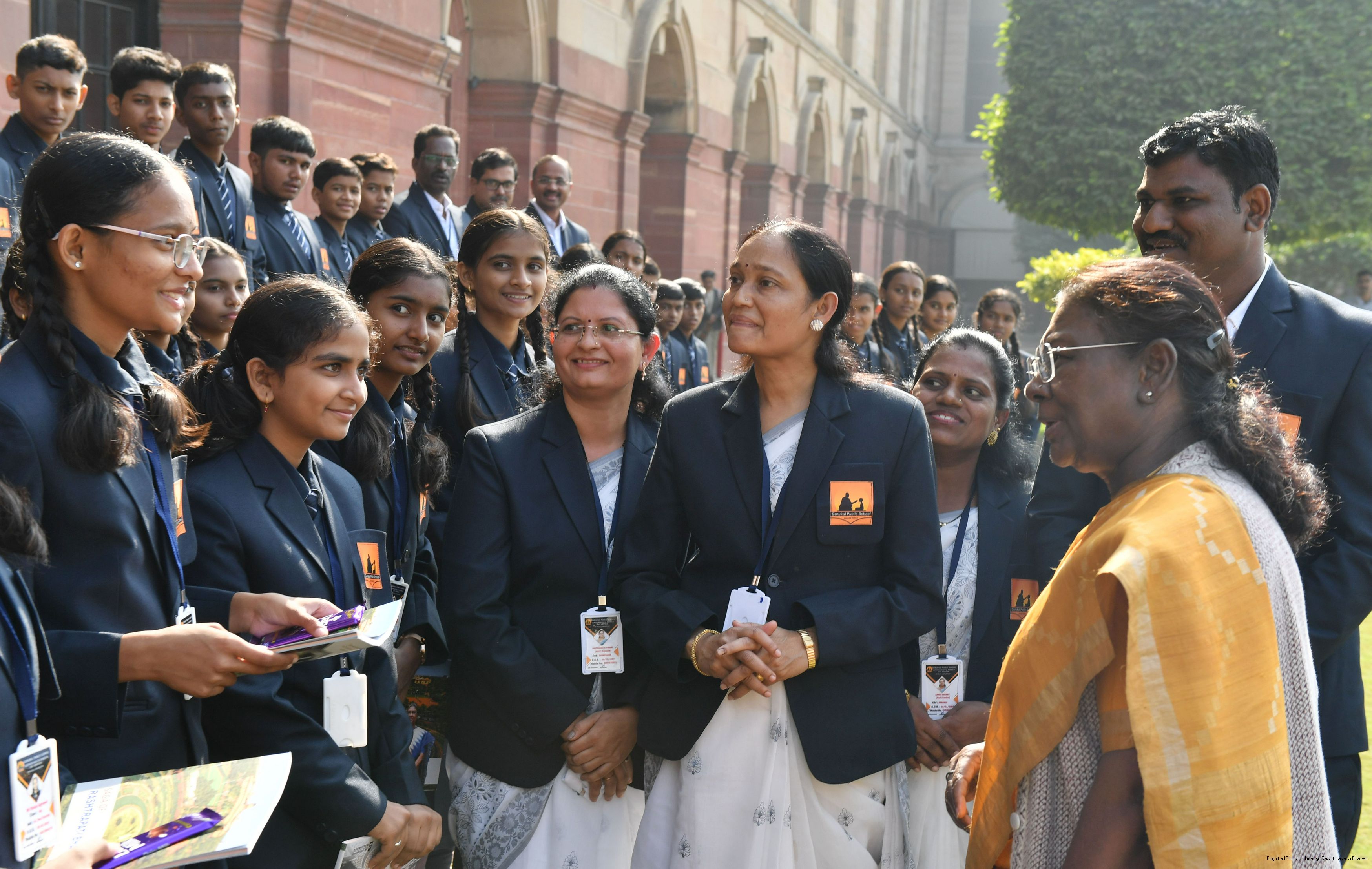 | Caption: | Shri Ashish Balkrishan Mankar along with 09 teachers and 39 students meeting with the President of India, Smt. Droupadi Murmu at Rashtrapati Bhavan on December 2, 2024. |